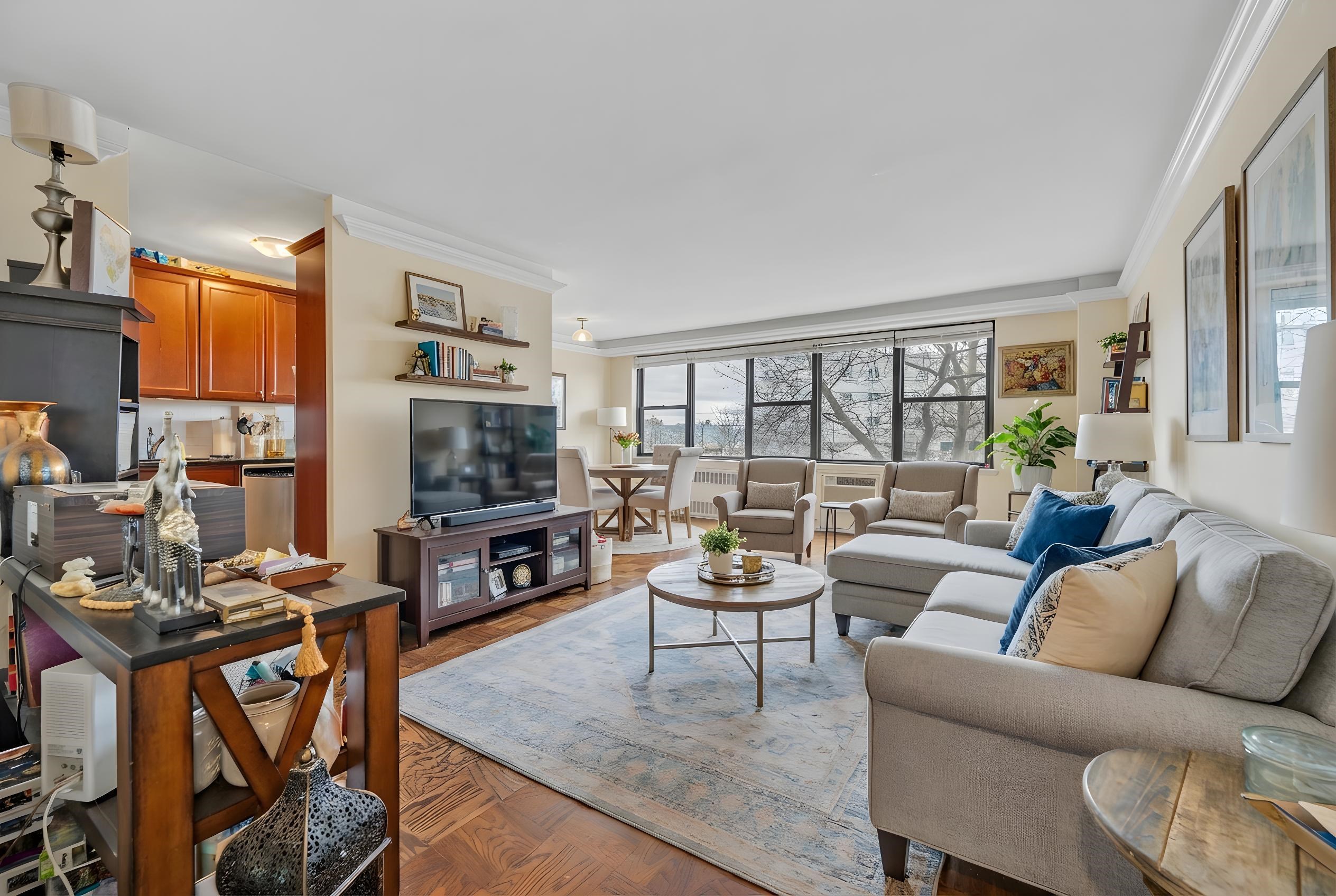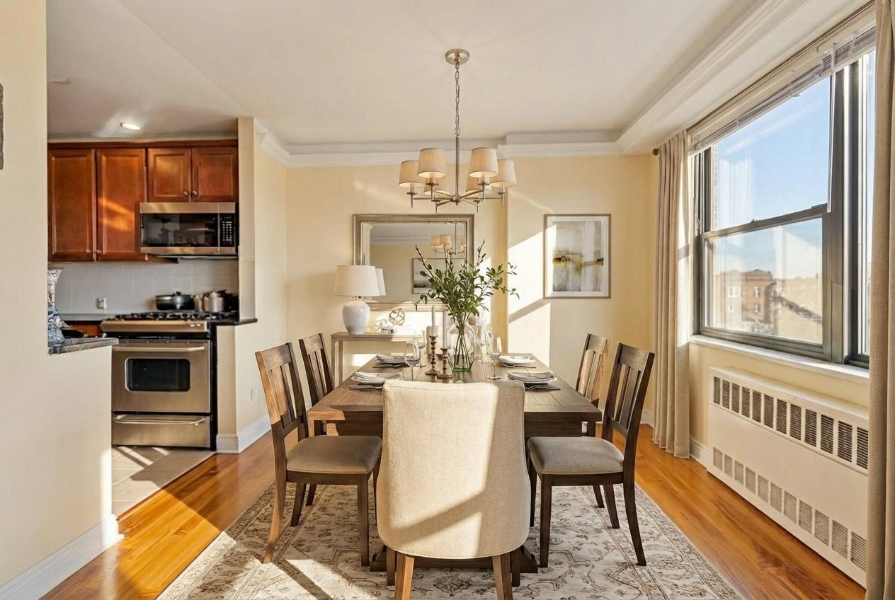 Welcome home to The Lenox, a full service amenity building in the heart of Union City. This beautifully upgraded one bedroom residence offers a spacious and desirable floor plan with large open living room and separate dining room area, creating comfortable everyday living and excellent entertaining space. The flexible layout provides ample room for a full dining table and one or even two home office setups. Western exposure fills the home with natural afternoon light and sunset views. The modern kitchen features stainless steel appliances, granite countertops, and maple cabinetry. The oversized bedroom offers generous proportions and a large closet for excellent storage. The building’s common areas and amenities have been updated in recent years, providing residents with an enhanced overall modern lifestyle and sense of community. Maintenance includes heat, hot water, gas, and access to building amenities, including concierge service, residents lounge, fitness center, and private shuttle to the Hoboken PATH. Onsite Parking available.