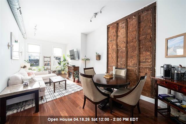 Welcome to this charming and industrial, loft-style 2-bedroom condo with a huge deeded private storage room included, located at 245 Griffith St in Jersey City. Set on the second floor of a well-maintained three-unit building, the home has a relaxed, slightly industrial feel with hardwood floors throughout and clean, open lines that give it a spacious, airy vibe. The kitchen is functional and well laid out, with SS appliances, good counter space, and plenty of cabinet space. The Master BR has a walk in closet off of it and the 2nd BR is comfortable in size, and the bathroom includes a new bathtub (2021). The home also has a new gas furnace and central AC (2023), so the big-ticket items are already handled. One of the standout features is the approximately 130 sq ft deeded private storage and laundry room, complete with a washer and dryer (new in 2026) —ideal for bikes, seasonal items, or anything you don’t want cluttering the living space. The location is convenient without feeling hectic. You’re close to the JSQ PATH train for an easy commute into Manhattan, while still being tucked into a quieter residential neighborhood.