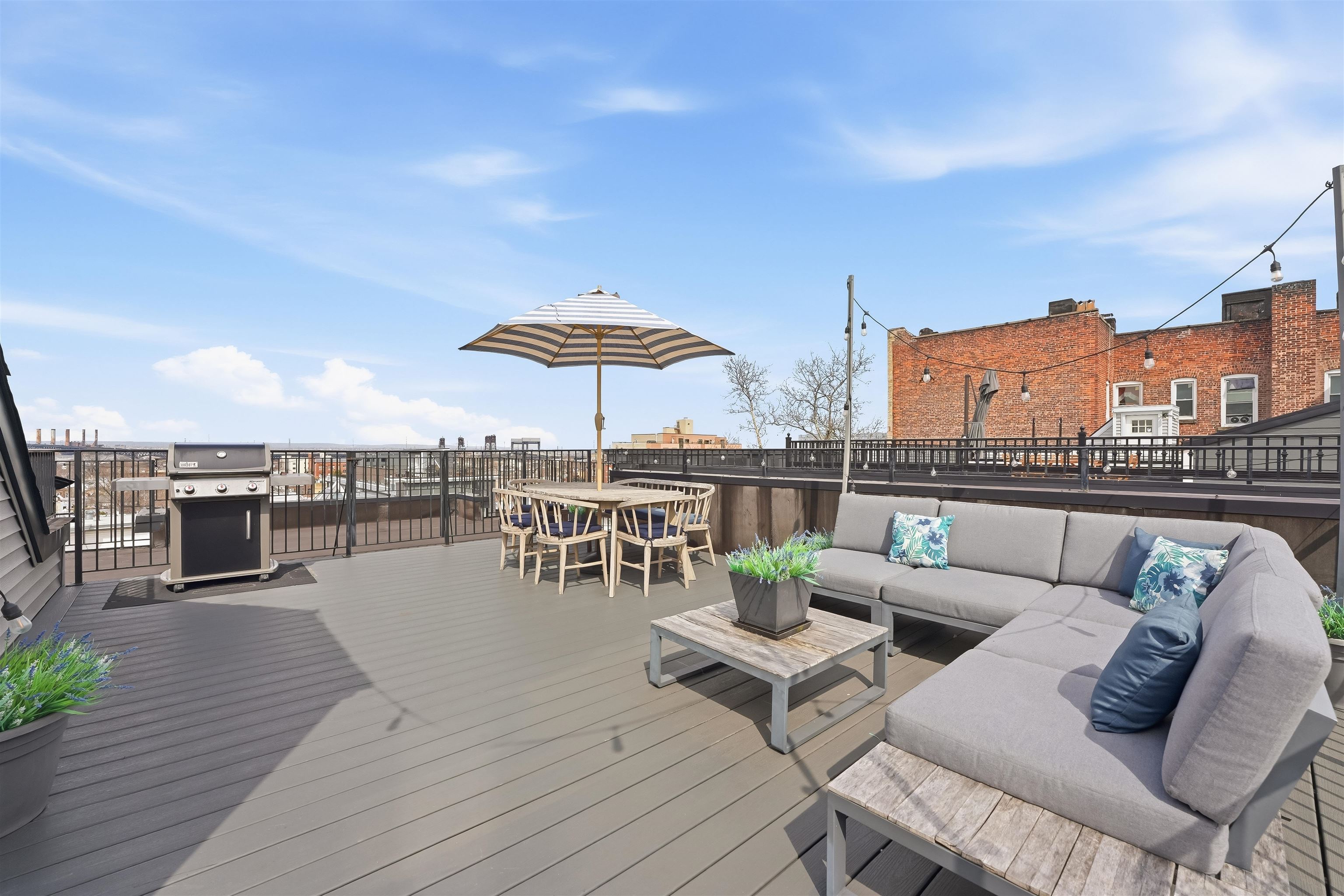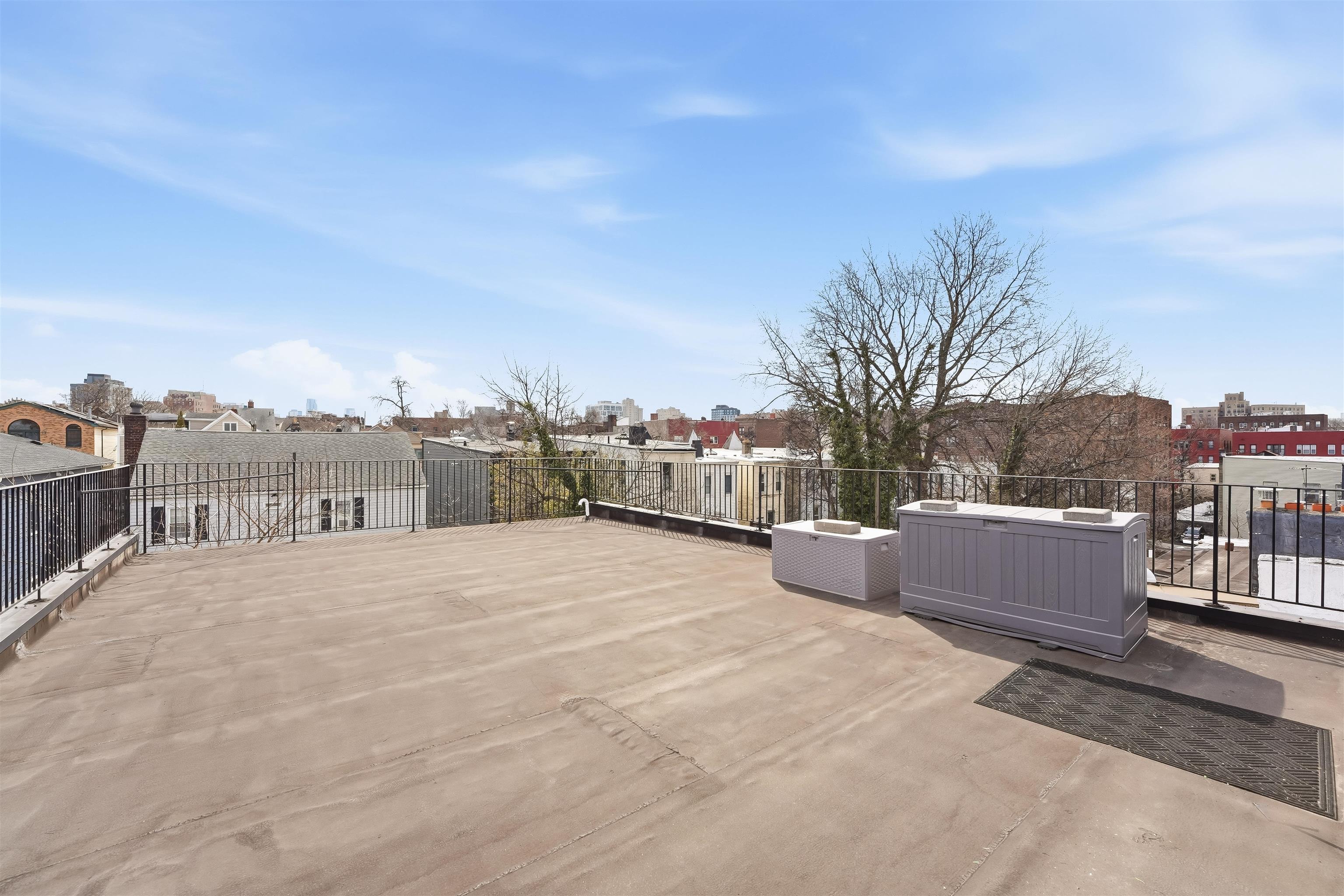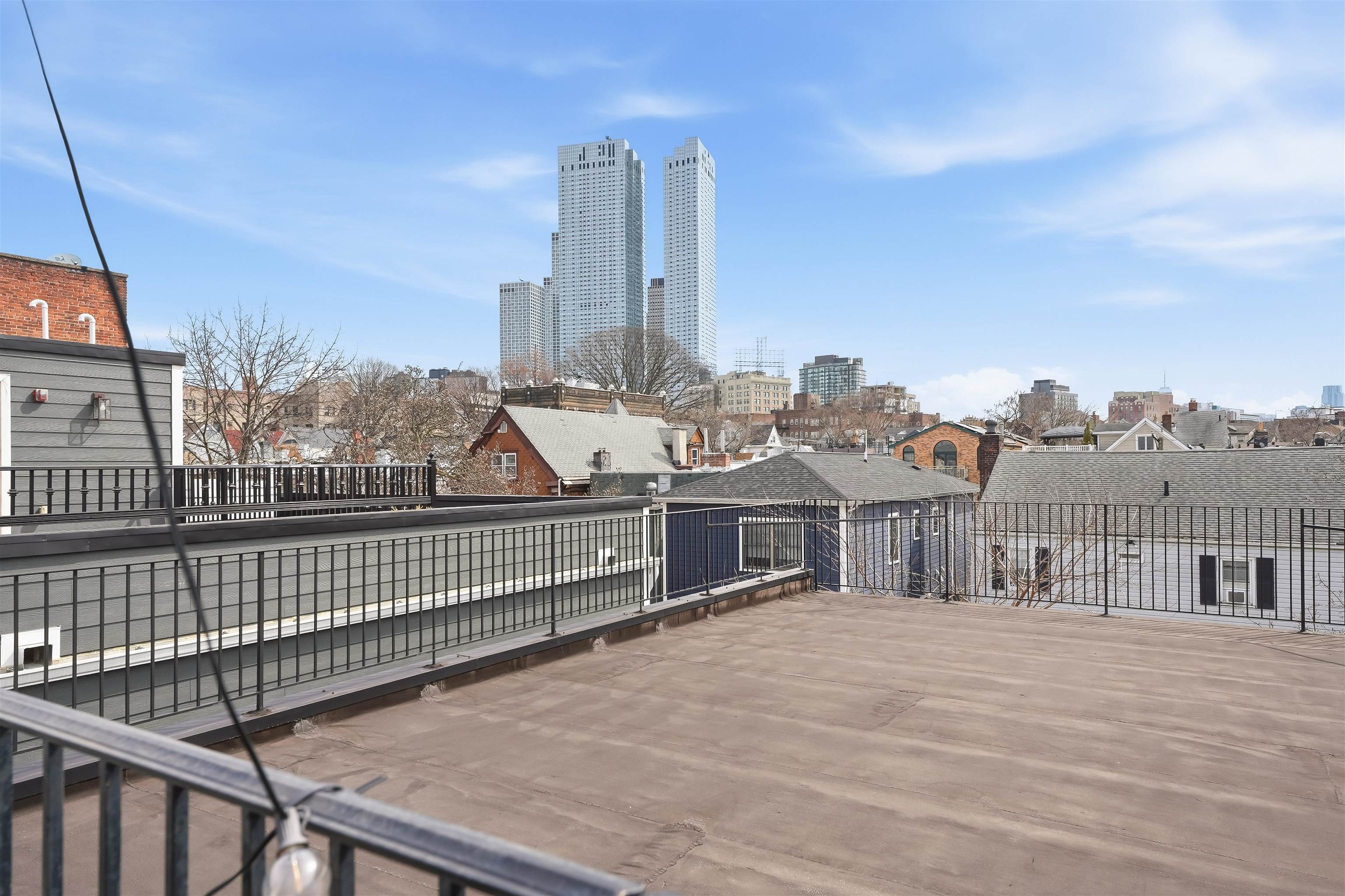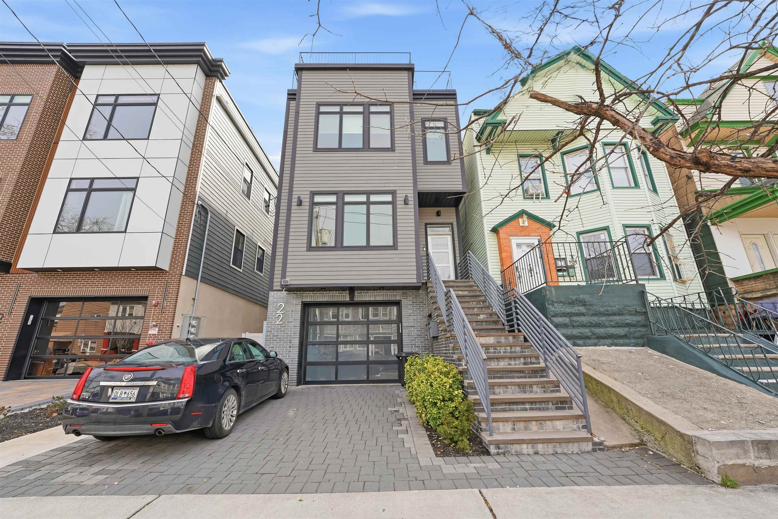 LUXURY 3BR w/PRIVATE ROOFTOP DECK & PARKING. Experience complete bliss in this ultra modern three bedroom, two bathroom located in the prestigious neighborhood of Journal Square. Upon entry, the parlor level reveals an expansive, sun filled living space with soaring 10ft ceilings, hardwood flooring throughout 1477sqft, oversized windows, and a chef inspired kitchen featuring premium appliances, sleek quartz countertops, and a dedicated dining area. The primary suite serves as a peaceful retreat, complete with a spa like ensuite bath and a private balcony. Two additional generously sized bedrooms and a second full bathroom offer comfort and versatility for guests, family, or a home office. The home is thoughtfully equipped with central HVAC, an in unit washer and dryer, an instant hot water heater for modern convenience and a tandem garage parking with ample storage enhancing everyday ease. Crowning the home is a private rooftop deck, ideal for relaxing or entertaining while enjoying both sunrise and sunset views. Ideally located just moments from Lincoln Park, acclaimed dining, boutique shopping, and seamless access to New York City via the Journal Square PATH, this home offers the perfect blend of luxury, comfort, and convenience.