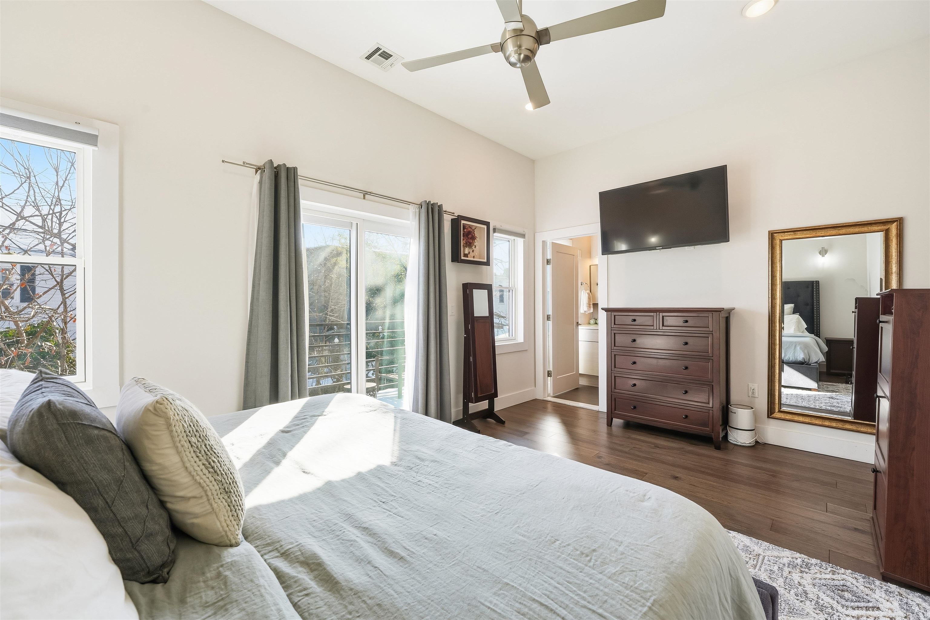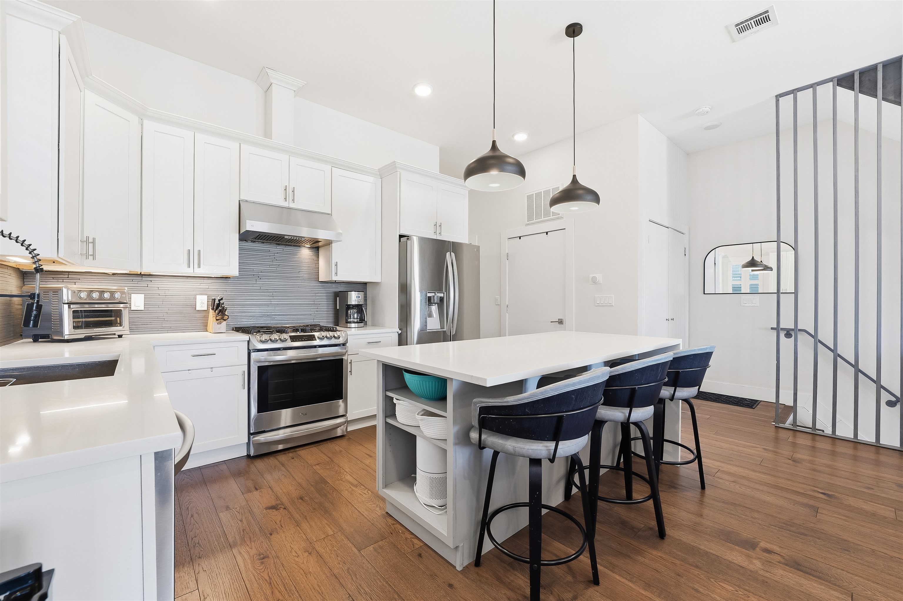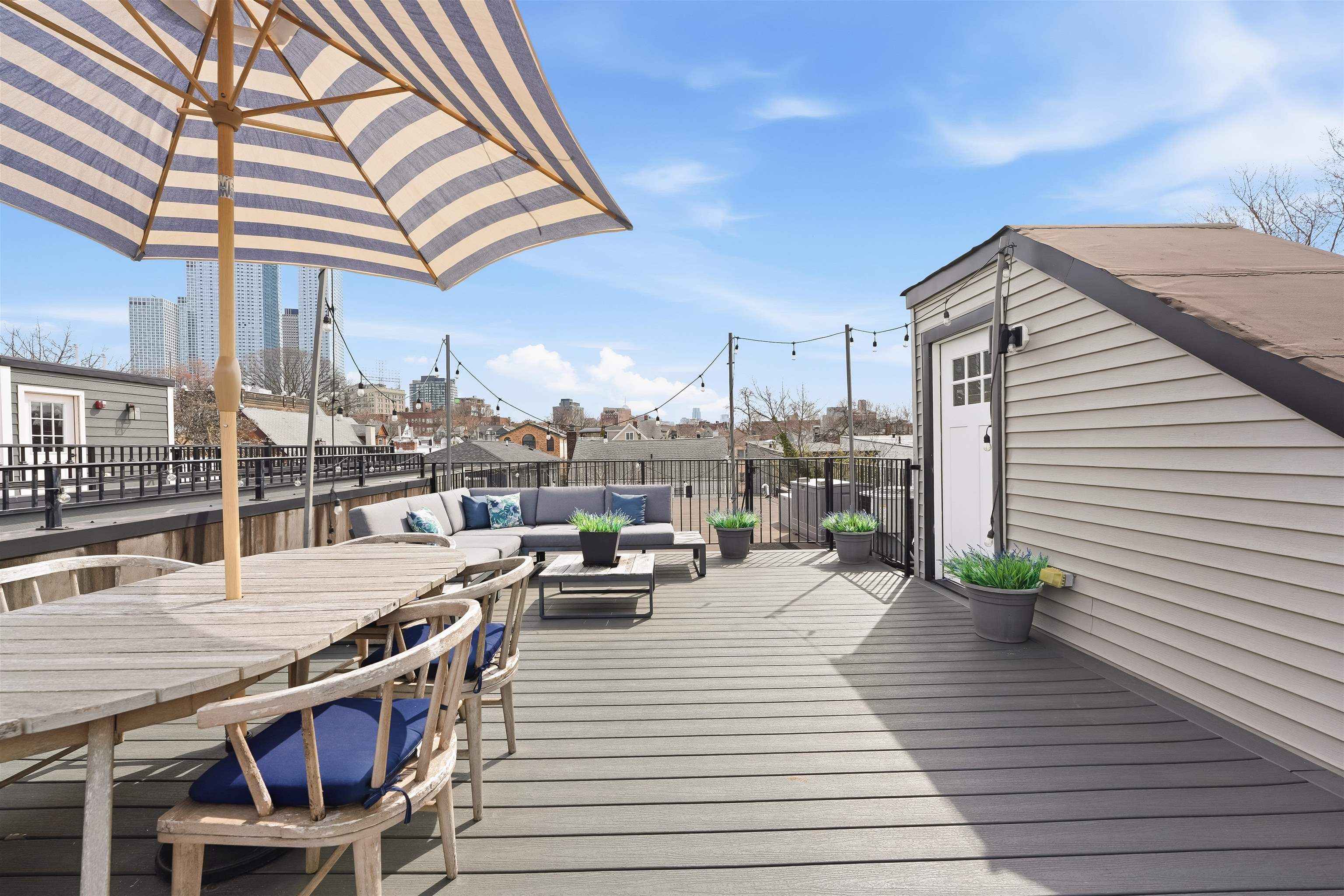 LUXURY 3BR w/PRIVATE ROOFTOP DECK & PARKING. Experience complete bliss in this ultra modern three bedroom, two bathroom located in the prestigious neighborhood of Journal Square. Upon entry, the parlor level reveals an expansive, sun filled living space with soaring 10ft ceilings, hardwood flooring throughout 1477sqft, oversized windows, and a chef inspired kitchen featuring premium appliances, sleek quartz countertops, and a dedicated dining area. The primary suite serves as a peaceful retreat, complete with a spa like ensuite bath and a private balcony. Two additional generously sized bedrooms and a second full bathroom offer comfort and versatility for guests, family, or a home office. The home is thoughtfully equipped with central HVAC, an in unit washer and dryer, an instant hot water heater for modern convenience and a tandem garage parking with ample storage enhancing everyday ease. Crowning the home is a private rooftop deck, ideal for relaxing or entertaining while enjoying both sunrise and sunset views. Ideally located just moments from Lincoln Park, acclaimed dining, boutique shopping, and seamless access to New York City via the Journal Square PATH, this home offers the perfect blend of luxury, comfort, and convenience.