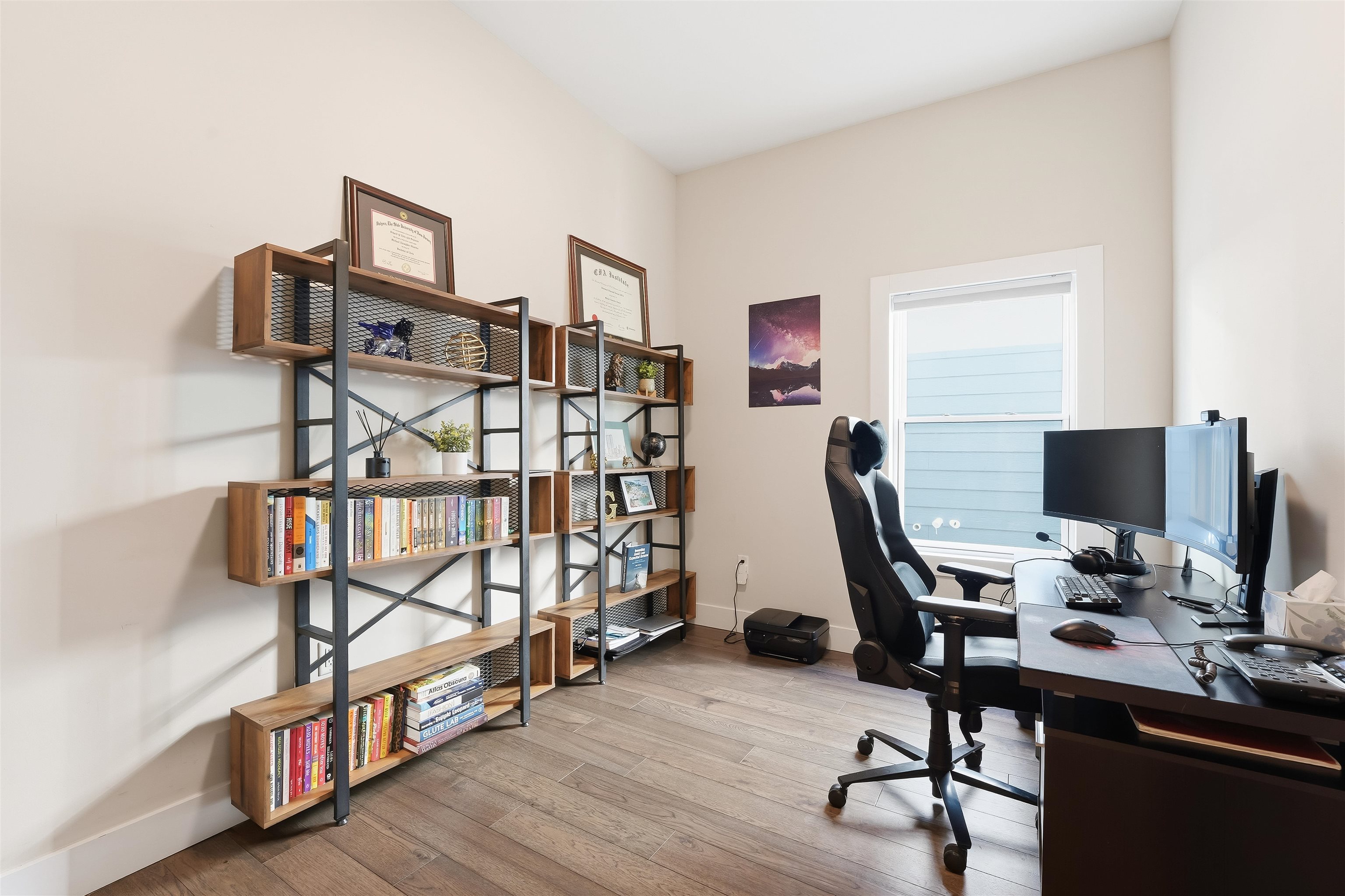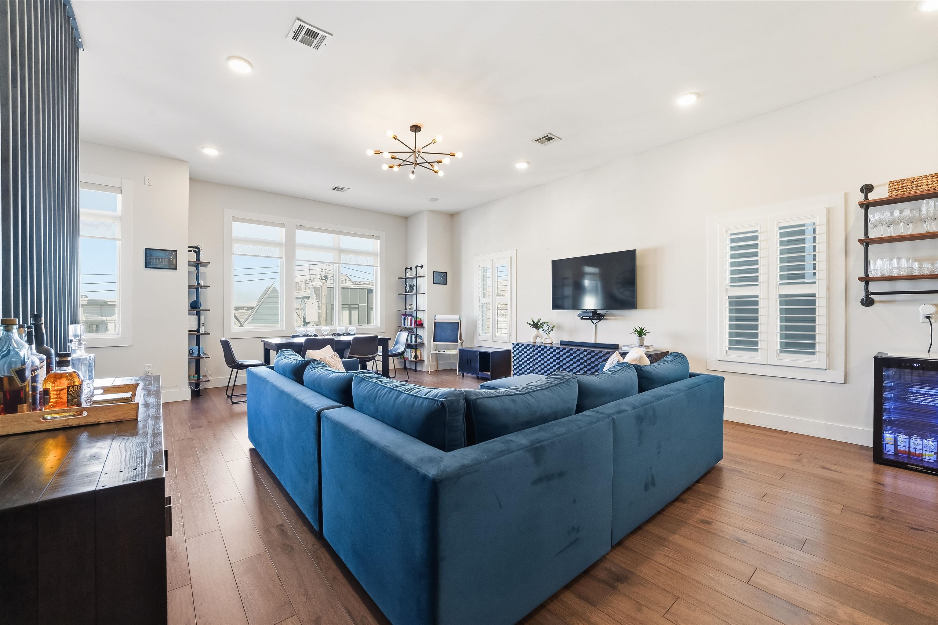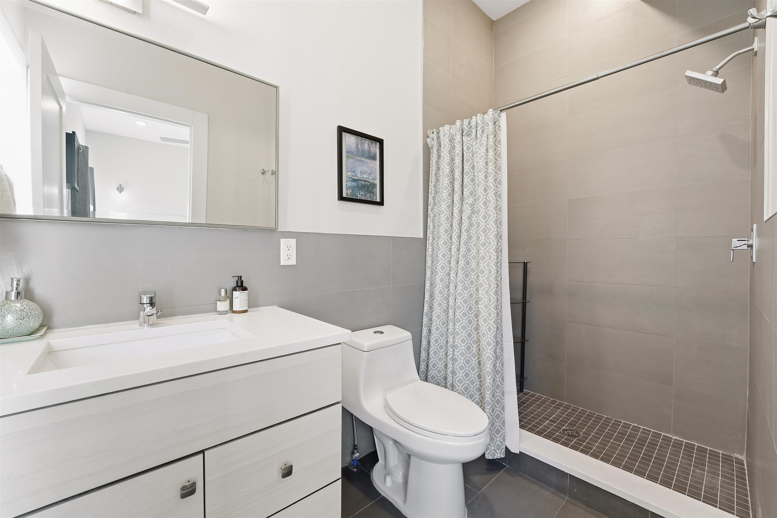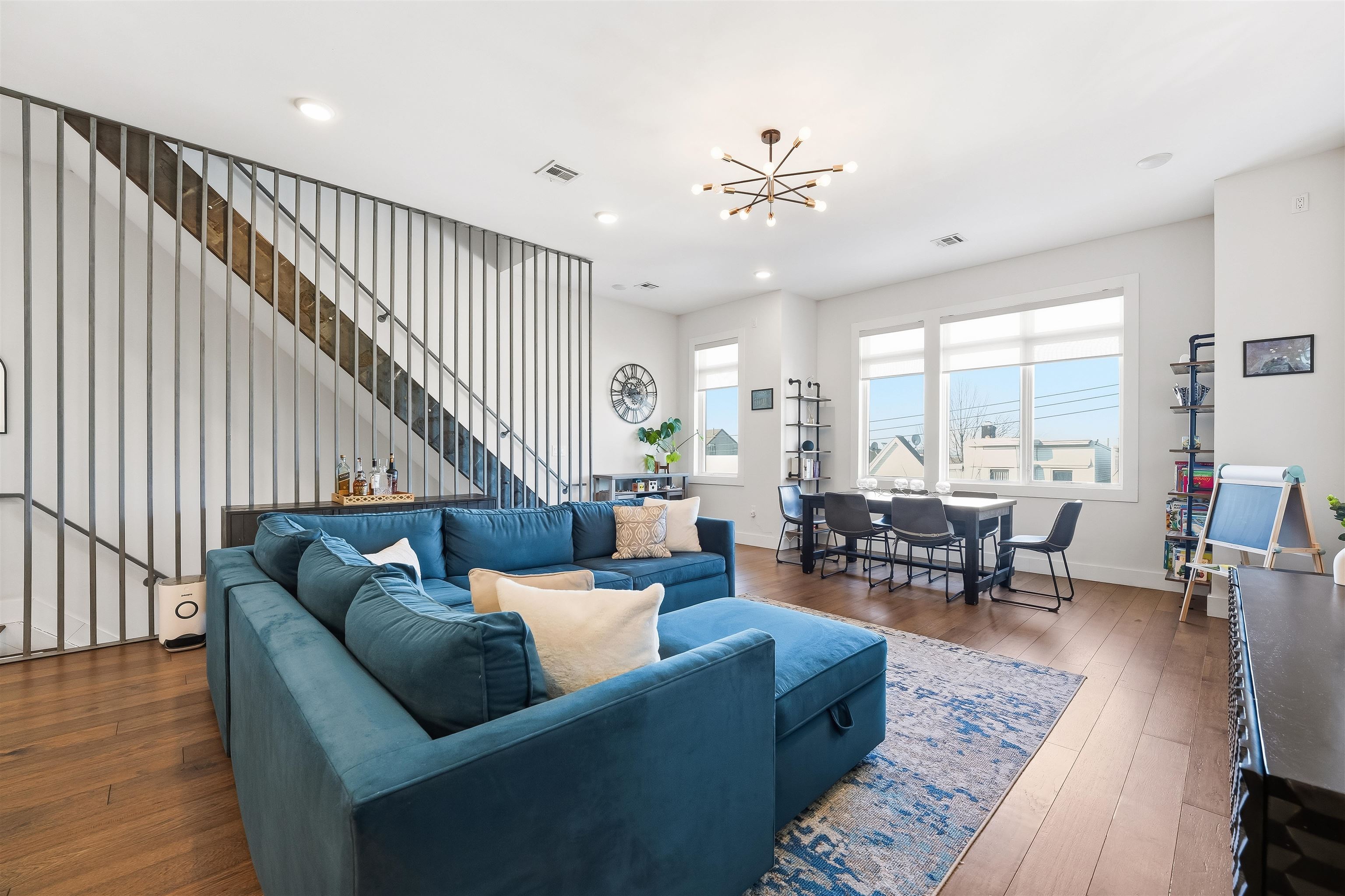 LUXURY 3BR w/PRIVATE ROOFTOP DECK & PARKING. Experience complete bliss in this ultra modern three bedroom, two bathroom located in the prestigious neighborhood of Journal Square. Upon entry, the parlor level reveals an expansive, sun filled living space with soaring 10ft ceilings, hardwood flooring throughout 1477sqft, oversized windows, and a chef inspired kitchen featuring premium appliances, sleek quartz countertops, and a dedicated dining area. The primary suite serves as a peaceful retreat, complete with a spa like ensuite bath and a private balcony. Two additional generously sized bedrooms and a second full bathroom offer comfort and versatility for guests, family, or a home office. The home is thoughtfully equipped with central HVAC, an in unit washer and dryer, an instant hot water heater for modern convenience and a tandem garage parking with ample storage enhancing everyday ease. Crowning the home is a private rooftop deck, ideal for relaxing or entertaining while enjoying both sunrise and sunset views. Ideally located just moments from Lincoln Park, acclaimed dining, boutique shopping, and seamless access to New York City via the Journal Square PATH, this home offers the perfect blend of luxury, comfort, and convenience.