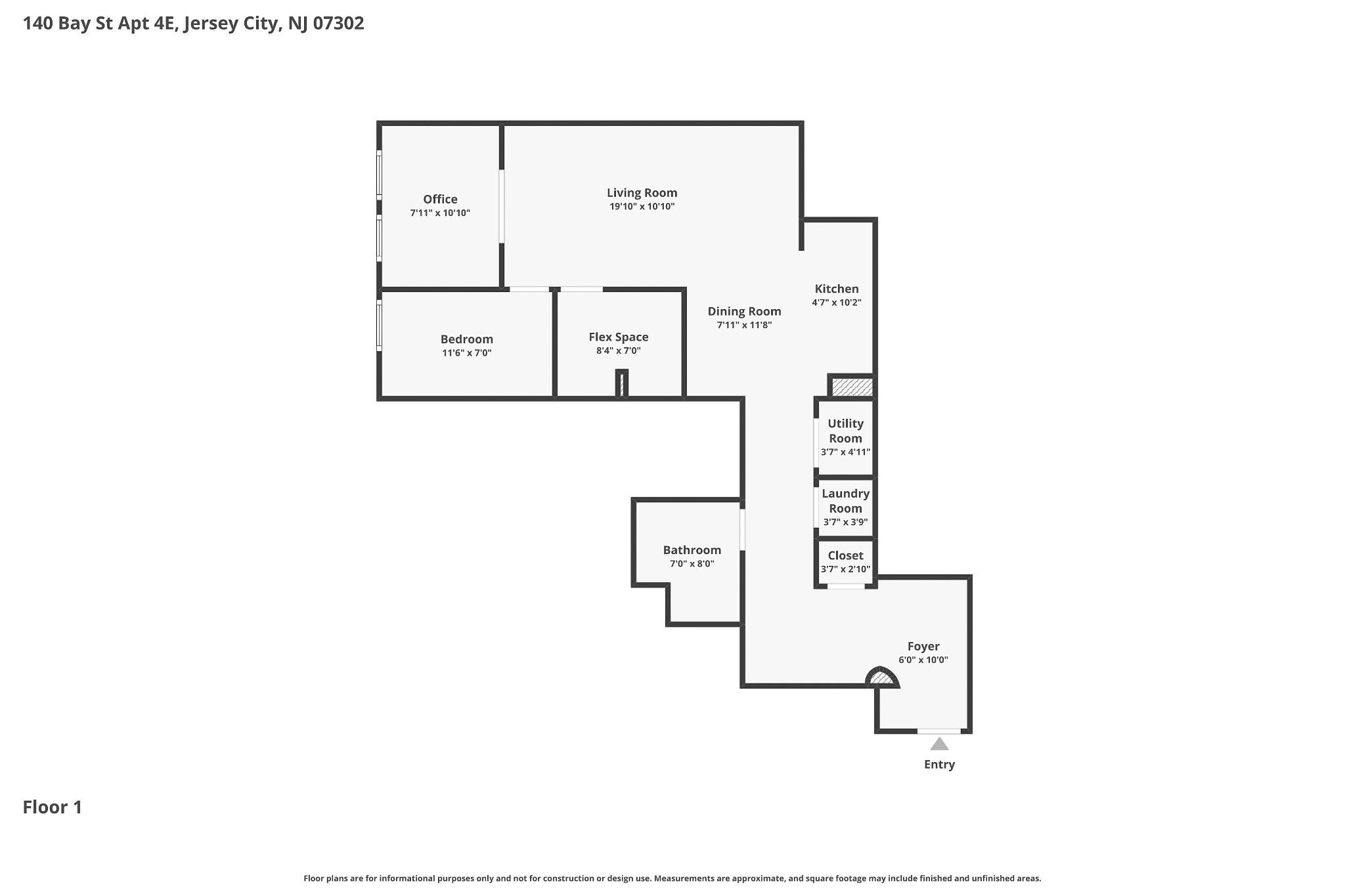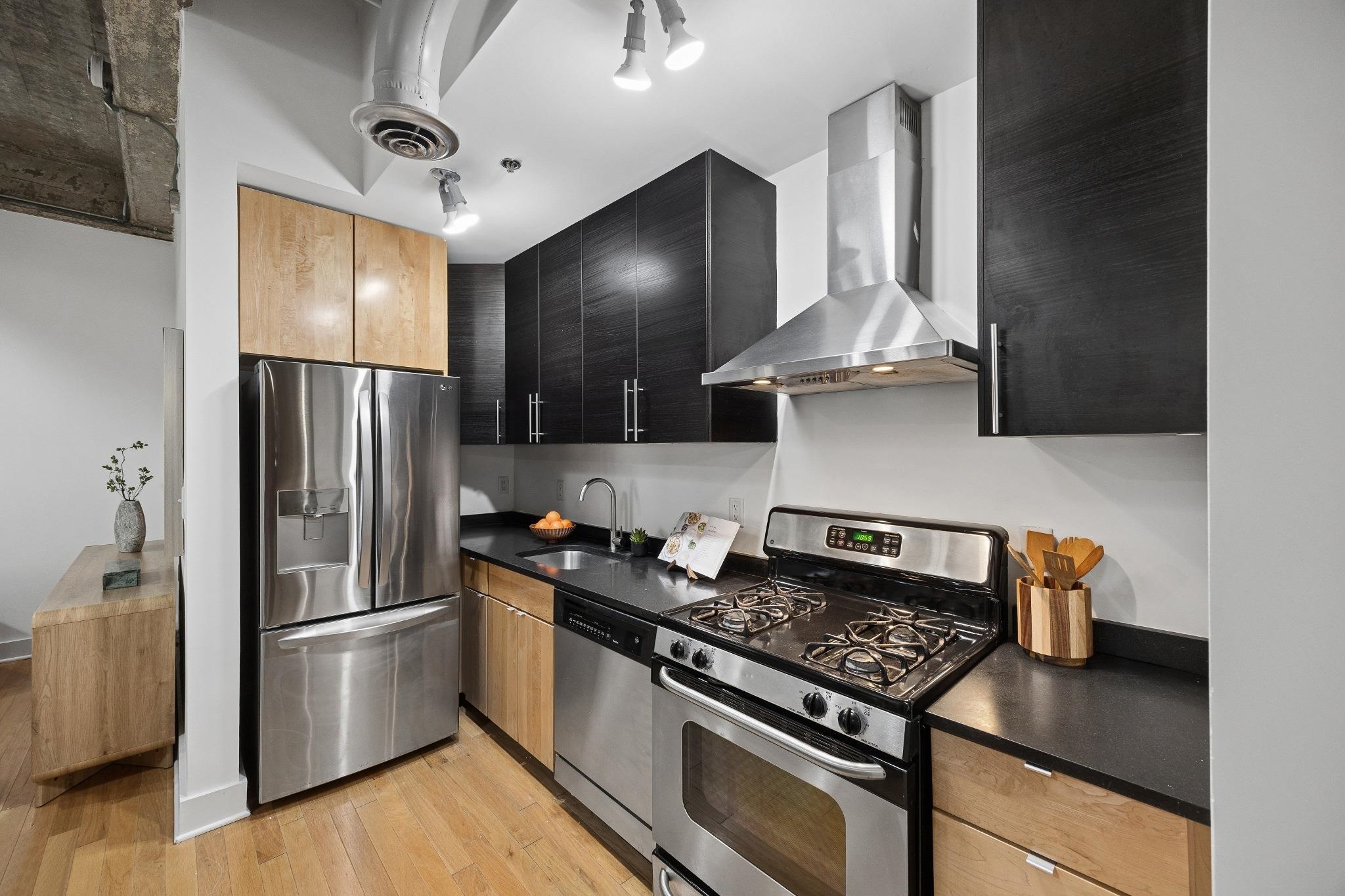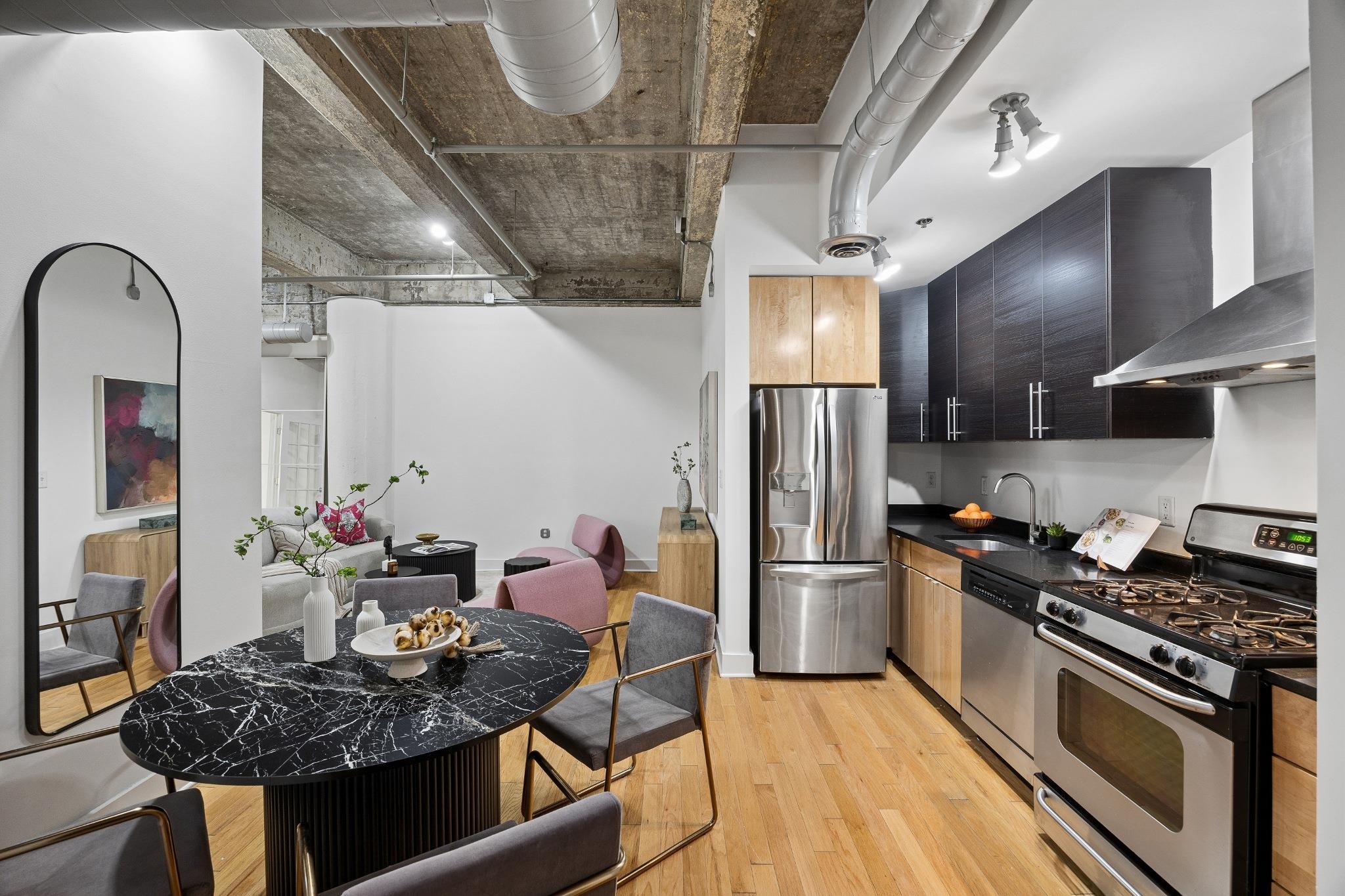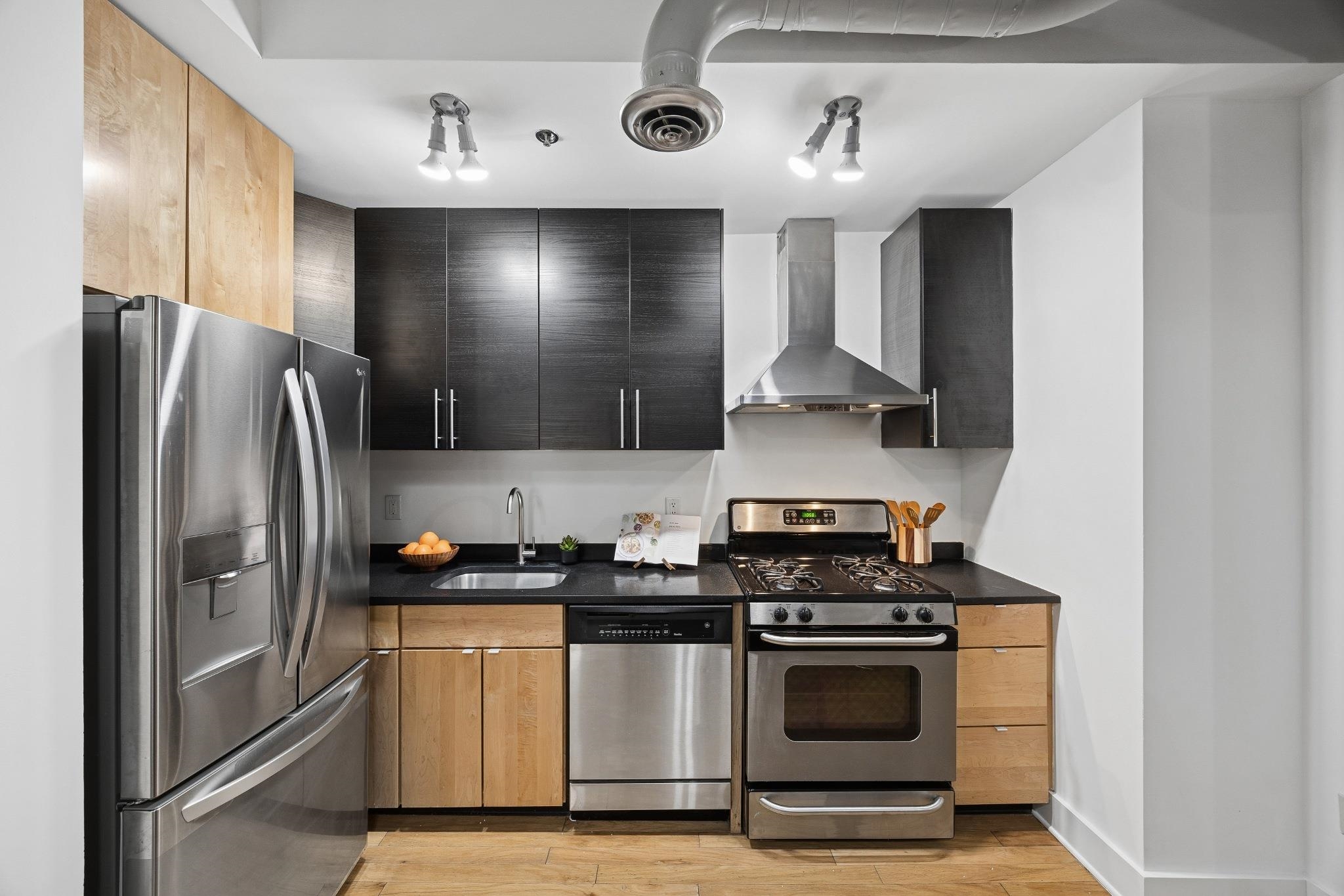 Not your typical old downtown brownstone. Not a glassy new build. Something different. A repurposed warehouse with concrete construction, 12 foot ceilings, exposed brick and pillars. Solid, quiet, and built to last. Approx. 945 sq ft with a layout that works. One bedroom plus a separate office or flex space behind French doors. Large living room with an adjacent dining area and a streamlined kitchen that runs along one wall with good counter space and storage. An oversized entry hall that does more than connect rooms. Quiet from the corridor and flexible for storage, shelving, or a gallery wall. An oversized bathroom adds to the overall scale. In unit washer and dryer. Central air. Tankless Water Heater. Elevator building with a common roof deck. Well maintained. Cooke Lofts in the Powerhouse Arts District. Zoned for PS16. Less than three blocks to the Grove Street PATH. Near restaurants, coffee, the waterfront, and everything that keeps downtown moving. Loft living tends to attract a certain buyer. Someone who values space, structure, and a bit of creativity. If that sounds like you, you will understand this one.