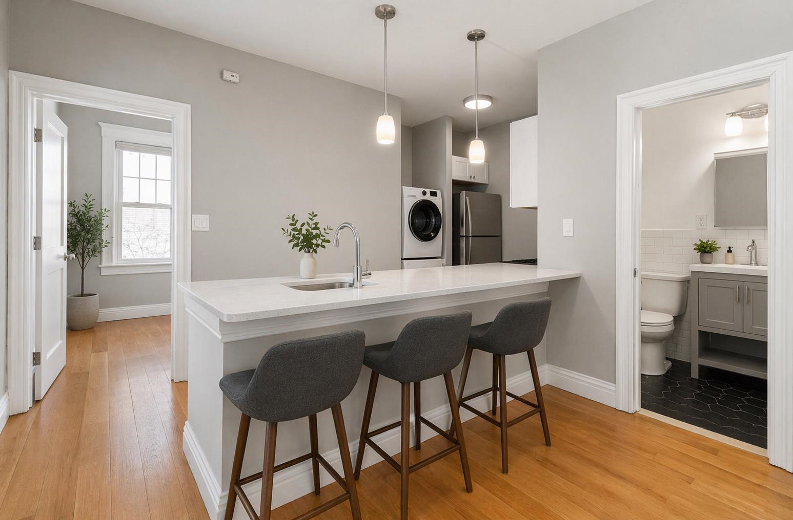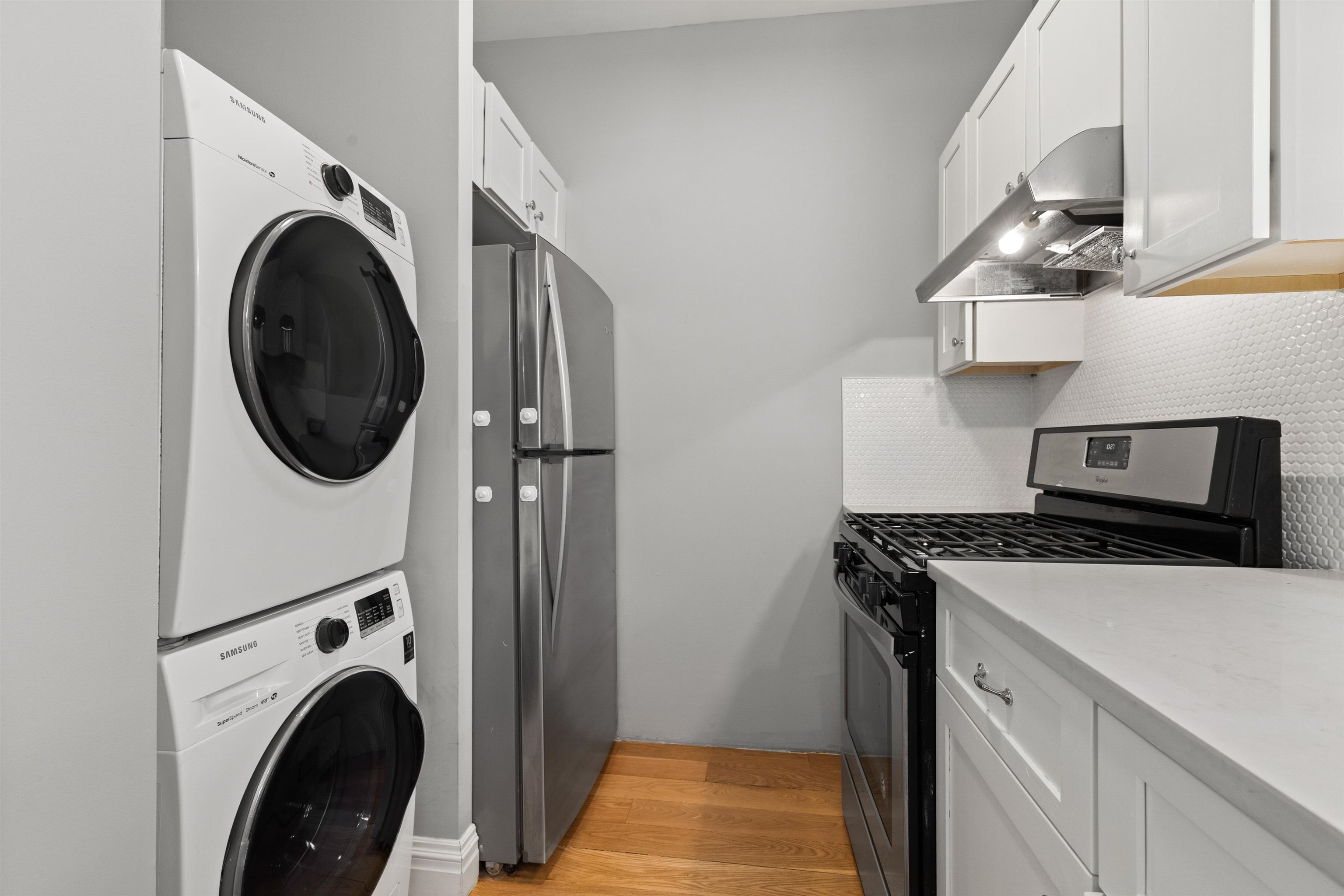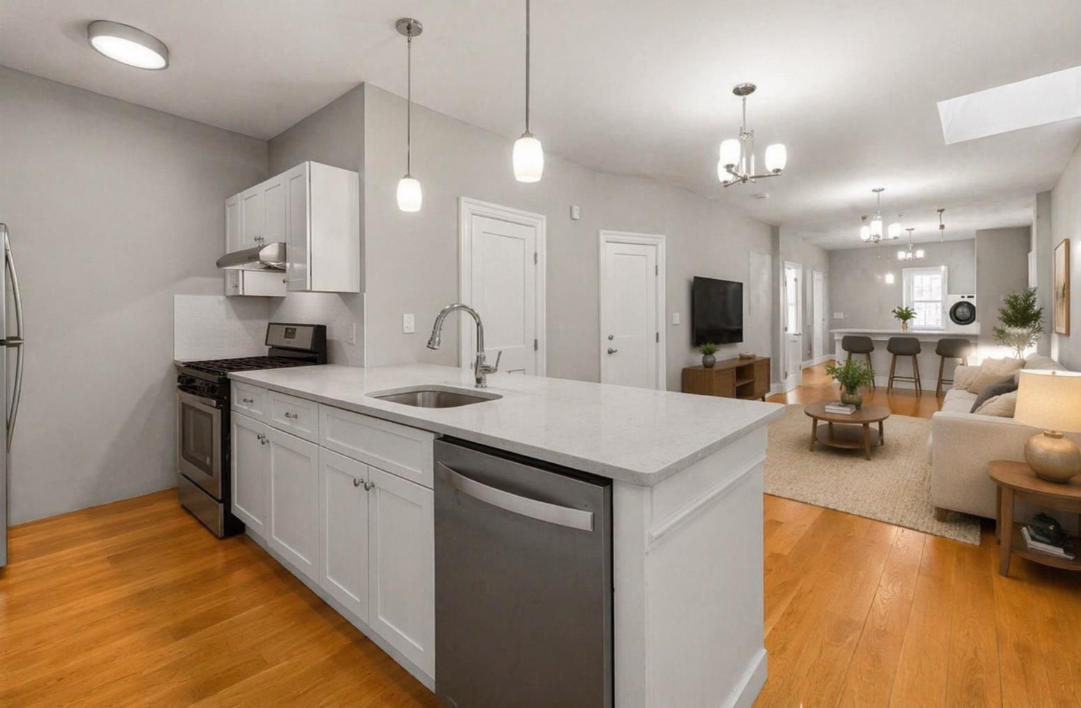 Limited-Time April Concession Available - Ask about current incentives and promotional terms for qualified applicants. Spacious and inviting 2-bedroom apartment offering 950 square feet of comfortable living in the heart of Jersey City Heights. This bright and inviting home features beautiful hardwood floors throughout and abundant natural light, highlighted by a skylight in the living room. The thoughtfully designed layout includes two generously sized bedrooms and a walk-in closet providing excellent storage. The kitchen is equipped with a granite countertop and ample cabinet space, while a brand-new in-unit washer and dryer adds everyday convenience. Ideally situated on a quiet, residential block in the desirable Heights neighborhood, the home is just a few blocks from direct NYC transportation via the 119 bus and close to the vibrant shopping, dining, and café scene along Central Avenue. A rare opportunity to enjoy space, comfort, and convenience in one of Jersey City's most sought-after neighborhoods. These images have been virtually staged for illustrative purposes.