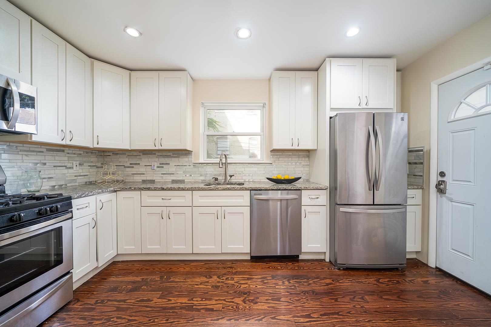 Nestled just off Kennedy Boulevard and only a few blocks from Lincoln Park, 44 Lexington Ave is a spacious, detached single-family home fully renovated in 2018. This bright and inviting residence offers 4 bedrooms, 2 full bathrooms, and the comfort of central A/C throughout. The open-concept kitchen features sleek white cabinetry, stainless steel appliances, and direct access to your private backyard—perfect for creating your own outdoor oasis for entertaining or relaxing (see virtually staged photo). In addition to the generously sized bedrooms, the home includes a versatile bonus space and a finished attic that serves as a lofted third-floor flex area—ideal for a home office, guest suite, or additional bedroom. A full-height basement provides even more opportunity to customize, with one room already framed out—ready for your vision. Commuting is a breeze with NYC-bound bus service just a 3-minute walk away, offering quick and convenient access to Manhattan. Enjoy the best of both worlds with nearby parks, local amenities, and easy city access all at your doorstep.