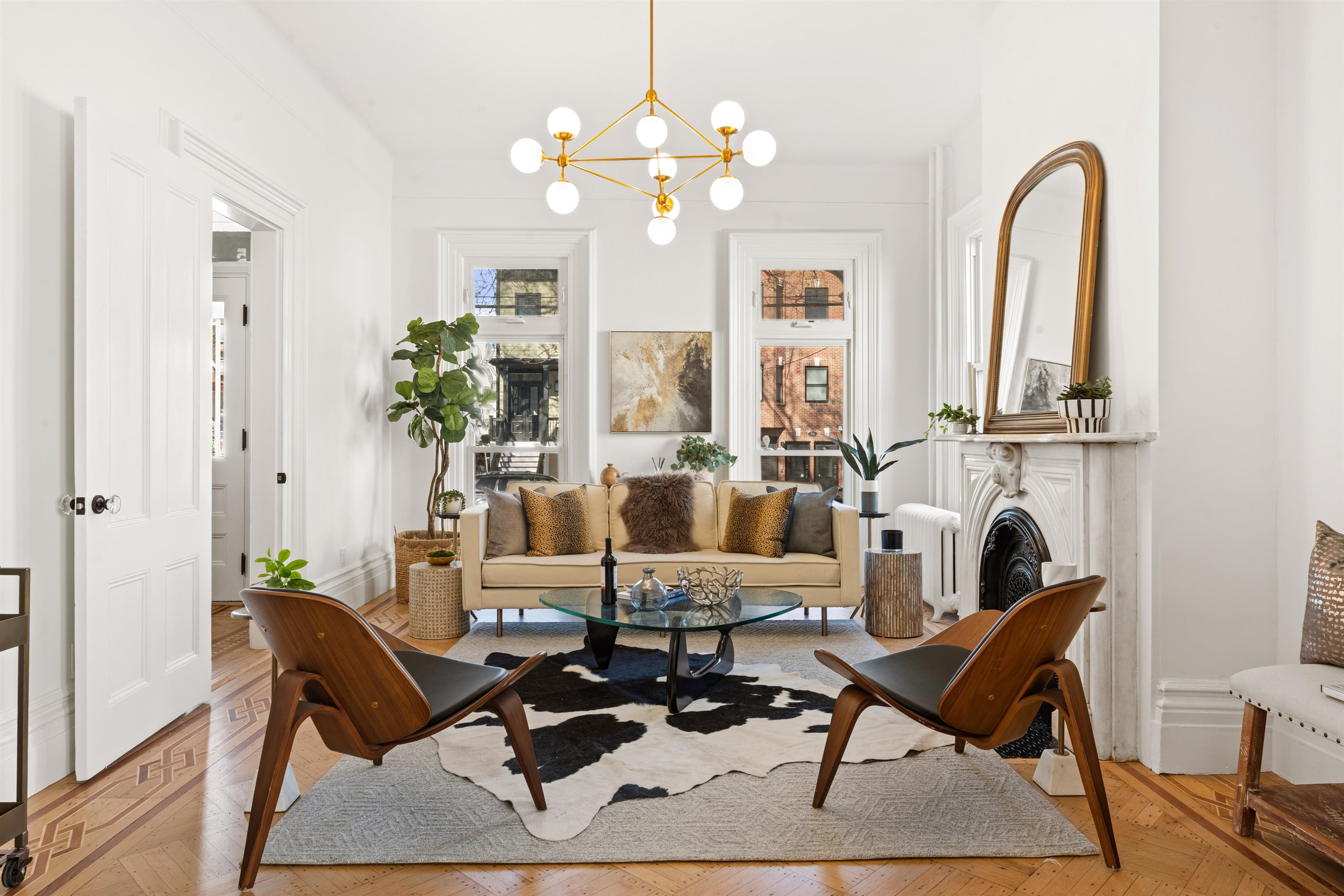 Experience the grandeur of this extremely rare, newly renovated Queen Anne-style Victorian with porch residence situated on an oversized lot, on arguably one of the most picturesque blocks in Jersey City Heights. This turn of century, expansive 7-bedroom, 4.5-bath pre-war masterpiece is filled with original detail while offering modern functionality, exceptional scale and rare parking. From the moment you arrive, original hardwood doors and trim set the tone for a home filled with timeless detail. Inside, you'll find refinished parquet inlay flooring, crown molding, soaring ceiling heights (11' on the main level), and preserved pocket doors that seamlessly connect the living and dining spaces. The gracious living room features a decorative hand-carved marble mantle with oversized windows and a bay alcove in the formal dining room flooding the home with natural light. A Victorian-era Lincrusta chair rail lines the hallway and staircase, further highlighting the home's historic character. The beautifully appointed kitchen offers custom mixed element cabinetry, sleek glossy, sub zero refrigerator, 6 burner wolf stove with vented hood, under counter sharp microwave, Viking dishwasher, Sharp microwave, and wine refrigerator with adjacent sunroom ideal. The second level features a spacious primary suite with abundant closet space and a luxurious en-suite bath complete with a double vanity, Kohler recessed medicine cabinets, Free standing soaking tub, and separate glass enclosed stand-up shower. Completing the floor are 2 bedrooms and a full bathroom appointed with a luxurious vanity and high end tile package and fixtures. The third level offers three additional bedrooms, a dedicated laundry room featuring an LG washer and dryer, marble countertops, and a Blanco sink, full bathroom with NYC skyline views-perfect for extended living or flexible use. The fully finished ground floor provides a versatile 1-bedroom, 1-bath layout, complete with a Bosch dishwasher and wine refrigerator, and hardwood flooring throughout. The full bathroom includes Kohler fixtures, making this an ideal guest suite, recreation space, or extended living area. Outside, a professionally landscaped fenced yard offers a rare 2-car garage, and driveway parking for 4-5 additional vehicles. Located just three blocks from Pershing Field, near Central Avenue shopping and dining, and moments from the 123 and 119 bus lines providing a quick commute to Manhattan- this is truly an opportunity to own a piece of Jersey City history with modern comfort, versatility and income potential.