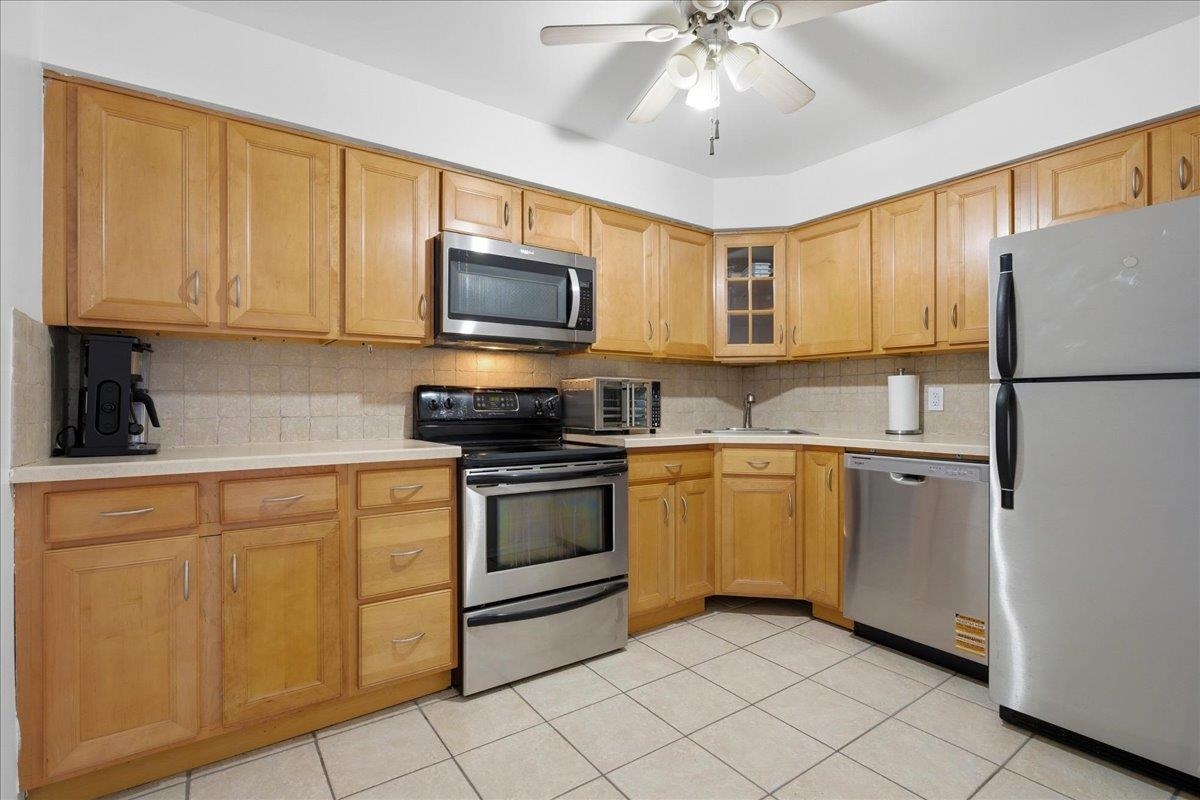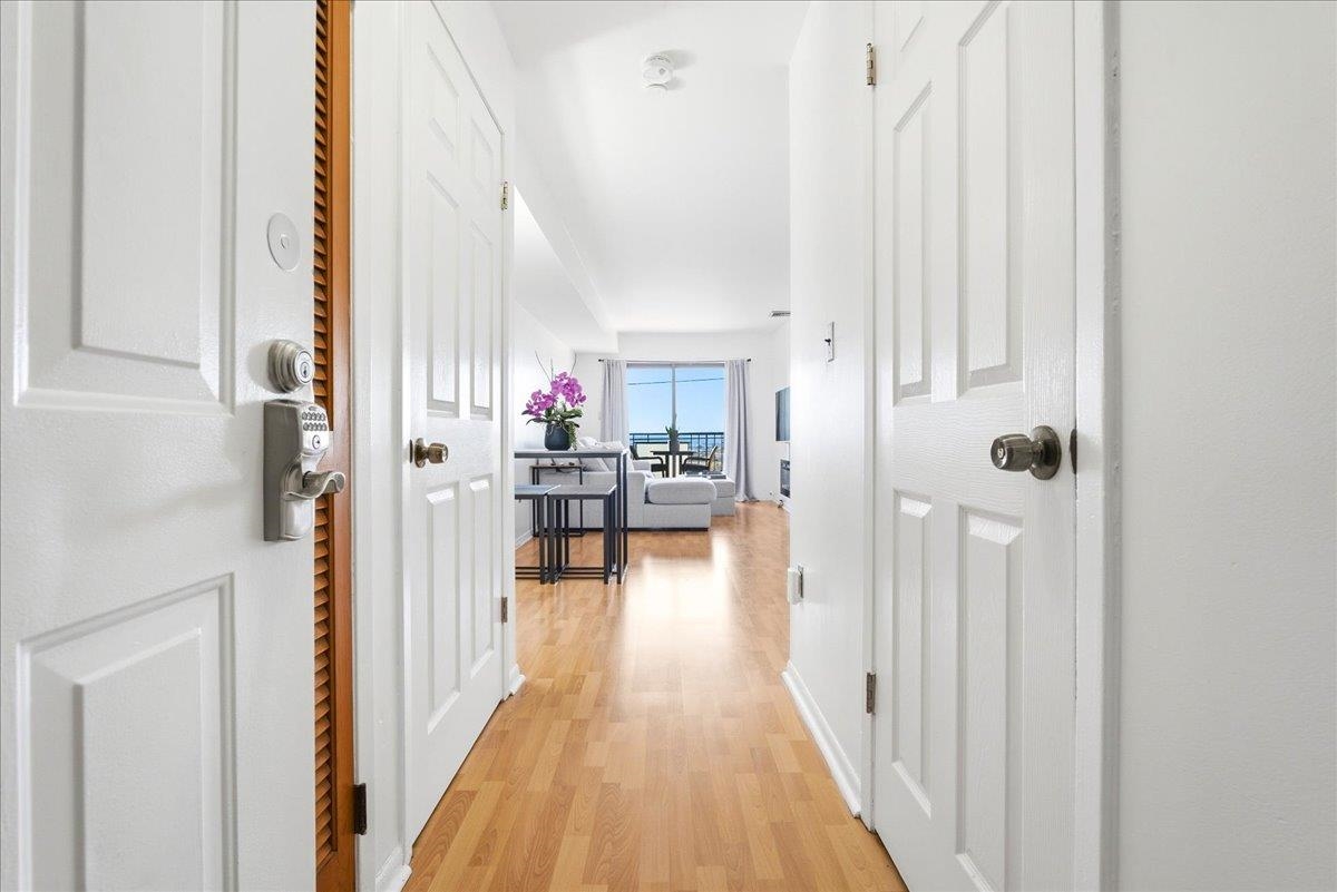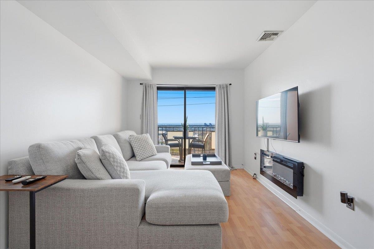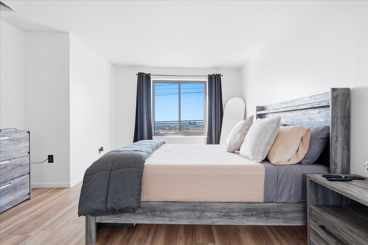 Beautiful, modern 1-bedroom, 1-bathroom condo offering comfort, convenience, and style. This inviting home features a welcoming foyer, a cozy dining area adjacent to a bright living room, and sliding glass doors leading to a private balcony—perfect for relaxing or entertaining. The spacious eat-in kitchen is equipped with warm wood cabinetry and stainless steel appliances. The full bathroom includes a tub and single vanity. Located on the second floor of an elevator building, this unit also offers access to a newly updated common washer and dryer. HOA includes water, sewer, and garage 1 spot parking for added value and ease. Ideally situated for commuters with convenient access to NYC and Jersey City. Don’t miss this opportunity—this one won’t last!
