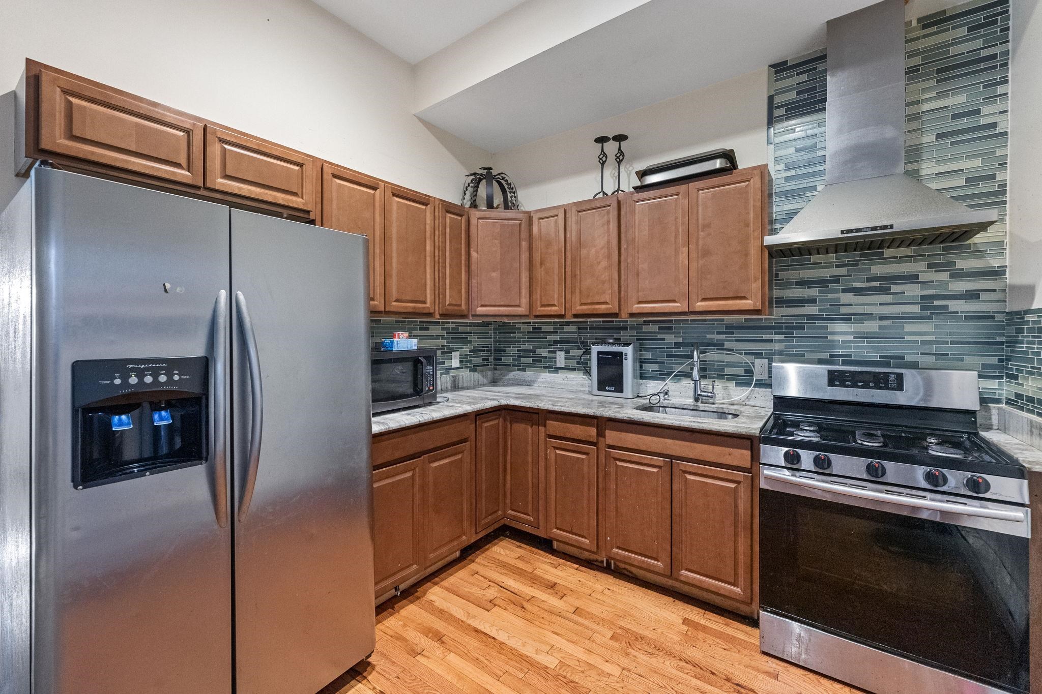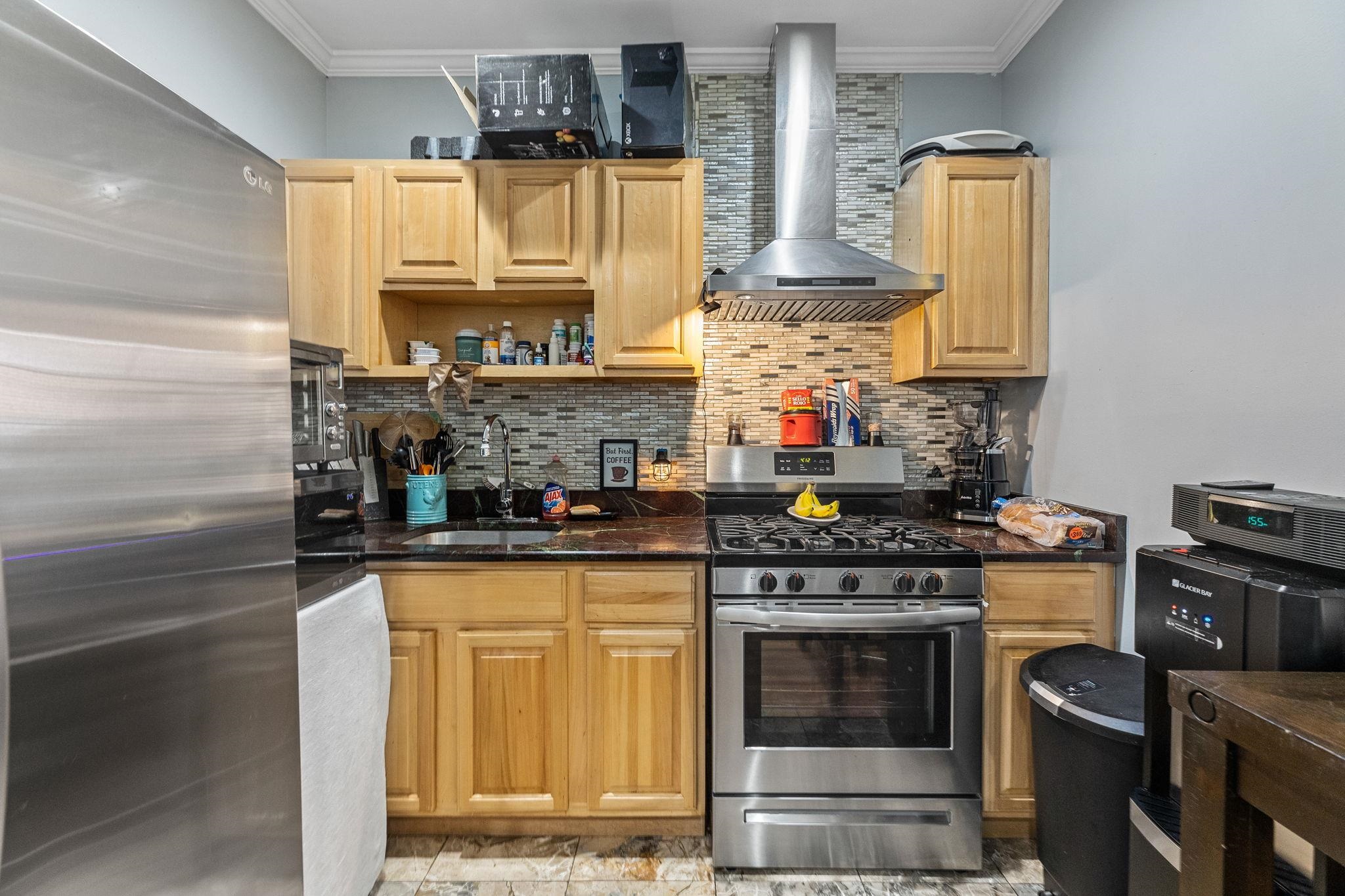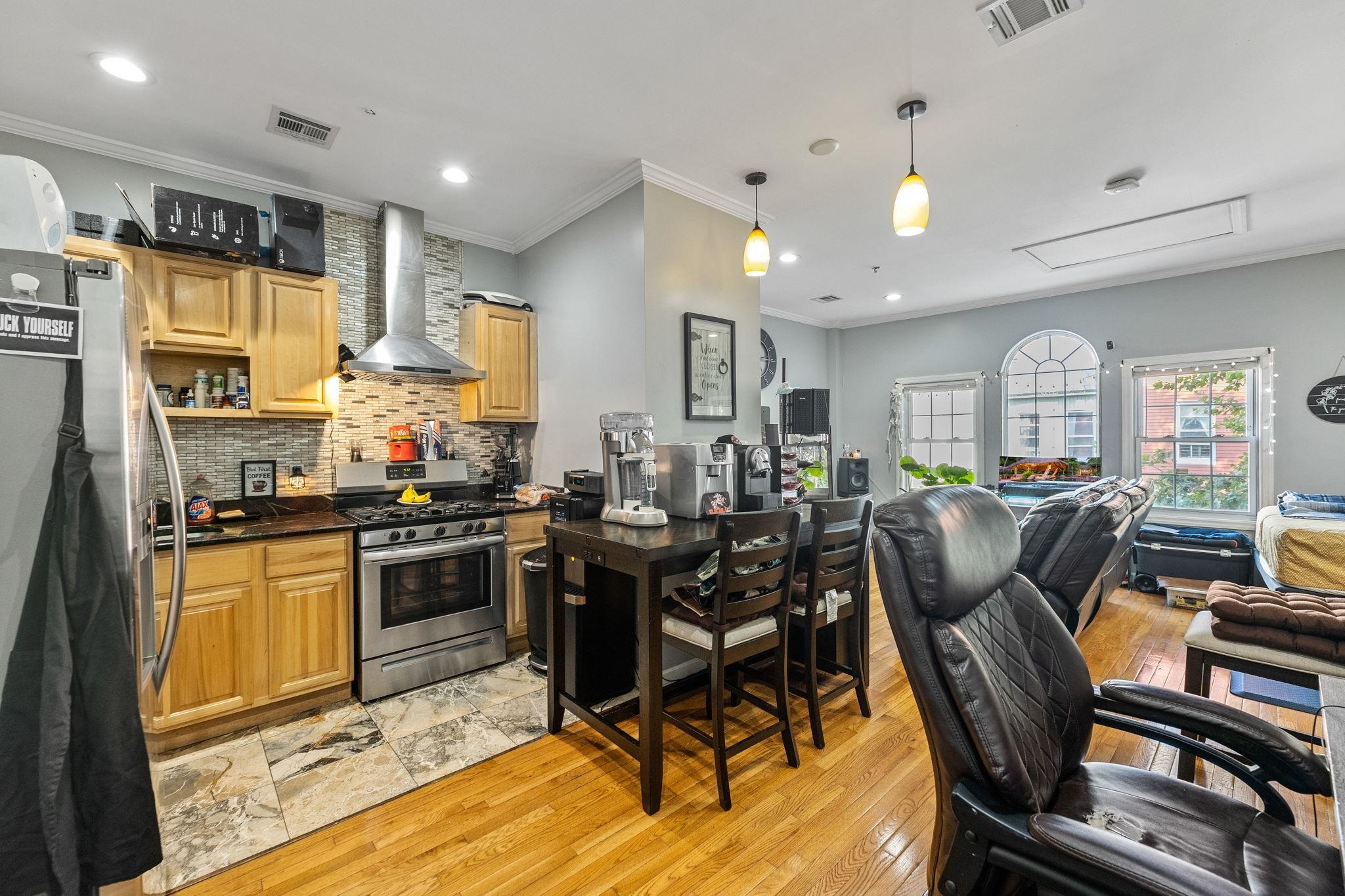 A rare Union City mixed-use asset positioned right on the Bergenline Avenue commercial district—offering built-in visibility, strong demand, and 15-minute NYC access via public transportation through the Lincoln Tunnel. This is the kind of location investors and end users chase: high foot traffic, everyday convenience, and effortless connectivity. The property features a street-level commercial unit plus two residential apartments above, wrapped in an all-brick facade and enhanced with quadruple sheetrock for added sound separation. The main residence is a standout: a spacious 3-bedroom, 2-bath home spanning approximately 1,700 square feet, renovated in 2010 with stainless steel appliances and an easy, comfortable flow. The primary bath delivers a true spa feel with a stand-up shower, jetted jacuzzi tub, and an additional tub/shower. A separate east-facing studio with 1 full bath adds flexibility—ideal for supplemental rental income, extended guests, or a private workspace. Three separate kitchens support the building’s mixed-use layout, while a fully finished basement adds valuable bonus space and functionality. With separate utilities and a prime Bergenline address, this property offers multiple paths—investment, live-and-earn, or multi-stream income—in one of Hudson County’s most connected corridors.