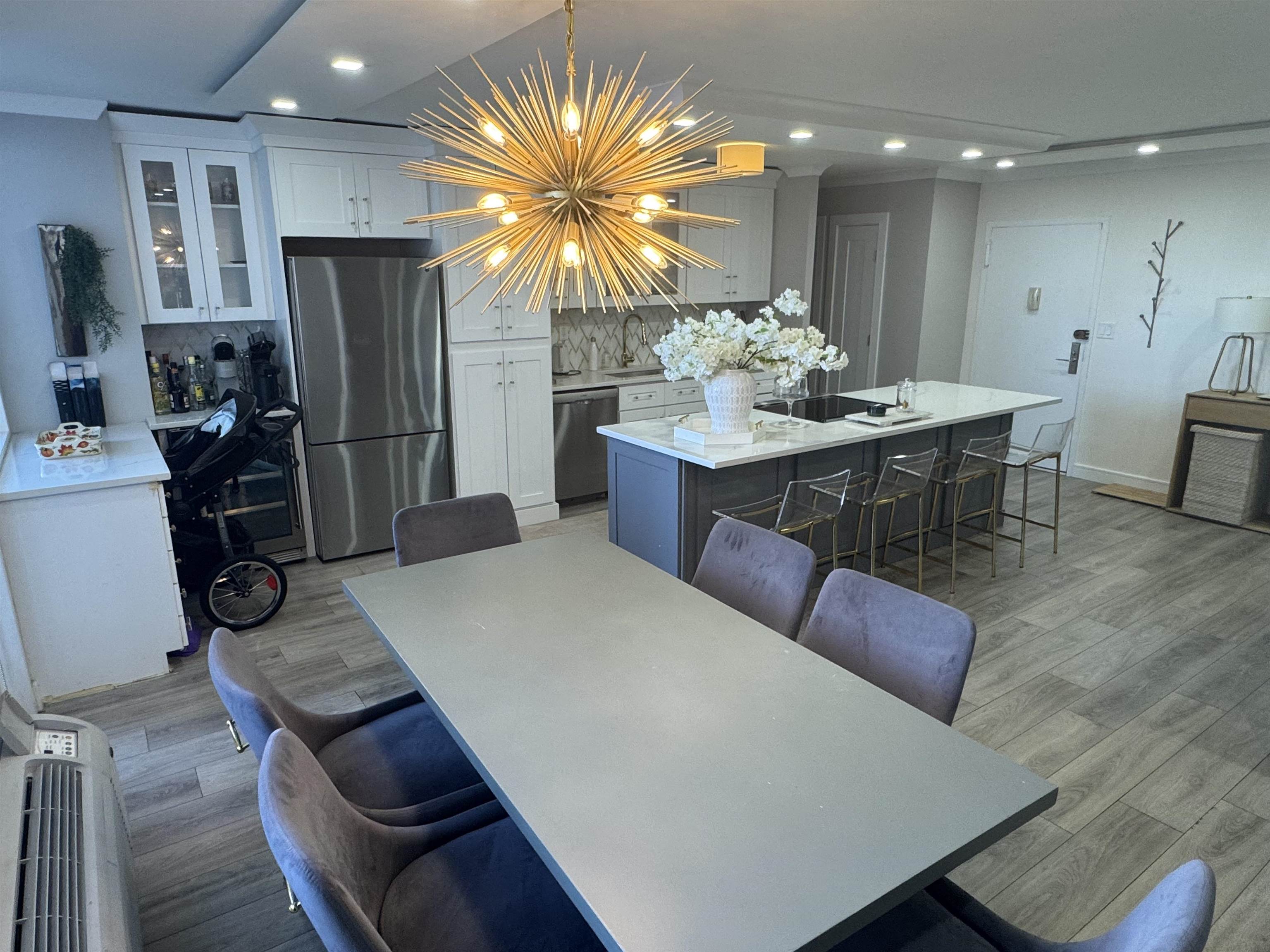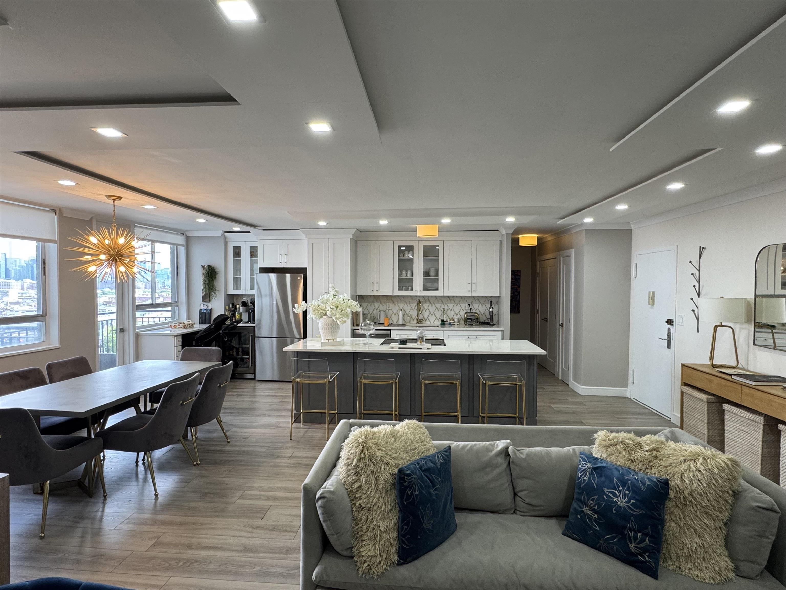 Look no more, priced to sell is this stunning renovated 2-bedroom, 2-bathroom co-op that offers a perfect blend of comfort and convenience.This beautiful unit overlooks the pool and tranquil garden and features spectacular views of the NYC skyline. The Doric is a full-service residence with a 24-hour concierge, providing both security and ease of living. Residents can enjoy a variety of on-site amenities, including a daycare, deli, dry cleaners, a community room, and dedicated office workspace.The location is ideal for commuters, offering a free morning shuttle to the PATH in Hoboken, Bus stop just steps from door with a quick 10-minute commute into New York City. Additionally, the building is pet-friendly, with a dog park conveniently located right across the street.The monthly maintenance fee is all-inclusive, covering taxes, heat, hot water, and electricity. Easy to show make your appointment today. Open House Sundays 1-3.