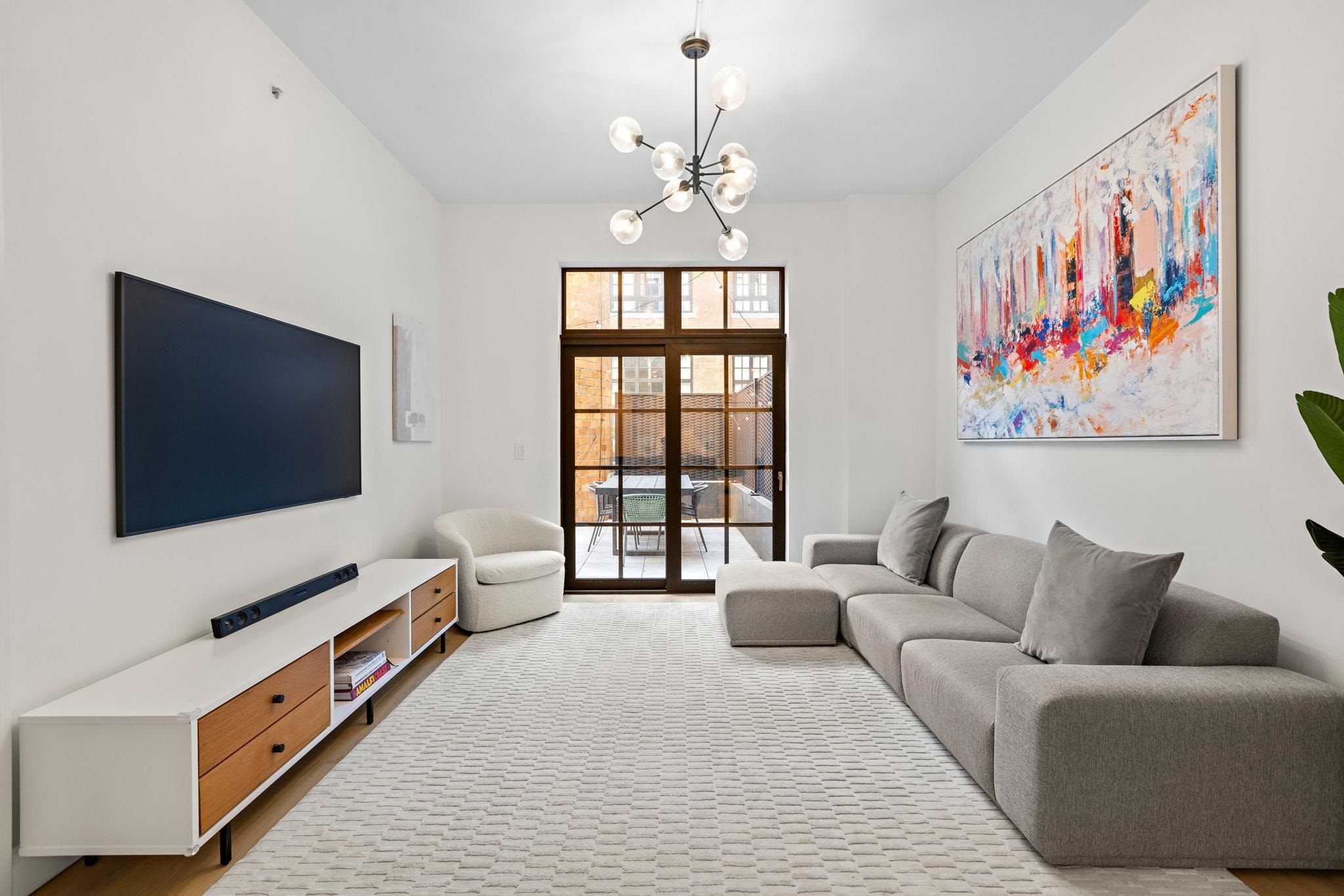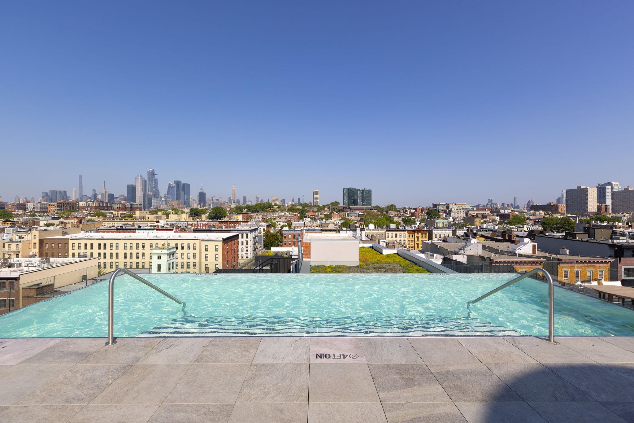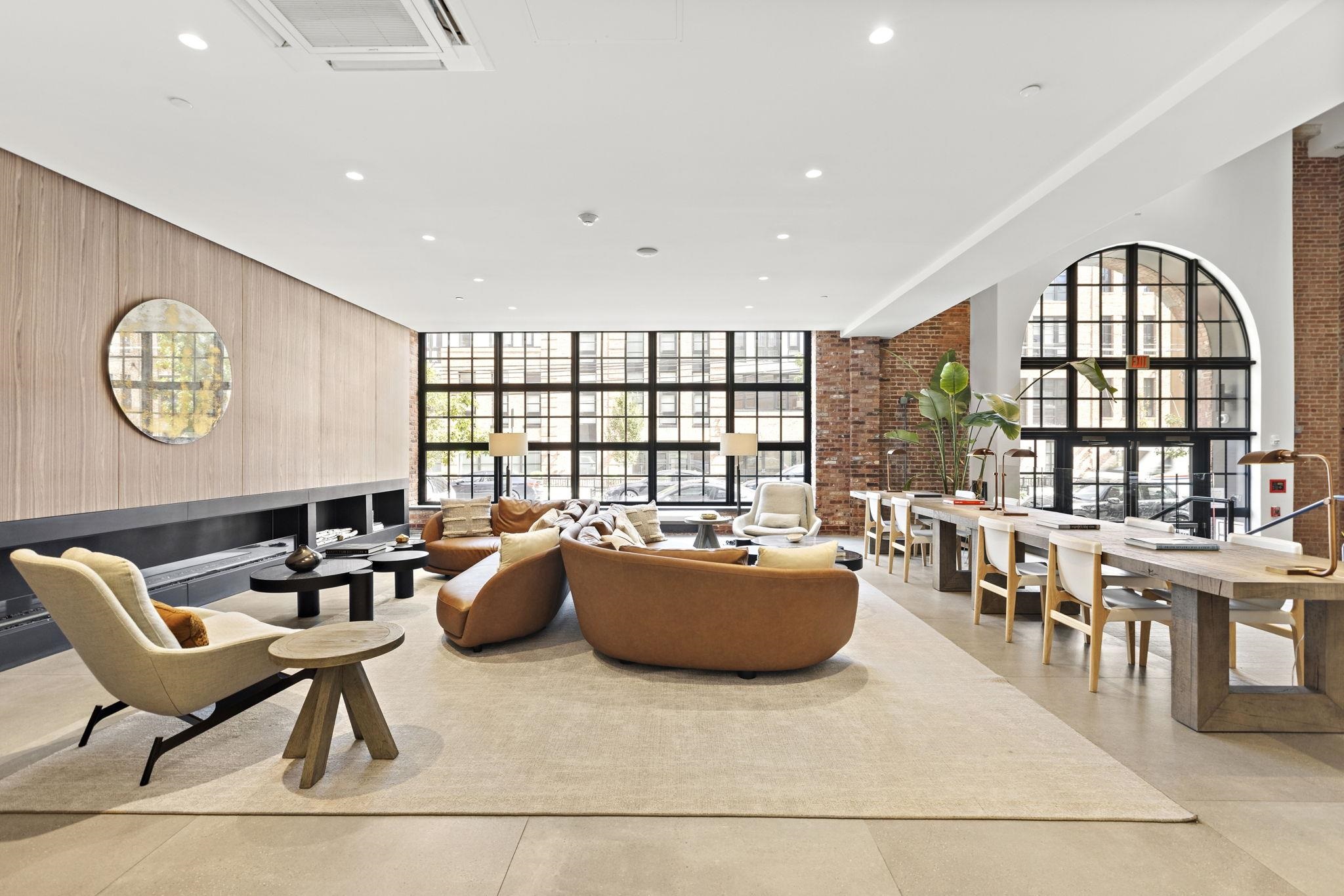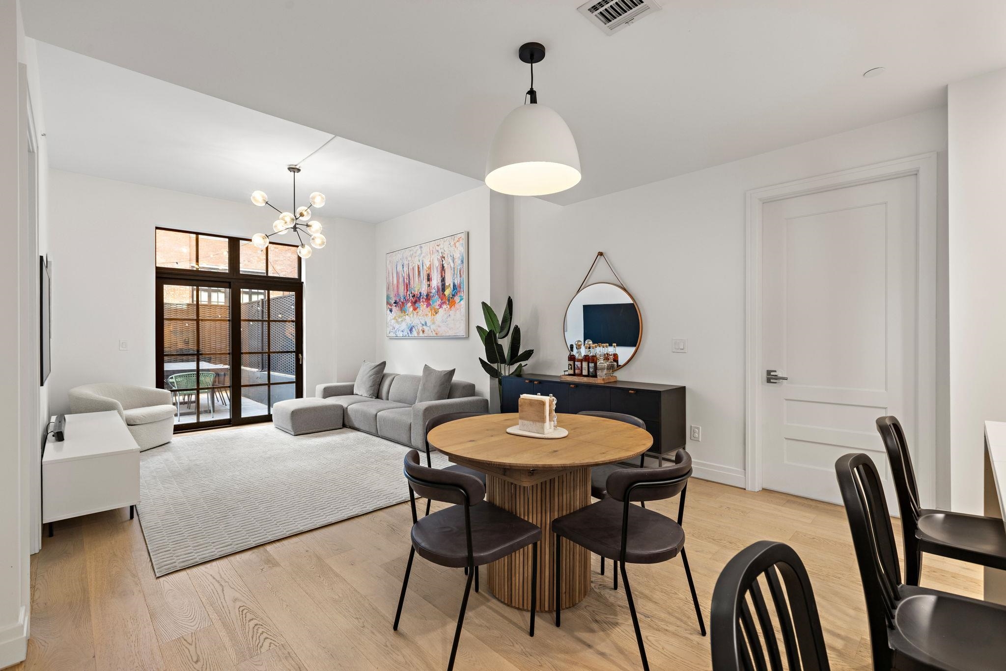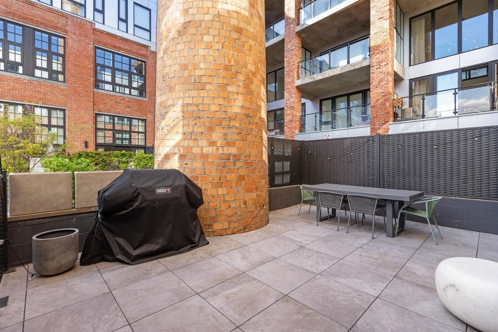 Welcome to 720 Clinton St #205 at Wonder Lofts, a LEED Gold-certified factory conversion set within the historic Wonder Bread factory in Hoboken. This west-facing 2BR/2BA home offers approximately 1,223 sq ft with a well-designed layout and excellent natural light. The open living and dining area features oversized industrial-style windows and wide-plank hardwood flooring. The kitchen is thoughtfully appointed with custom cabinetry, a waterfall-edge quartz island, and a premium appliance package including a gas range and Sub-Zero refrigerator. The living area opens directly to a private terrace, creating a seamless indoor-outdoor flow ideal for everyday use or entertaining. The primary suite includes generous closet space and an en-suite bath. The second bedroom is well-proportioned and versatile. Custom California Closets throughout, along with blackout shades in both bedrooms, add comfort and functionality. A dedicated laundry room with a sink provides additional convenience. One deeded garage parking space is included. Wonder Lofts offers 24/7 concierge service, a rooftop with an infinity pool and NYC skyline views, a fitness center, a resident lounge, a children's playroom, movie theater, yoga studio, a pet spa and more. Conveniently located near shops, parks, and restaurants, with NJ Transit bus service to Port Authority just steps from the building, along with access to the Light Rail, PATH, and Ferry.