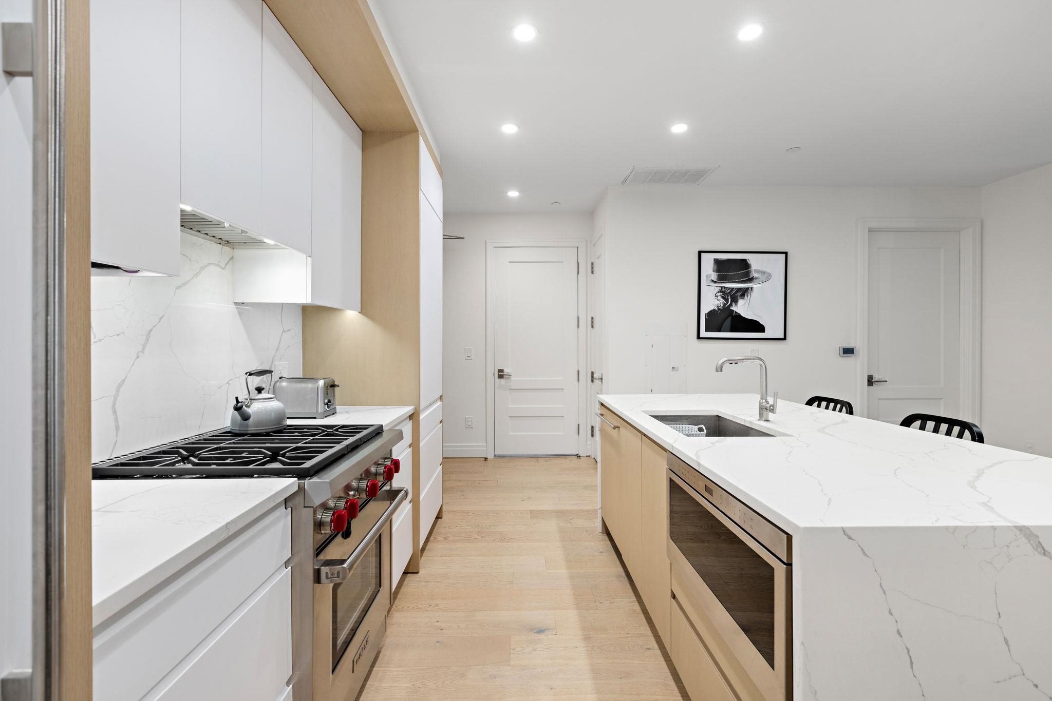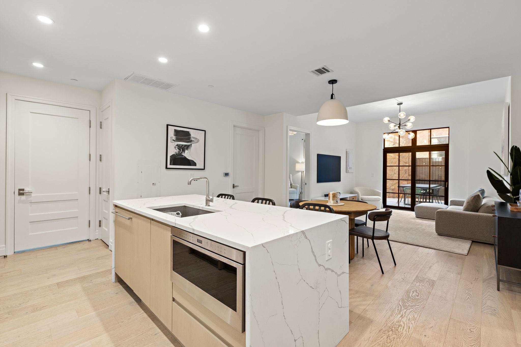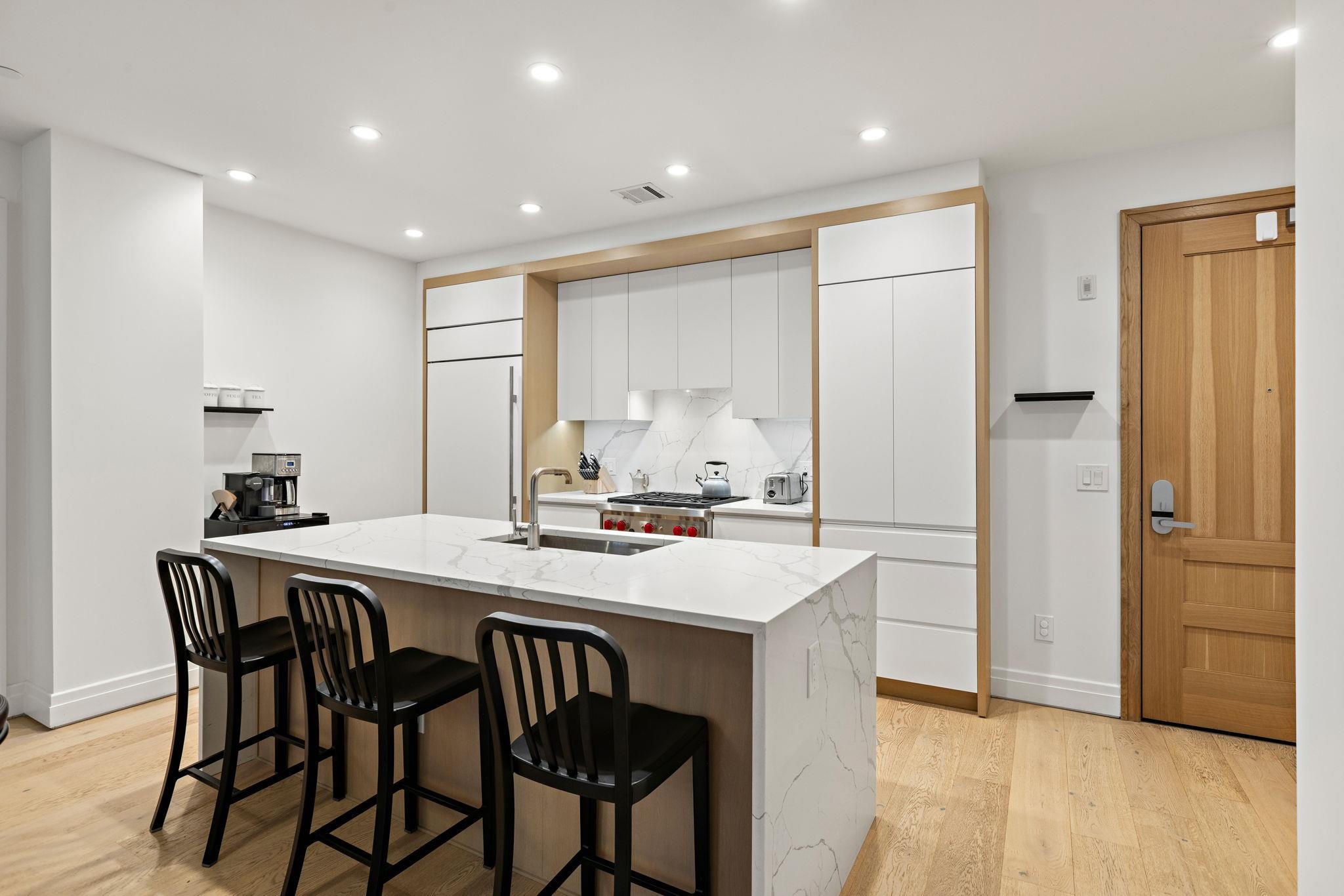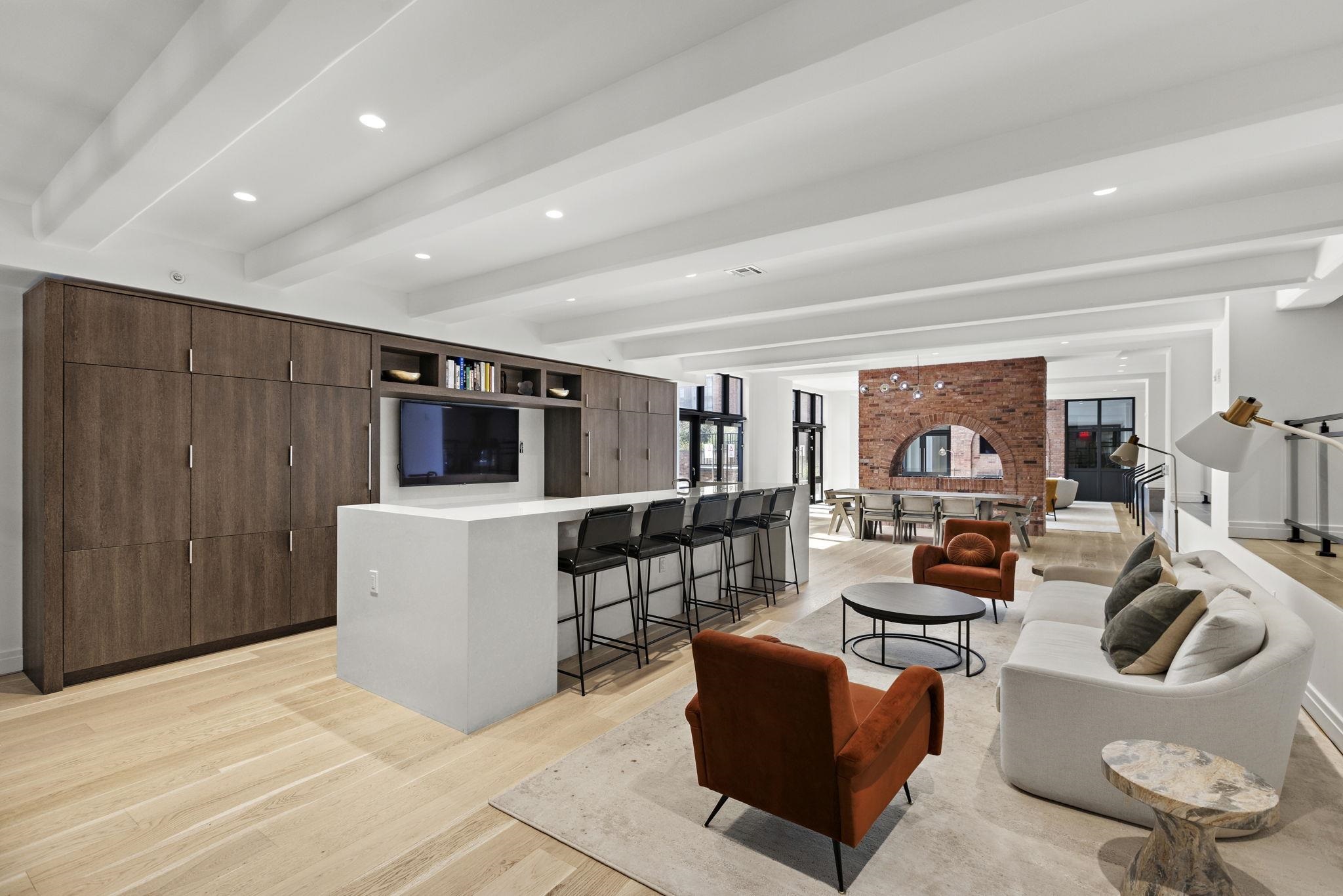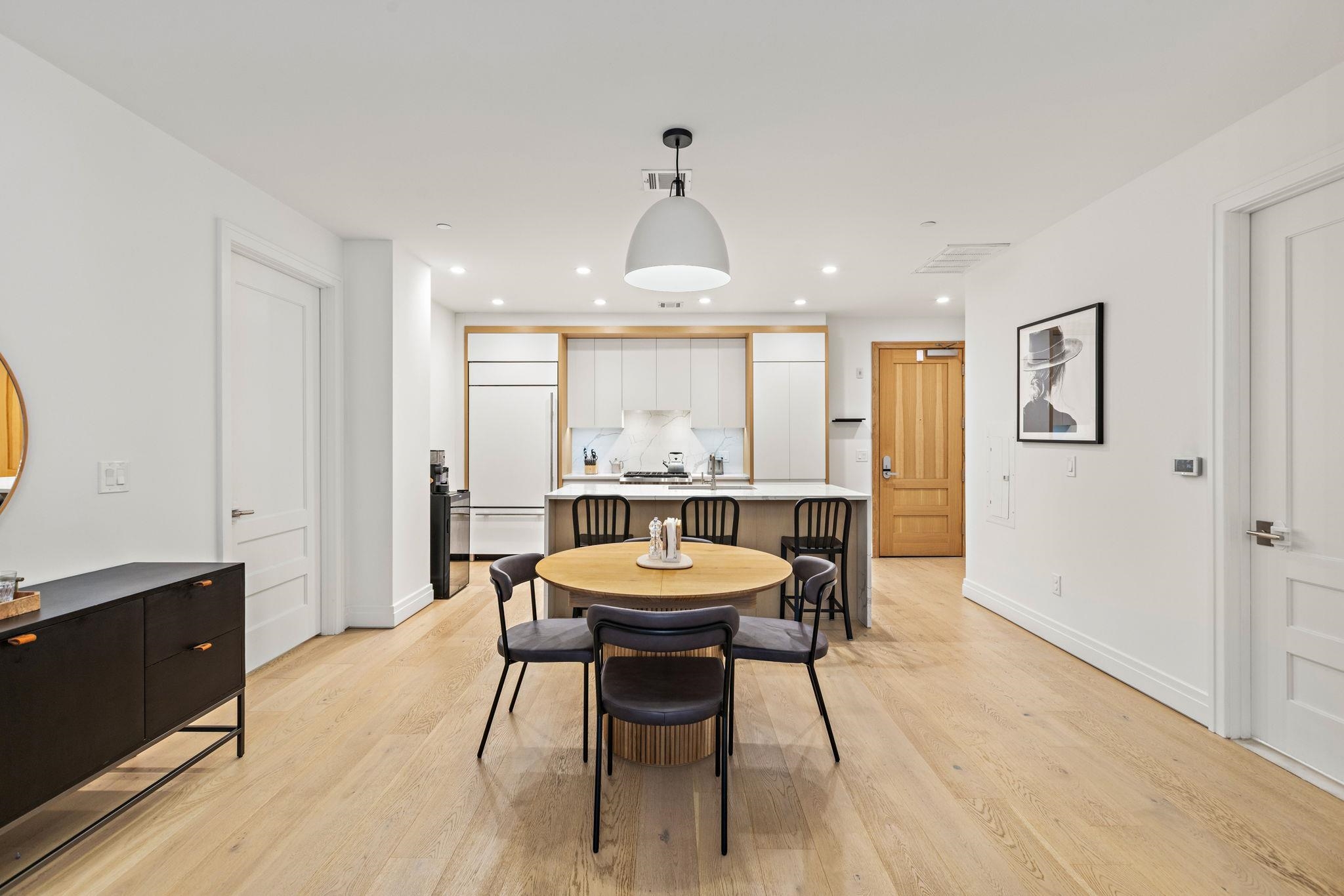 Welcome to 720 Clinton St #205 at Wonder Lofts, a LEED Gold-certified factory conversion set within the historic Wonder Bread factory in Hoboken. This west-facing 2BR/2BA home offers approximately 1,223 sq ft with a well-designed layout and excellent natural light. The open living and dining area features oversized industrial-style windows and wide-plank hardwood flooring. The kitchen is thoughtfully appointed with custom cabinetry, a waterfall-edge quartz island, and a premium appliance package including a gas range and Sub-Zero refrigerator. The living area opens directly to a private terrace, creating a seamless indoor-outdoor flow ideal for everyday use or entertaining. The primary suite includes generous closet space and an en-suite bath. The second bedroom is well-proportioned and versatile. Custom California Closets throughout, along with blackout shades in both bedrooms, add comfort and functionality. A dedicated laundry room with a sink provides additional convenience. One deeded garage parking space is included. Wonder Lofts offers 24/7 concierge service, a rooftop with an infinity pool and NYC skyline views, a fitness center, a resident lounge, a children's playroom, movie theater, yoga studio, a pet spa and more. Conveniently located near shops, parks, and restaurants, with NJ Transit bus service to Port Authority just steps from the building, along with access to the Light Rail, PATH, and Ferry.