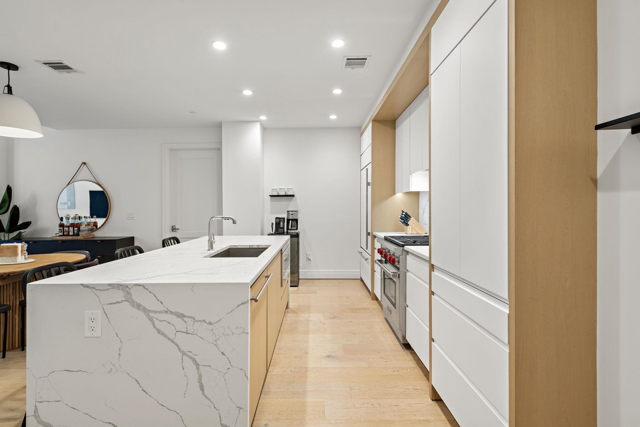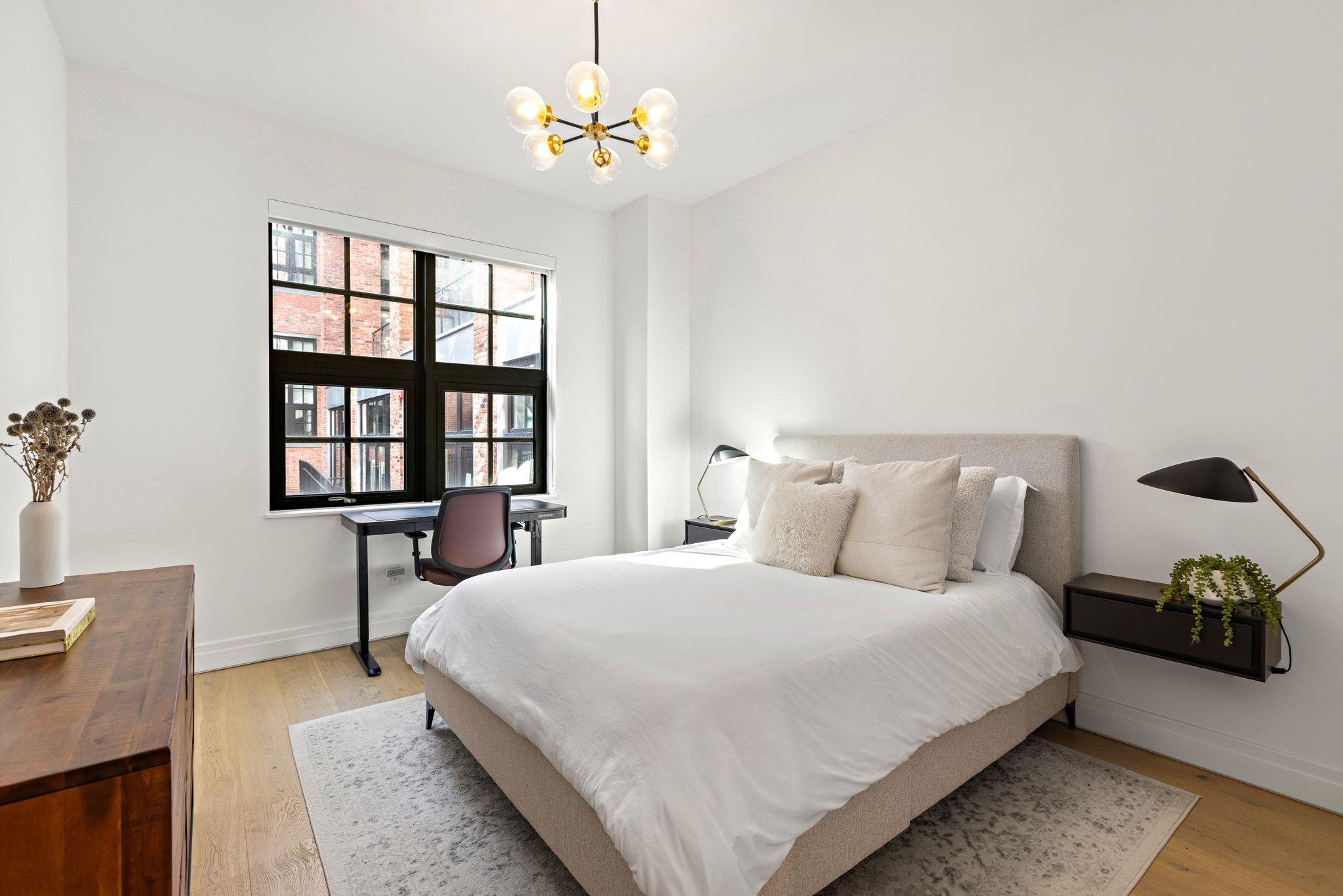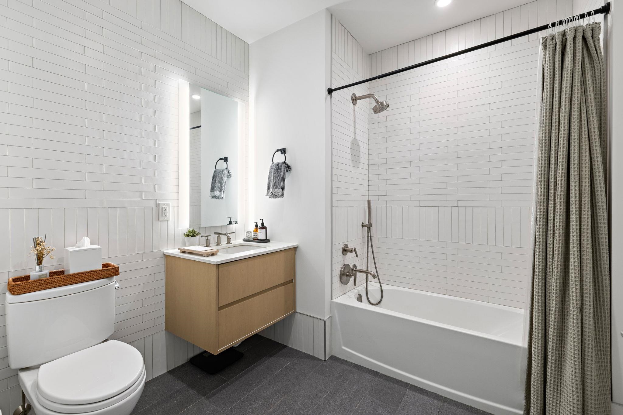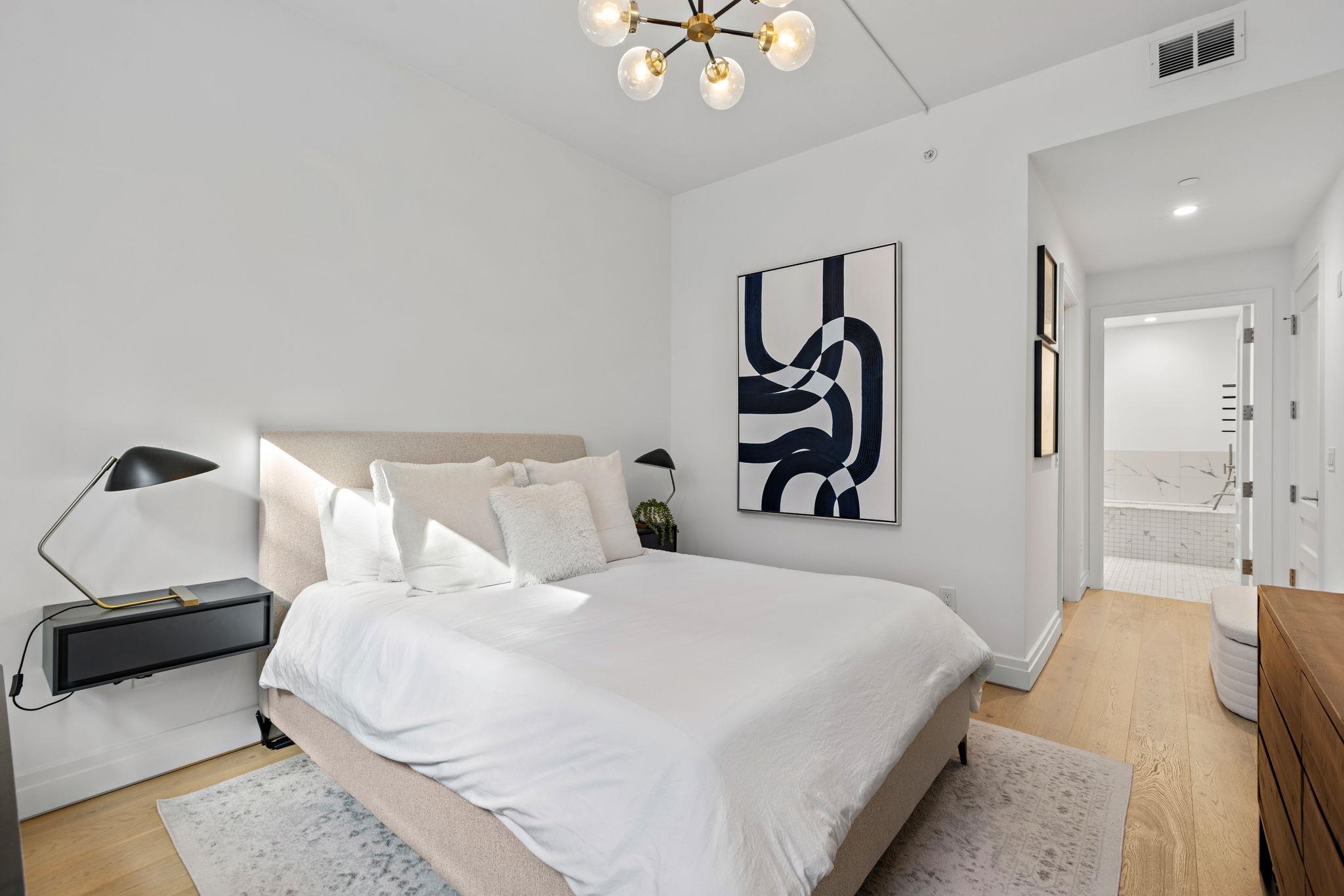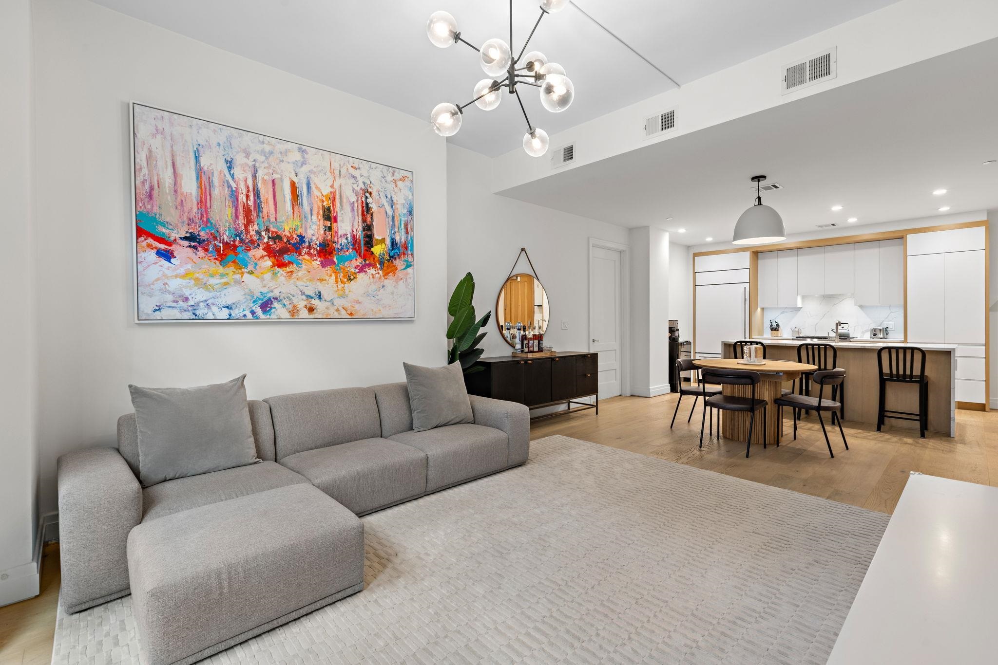 Welcome to 720 Clinton St #205 at Wonder Lofts, a LEED Gold-certified factory conversion set within the historic Wonder Bread factory in Hoboken. This west-facing 2BR/2BA home offers approximately 1,223 sq ft with a well-designed layout and excellent natural light. The open living and dining area features oversized industrial-style windows and wide-plank hardwood flooring. The kitchen is thoughtfully appointed with custom cabinetry, a waterfall-edge quartz island, and a premium appliance package including a gas range and Sub-Zero refrigerator. The living area opens directly to a private terrace, creating a seamless indoor-outdoor flow ideal for everyday use or entertaining. The primary suite includes generous closet space and an en-suite bath. The second bedroom is well-proportioned and versatile. Custom California Closets throughout, along with blackout shades in both bedrooms, add comfort and functionality. A dedicated laundry room with a sink provides additional convenience. One deeded garage parking space is included. Wonder Lofts offers 24/7 concierge service, a rooftop with an infinity pool and NYC skyline views, a fitness center, a resident lounge, a children's playroom, movie theater, yoga studio, a pet spa and more. Conveniently located near shops, parks, and restaurants, with NJ Transit bus service to Port Authority just steps from the building, along with access to the Light Rail, PATH, and Ferry.
