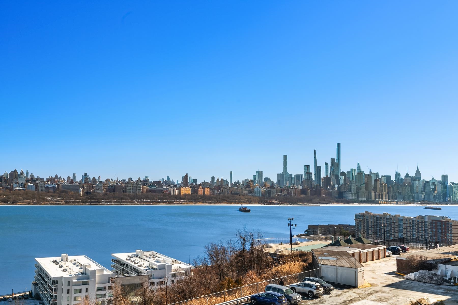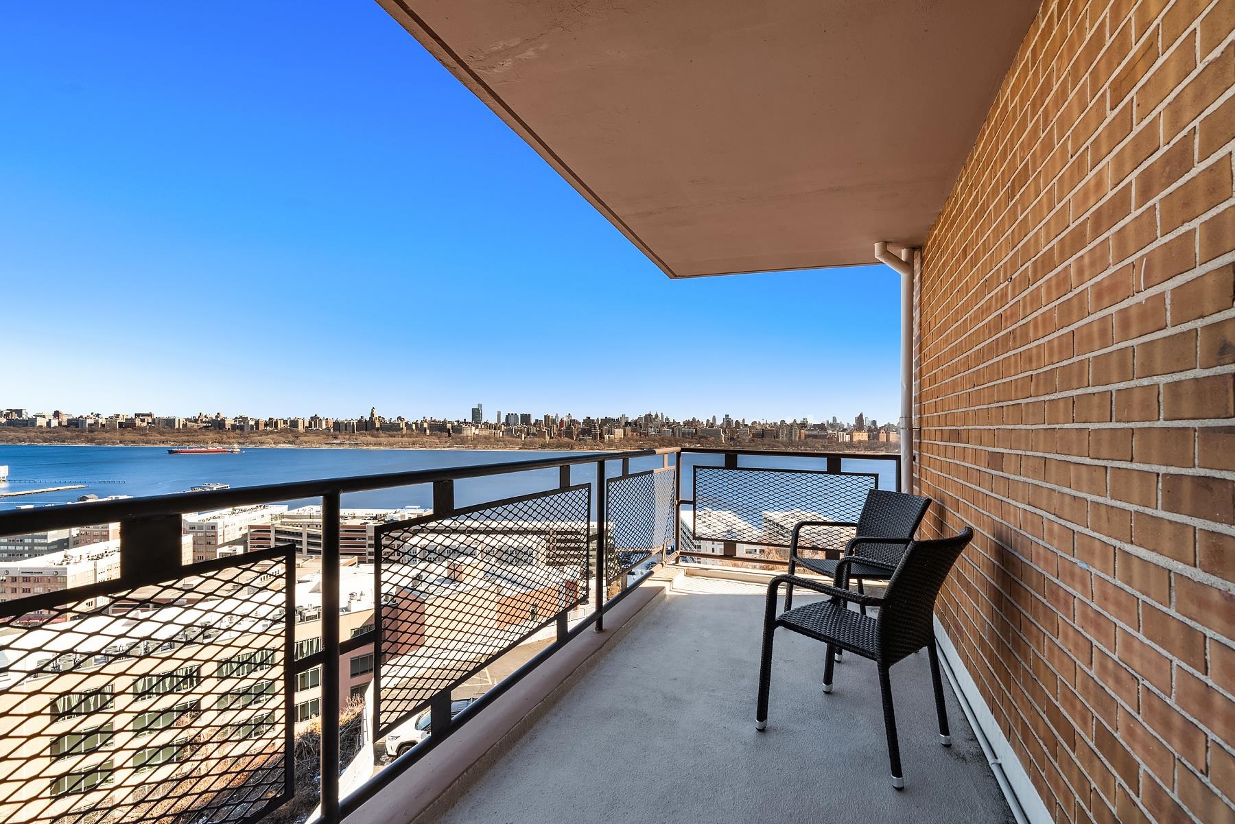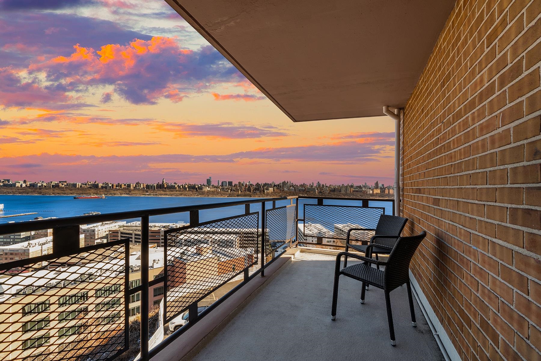 Balcony Bliss Beauty over the River with Sparkling NYC skyline views are yours in this coveted corner 2 Bedroom 2 Bath condo. Step into luxury living with your own Private Balcony. Soak up sensational NYC skyline views, plant a garden, dine al fresco or simply relax. This move-in-ready, rarely avail. corner layout boasts an abundance of New windows & brilliant light from 2 exposures. Offering 1200+- sq. ft of living space with an Elegant vibe. You'll experience shimmering views of countless Iconic Skyscrapers from Empire State building to Hudson River. Both cooking & hosting are a pleasure in the windowed open kitchen equipped with newer SS appliances, plenty of prep counter space & bistro bar for guests to gather. The serene & spacious primary Bedroom features exciting Iconic NYC Views, a walk-in-closet & en suite luxury marble full bath w/ large shower. The East facing 2nd guest bedroom is generously sized to accommodate a workspace & a wall of closets. Across the hall find the 2nd marble full bath. Notable upgrades: Newer Thermal windows, 3 new PTAC heating/cooling units, custom designer solar shades. HOA includes: All utilities, heat, electric, AC, Water, 1 Pking space. Common laundry in lobby with new machines. Discover the Park River Towers condo building; Live in super, maintenance! Seller paid off the capital improvement assessment, contact me for details! No pets are permitted! Only verified SVC/ES animals w/ docs. A picturesque Parkside location adjacent to Hudson Cty "James Braddock" 167 acre Park, 45 sport facilities; 21 lighted Tennis+Pickle ball courts, Lake et al. Hassle free commuter options to NYC; NJ transit Bus are right outside your door. Don't Miss Out!