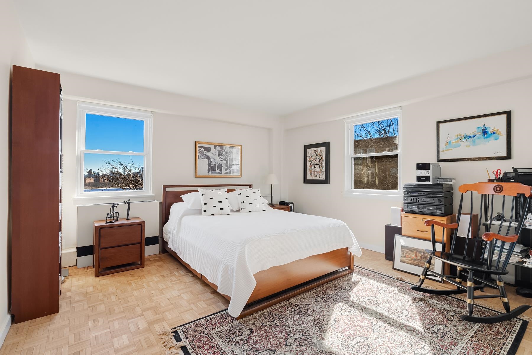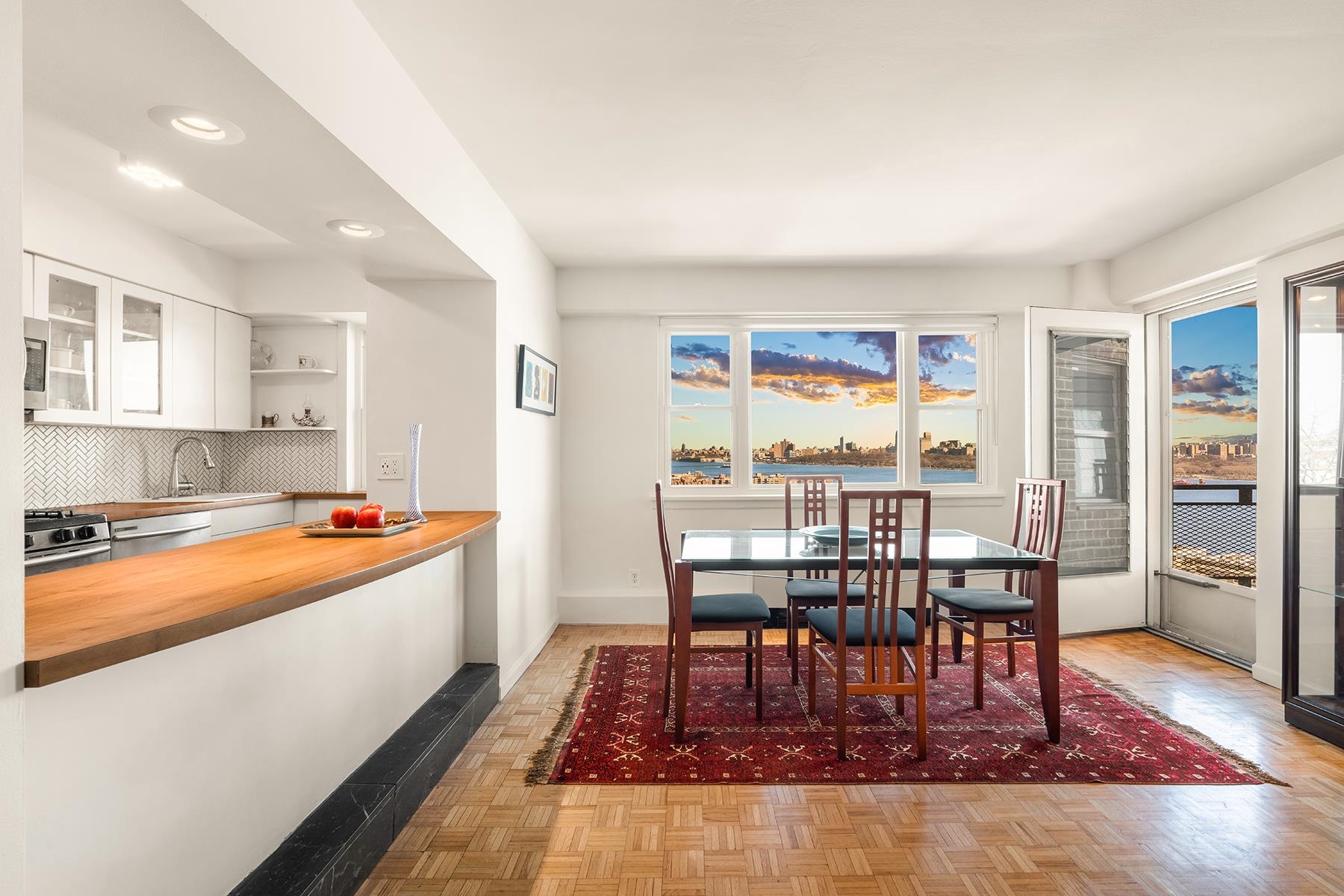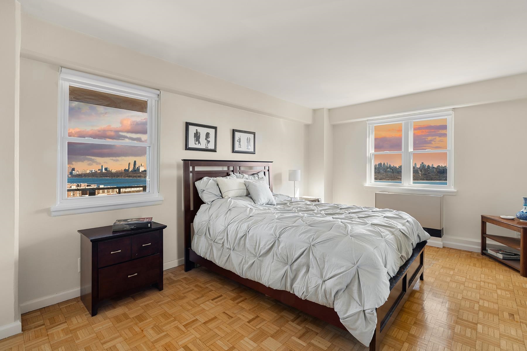 Balcony Bliss Beauty over the River with Sparkling NYC skyline views are yours in this coveted corner 2 Bedroom 2 Bath condo. Step into luxury living with your own Private Balcony. Soak up sensational NYC skyline views, plant a garden, dine al fresco or simply relax. This move-in-ready, rarely avail. corner layout boasts an abundance of New windows & brilliant light from 2 exposures. Offering 1200+- sq. ft of living space with an Elegant vibe. You'll experience shimmering views of countless Iconic Skyscrapers from Empire State building to Hudson River. Both cooking & hosting are a pleasure in the windowed open kitchen equipped with newer SS appliances, plenty of prep counter space & bistro bar for guests to gather. The serene & spacious primary Bedroom features exciting Iconic NYC Views, a walk-in-closet & en suite luxury marble full bath w/ large shower. The East facing 2nd guest bedroom is generously sized to accommodate a workspace & a wall of closets. Across the hall find the 2nd marble full bath. Notable upgrades: Newer Thermal windows, 3 new PTAC heating/cooling units, custom designer solar shades. HOA includes: All utilities, heat, electric, AC, Water, 1 Pking space. Common laundry in lobby with new machines. Discover the Park River Towers condo building; Live in super, maintenance! Seller paid off the capital improvement assessment, contact me for details! No pets are permitted! Only verified SVC/ES animals w/ docs. A picturesque Parkside location adjacent to Hudson Cty "James Braddock" 167 acre Park, 45 sport facilities; 21 lighted Tennis+Pickle ball courts, Lake et al. Hassle free commuter options to NYC; NJ transit Bus are right outside your door. Don't Miss Out!