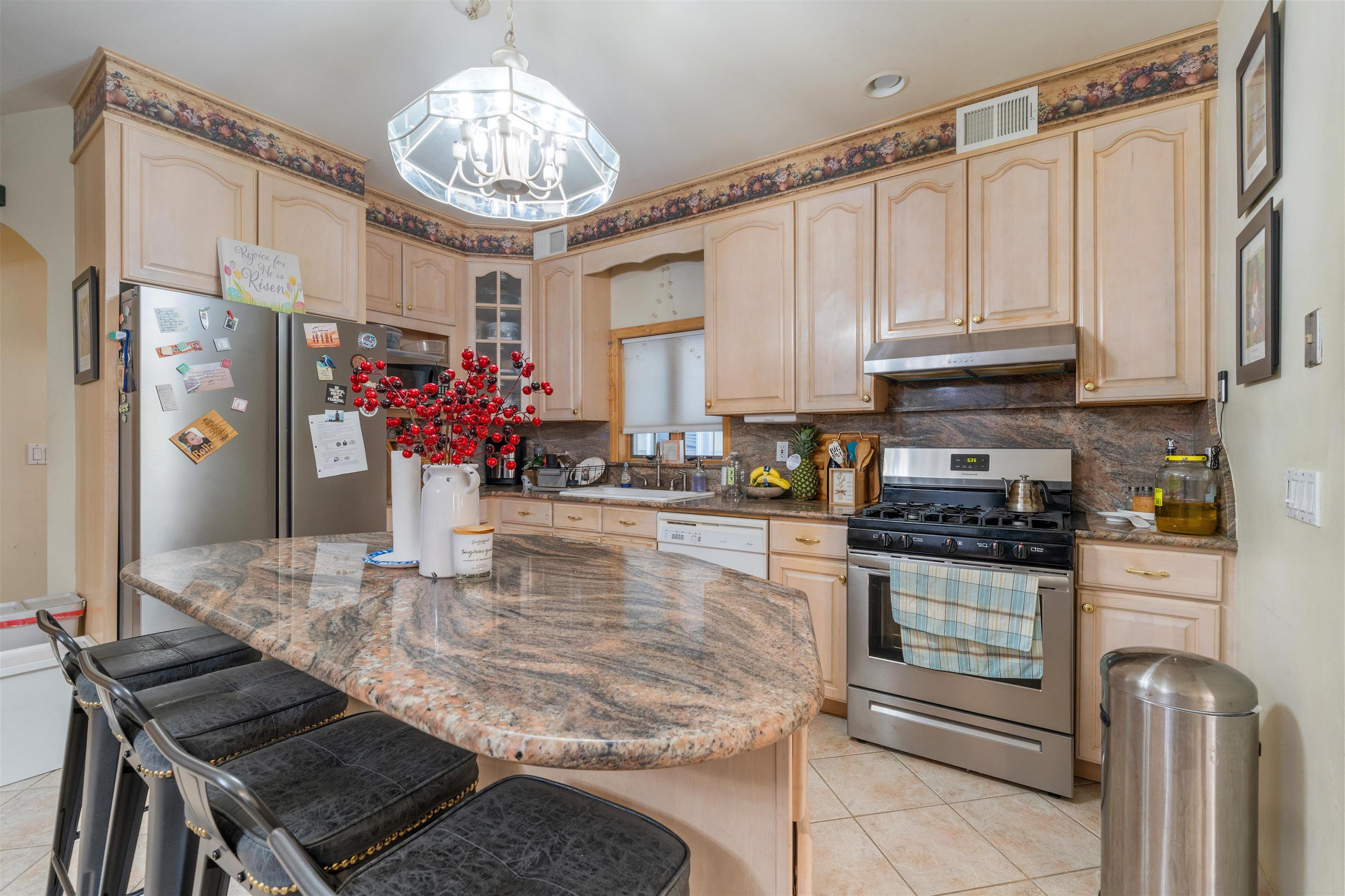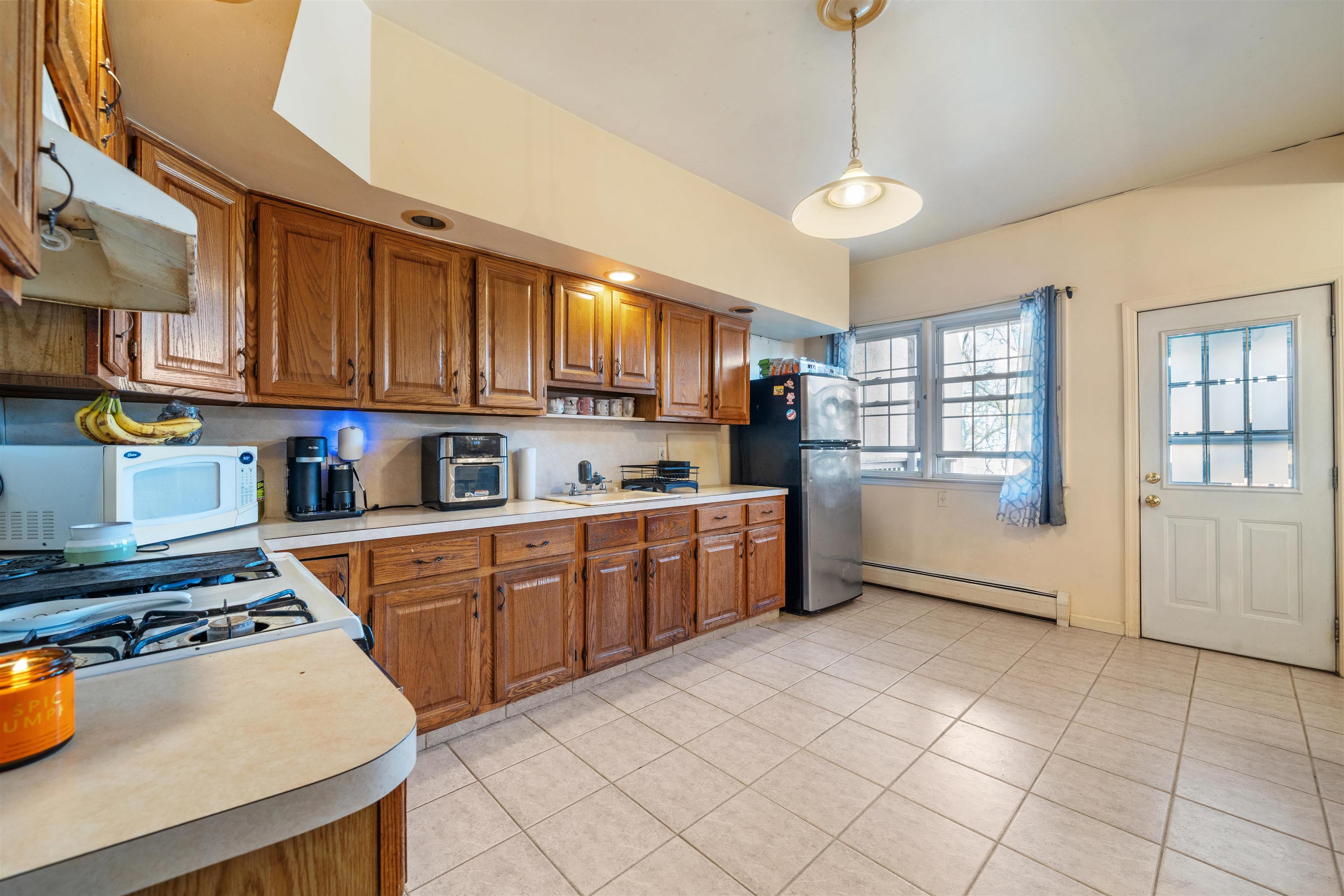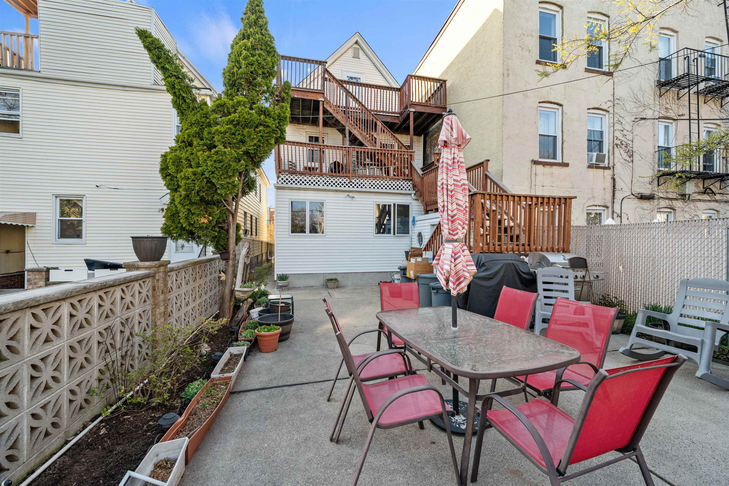 Beautifully maintained two-family home in the heart of Bayonne offering a total of 5 bedrooms and 4 full bathrooms. The first floor features a spacious 2-bedroom, 2-bath layout with a bright living room, formal dining area, and an open-concept kitchen with a center island, ideal for everyday living and entertaining. The primary suite includes a private en-suite bath and walk-in closet. The second floor offers 3 generously sized bedrooms, 1 full bath, a comfortable living and dining area, and a private balcony. A fully finished walkout basement with a separate entrance adds a versatile bonus space perfect for recreation, a home office, or extended living. Enjoy an oversized backyard ideal for outdoor gatherings, along with garage parking for up to 2 vehicles. Conveniently located near shopping, dining, and transportation into NYC, this property is a fantastic opportunity for both homeowners and investors! Schedule your private showing today!