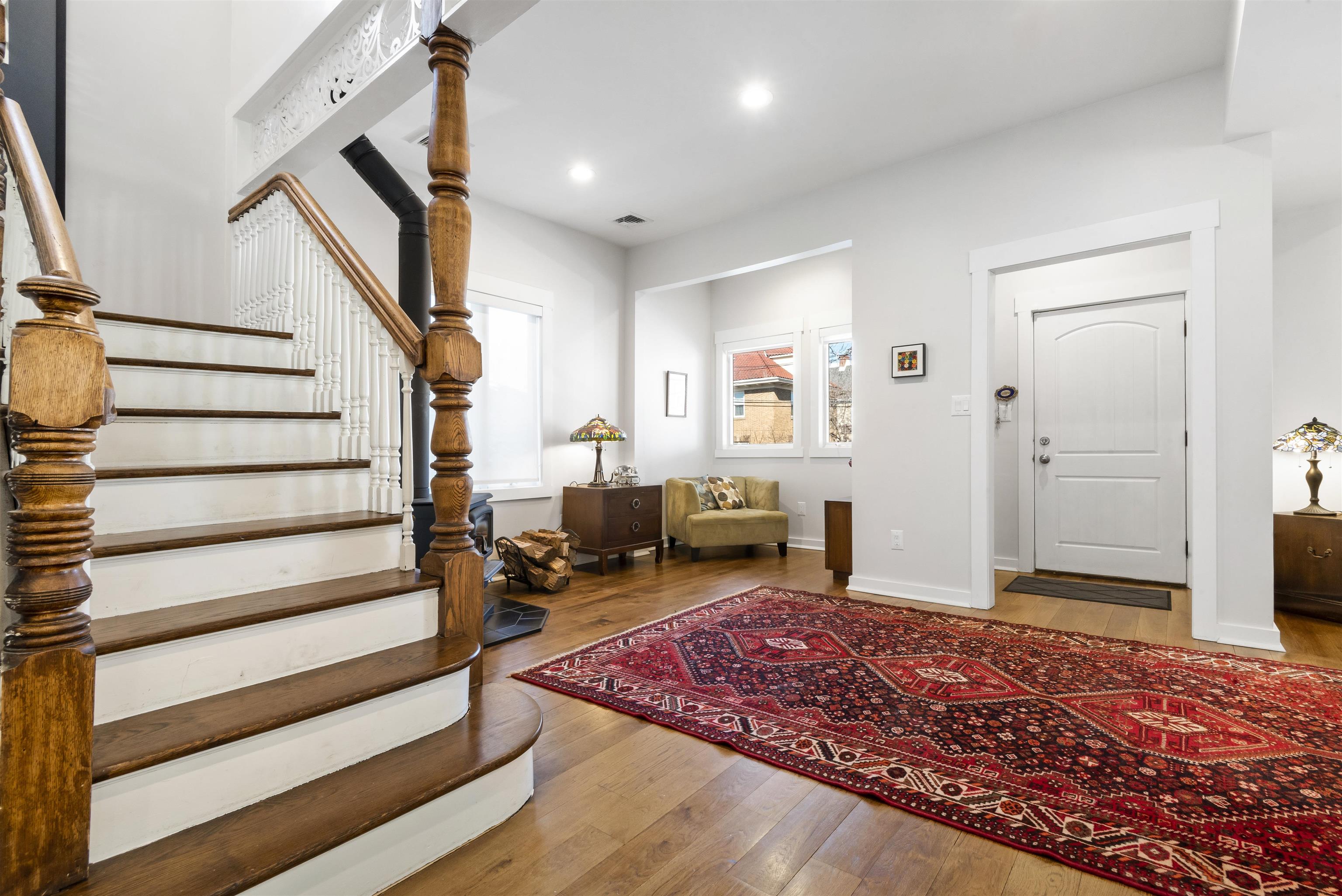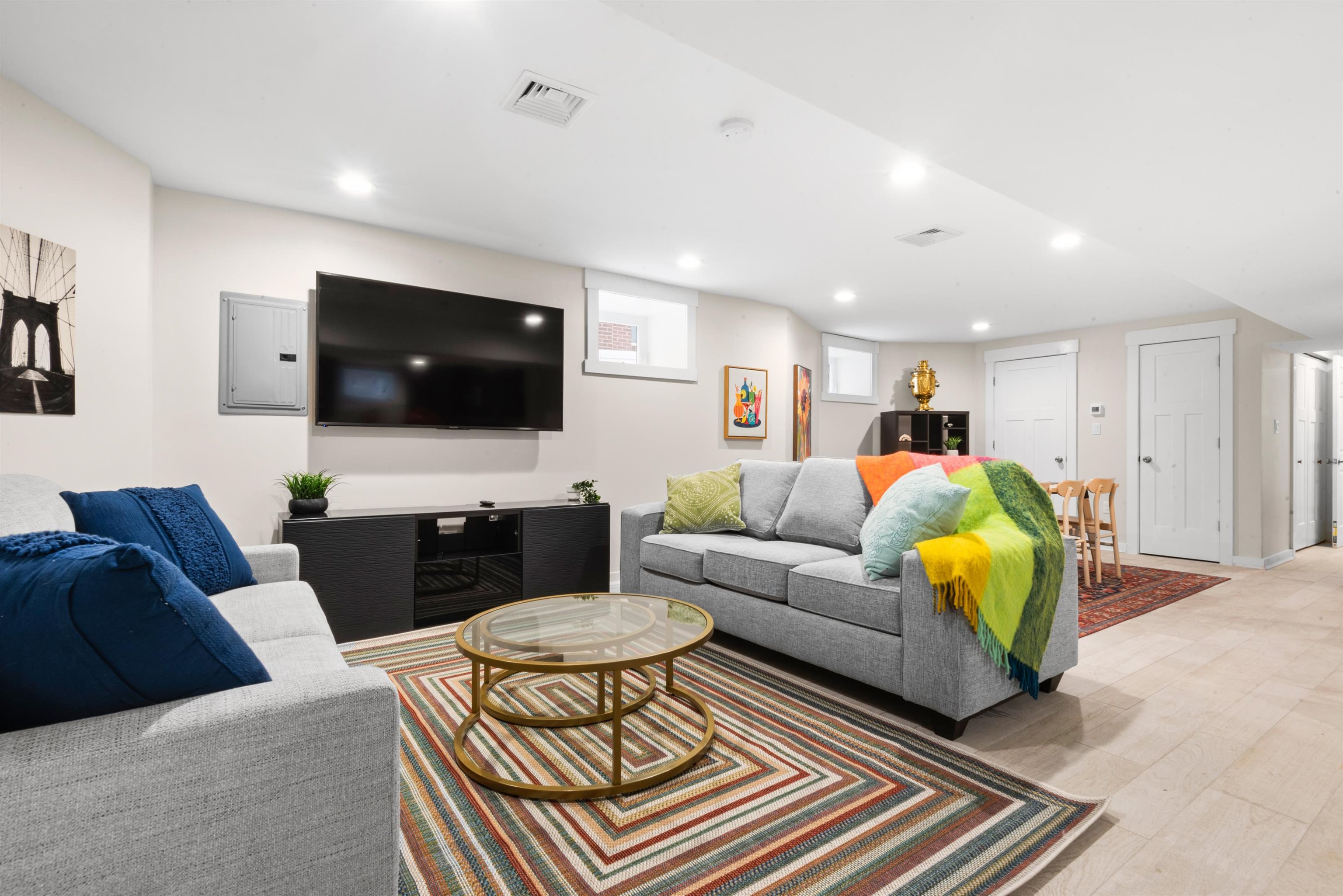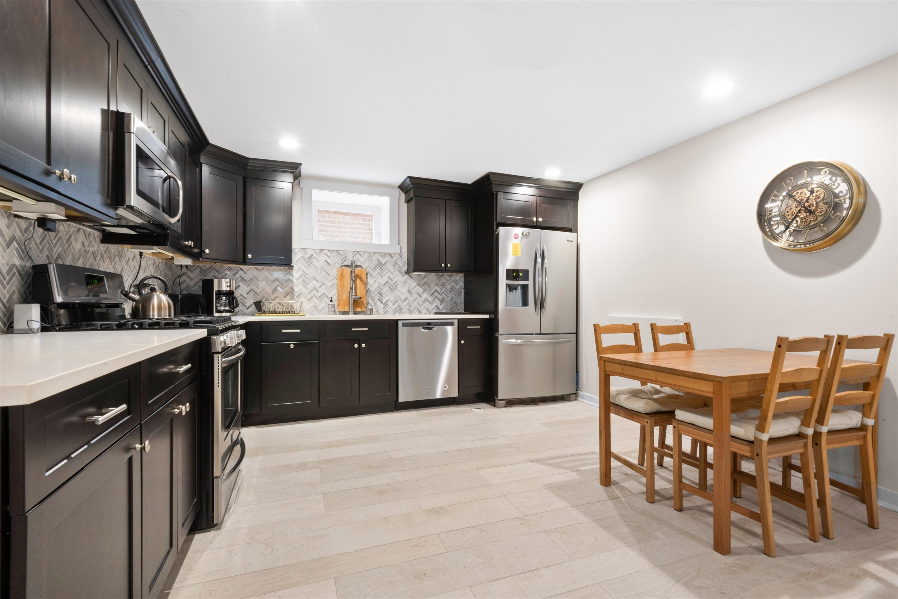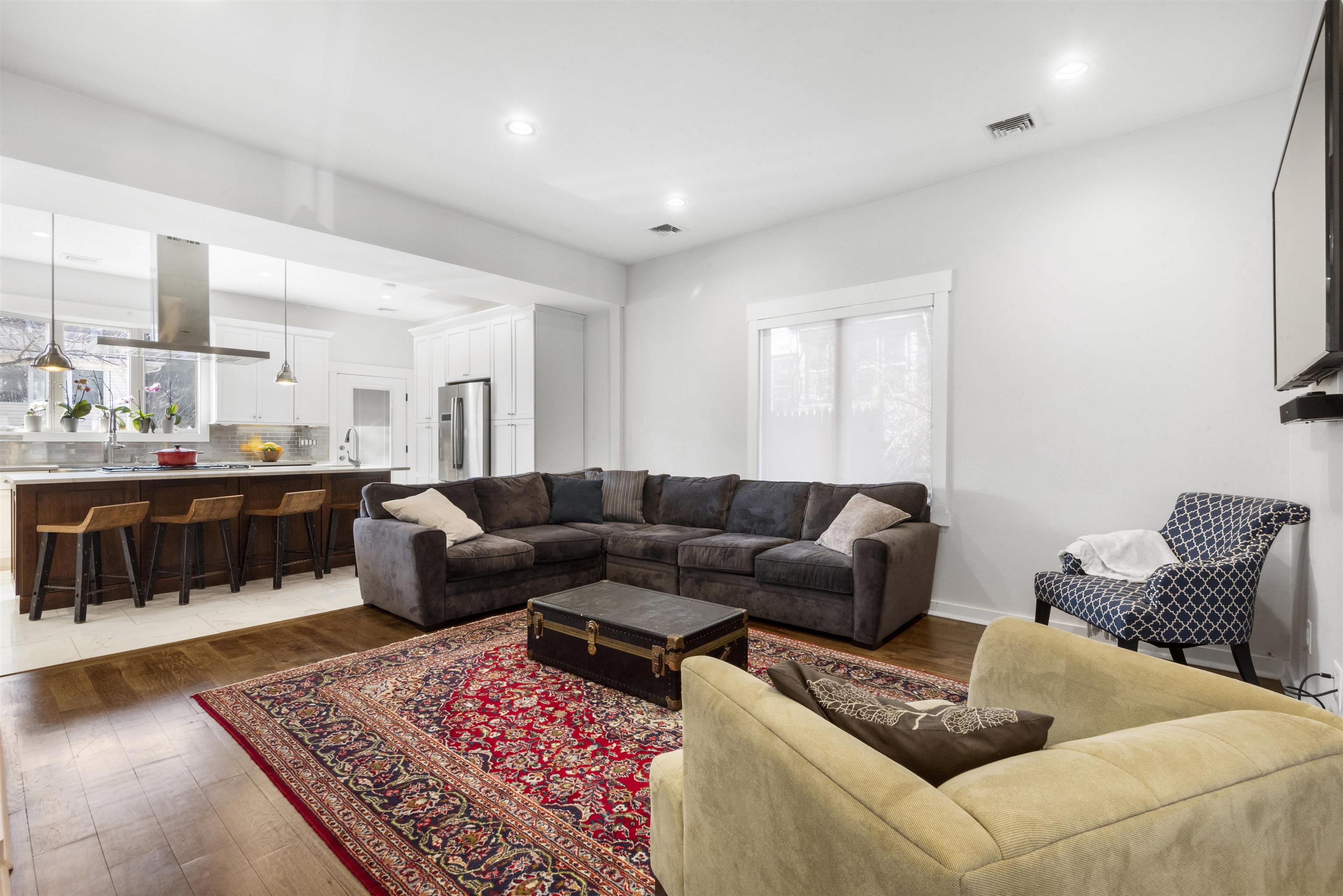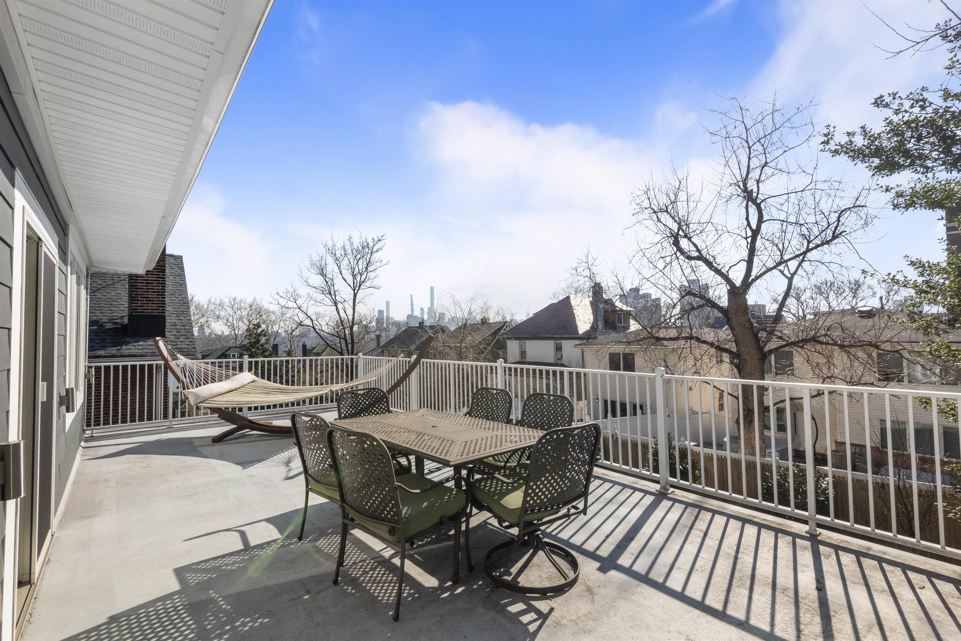 This is a true Unicorn Property! An exceptional two-family residence (currently used as a one family) in one of North Bergen’s most coveted pockets, just one block from North Hudson Park and moments off Boulevard East. The owner’s triplex unit has been meticulously designed for both elevated living and effortless entertaining. The main level features approximately 1,200 square feet of open-concept living and dining space anchored by a chef-caliber kitchen, with direct access to an expansive backyard—ideal for indoor-outdoor flow. This level also includes a full bath and a separate mudroom entrance, offering practical day-to-day functionality. The second floor is thoughtfully laid out with three bedrooms and two full baths, including a junior suite with its own ensuite. A wet bar services a stunning ~600-square-foot private rear deck, delivering sweeping, unobstructed views of the Manhattan skyline—an entertainer’s dream. The top floor is dedicated entirely to a luxurious primary suite spanning over 800 square feet. This retreat offers a generous sitting area, three custom walk-in closets, and a spa-quality bath. A private terrace completes the space, again capturing direct, panoramic NYC views. The ground-level second unit—configured as a two-bedroom, two-bath with its own private entrance—provides excellent flexibility, whether for income generation, extended living, or a professional-grade home office setup. Comprehensively renovated in 2018, the home reflects modern systems and finishes throughout, including multi-zone HVAC (4 zones), central vacuum, a gas fireplace, and an additional wood-burning stove. The property also offers the rare convenience of four-car parking and encompasses approximately 5,000 square feet of total living space. Seller is a licensed real estate broker.