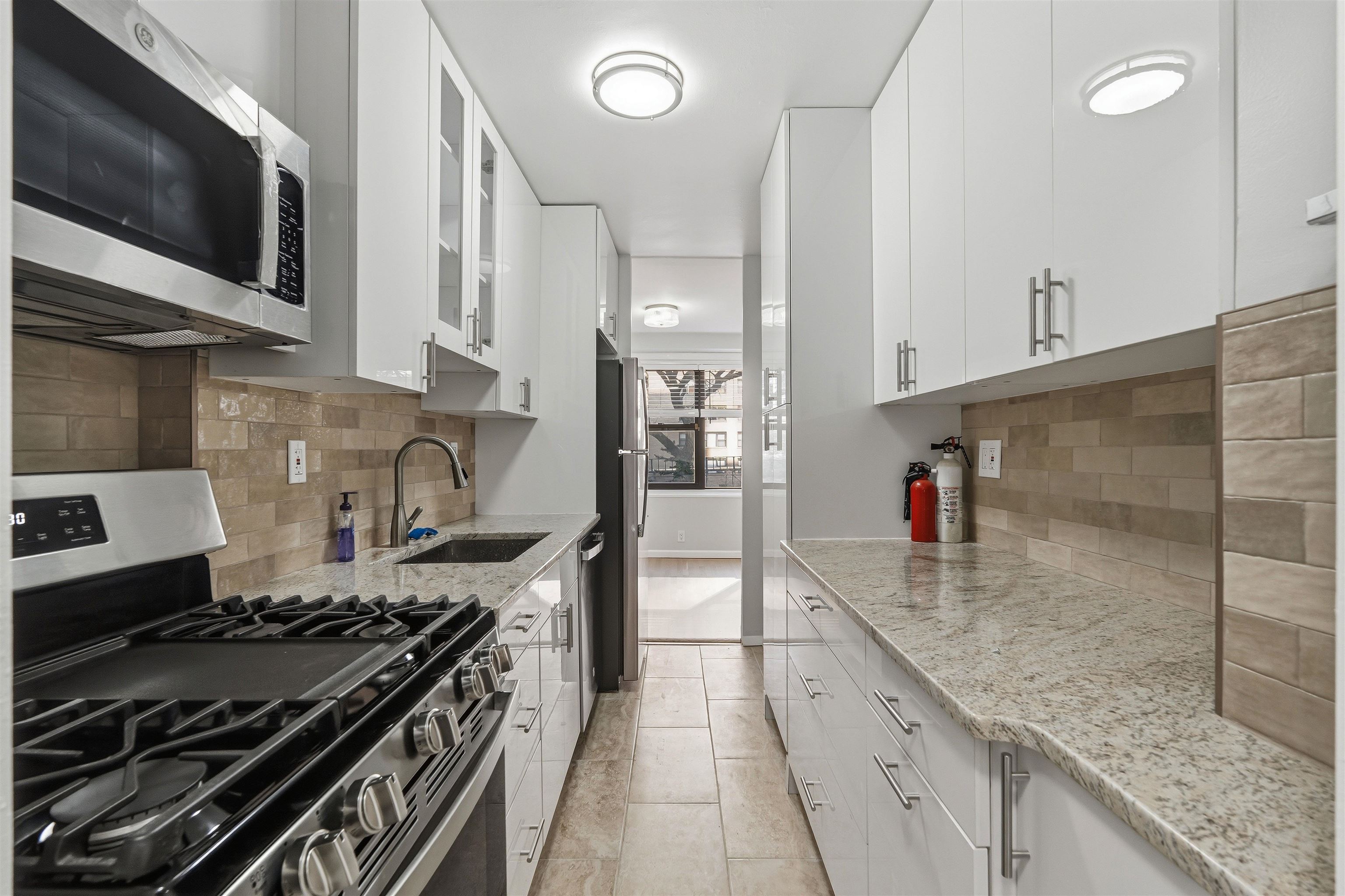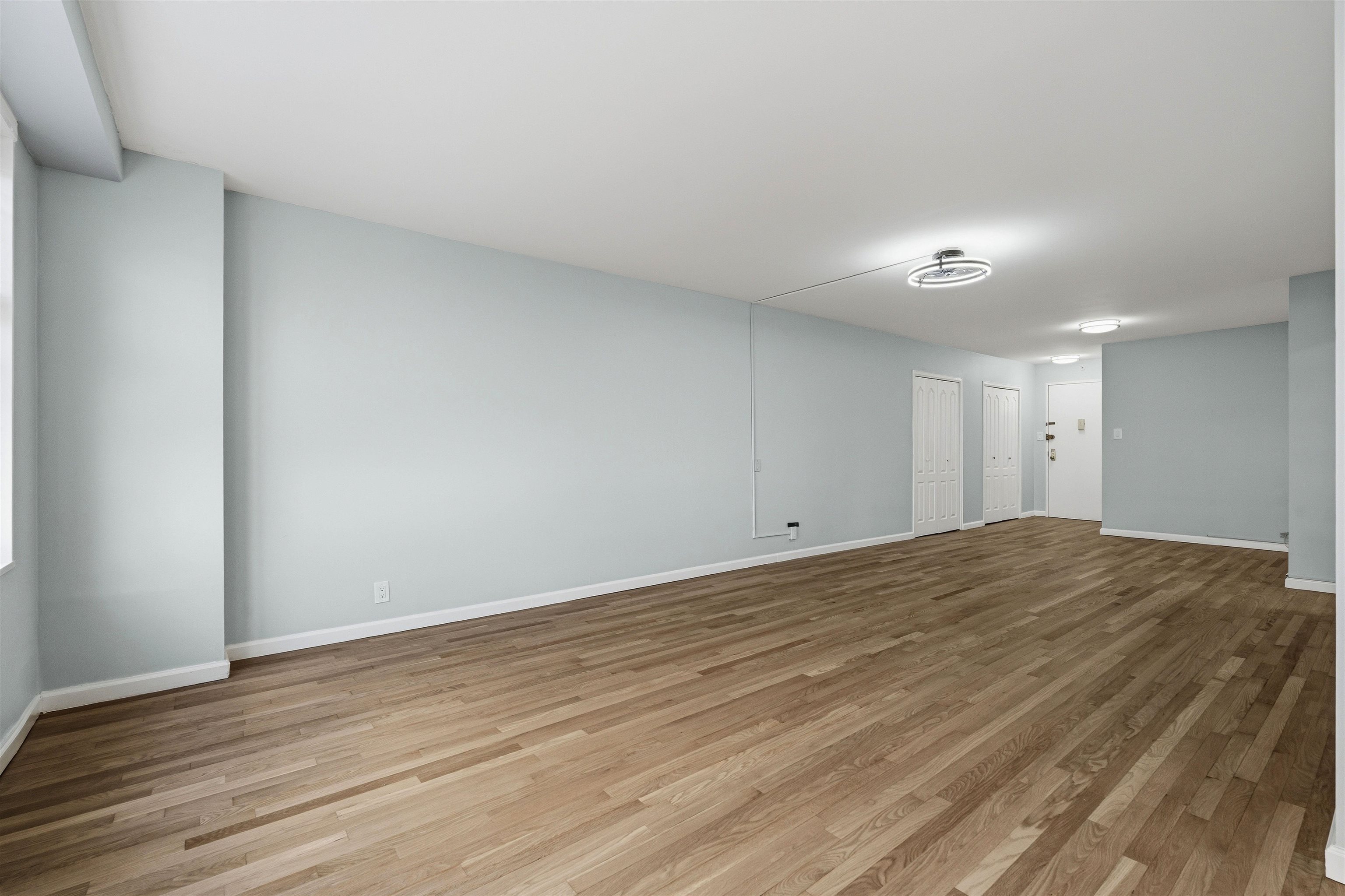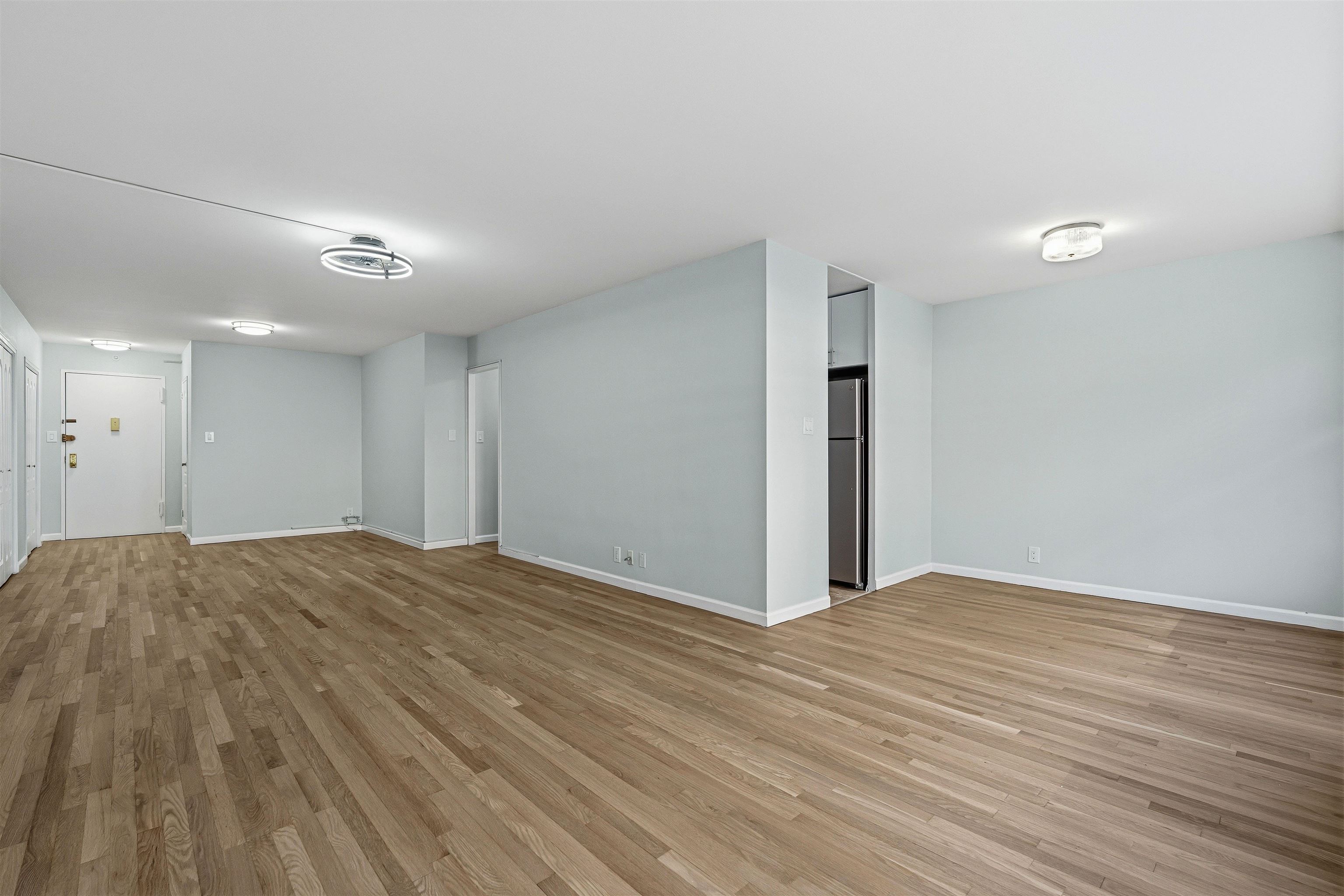 This spacious 2-bedroom corner condo offers the perfect blend of style, convenience, and value just four blocks from the Journal Square PATH, providing seamless access to NYC. Flooded with natural light, this oversized residence has been thoughtfully updated with a brand new kitchen featuring all new appliances, newly renovated bathrooms, fresh neutral paint, refinished original hardwood floors in a light modern tone, new light fixtures throughout, ceiling fans in both bedrooms, and new drawstring blinds in every room. Located in a full-service elevator building, residents enjoy an array of amenities including a 24-hour concierge, swimming pool, fitness center, playground, meditation garden, on-site laundry, and available parking, while the monthly HOA conveniently covers heat, hot water, cooking gas, and central A/C. Whether you're a commuter, first-time buyer, or looking to upsize within the community, this home presents an exceptional opportunity to own in one of Journal Square’s most vibrant and accessible neighborhoods.