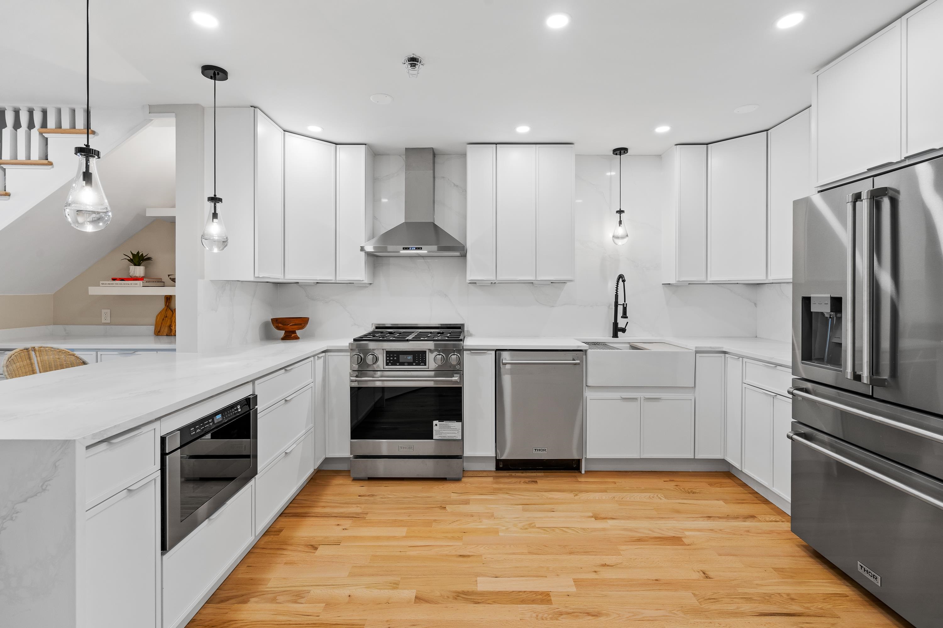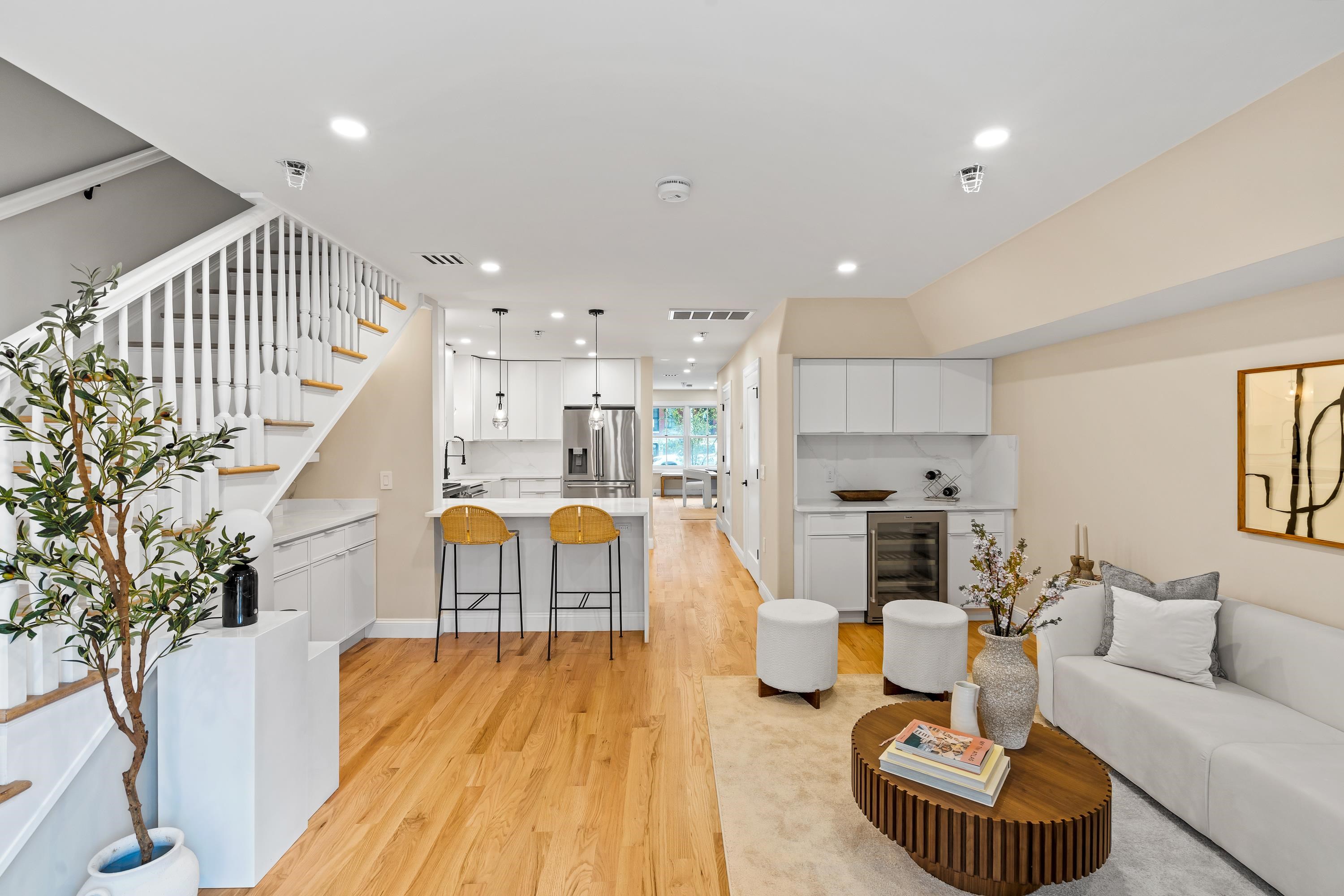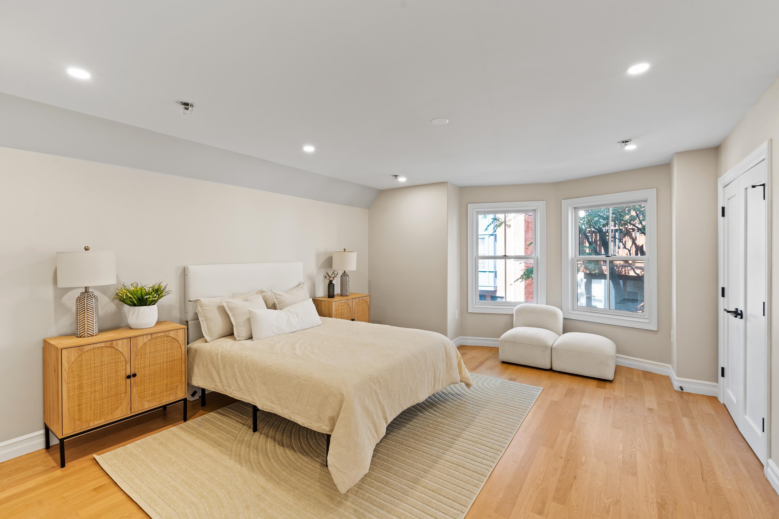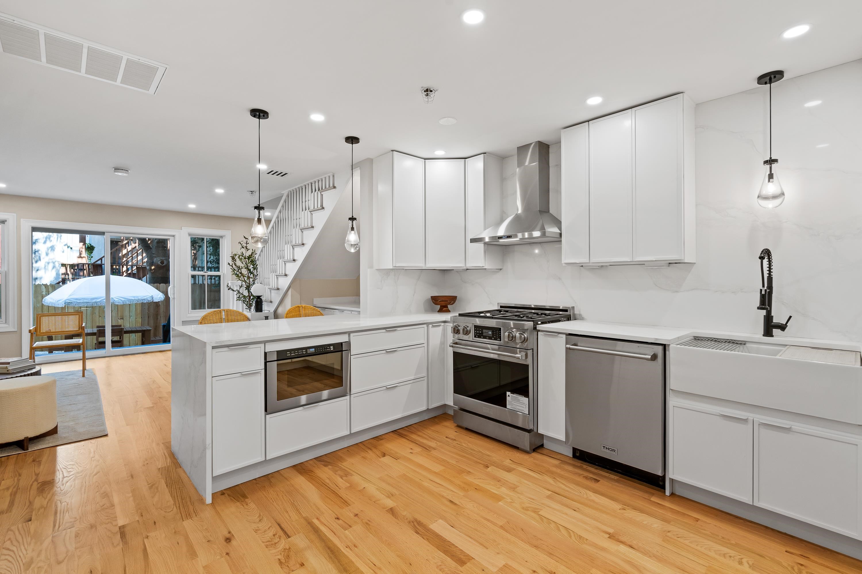 This beautifully designed two-level townhome offers the perfect blend of modern style, comfort, and location in JC’s highly desirable Van Vorst Park neighborhood. A rare first and second floor residence, it lives like a private home while providing the ease of condo ownership and low monthly maintenance. The main level boasts an expansive open-concept living and dining area ideal for entertaining or relaxing, along with a standout kitchen featuring brand-new Thor appliances, sleek cabinetry, and matte black fixtures that bring a contemporary edge. A powder room with in-unit laundry and abundant built-in storage complete this floor, while sliding glass doors open to a private rear yard, a rare outdoor retreat in this neighborhood. Upstairs, spacious bedrooms and spa-inspired bathrooms create a tranquil escape, complemented by freshly refinished hardwood flooring, modern finishes, and a clean, sophisticated palette throughout. Just blocks from scenic Van Vorst Park and surrounded by charming tree-lined streets, the home places you close to top-rated restaurants, local cafes, boutique shopping, and the Hudson River waterfront, with convenient PATH access for an effortless commute to Manhattan. You will appreciate the abundance of nearby school options, including day cares, preschools, and private schools most within a block radius. Completing the package, the seller is including 2 years of paid parking & 2 years of a gym membership, making this home the ultimate city residence.