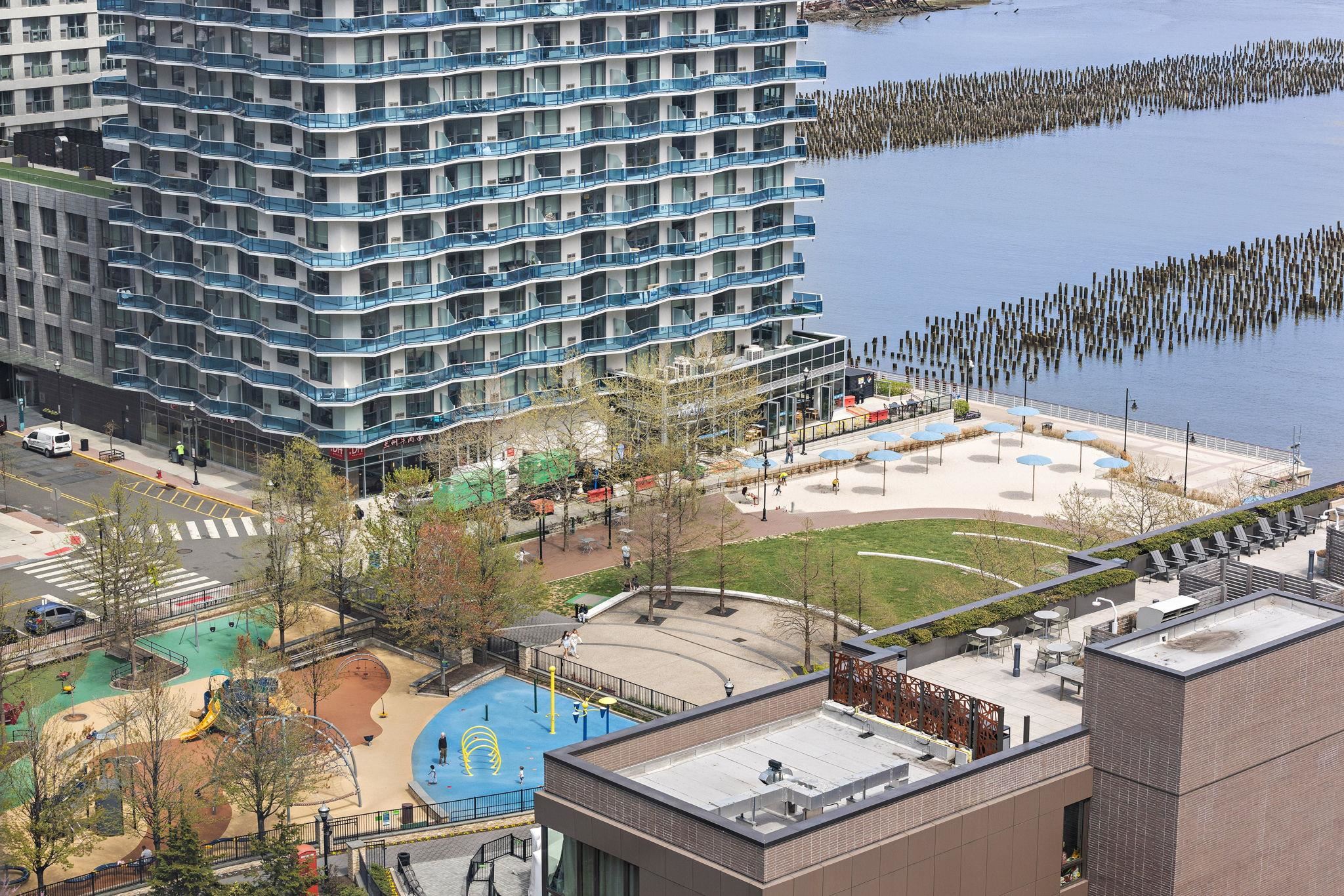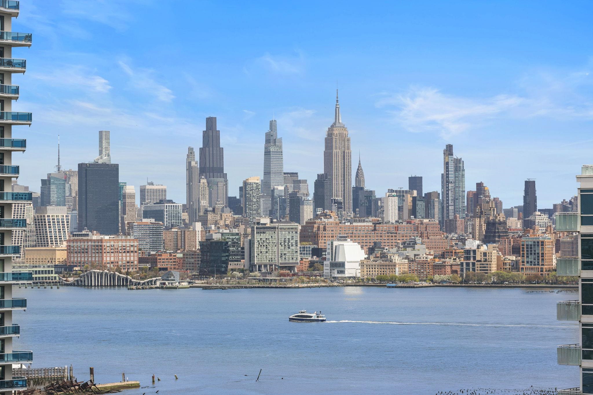 Discover sophisticated urban living in this stunning South East facing 2-bedroom, 2.5-bath home, embodying the essence of luxury and convenience. Perched as a corner unit, this home basks in an abundance of natural light, thanks to expansive floor-to-ceiling windows that frame captivating views the Hudson River. Step inside to a spacious, open-concept living area where daily life unfolds with elegance and ease. The chef’s kitchen is a culinary dream, boasting high-end Bosch appliances and an exquisite Madreperola Quartzite waterfall island and countertops — perfect for both easy living and entertaining. Each room transitions seamlessly to the next, maintaining an airy flow that enhances the home’s generous layout. The primary bedroom offers a tranquil retreat, featuring ample space and a luxuriously appointed en-suite bathroom with custom tile and marble. Situated in the vibrant Newport neighborhood, this residence offers close proximity to essential amenities and transportation hubs. Just a short distance away, the path station and ferry will ensure your commute is a breeze. For leisure and convenience, enjoy multiple local coffee shops, restaurants, and stores. Residents benefit from exclusive access to community features, such as state of the art gym, pool, residence lounge, theater room, sky-lounge, multiple roof top terraces with grills, putting green, 24 hour doorman and concierge. Don't miss out on this incredible opportunity to live at Jersey City's most desirable address!
