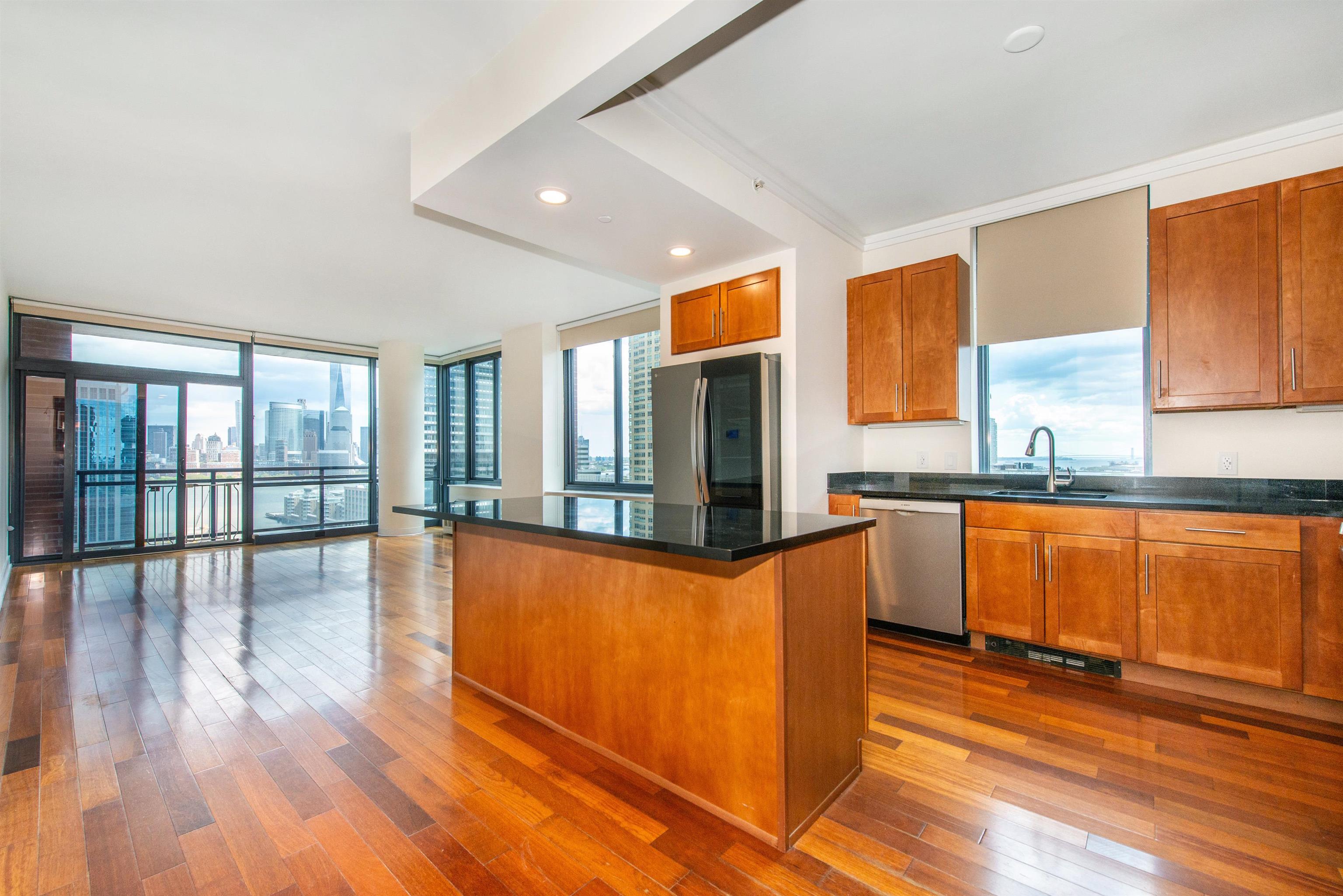 Experience unrivaled Manhattan views from this 2-bed, 2-bath luxury condo at The A Building with full-service amenities in the heart of downtown Jersey City. Step into luxury atop the Jersey City waterfront in this 18th floor residence at The A Condominiums. This exceptional home is defined by its wraparound floor-to-ceiling windows that flood the space with natural light and frame breathtaking, direct views of the Lower Manhattan skyline and the Hudson River. Custom finishes and lighting throughout this corner unit. The standout feature is the extra-long private balcony that stretches the full width of the unit, serving as your own personal observation deck for iconic landmarks like One World Trade Center and the Statue of Liberty. Rare for the area, this listing also includes two parking spots. Full-service amenities, including a fitness center, residents’ lounge, children’s play area, and a beautifully appointed rooftop deck with seating and grills. A valuable benefit for buyers, the property carries a 20-year tax abatement through 2027. Conveniently located near shopping, dining, and PATH transportation, providing ultimate convenience in a prime downtown location.