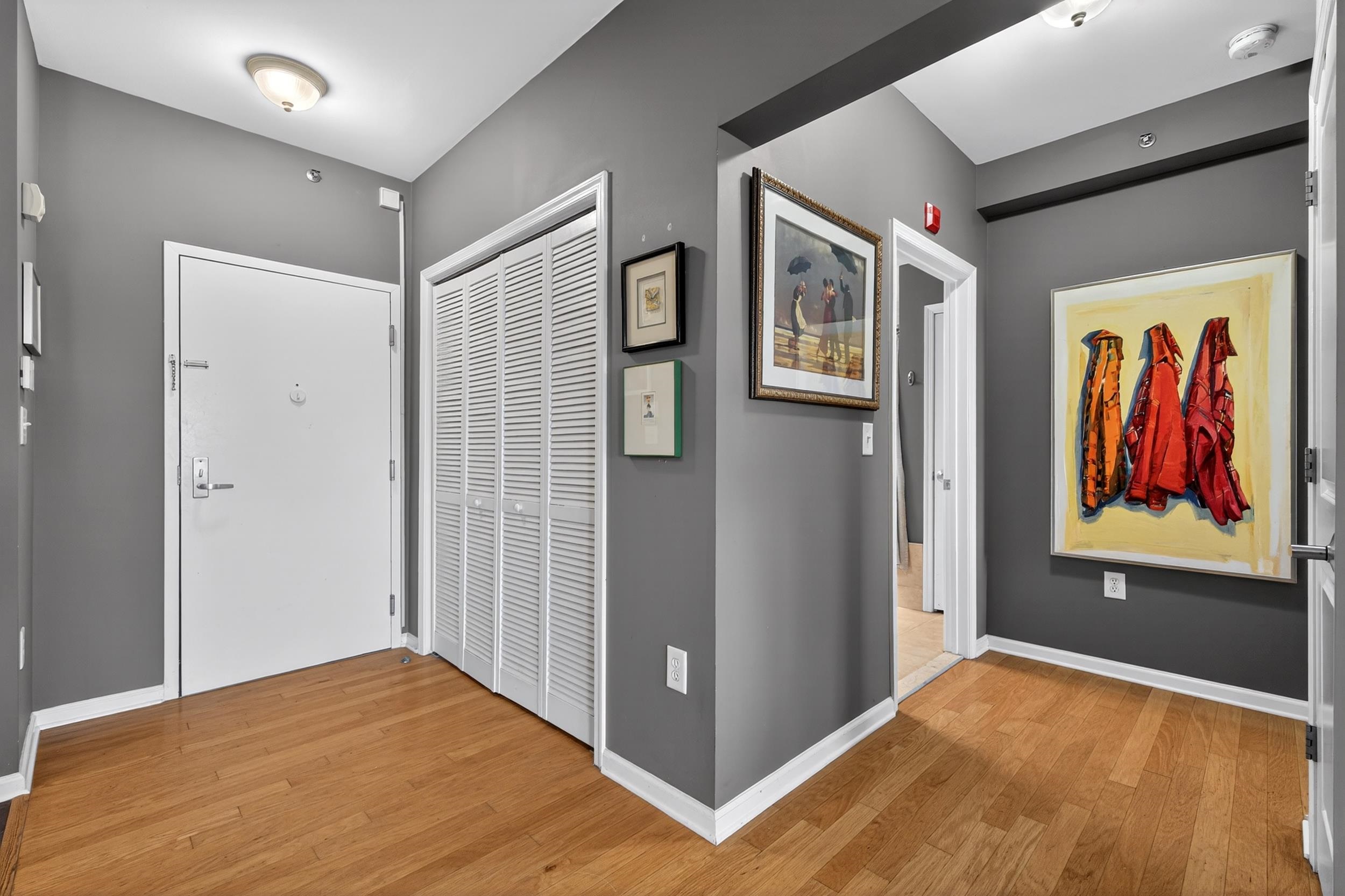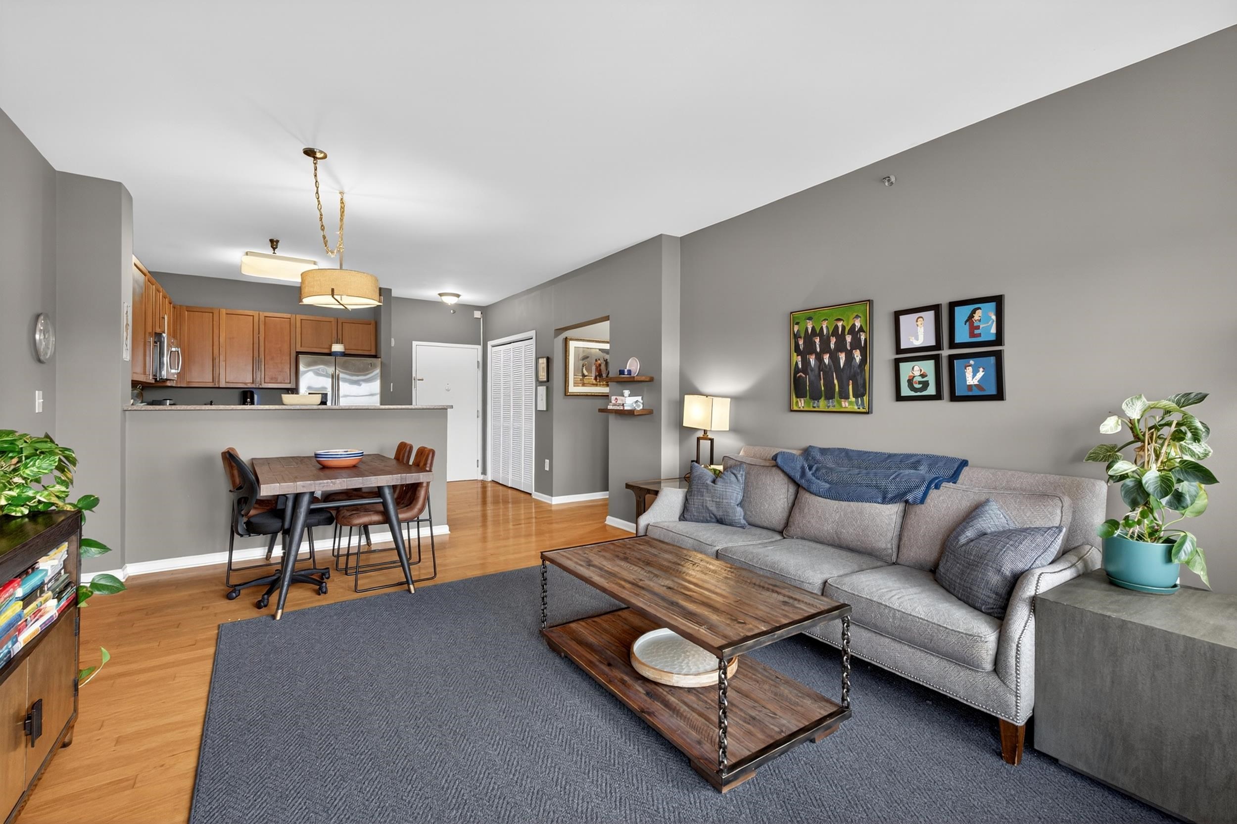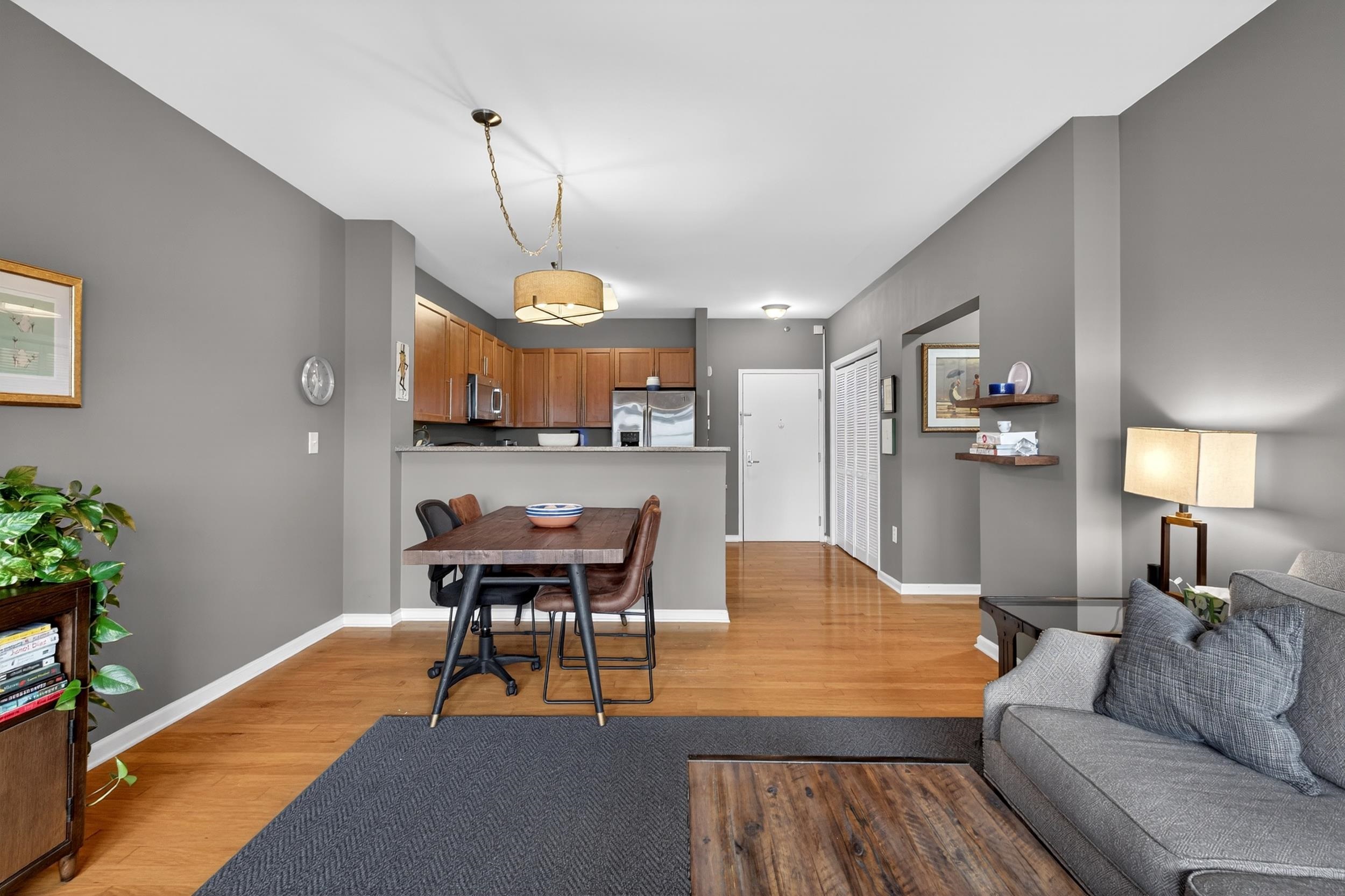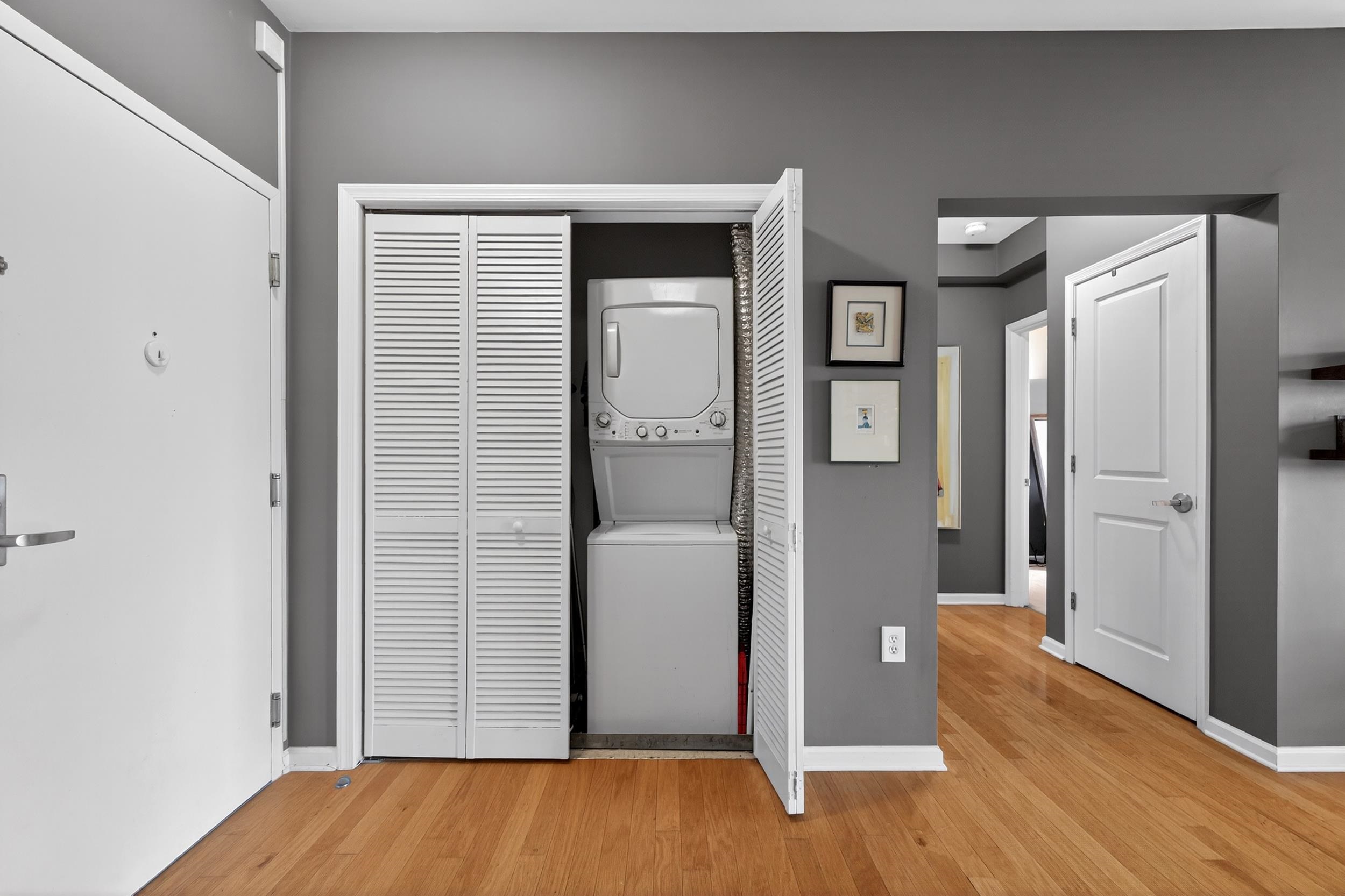 Welcome to this beautifully maintained 795 sq ft 1-bedroom, 1-bath residence in the highly sought-after Port Liberté community—where comfort, convenience, and resort-style living come together seamlessly. This inviting home features rich hardwood floors throughout, creating a warm and sophisticated atmosphere. The spacious layout offers a bright and airy living area that flows effortlessly to your own private outdoor space—perfect for morning coffee or evening relaxation. The well-appointed kitchen with and living space are complemented by an in-unit washer and dryer for ultimate convenience. The generously sized bedroom boasts a walk-in closet complete with custom built-ins, providing exceptional storage and organization. Adding to the ease of living is a deeded parking spot, ensuring you always have a secure and convenient place to park. Port Liberté is renowned for its unparalleled lifestyle offerings, featuring a plethora of amenities including 24-hour gated security, two outdoor swimming pools, tennis courts, a fitness center, scenic waterfront promenades, and an on-site clubhouse. Commuters will appreciate the easy access to NYC via ferry and shuttle service to the PATH. Experience the perfect blend of tranquility and accessibility in this exceptional home—an ideal opportunity to enjoy one of Jersey City’s most unique waterfront communities.