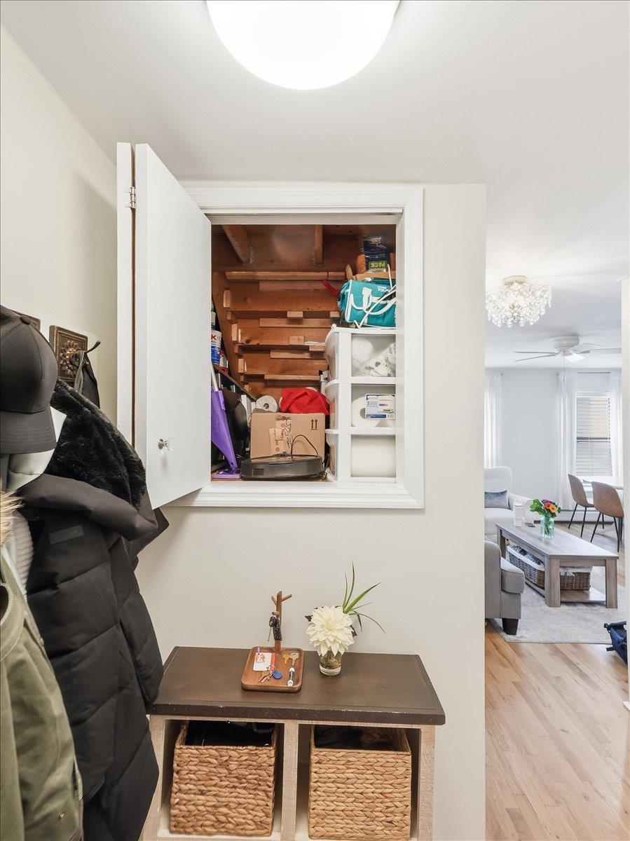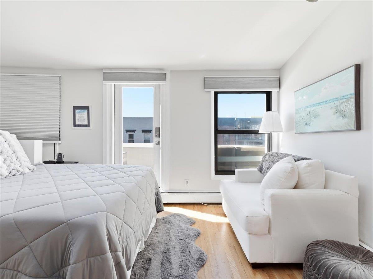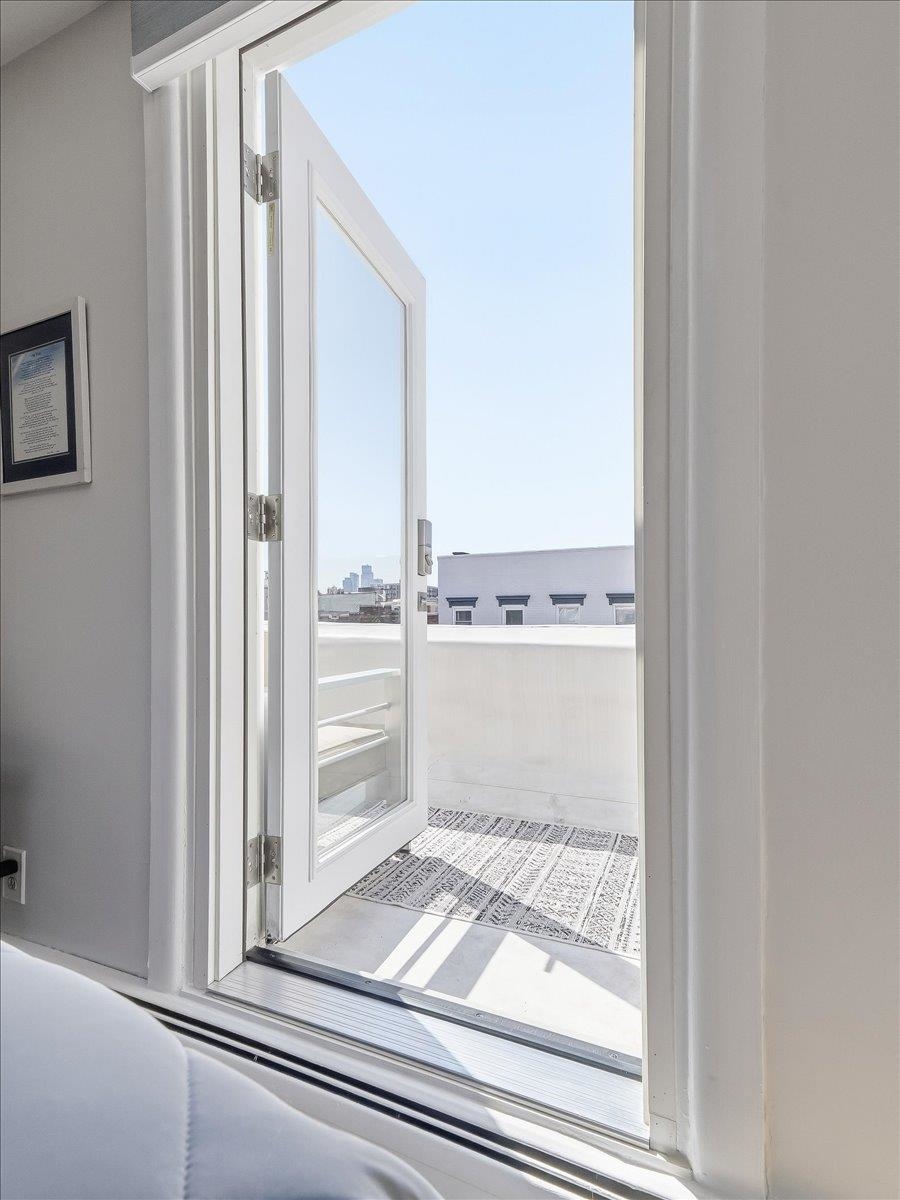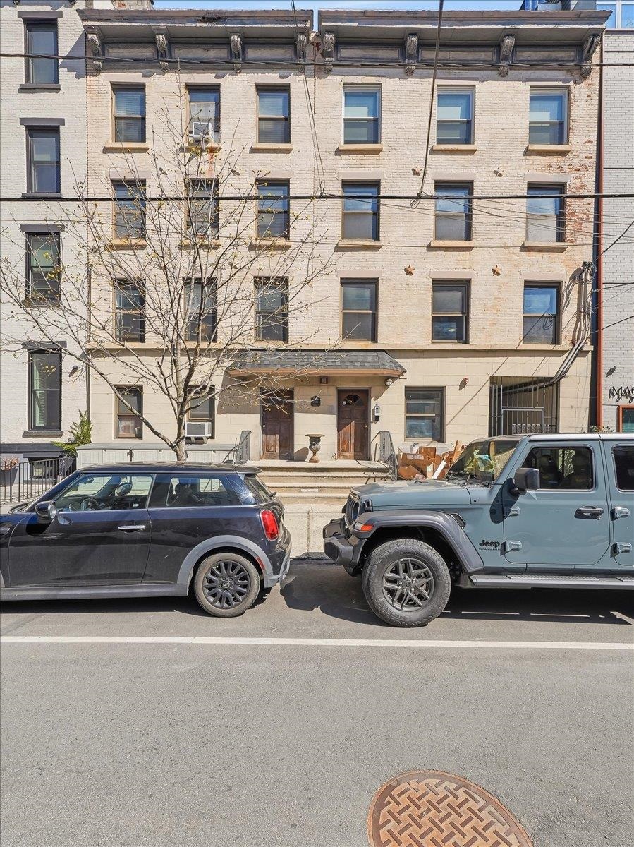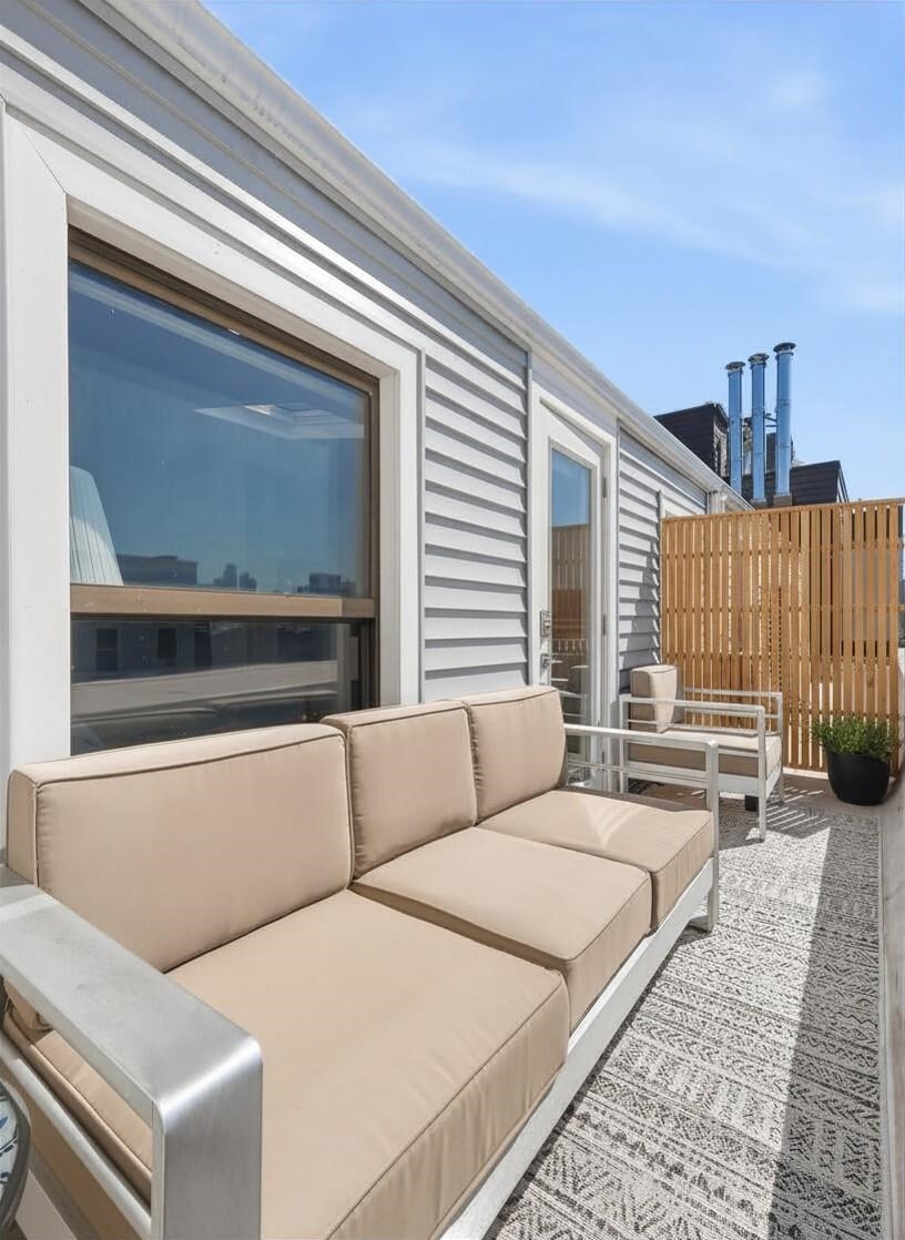 Experience the best of downtown Hoboken living in this spacious and sun-filled 1-bedroom, 1.5-bath duplex condo on desirable Park Avenue, complete with your own private roof deck. Thoughtfully designed across two levels, the layout offers a perfect balance of openness and privacy. The main floor features a generous living area centered around a charming wood-burning fireplace, complemented by newly refinished hardwood floors that bring warmth and character to the space. The kitchen blends modern updates with timeless style, showcasing crisp white cabinetry, stainless steel appliances, granite countertops, white subway tile, and distinctive slate flooring that echoes the home’s classic aesthetic. A convenient half bath and under-stair storage complete this level. Upstairs, an open staircase leads to a bright and airy lofted bedroom suite, enhanced by a new skylight and direct access to your private terrace—ideal for relaxing or entertaining. The full bathroom has been recently renovated with tasteful, modern finishes. Additional features include new in-unit laundry, ample storage, updated A/C units, ceiling fans, and overhead lighting. Recent exterior building improvements, including a new roof and siding, add further value and peace of mind. Enjoy seamless indoor-outdoor living year-round—soak up the sunshine on your terrace or unwind by the fire during cooler months. Ideally located just moments from Hoboken’s lively dining scene, boutique shopping, and scenic waterfront, this home offers an exceptional blend of comfort, style, and convenience.
