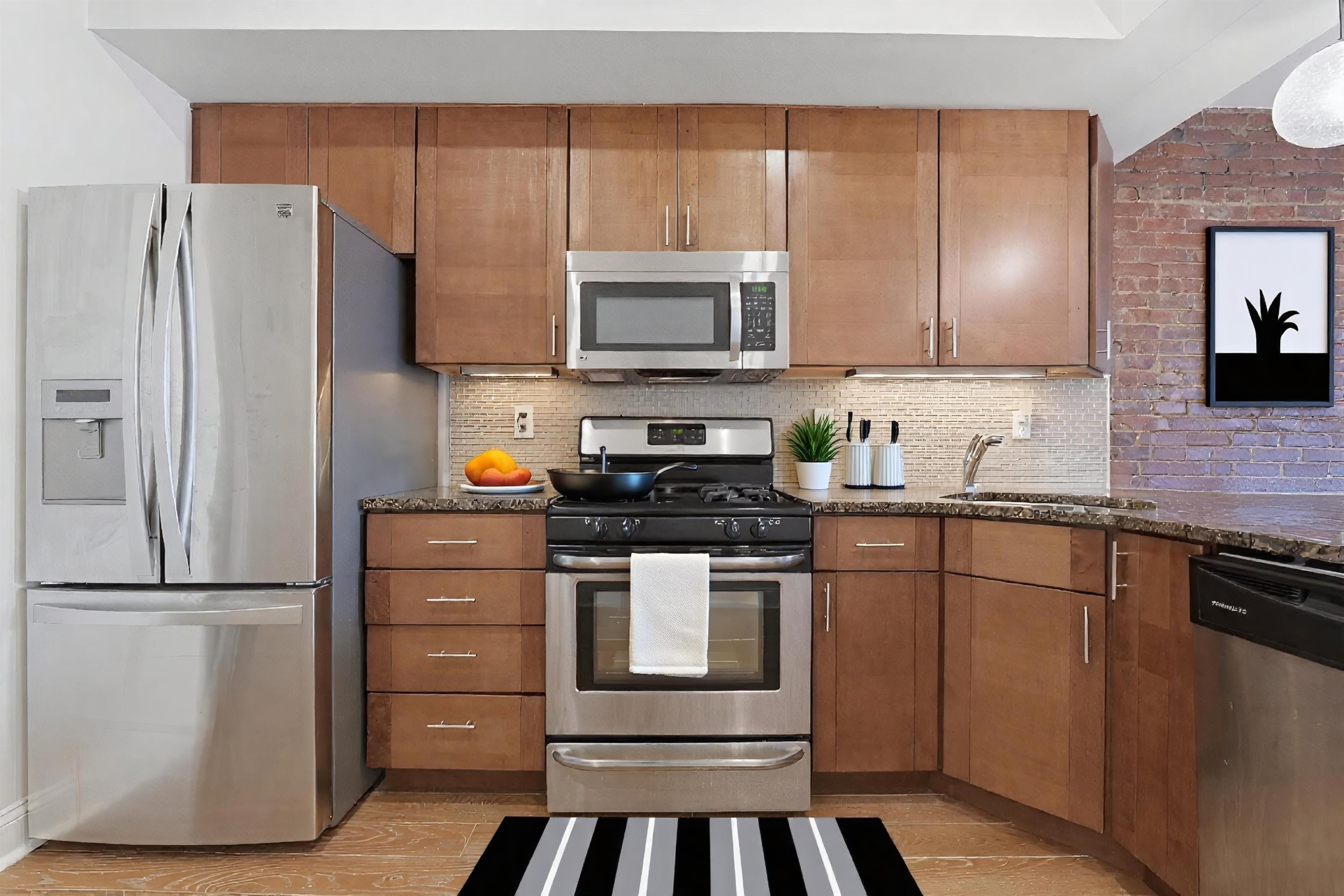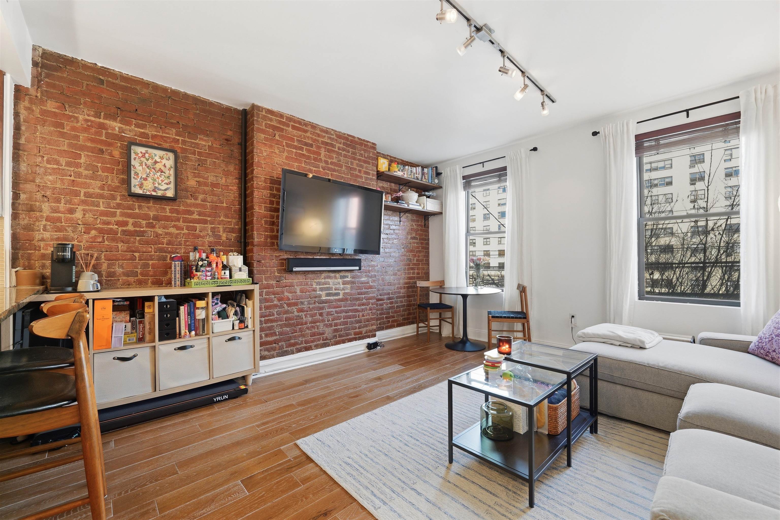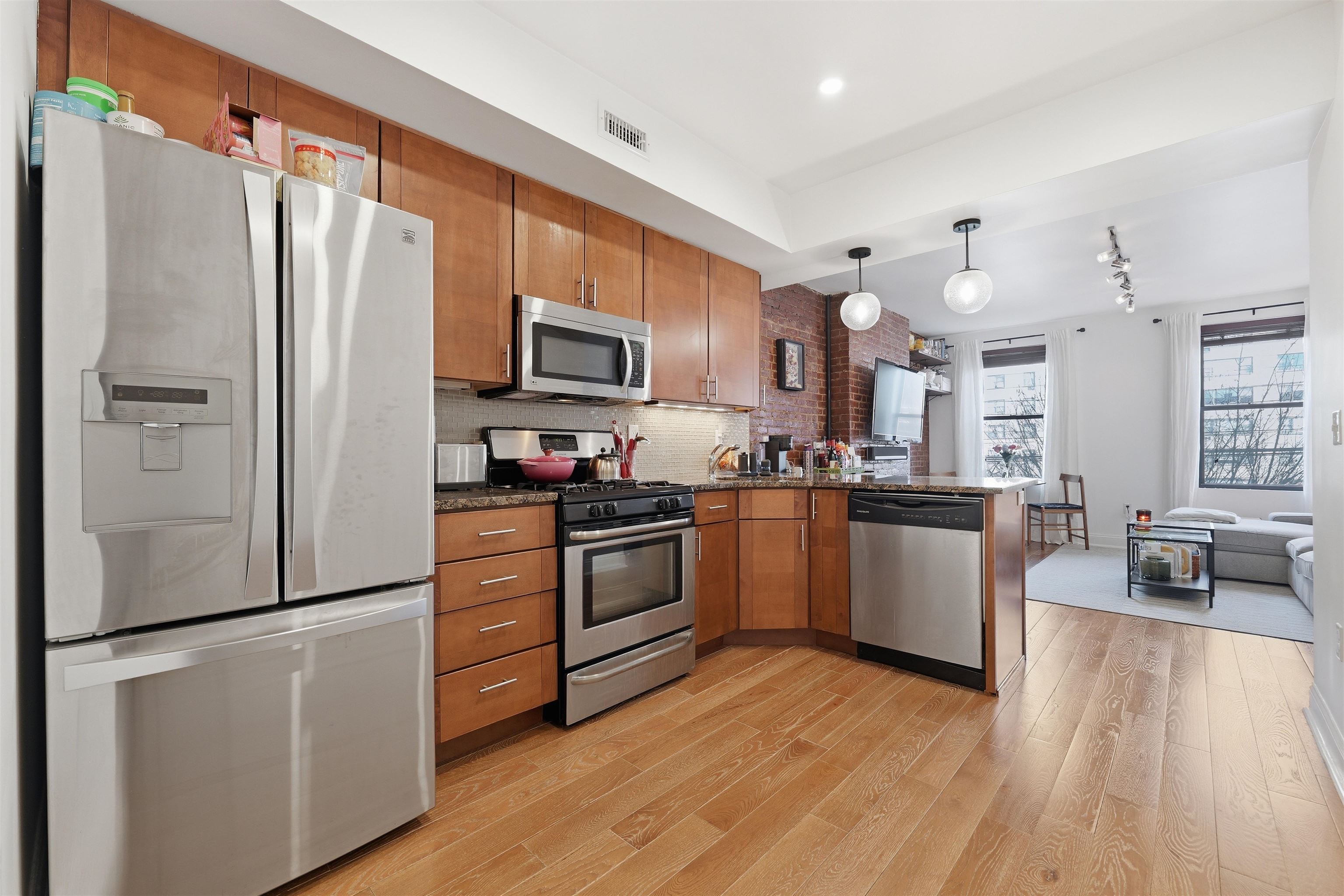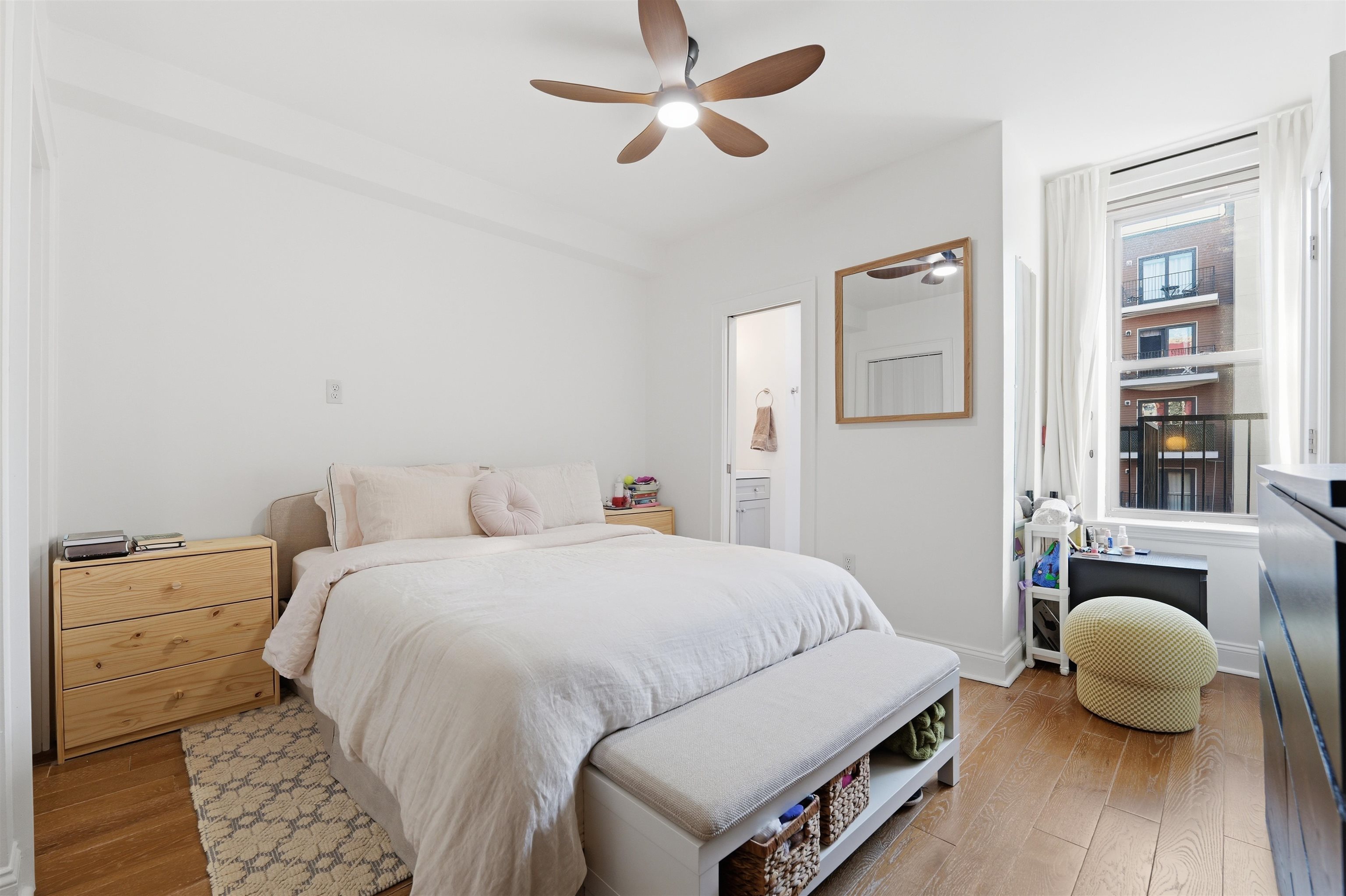 Beautifully appointed and spacious 1-bedroom, 1.5-bath residence ideally situated on the second floor with an easy one-flight walk-up in the heart of Hoboken. Blending classic charm with modern upgrades, this thoughtfully refreshed home features exposed brick, rich hardwood floors throughout, and a seamless open-concept layout enhanced by integrated Sonos sound in both the living area and bathrooms. The well-designed kitchen flows effortlessly into the living and dining space, complete with stainless steel appliances, granite countertops, and ample cabinetry, making it ideal for both everyday living and entertaining. The expansive bedroom is filled with natural light and offers two generous closets along with a private en-suite bath, while an additional powder room provides added convenience for guests. Additional highlights include central HVAC for year-round comfort, a full-size in-unit washer and dryer, and an exceptionally large private storage unit within the building. Perfectly positioned just moments from NJ Transit, ACME, and Hoboken’s vibrant dining and shopping scene, this home offers both comfort and convenience, with a municipal parking lot located directly across the street for added ease.