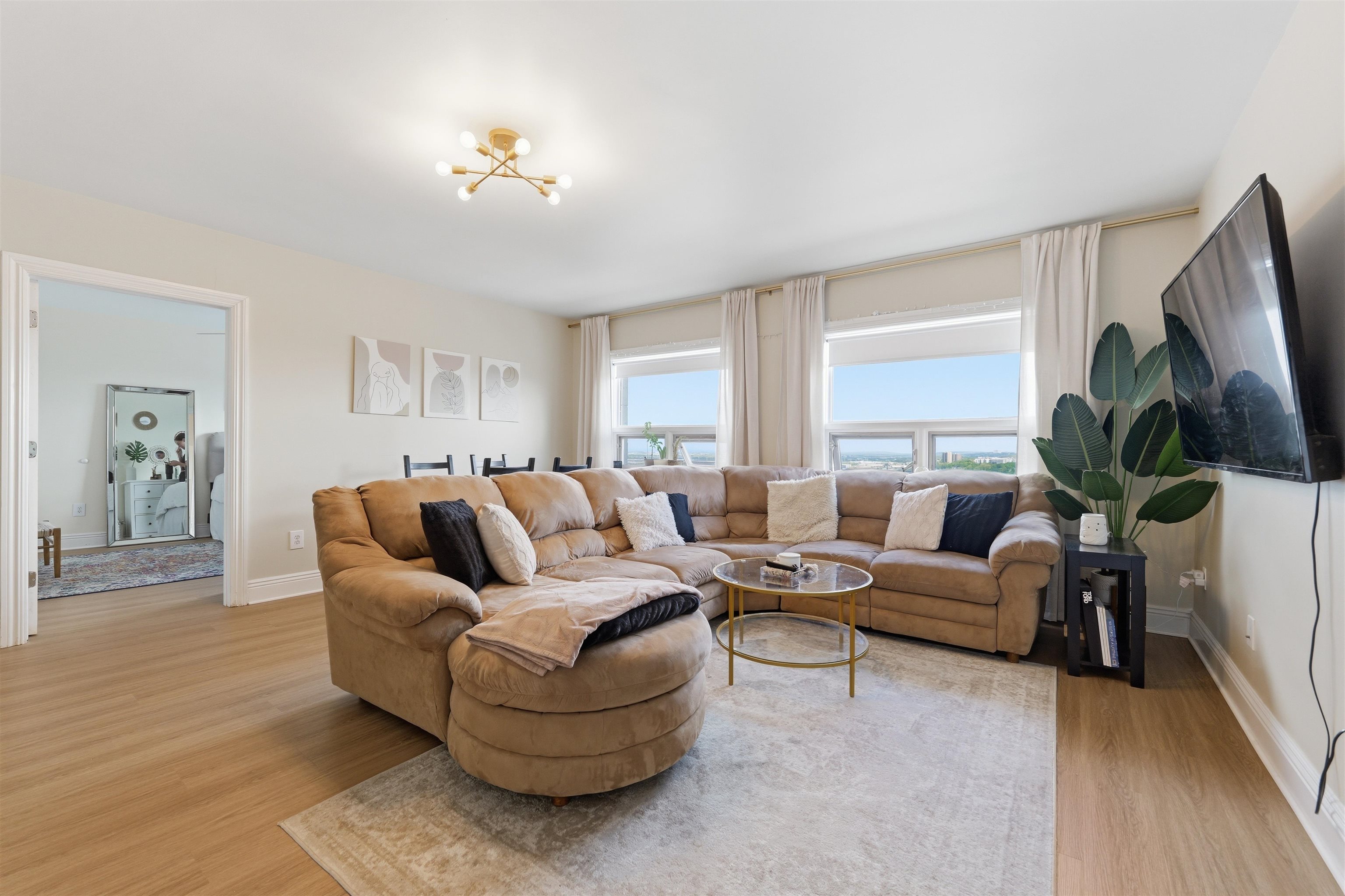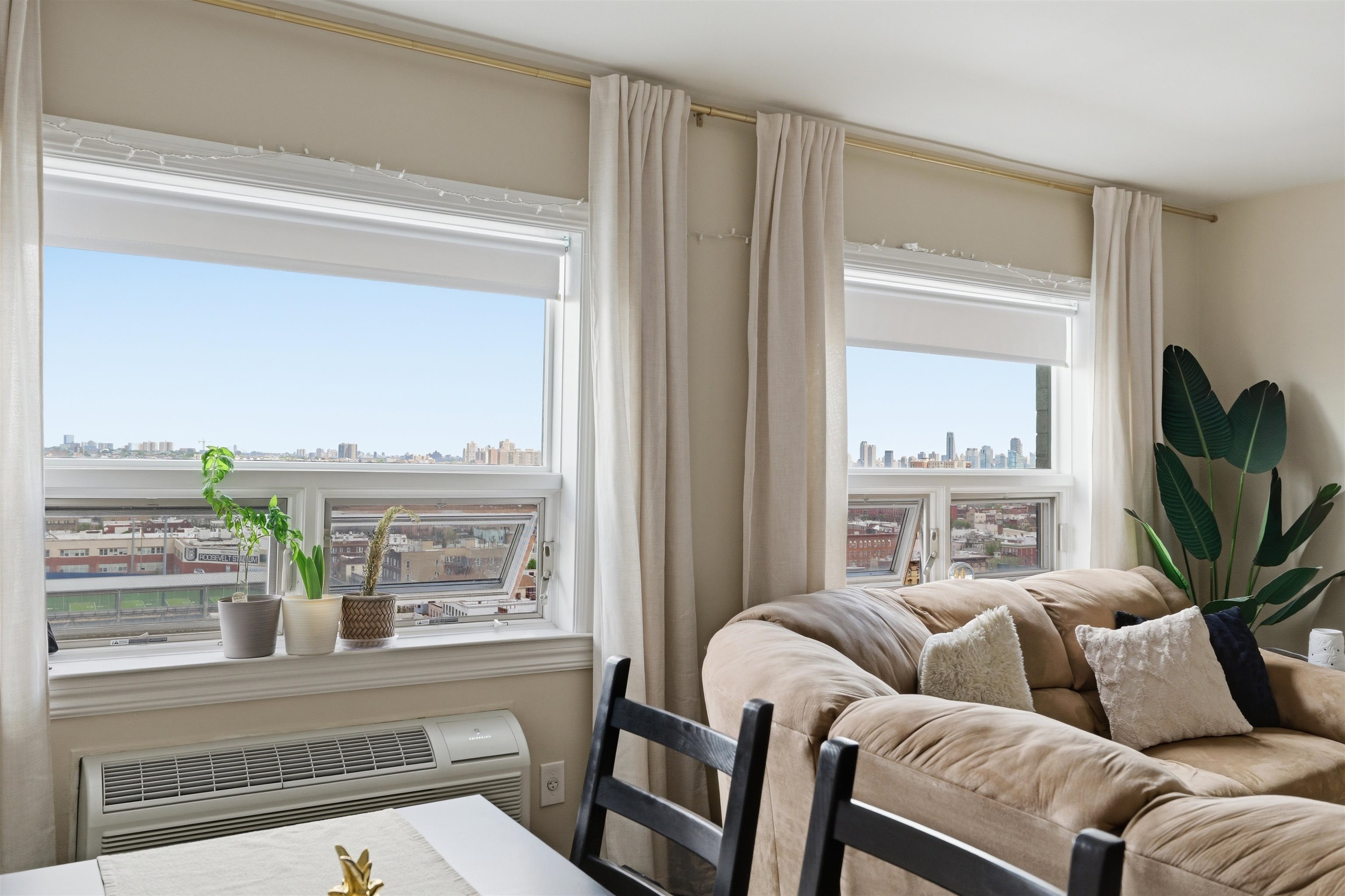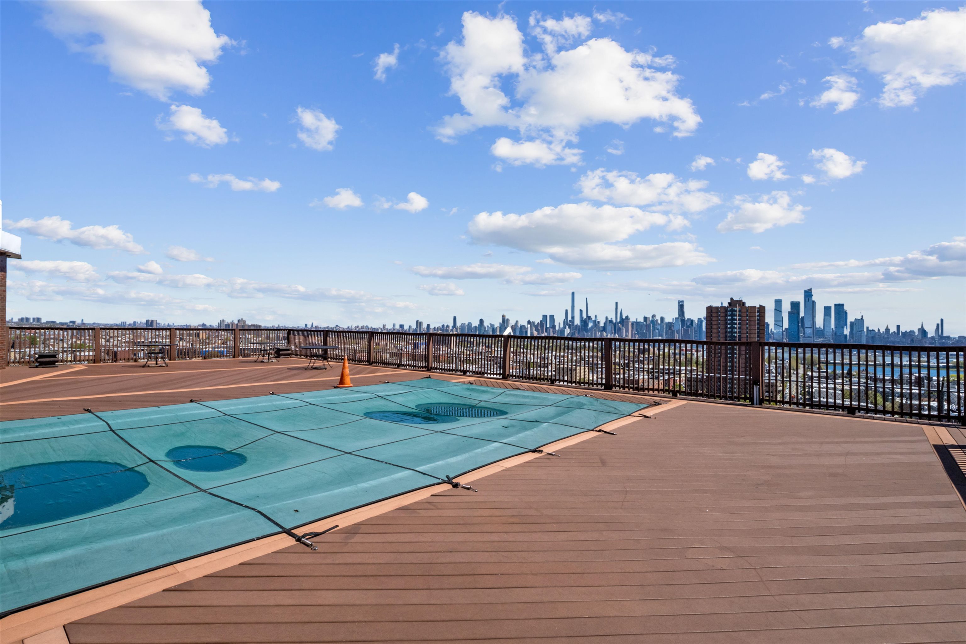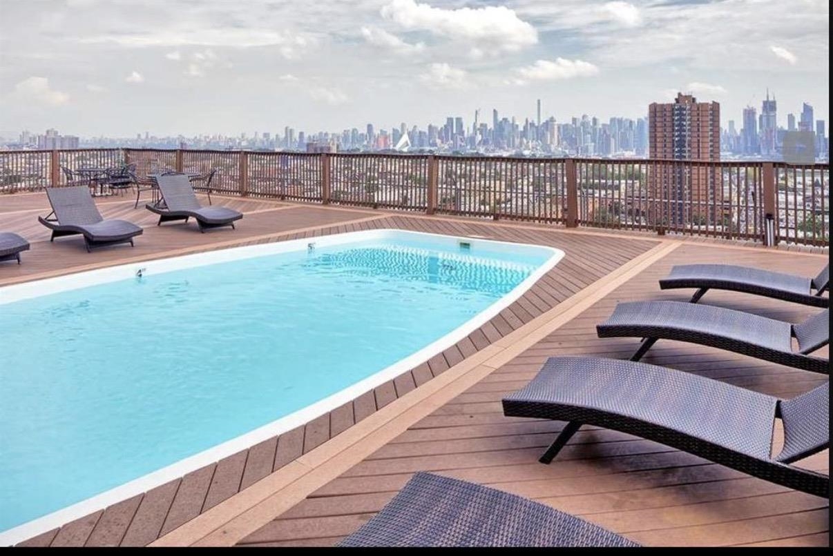 Ideally located just moments from Manhattan, this expansive 1,005 sq ft residence offers an exceptional blend of space, comfort, and elevated urban living, complete with a coveted indoor parking space. This beautifully designed home features a seamless open-concept layout, enhanced by abundant natural light and sweeping skyline views of New York City from every room. Thoughtfully appointed, the residence includes two generous walk-in closets along with additional storage, providing both functionality and convenience. An in-unit washer and dryer adds everyday ease. Residents enjoy access to a full-service lifestyle with 24-hour concierge service and an impressive suite of amenities. The rooftop retreat features a pool, running track, and multiple lounge areas with panoramic views, creating a true escape above the city. A well-appointed resident lounge and media room, complete with a pool table, kitchen, and large-screen television, offers the perfect setting for entertaining. The fitness center is fully equipped and complemented by sauna and steam rooms, as well as separate men’s and women’s locker facilities. Additional conveniences include secured indoor parking, guest parking, bike storage, and the option to lease an additional parking space within the building. For commuters, a complimentary shuttle service provides direct access to the Hoboken PATH station (schedule in documents tab), and the property is located just 1.5 miles from the Lincoln Tunnel, offering effortless connectivity to Manhattan.