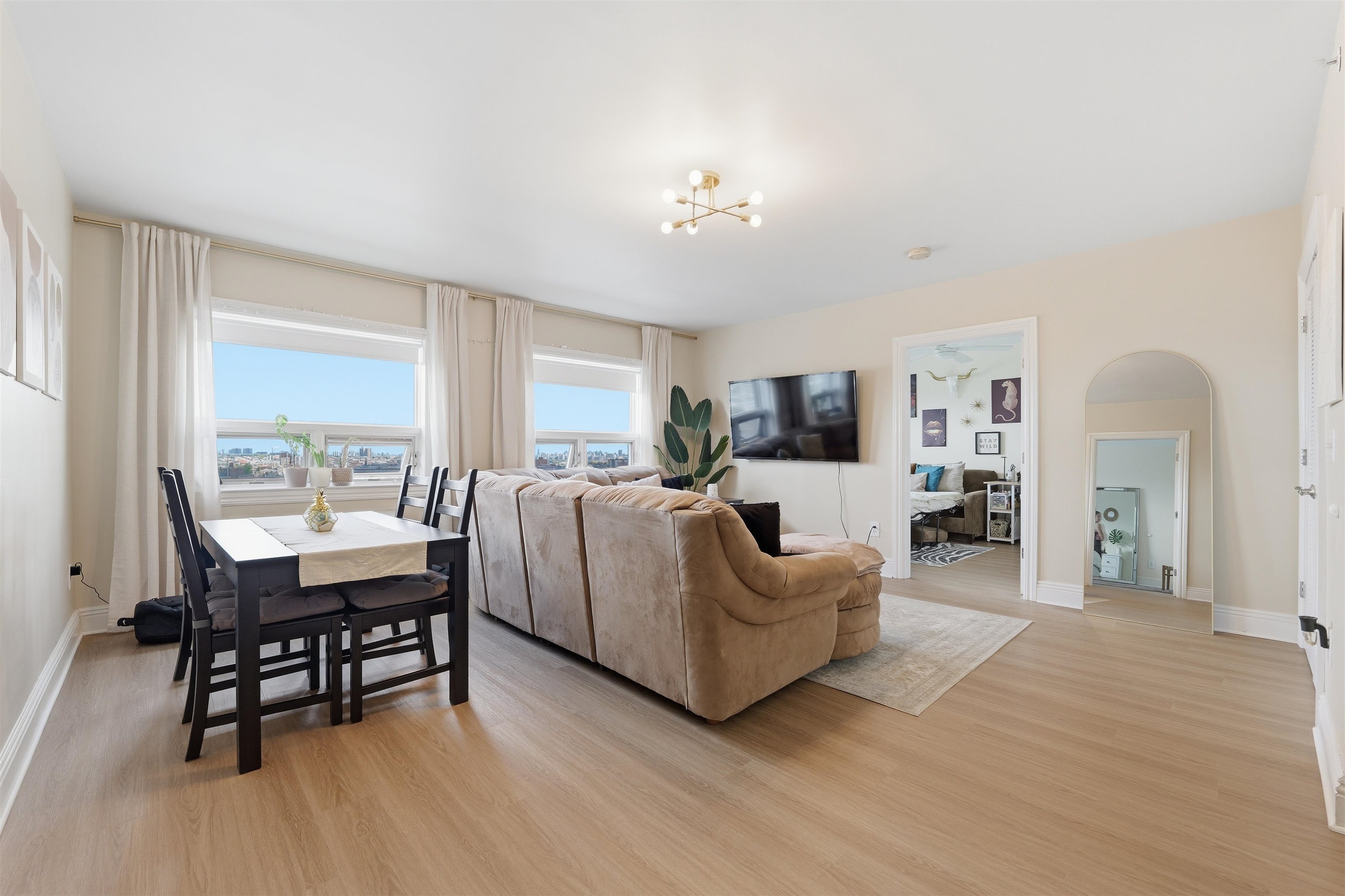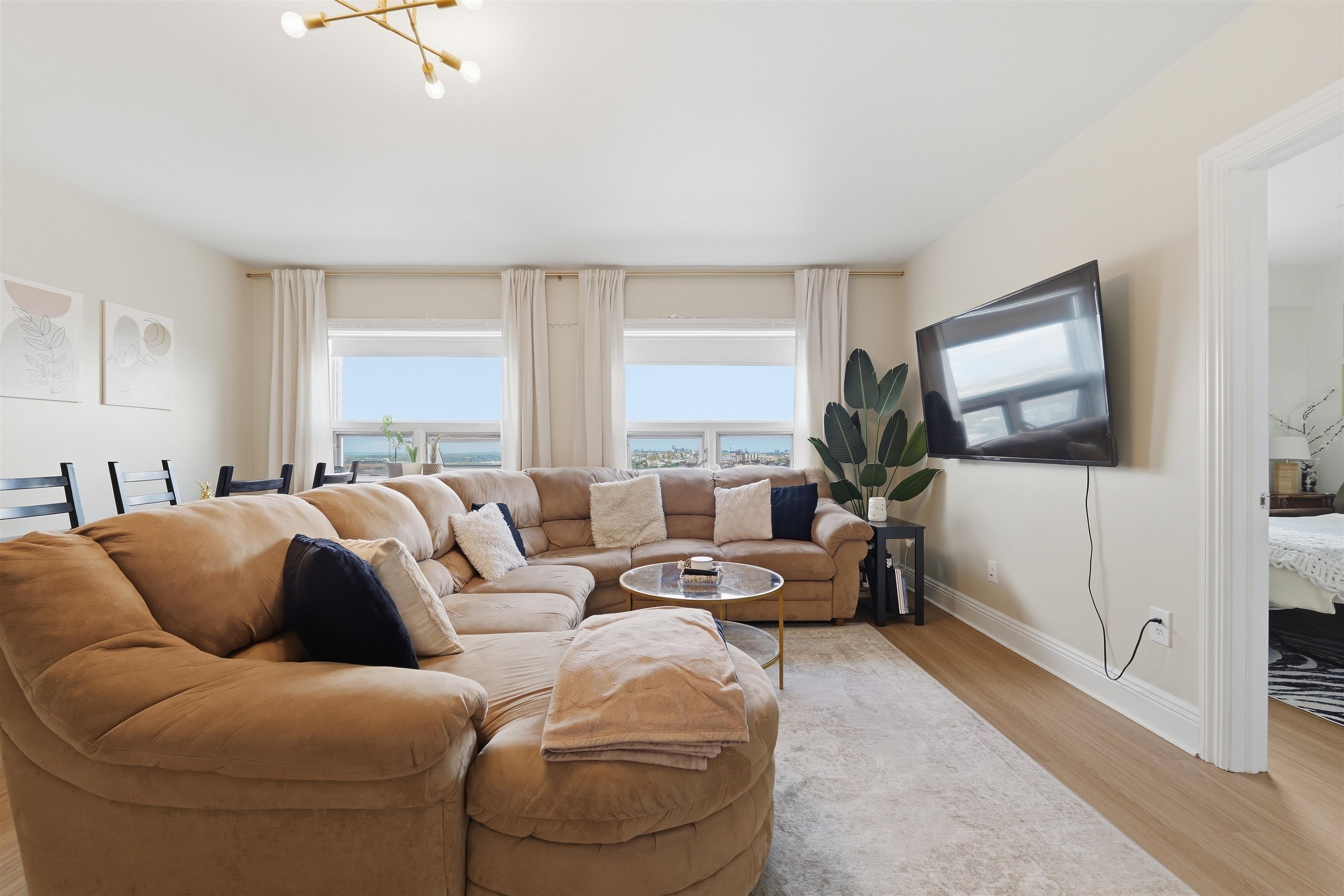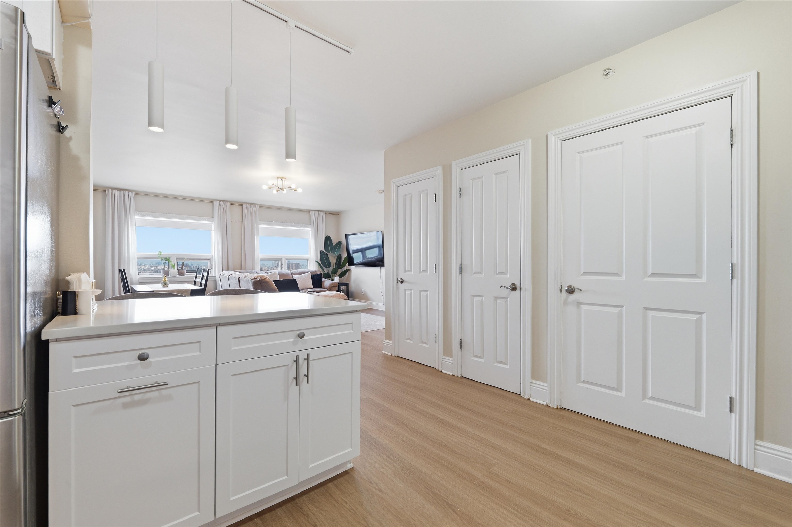 Ideally located just moments from Manhattan, this expansive 1,005 sq ft residence offers an exceptional blend of space, comfort, and elevated urban living, complete with a coveted indoor parking space. This beautifully designed home features a seamless open-concept layout, enhanced by abundant natural light and sweeping skyline views of New York City from every room. Thoughtfully appointed, the residence includes two generous walk-in closets along with additional storage, providing both functionality and convenience. An in-unit washer and dryer adds everyday ease. Residents enjoy access to a full-service lifestyle with 24-hour concierge service and an impressive suite of amenities. The rooftop retreat features a pool, running track, and multiple lounge areas with panoramic views, creating a true escape above the city. A well-appointed resident lounge and media room, complete with a pool table, kitchen, and large-screen television, offers the perfect setting for entertaining. The fitness center is fully equipped and complemented by sauna and steam rooms, as well as separate men’s and women’s locker facilities. Additional conveniences include secured indoor parking, guest parking, bike storage, and the option to lease an additional parking space within the building. For commuters, a complimentary shuttle service provides direct access to the Hoboken PATH station (schedule in documents tab), and the property is located just 1.5 miles from the Lincoln Tunnel, offering effortless connectivity to Manhattan.