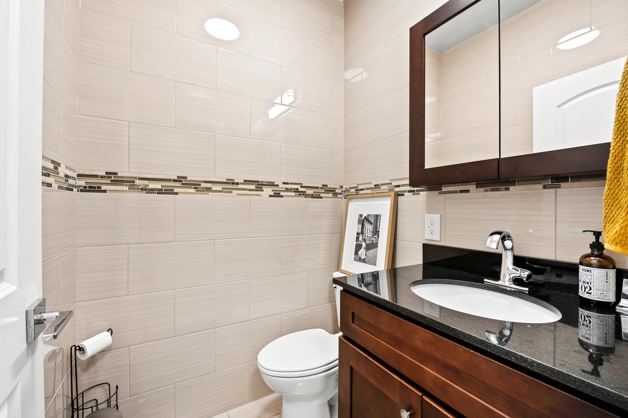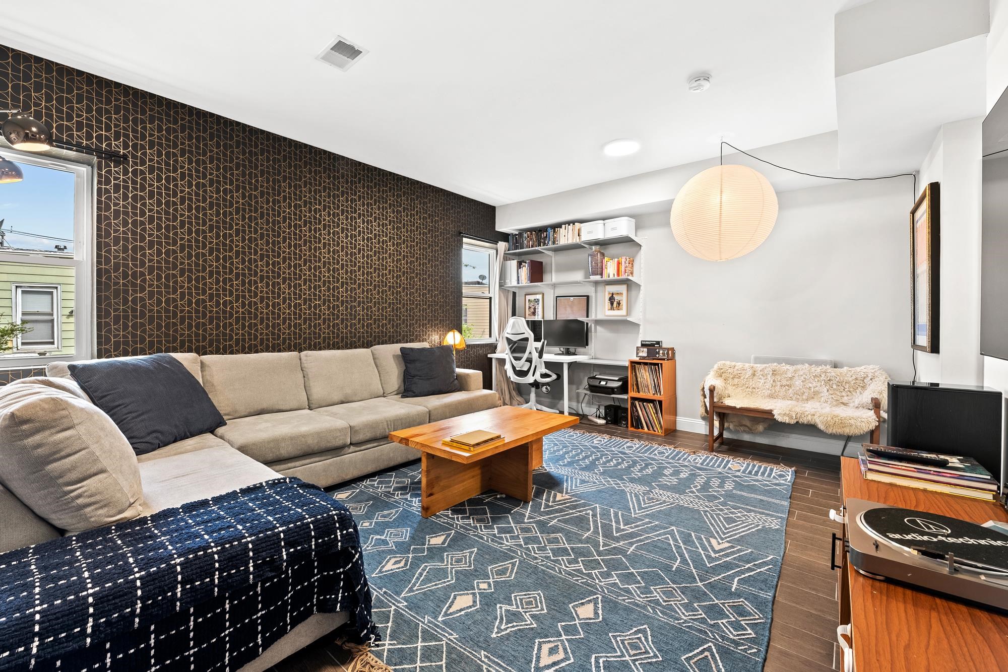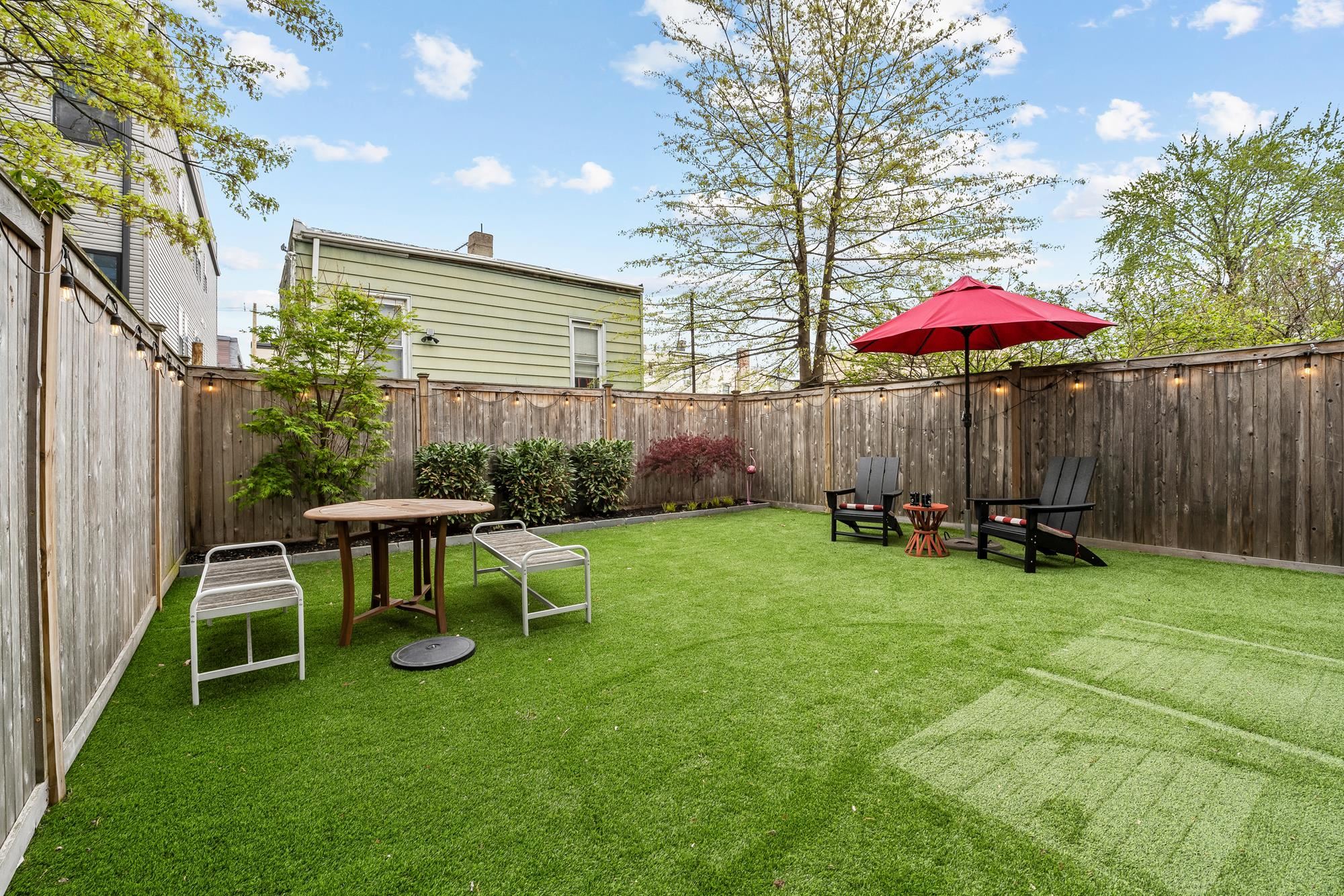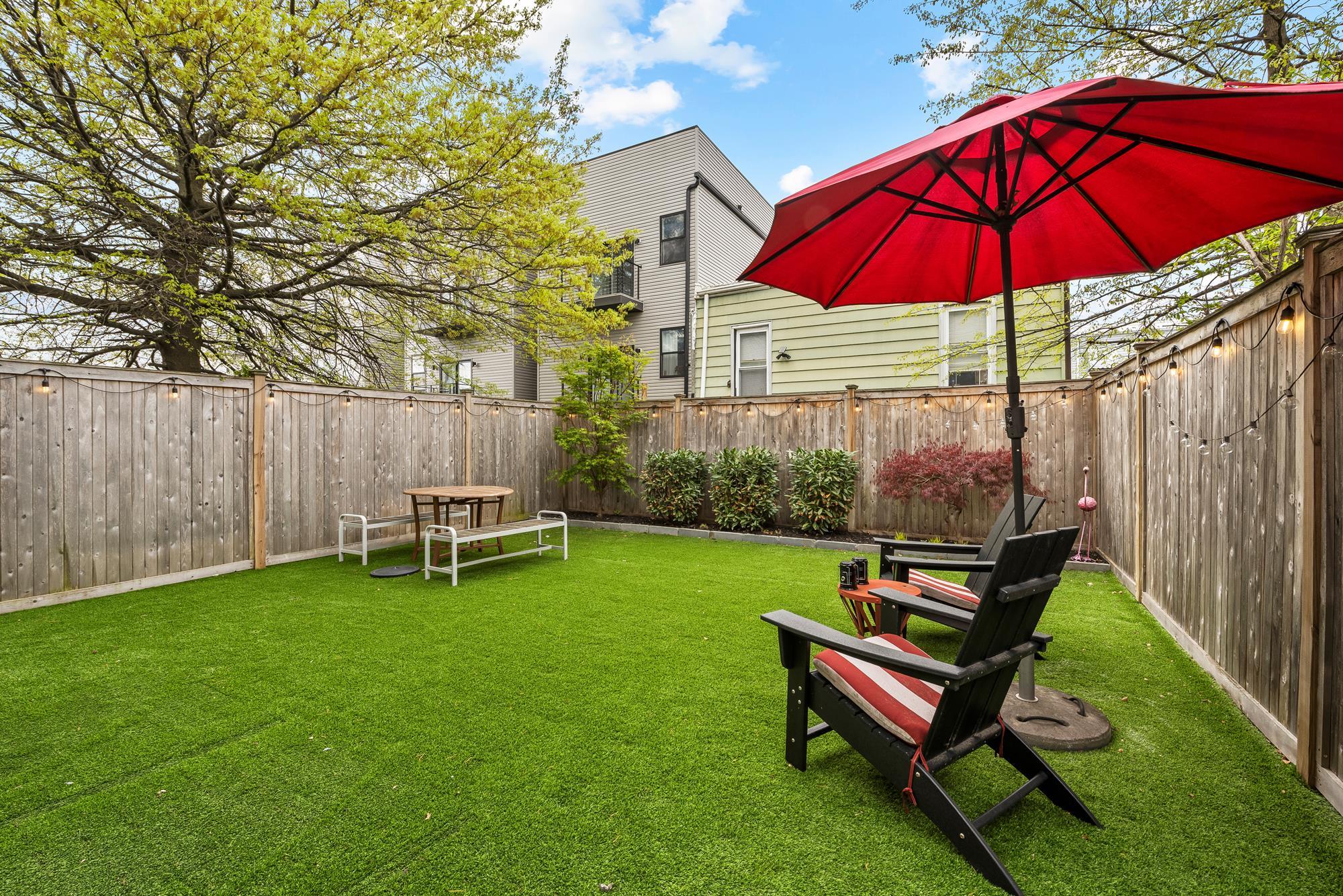 Beautifully updated two-level home in the heart of Jersey City offering 3 bedrooms and 2.5 baths, plus a private backyard and tandem garage parking. Bright open-concept living and dining area features a modern kitchen with quartz countertops, custom cabinetry, stainless steel appliances, and a large island. Flexible bonus space is perfect for a home office, gym, or additional living area. Lower level includes a separate living space, half bath, laundry, and direct access to the backyard. Spacious primary suite with walk-in closet and well-appointed bathrooms throughout.Recent upgrades include a brand new AC system and new water heater for added comfort and efficiency. Ideally located on a tree-lined street near Liberty State Park, Light Rail, and easy NYC access.