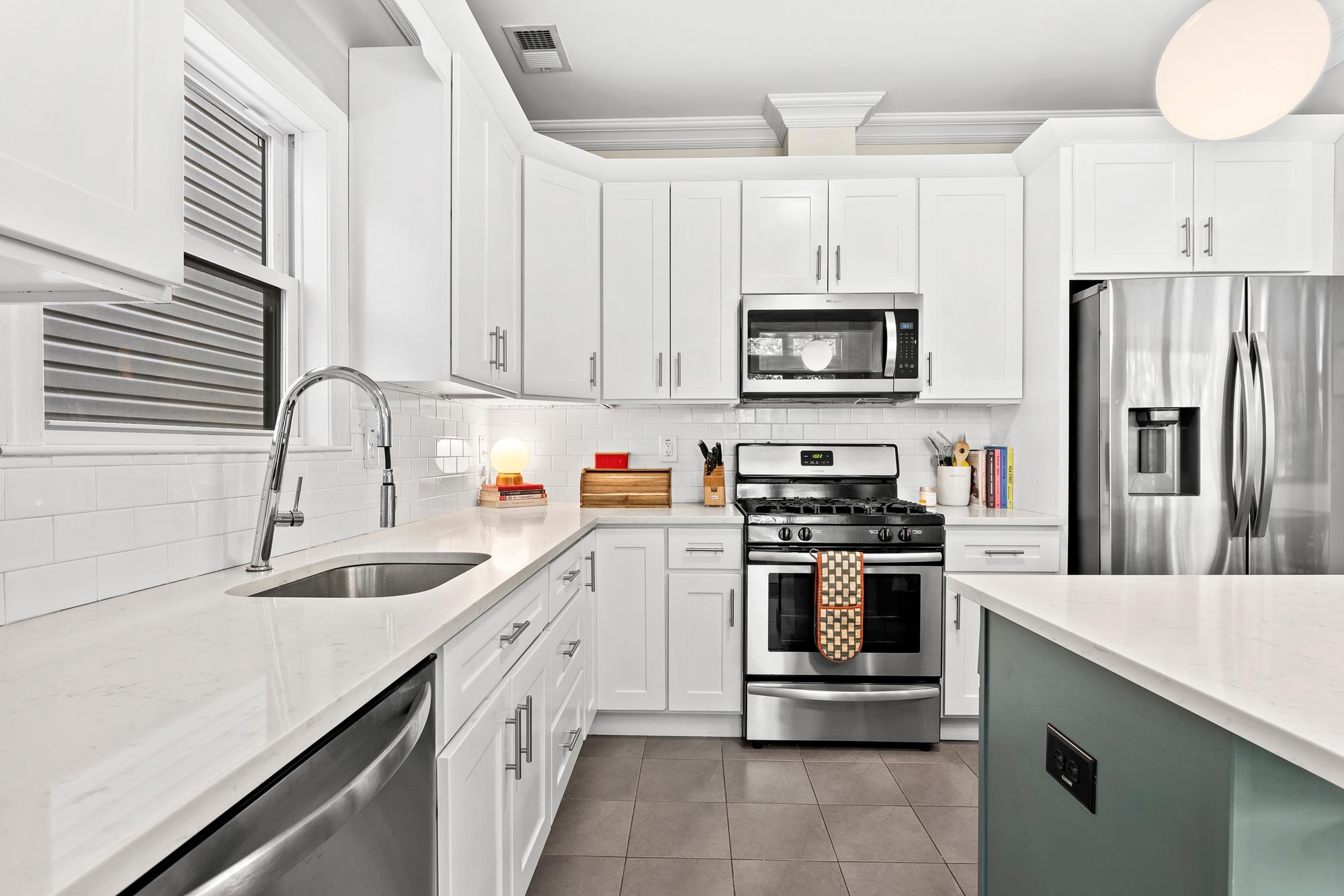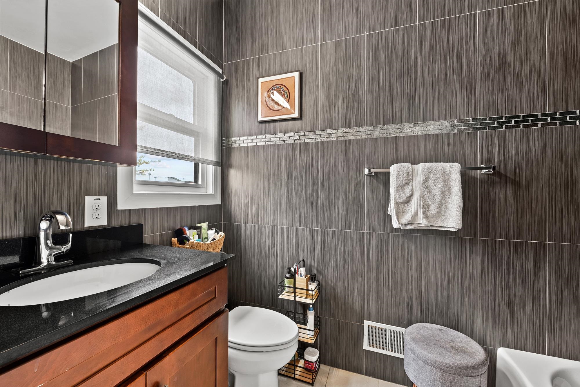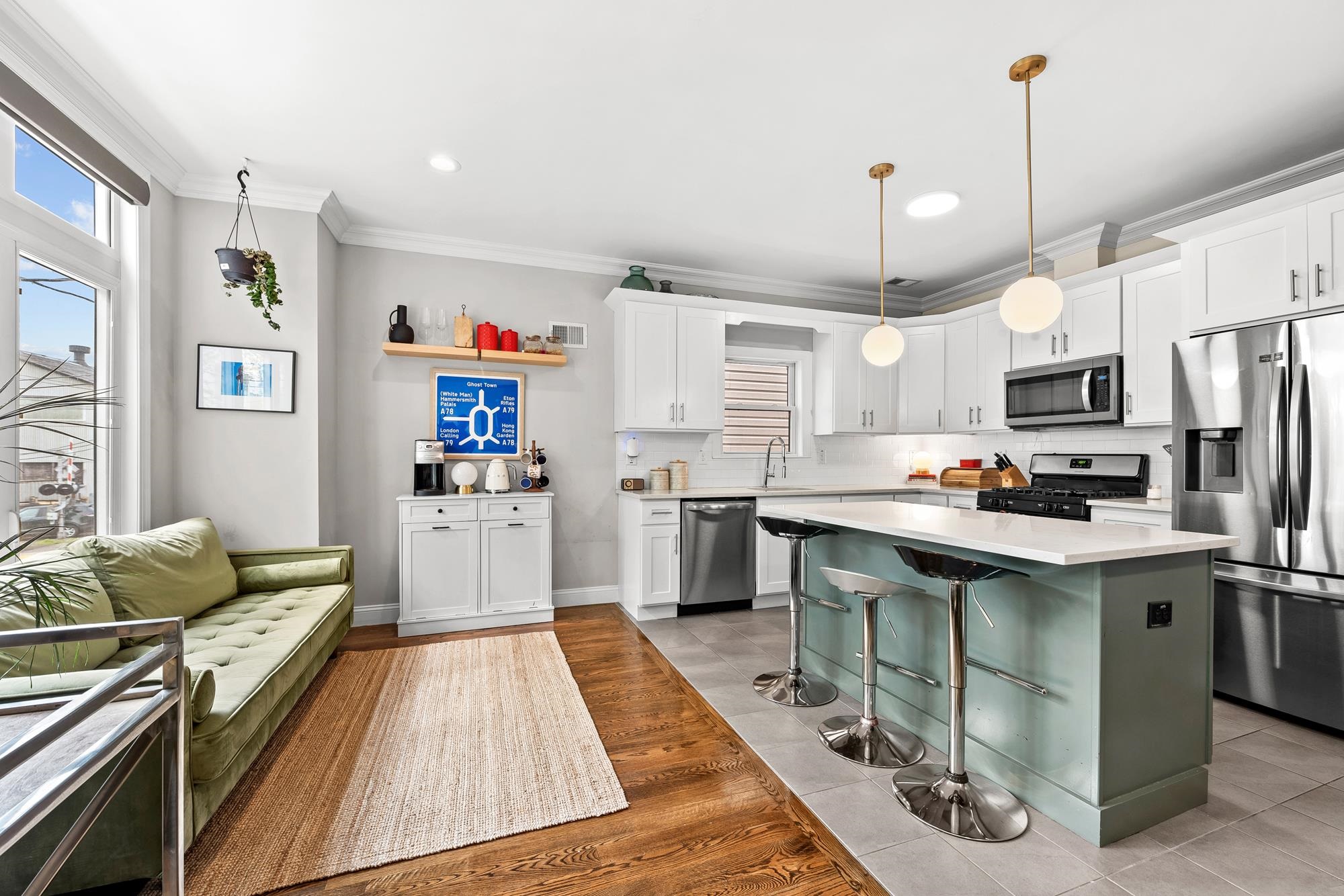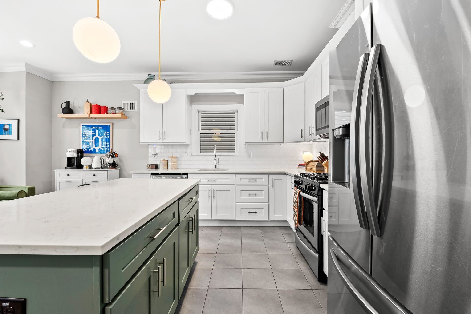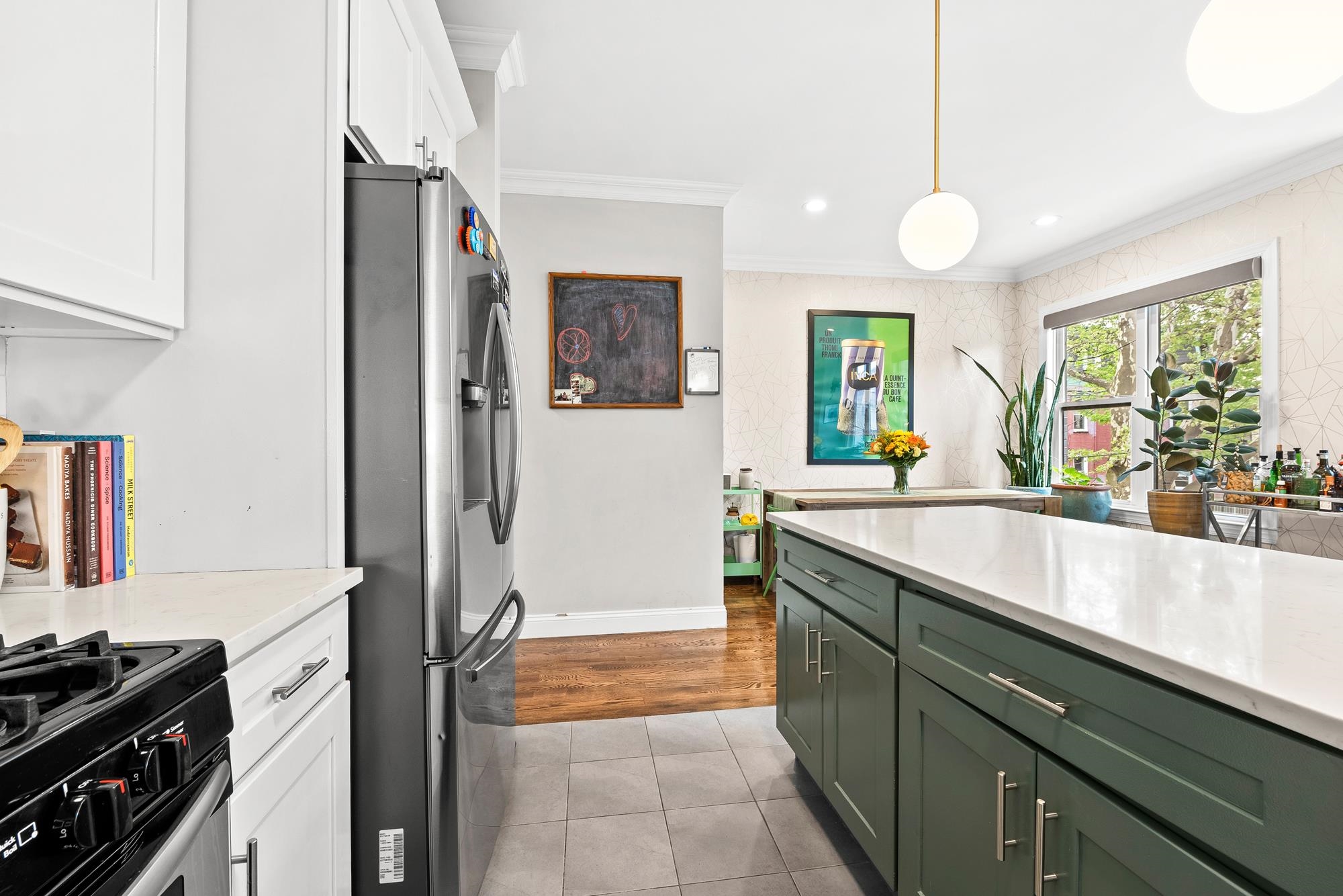 Beautifully updated two-level home in the heart of Jersey City offering 3 bedrooms and 2.5 baths, plus a private backyard and tandem garage parking. Bright open-concept living and dining area features a modern kitchen with quartz countertops, custom cabinetry, stainless steel appliances, and a large island. Flexible bonus space is perfect for a home office, gym, or additional living area. Lower level includes a separate living space, half bath, laundry, and direct access to the backyard. Spacious primary suite with walk-in closet and well-appointed bathrooms throughout.Recent upgrades include a brand new AC system and new water heater for added comfort and efficiency. Ideally located on a tree-lined street near Liberty State Park, Light Rail, and easy NYC access.