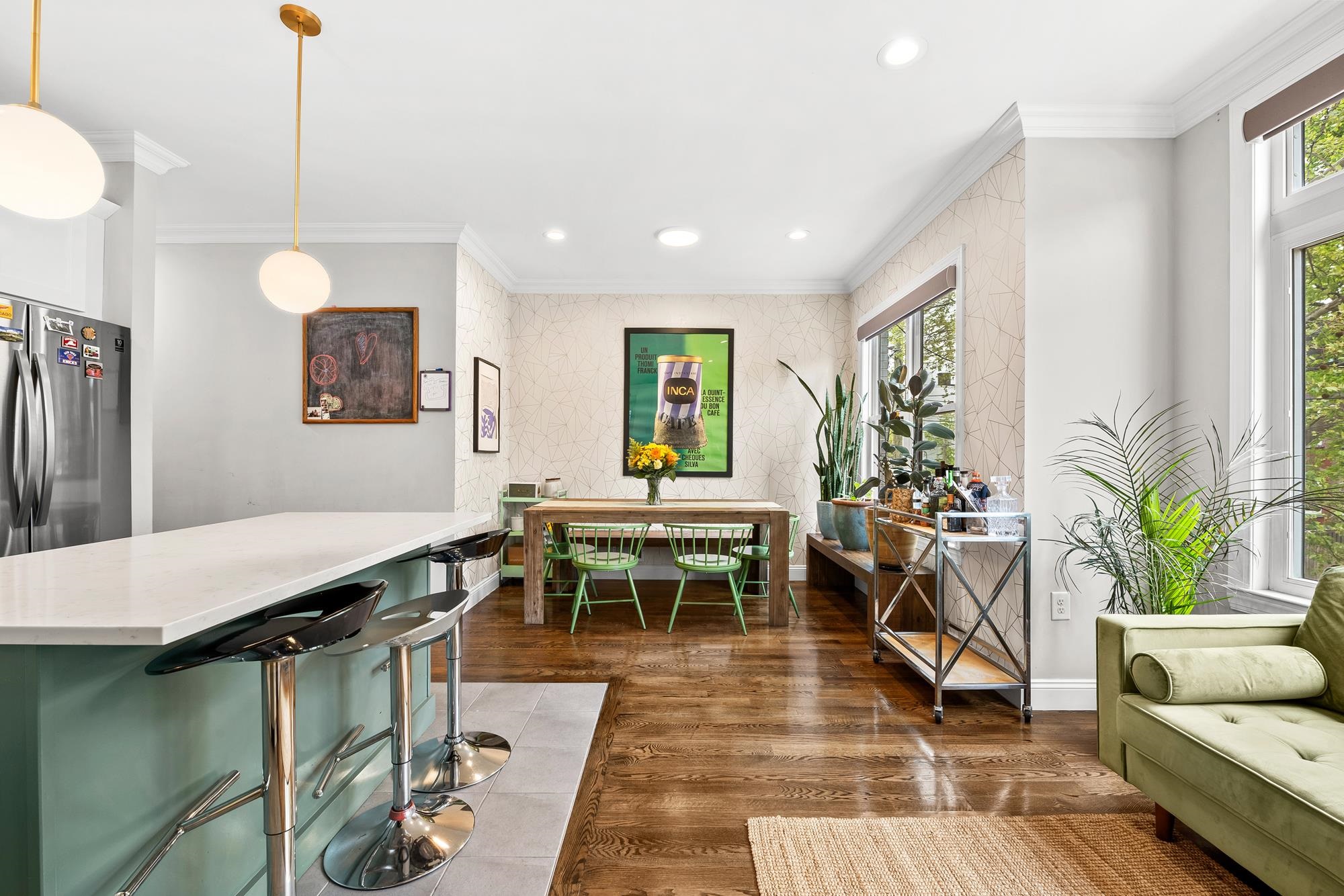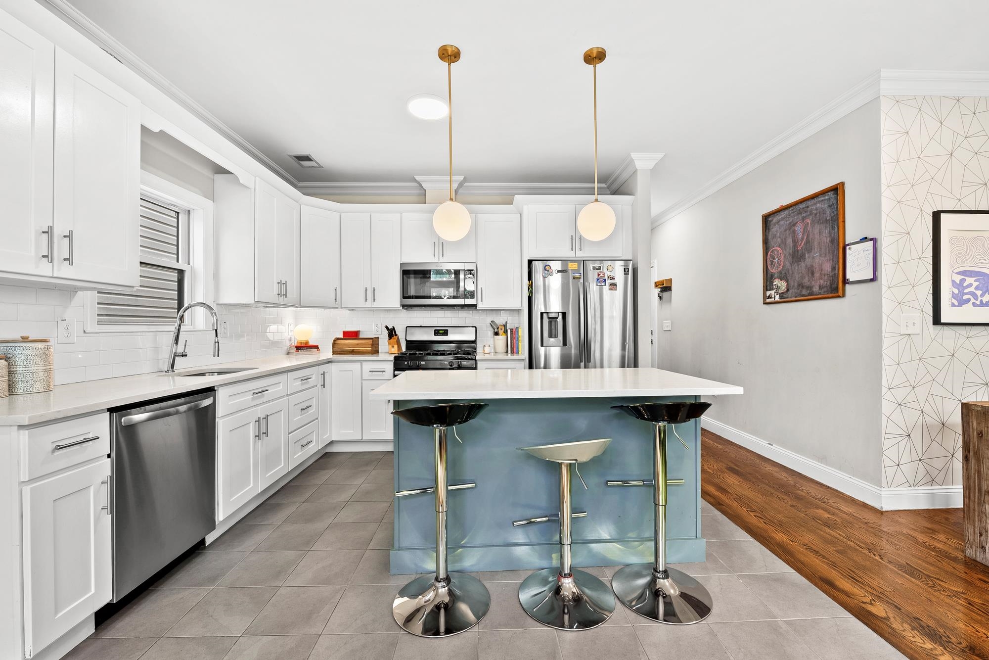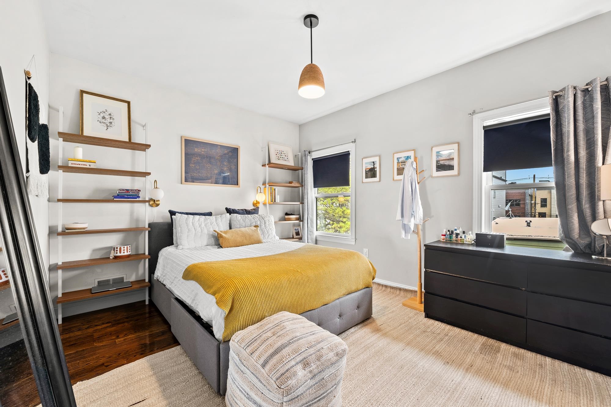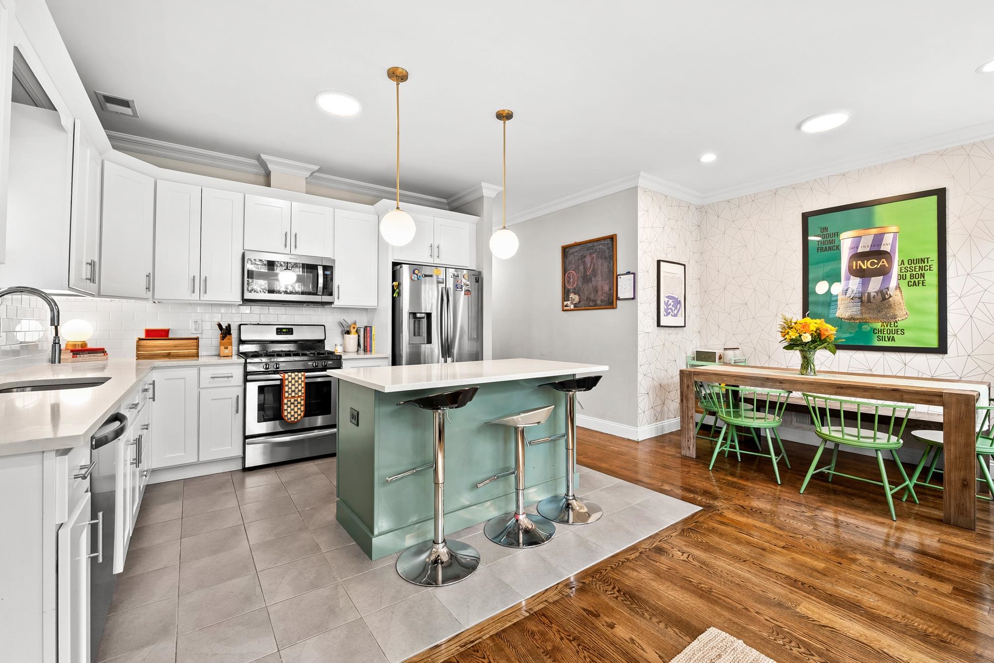Beautifully updated two-level home in the heart of Jersey City offering 3 bedrooms and 2.5 baths, plus a private backyard and tandem garage parking. Bright open-concept living and dining area features a modern kitchen with quartz countertops, custom cabinetry, stainless steel appliances, and a large island. Flexible bonus space is perfect for a home office, gym, or additional living area. Lower level includes a separate living space, half bath, laundry, and direct access to the backyard. Spacious primary suite with walk-in closet and well-appointed bathrooms throughout.Recent upgrades include a brand new AC system and new water heater for added comfort and efficiency. Ideally located on a tree-lined street near Liberty State Park, Light Rail, and easy NYC access.