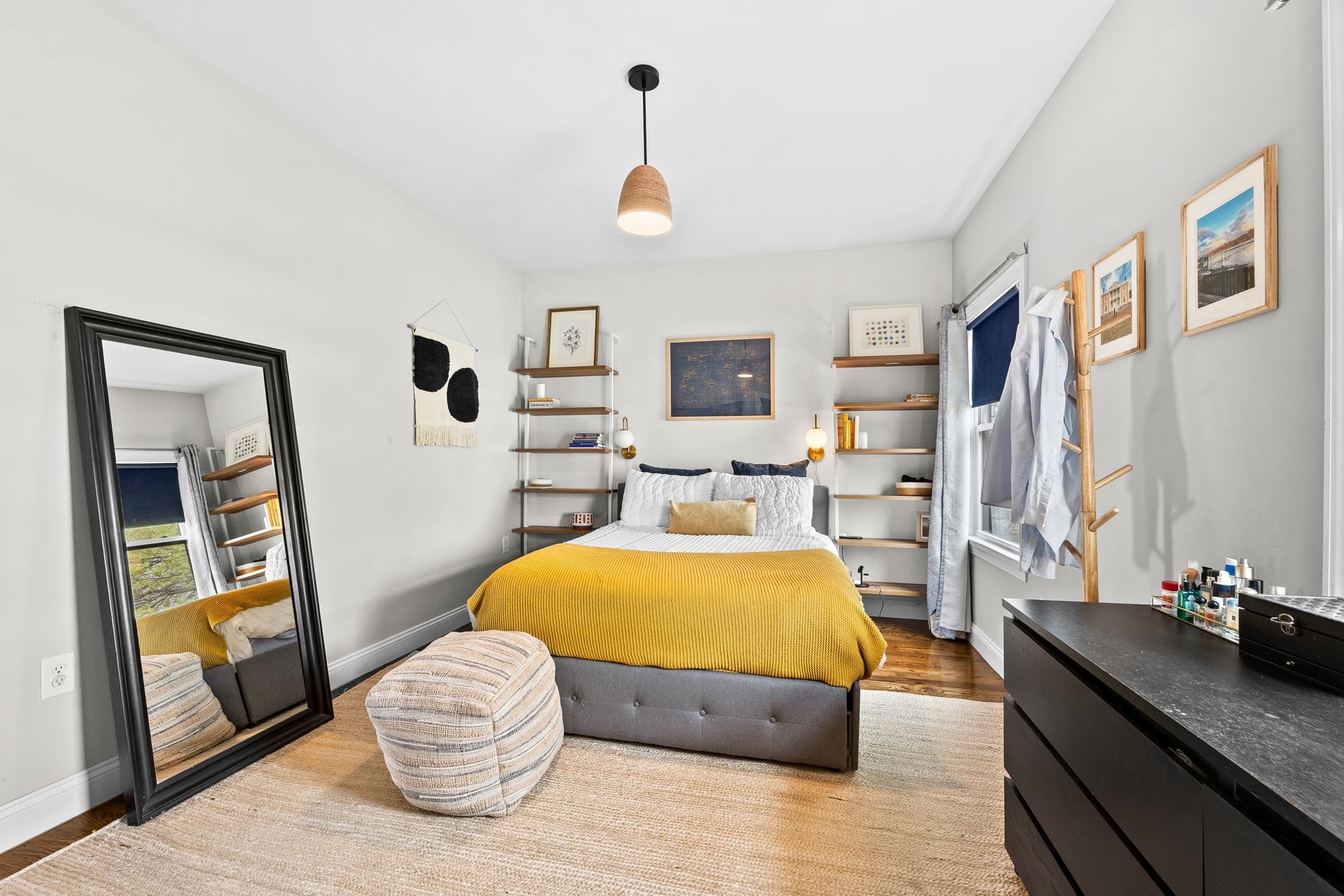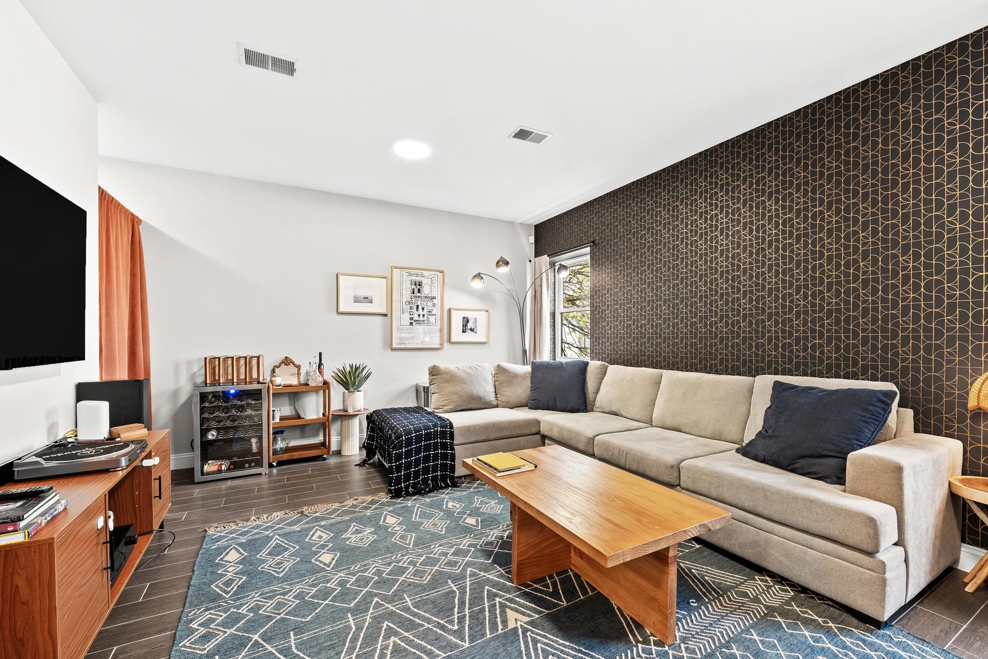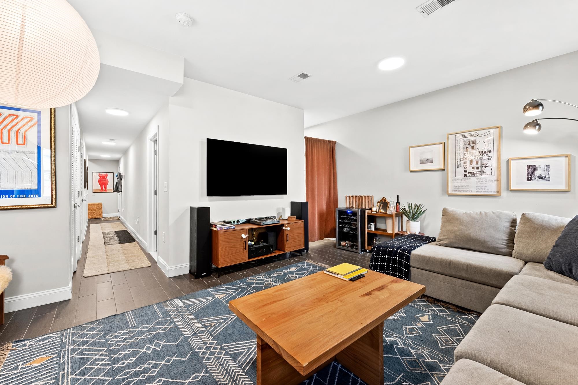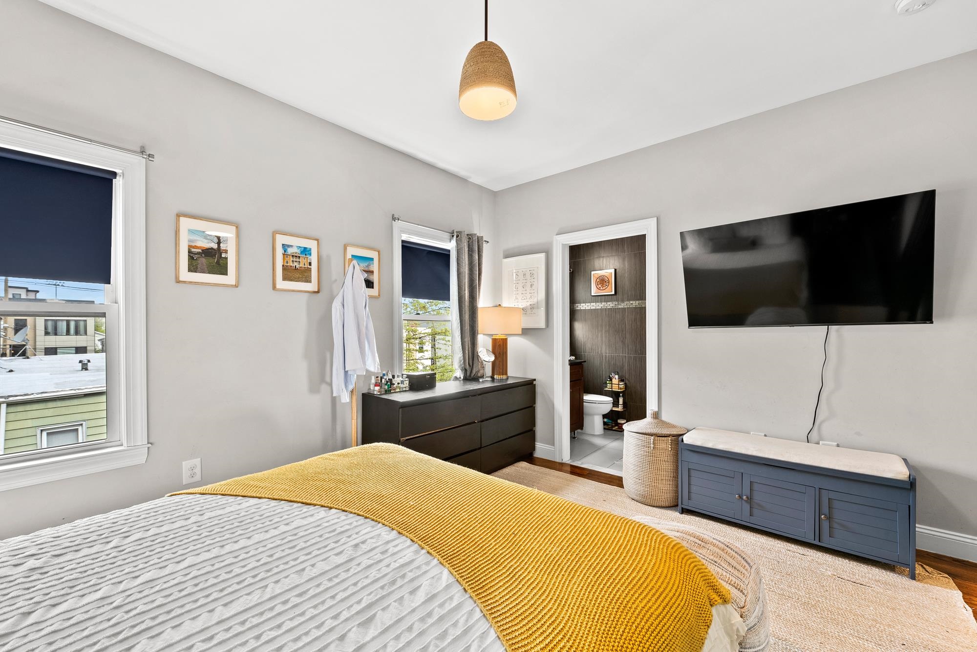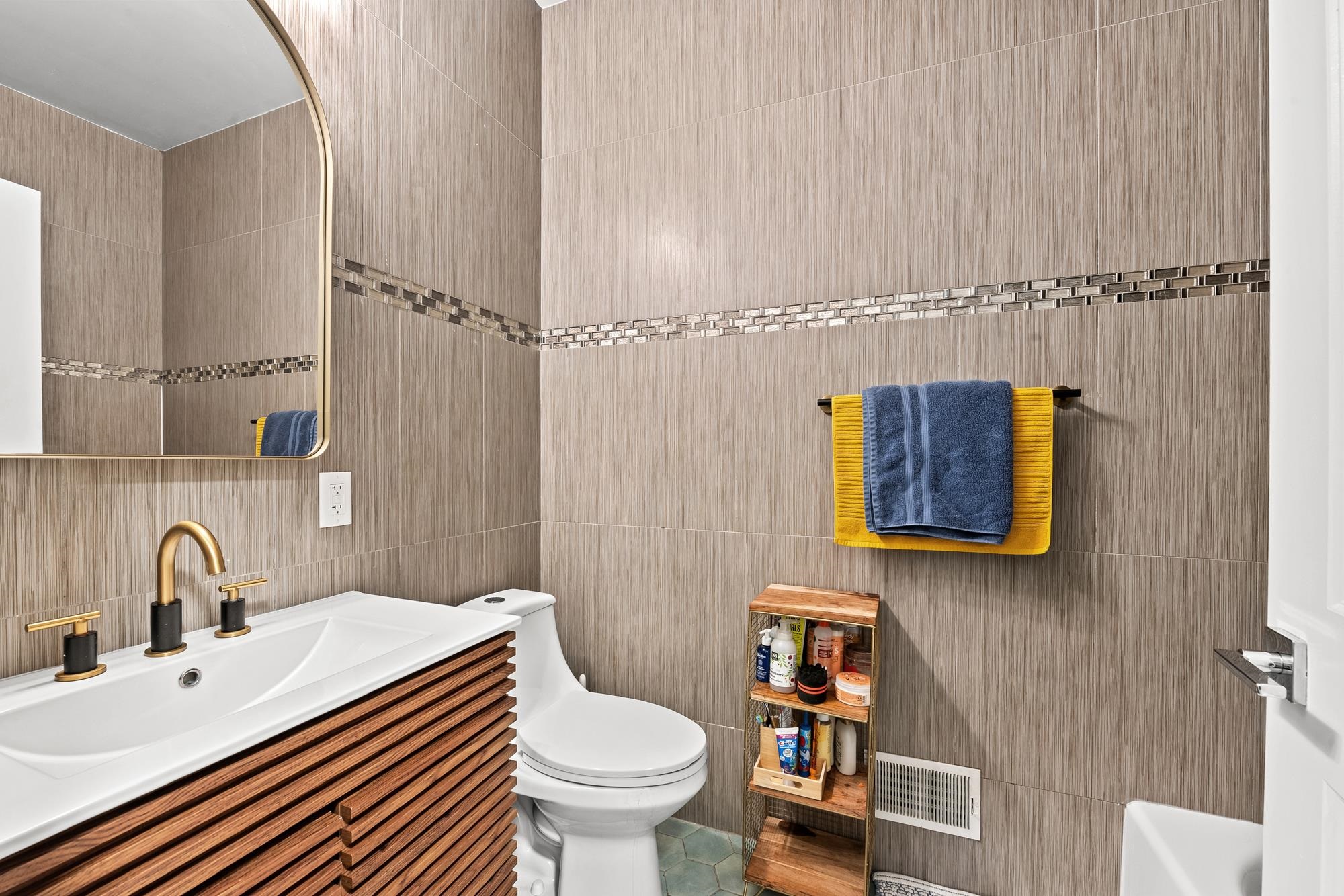 Beautifully updated two-level home in the heart of Jersey City offering 3 bedrooms and 2.5 baths, plus a private backyard and tandem garage parking. Bright open-concept living and dining area features a modern kitchen with quartz countertops, custom cabinetry, stainless steel appliances, and a large island. Flexible bonus space is perfect for a home office, gym, or additional living area. Lower level includes a separate living space, half bath, laundry, and direct access to the backyard. Spacious primary suite with walk-in closet and well-appointed bathrooms throughout.Recent upgrades include a brand new AC system and new water heater for added comfort and efficiency. Ideally located on a tree-lined street near Liberty State Park, Light Rail, and easy NYC access.