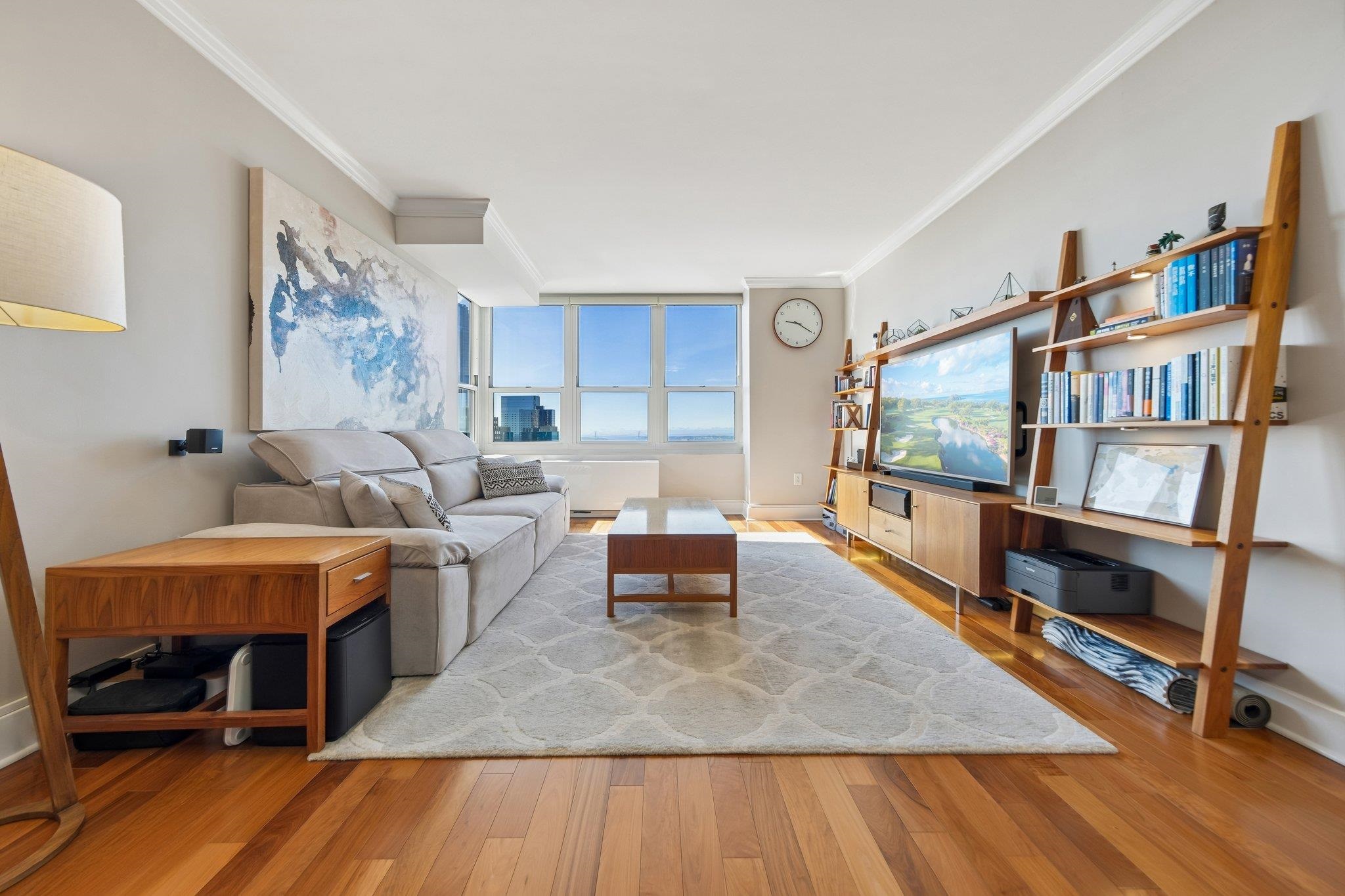 Private patio living in the sought-after Hamilton Park neighborhood — this beautifully renovated two-bedroom home blends modern upgrades, classic architectural charm, and an unbeatable Downtown Jersey City location just moments from the Grove Street PATH. Situated on the first floor of a well-maintained boutique three-unit, pet-friendly building, this thoughtfully designed residence offers approximately 851 square feet of comfortable living space along with a private covered patio ideal for outdoor dining, entertaining, or relaxing. The home opens into a bright and inviting living and dining area highlighted by beautiful bay windows that fill the space with natural light while adding classic architectural character. Crown molding, recessed tech-enabled LED lighting, and dark-stained hardwood floors create a warm and sophisticated atmosphere throughout the main living spaces. Sliding glass doors extend the living area outdoors to a private covered patio, complete with a retractable awning and integrated lighting that allows for comfortable evening enjoyment. The recently designer-renovated kitchen is a standout feature of the home, designed with both style and functionality in mind. It showcases quartz countertops, white shaker-style cabinetry with full-height storage, a sleek slab-style backsplash, under-cabinet lighting, brass hardware accents, tech-enabled stainless steel appliances, and striking black hexagonal tile flooring. The layout provides generous workspace and storage while maintaining a clean and modern aesthetic. Both bedrooms are well-proportioned and thoughtfully positioned within the home. The primary bedroom features a charming bay window and a custom closet system providing excellent organization and storage. The second bedroom offers exceptional flexibility and works perfectly as a guest room, nursery, or dedicated work-from-home office—an increasingly valuable feature for today’s buyers. The bathroom has also been tastefully renovated with classic white subway tile and a Carrara marble-top vanity, creating a timeless and elegant space. Additional features include efficient mini-split heating and cooling, recessed LED lighting, ceiling fans, an in-home washer and dryer, and a large under-stair storage closet providing valuable additional space rarely found in similar Downtown residences. Smart home enhancements include keyless entry, recessed LED lighting, LG kitchen appliances, and a home security system for added convenience and peace of mind. For added buyer confidence, the seller will provide a one-year home warranty through Assurant at closing. Perfectly positioned on a quiet residential block within the Harsimus Cove neighborhood, the home is just moments from the beloved Hamilton Park, known for its tennis courts, dog runs, playgrounds, and vibrant community events. The location also offers easy access to the lively dining scene surrounding the Newark Avenue Pedestrian Plaza, where local favorites include Maxwell Alley, The Archer, San Patricios, the beloved ramen spot Ani Ramen House, and neighborhood café The Hive. Commuting to Manhattan is effortless with the nearby Grove Street PATH Station providing direct service to Midtown and the World Trade Center via the PATH or the 126 NJ Transit Bus at Hamilton Park via Hoboken to NY Port Authority. Combining private outdoor space, modern upgrades, architectural charm, and an unbeatable Downtown Jersey City location, this home presents an exceptional opportunity to enjoy one of the most vibrant and sought-after neighborhoods in the area.