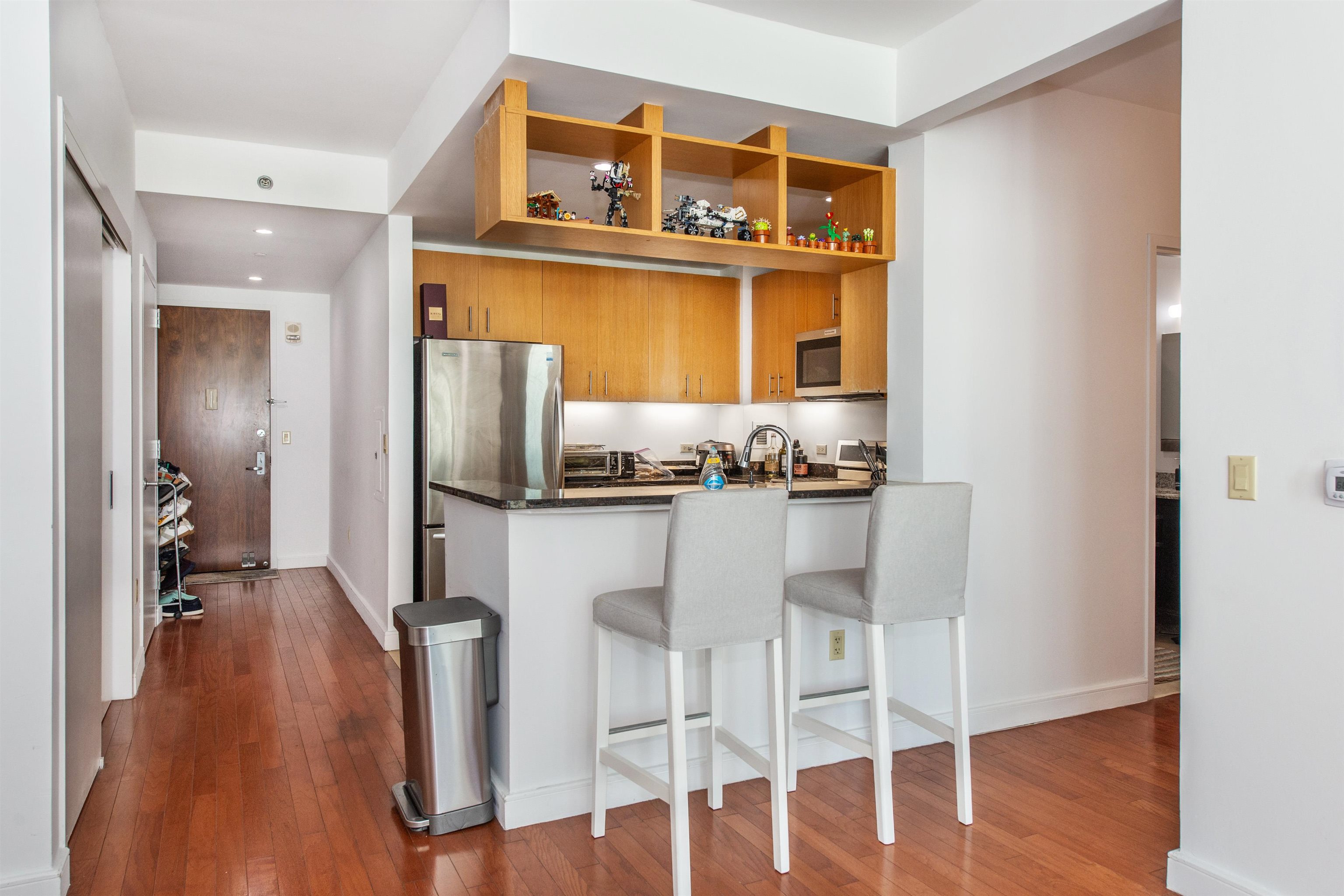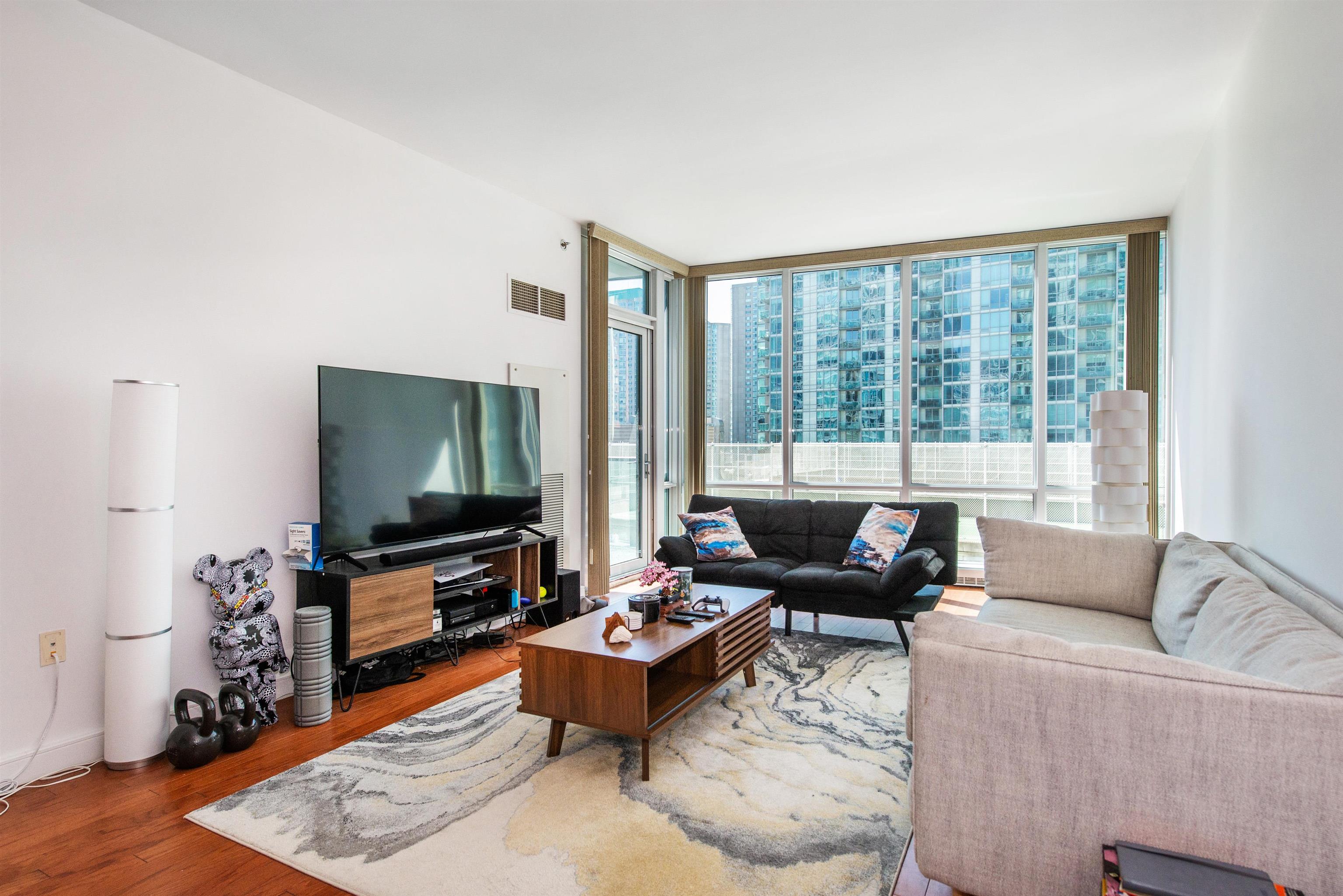 South-Facing 2-Bed 2-Bath condo with private balcony on the 10th floor in a luxury waterfront building! Open layout with floor to ceiling windows, downtown Manhattan/Hudson River view, stainless steel appliances and hardwood floor. Upgraded appliances including KitchenAid Gas Range (2023), Dishwasher (2020) and Microwave (2019), Samsung Washer & Dryer (2019). Building amenities include 24/7 concierge, fitness center, Jacuzzi, sauna room, resident lounge, conference room, children's playroom & a roof deck with NYC views. Conveniently located near Newport Green Park, Morton Williams Supermarket, Newport and Hoboken Path, Light Rail, Ferry, shops and restaurants. A commuters' dream... make your appointment today!