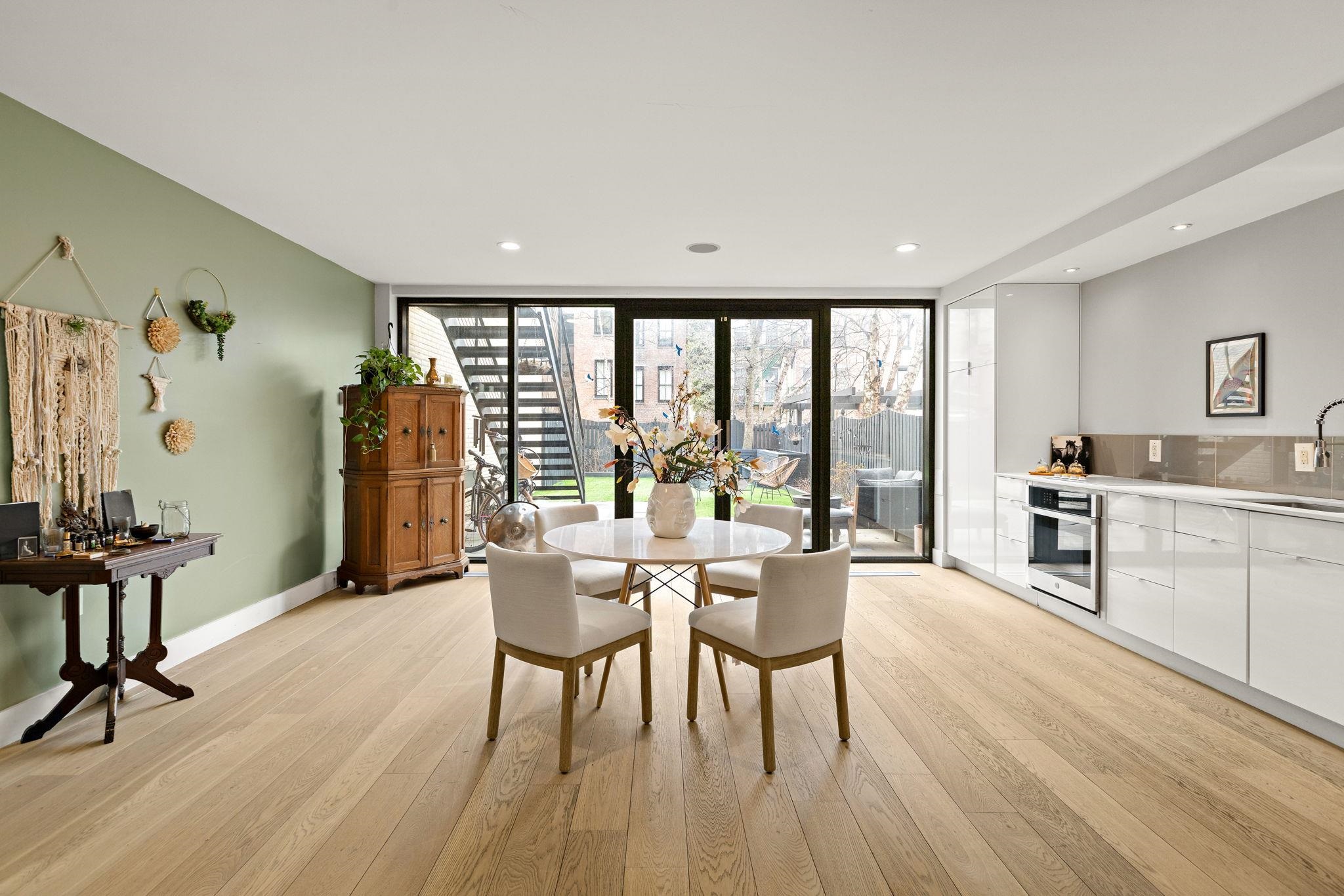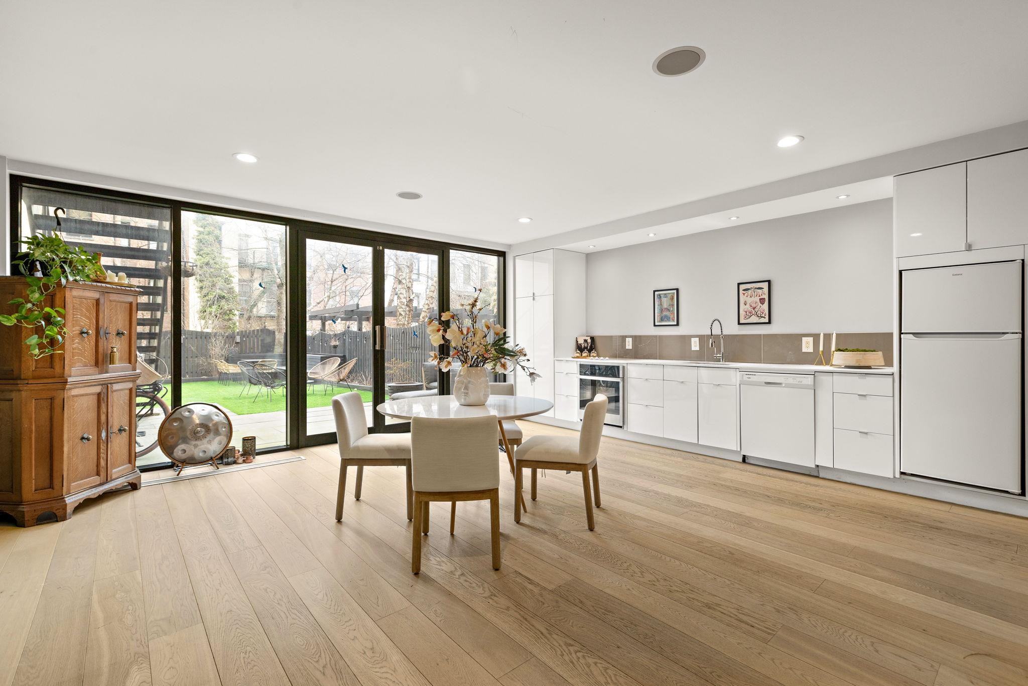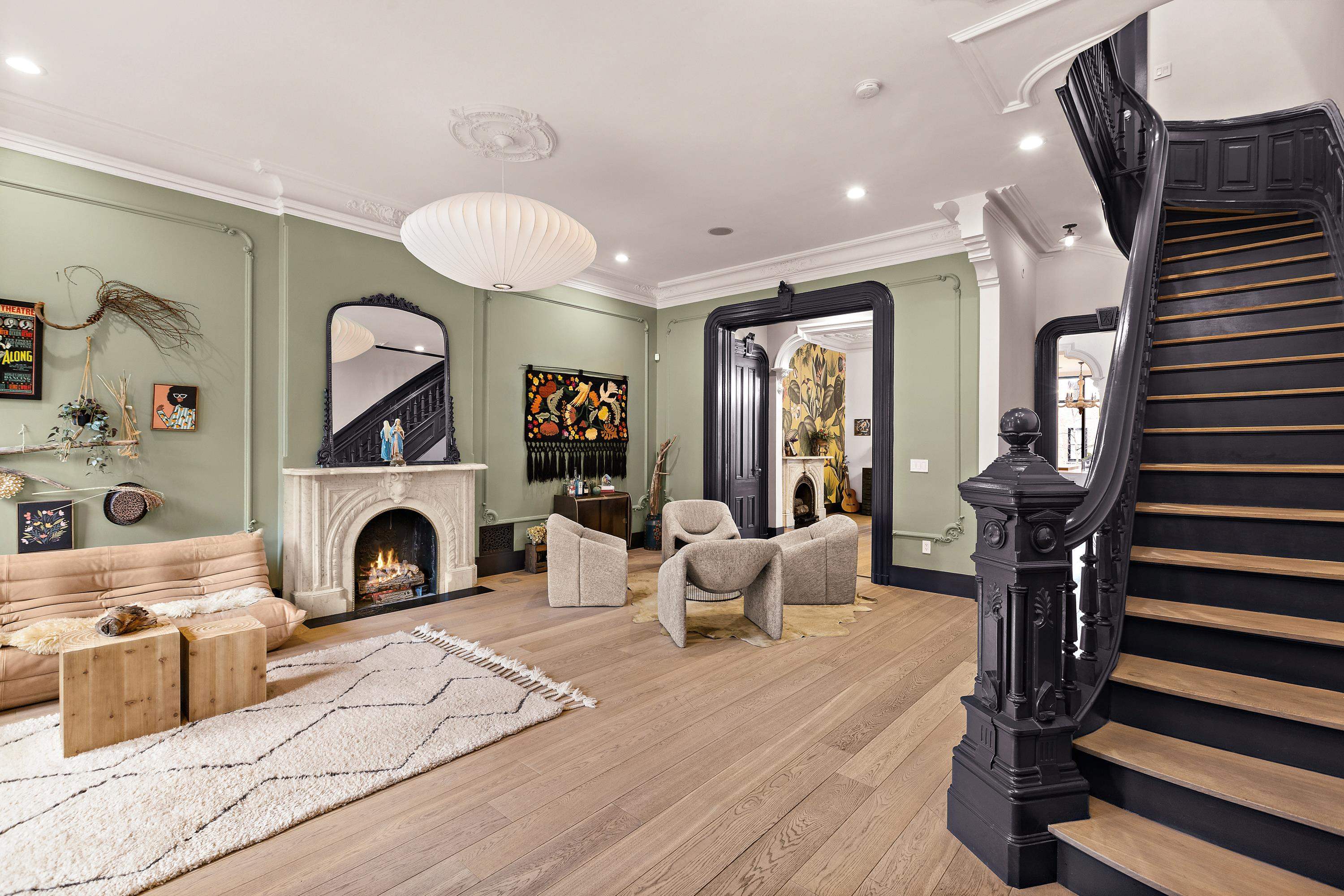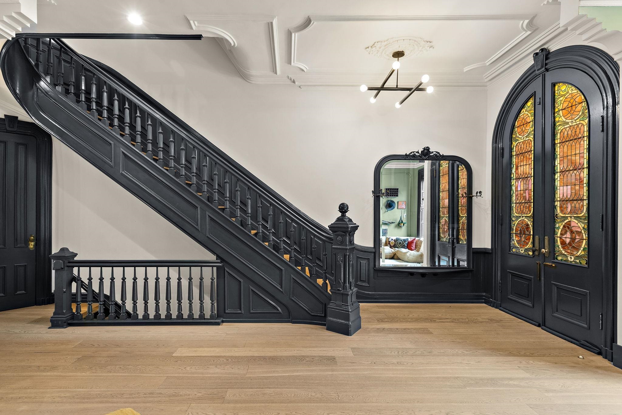 A rare and architecturally significant brownstone on one of Hoboken’s most coveted blocks, 926 Hudson Street is a fully realized design residence—where historic craftsmanship and modern architecture are brought into deliberate and striking balance. Renovated and expanded by French interior designer Isabelle Péribère and featured in The New York Times, the home stands apart not only for its scale, but for the clarity and confidence of its design vision. Spanning approximately 5,000 square feet on an oversized 21.25’ x 110’ lot, the residence preserves the grandeur of a 19th-century brownstone while introducing a refined contemporary sensibility. The restored façade and elevated stoop set the tone, leading into interiors defined by soaring 11+ foot ceilings, intricate original plasterwork, marble mantels, stained glass, and a sweeping staircase—all meticulously preserved. The parlor level unfolds as a series of dramatic yet inviting spaces, where original pocket doors and architectural detailing frame a living and dining experience that feels both formal and highly livable. Moments of contrast—color, texture, and light—are thoughtfully introduced, creating interiors that feel curated rather than conventional. At the rear, a striking two-story glass extension transforms the home, filling the space with exceptional natural light and seamlessly connecting the interior to a nearly 950-square-foot landscaped garden. The kitchen is understated and precise, featuring custom cabinetry, Sub-Zero and Miele appliances, a built-in espresso system, and a large central island—designed to integrate seamlessly into the architecture rather than compete with it. The full-floor primary suite is both expansive and serene, anchored by original mantels and restored stained glass, and complemented by a custom dressing area and a spa-like bath with a freestanding soaking tub set against historic windows—a rare and memorable design moment. A large private roof deck directly off the suite provides an additional outdoor living space seldom found at this scale. Upstairs, two additional bedrooms and a flexible office or fourth bedroom with exposed beams, along with two full baths, offer versatility for family or guests. The garden level—with its own entrance—includes a fifth bedroom, media room, full bath, and additional living space, while the lower level features a hidden lounge and bar, along with laundry and storage. Throughout, original elements—exposed brick, shutters, moldings, and handcrafted details—are paired with modern upgrades including wide-plank European oak flooring, multi-zone climate control, Marvin windows, integrated sound, and updated systems. Set behind a restored brownstone façade with custom wrought iron and bluestone, 926 Hudson Street is not simply a renovation, but a cohesive architectural statement—offering a level of design integrity, scale, and presence rarely available in Hoboken.