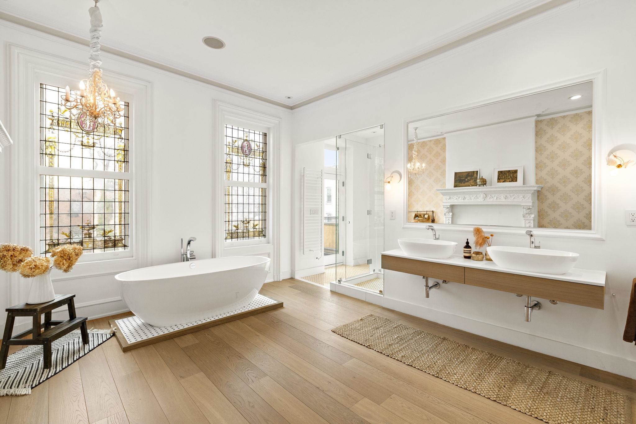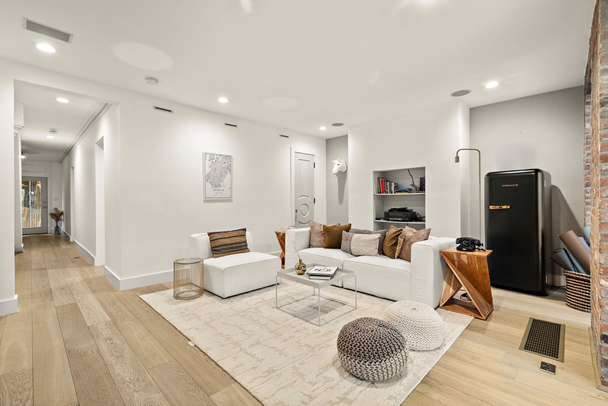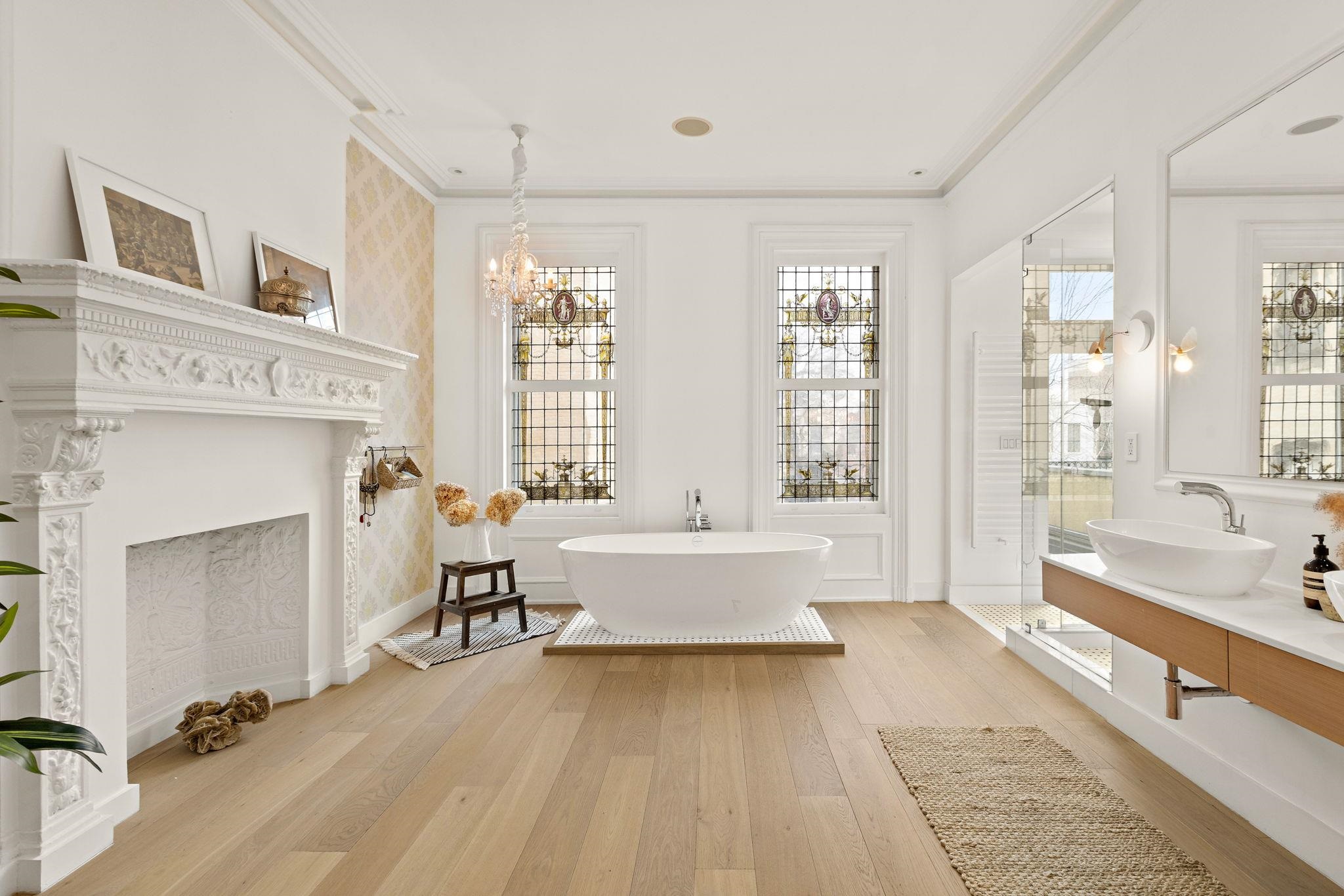A rare and architecturally significant brownstone on one of Hoboken’s most coveted blocks, 926 Hudson Street is a fully realized design residence—where historic craftsmanship and modern architecture are brought into deliberate and striking balance. Renovated and expanded by French interior designer Isabelle Péribère and featured in The New York Times, the home stands apart not only for its scale, but for the clarity and confidence of its design vision. Spanning approximately 5,000 square feet on an oversized 21.25’ x 110’ lot, the residence preserves the grandeur of a 19th-century brownstone while introducing a refined contemporary sensibility. The restored façade and elevated stoop set the tone, leading into interiors defined by soaring 11+ foot ceilings, intricate original plasterwork, marble mantels, stained glass, and a sweeping staircase—all meticulously preserved. The parlor level unfolds as a series of dramatic yet inviting spaces, where original pocket doors and architectural detailing frame a living and dining experience that feels both formal and highly livable. Moments of contrast—color, texture, and light—are thoughtfully introduced, creating interiors that feel curated rather than conventional. At the rear, a striking two-story glass extension transforms the home, filling the space with exceptional natural light and seamlessly connecting the interior to a nearly 950-square-foot landscaped garden. The kitchen is understated and precise, featuring custom cabinetry, Sub-Zero and Miele appliances, a built-in espresso system, and a large central island—designed to integrate seamlessly into the architecture rather than compete with it. The full-floor primary suite is both expansive and serene, anchored by original mantels and restored stained glass, and complemented by a custom dressing area and a spa-like bath with a freestanding soaking tub set against historic windows—a rare and memorable design moment. A large private roof deck directly off the suite provides an additional outdoor living space seldom found at this scale. Upstairs, two additional bedrooms and a flexible office or fourth bedroom with exposed beams, along with two full baths, offer versatility for family or guests. The garden level—with its own entrance—includes a fifth bedroom, media room, full bath, and additional living space, while the lower level features a hidden lounge and bar, along with laundry and storage. Throughout, original elements—exposed brick, shutters, moldings, and handcrafted details—are paired with modern upgrades including wide-plank European oak flooring, multi-zone climate control, Marvin windows, integrated sound, and updated systems. Set behind a restored brownstone façade with custom wrought iron and bluestone, 926 Hudson Street is not simply a renovation, but a cohesive architectural statement—offering a level of design integrity, scale, and presence rarely available in Hoboken.