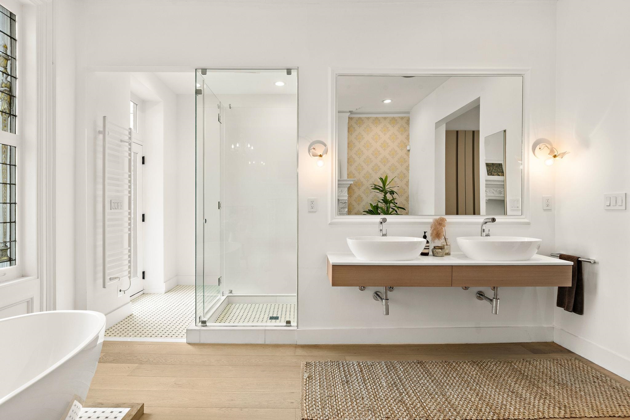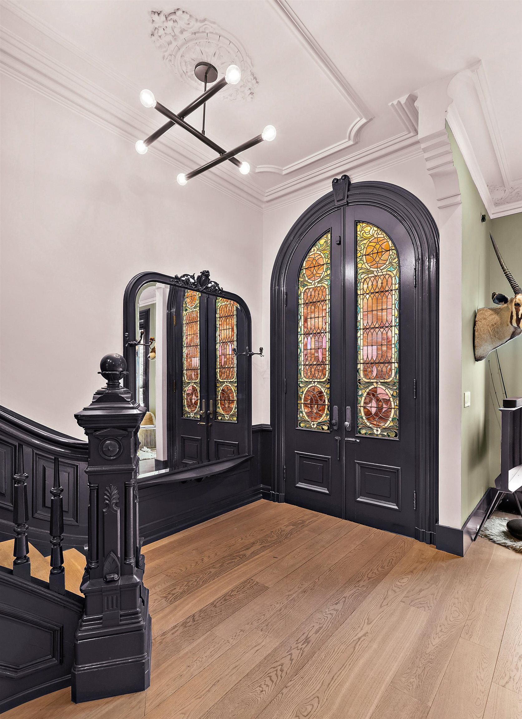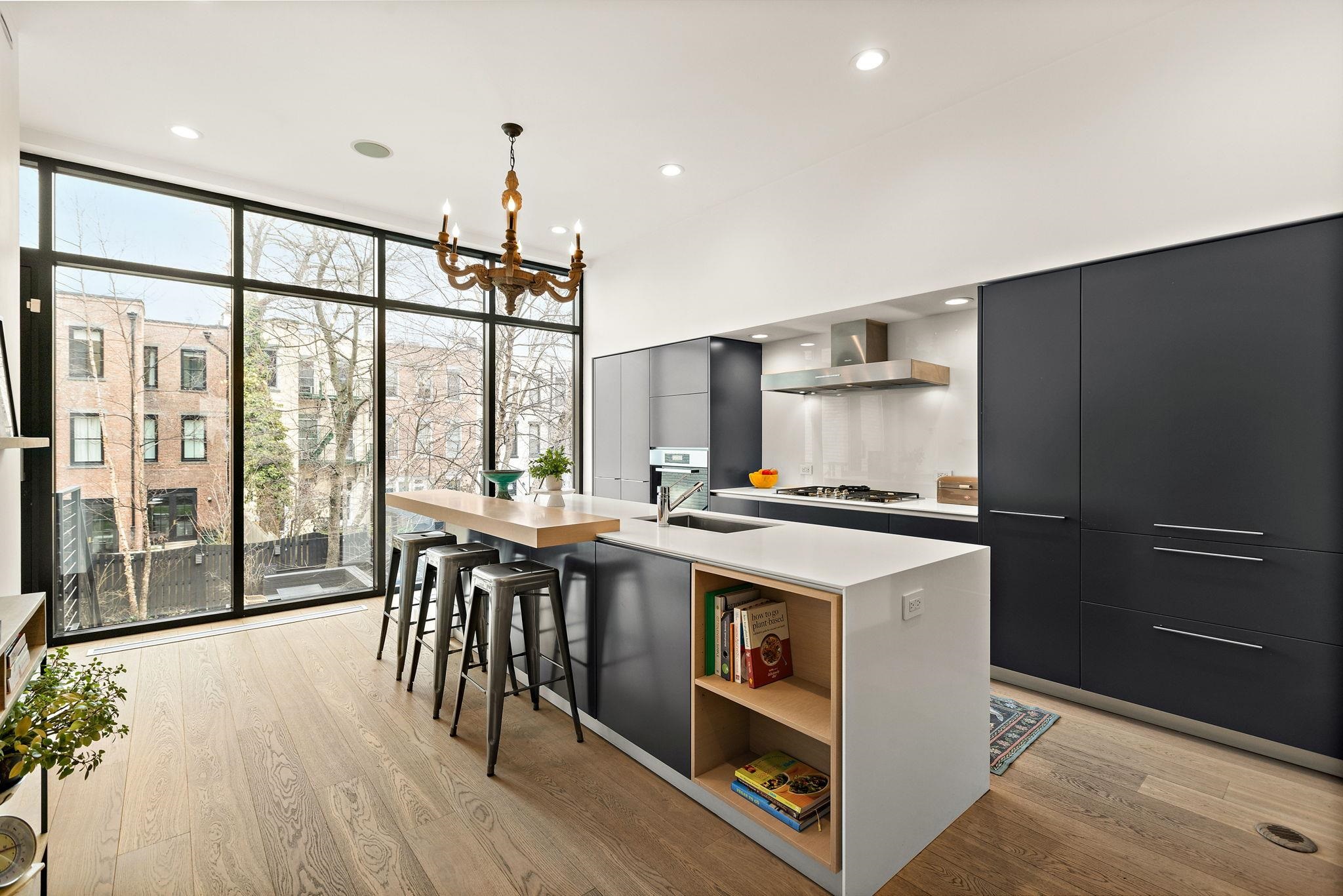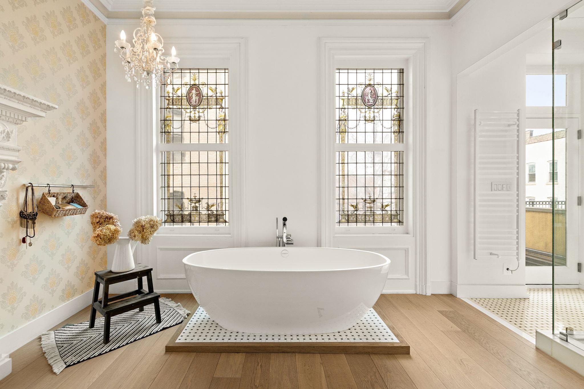 A rare and architecturally significant brownstone on one of Hoboken’s most coveted blocks, 926 Hudson Street is a fully realized design residence—where historic craftsmanship and modern architecture are brought into deliberate and striking balance. Renovated and expanded by French interior designer Isabelle Péribère and featured in The New York Times, the home stands apart not only for its scale, but for the clarity and confidence of its design vision. Spanning approximately 5,000 square feet on an oversized 21.25’ x 110’ lot, the residence preserves the grandeur of a 19th-century brownstone while introducing a refined contemporary sensibility. The restored façade and elevated stoop set the tone, leading into interiors defined by soaring 11+ foot ceilings, intricate original plasterwork, marble mantels, stained glass, and a sweeping staircase—all meticulously preserved. The parlor level unfolds as a series of dramatic yet inviting spaces, where original pocket doors and architectural detailing frame a living and dining experience that feels both formal and highly livable. Moments of contrast—color, texture, and light—are thoughtfully introduced, creating interiors that feel curated rather than conventional. At the rear, a striking two-story glass extension transforms the home, filling the space with exceptional natural light and seamlessly connecting the interior to a nearly 950-square-foot landscaped garden. The kitchen is understated and precise, featuring custom cabinetry, Sub-Zero and Miele appliances, a built-in espresso system, and a large central island—designed to integrate seamlessly into the architecture rather than compete with it. The full-floor primary suite is both expansive and serene, anchored by original mantels and restored stained glass, and complemented by a custom dressing area and a spa-like bath with a freestanding soaking tub set against historic windows—a rare and memorable design moment. A large private roof deck directly off the suite provides an additional outdoor living space seldom found at this scale. Upstairs, two additional bedrooms and a flexible office or fourth bedroom with exposed beams, along with two full baths, offer versatility for family or guests. The garden level—with its own entrance—includes a fifth bedroom, media room, full bath, and additional living space, while the lower level features a hidden lounge and bar, along with laundry and storage. Throughout, original elements—exposed brick, shutters, moldings, and handcrafted details—are paired with modern upgrades including wide-plank European oak flooring, multi-zone climate control, Marvin windows, integrated sound, and updated systems. Set behind a restored brownstone façade with custom wrought iron and bluestone, 926 Hudson Street is not simply a renovation, but a cohesive architectural statement—offering a level of design integrity, scale, and presence rarely available in Hoboken.