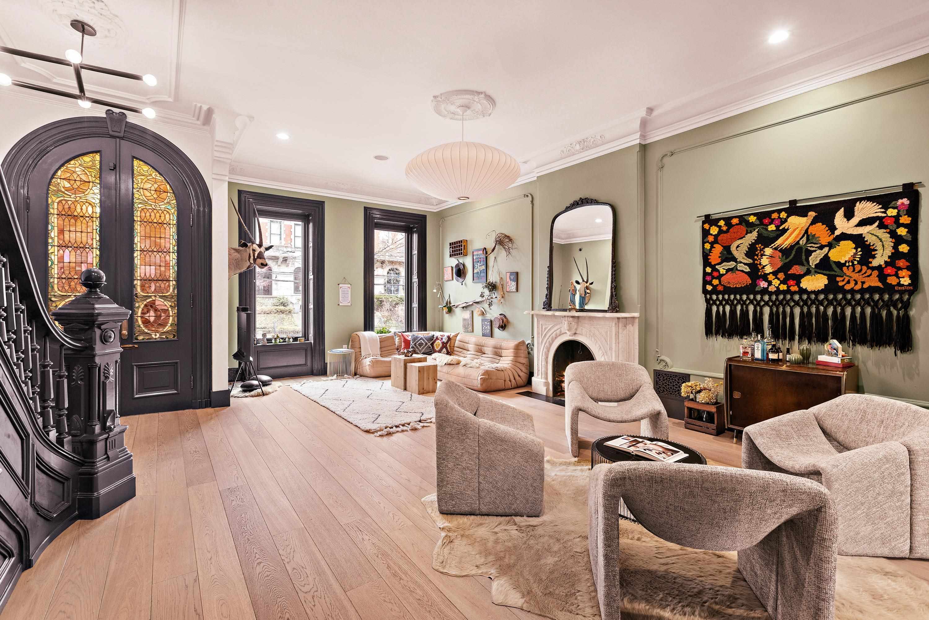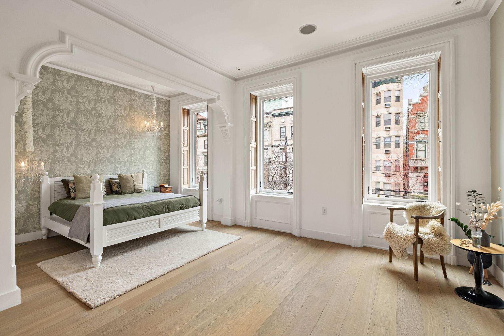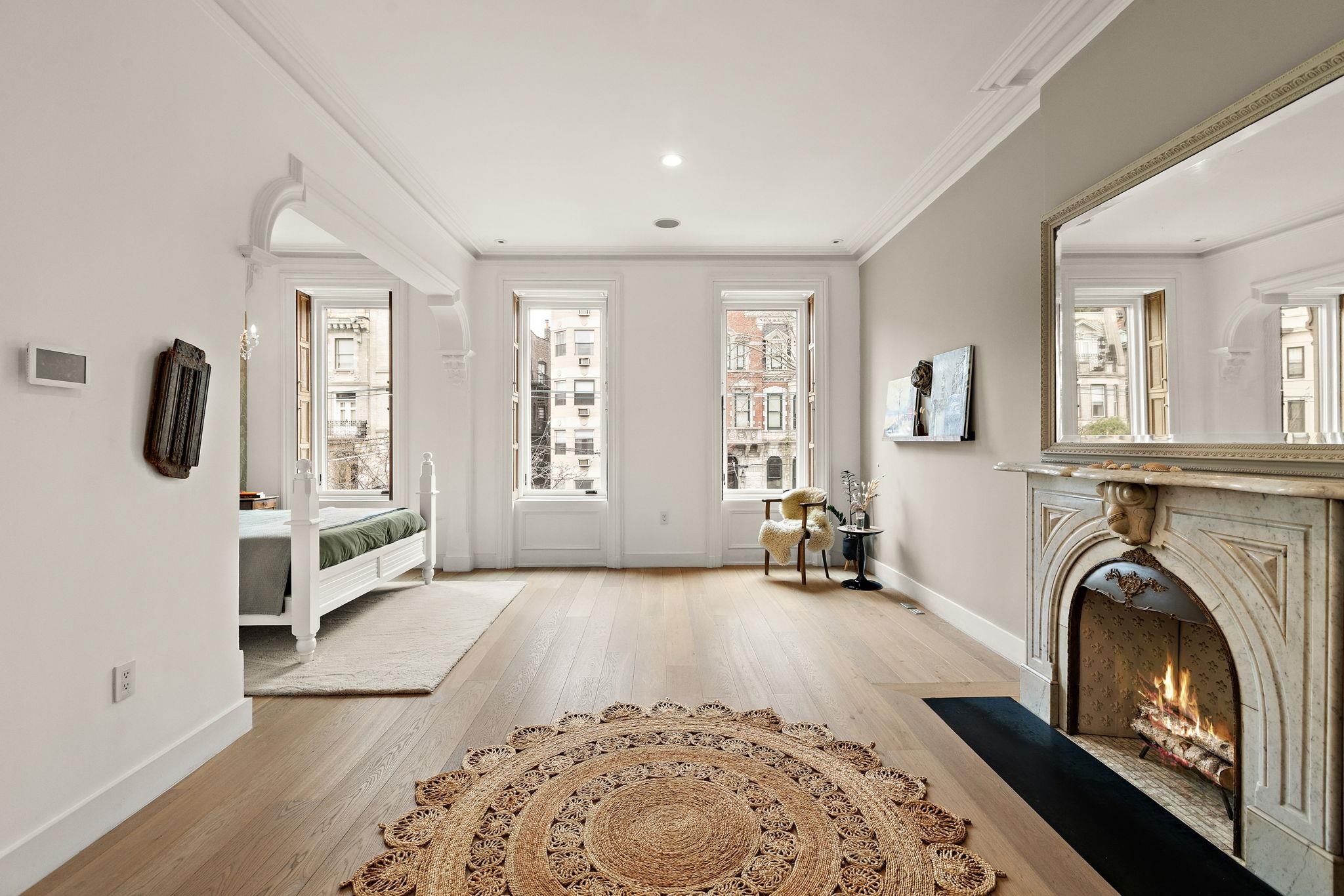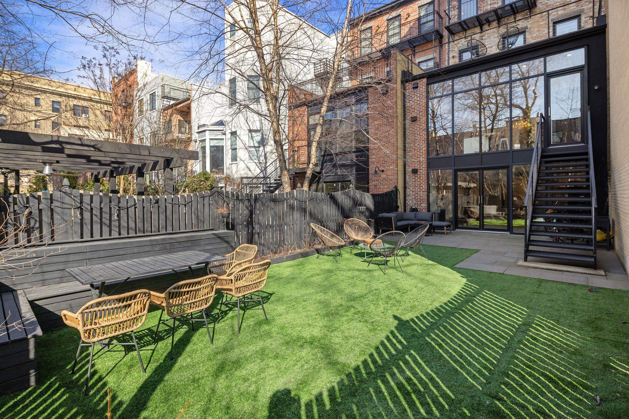 A rare and architecturally significant brownstone on one of Hoboken’s most coveted blocks, 926 Hudson Street is a fully realized design residence—where historic craftsmanship and modern architecture are brought into deliberate and striking balance. Renovated and expanded by French interior designer Isabelle Péribère and featured in The New York Times, the home stands apart not only for its scale, but for the clarity and confidence of its design vision. Spanning approximately 5,000 square feet on an oversized 21.25’ x 110’ lot, the residence preserves the grandeur of a 19th-century brownstone while introducing a refined contemporary sensibility. The restored façade and elevated stoop set the tone, leading into interiors defined by soaring 11+ foot ceilings, intricate original plasterwork, marble mantels, stained glass, and a sweeping staircase—all meticulously preserved. The parlor level unfolds as a series of dramatic yet inviting spaces, where original pocket doors and architectural detailing frame a living and dining experience that feels both formal and highly livable. Moments of contrast—color, texture, and light—are thoughtfully introduced, creating interiors that feel curated rather than conventional. At the rear, a striking two-story glass extension transforms the home, filling the space with exceptional natural light and seamlessly connecting the interior to a nearly 950-square-foot landscaped garden. The kitchen is understated and precise, featuring custom cabinetry, Sub-Zero and Miele appliances, a built-in espresso system, and a large central island—designed to integrate seamlessly into the architecture rather than compete with it. The full-floor primary suite is both expansive and serene, anchored by original mantels and restored stained glass, and complemented by a custom dressing area and a spa-like bath with a freestanding soaking tub set against historic windows—a rare and memorable design moment. A large private roof deck directly off the suite provides an additional outdoor living space seldom found at this scale. Upstairs, two additional bedrooms and a flexible office or fourth bedroom with exposed beams, along with two full baths, offer versatility for family or guests. The garden level—with its own entrance—includes a fifth bedroom, media room, full bath, and additional living space, while the lower level features a hidden lounge and bar, along with laundry and storage. Throughout, original elements—exposed brick, shutters, moldings, and handcrafted details—are paired with modern upgrades including wide-plank European oak flooring, multi-zone climate control, Marvin windows, integrated sound, and updated systems. Set behind a restored brownstone façade with custom wrought iron and bluestone, 926 Hudson Street is not simply a renovation, but a cohesive architectural statement—offering a level of design integrity, scale, and presence rarely available in Hoboken.