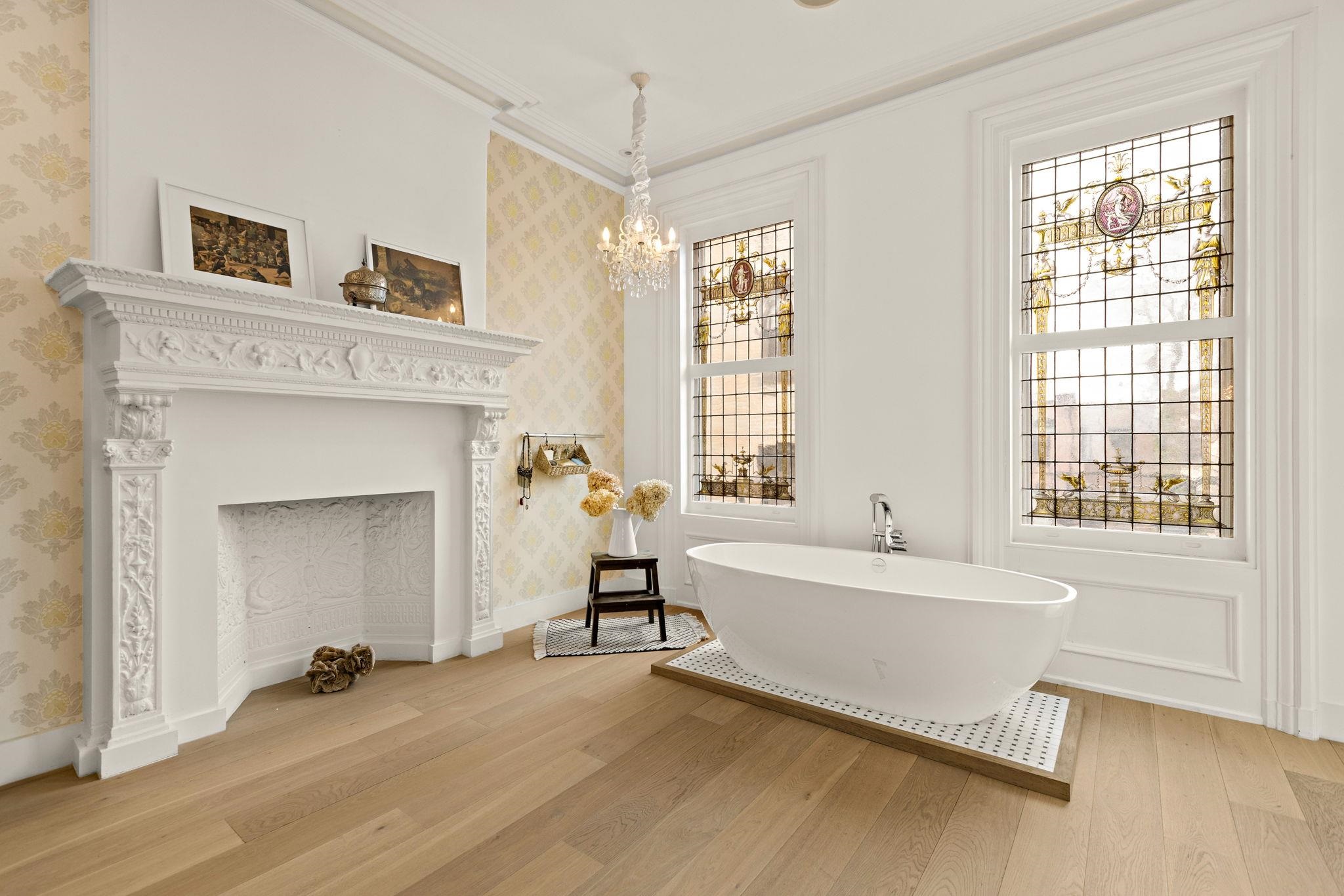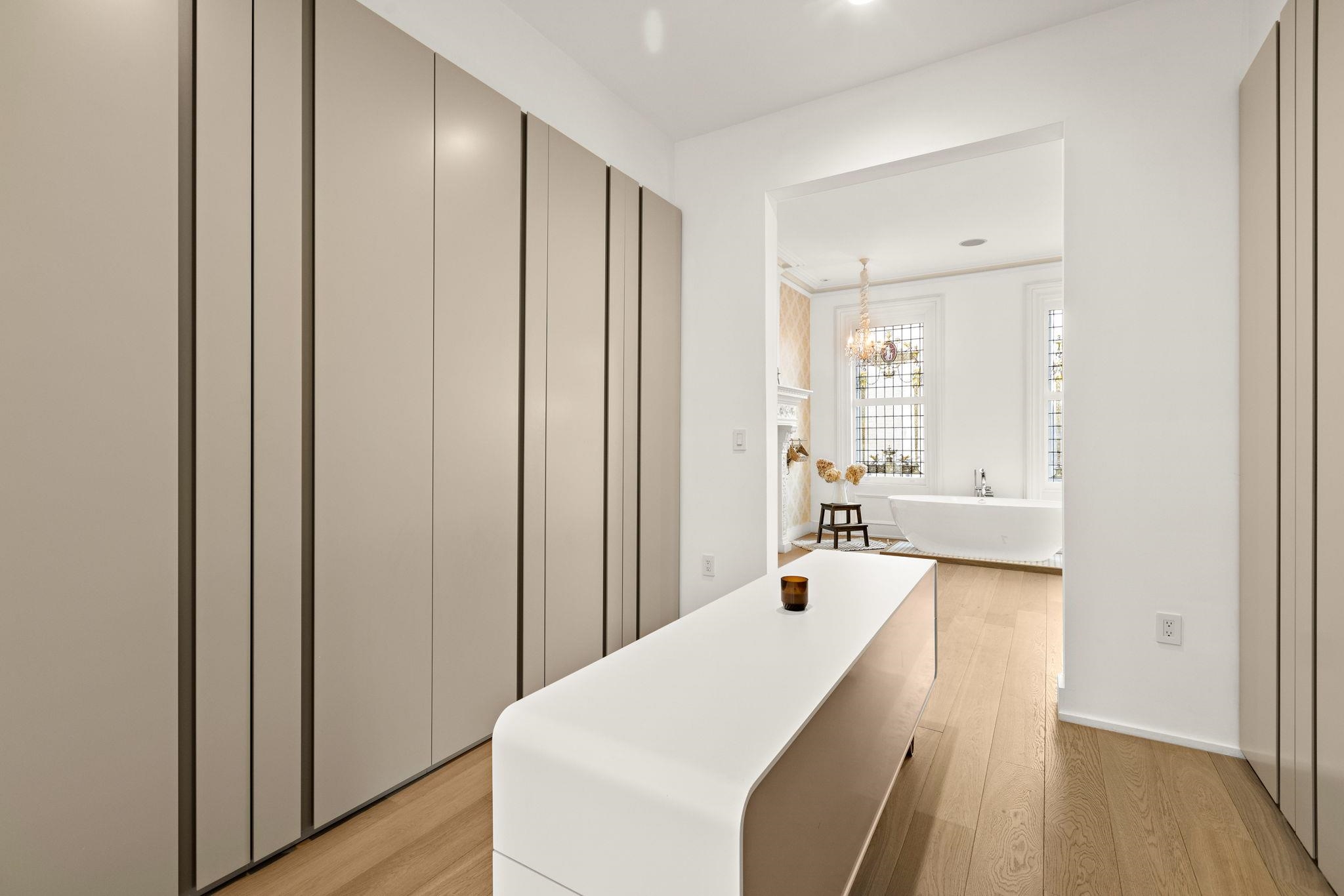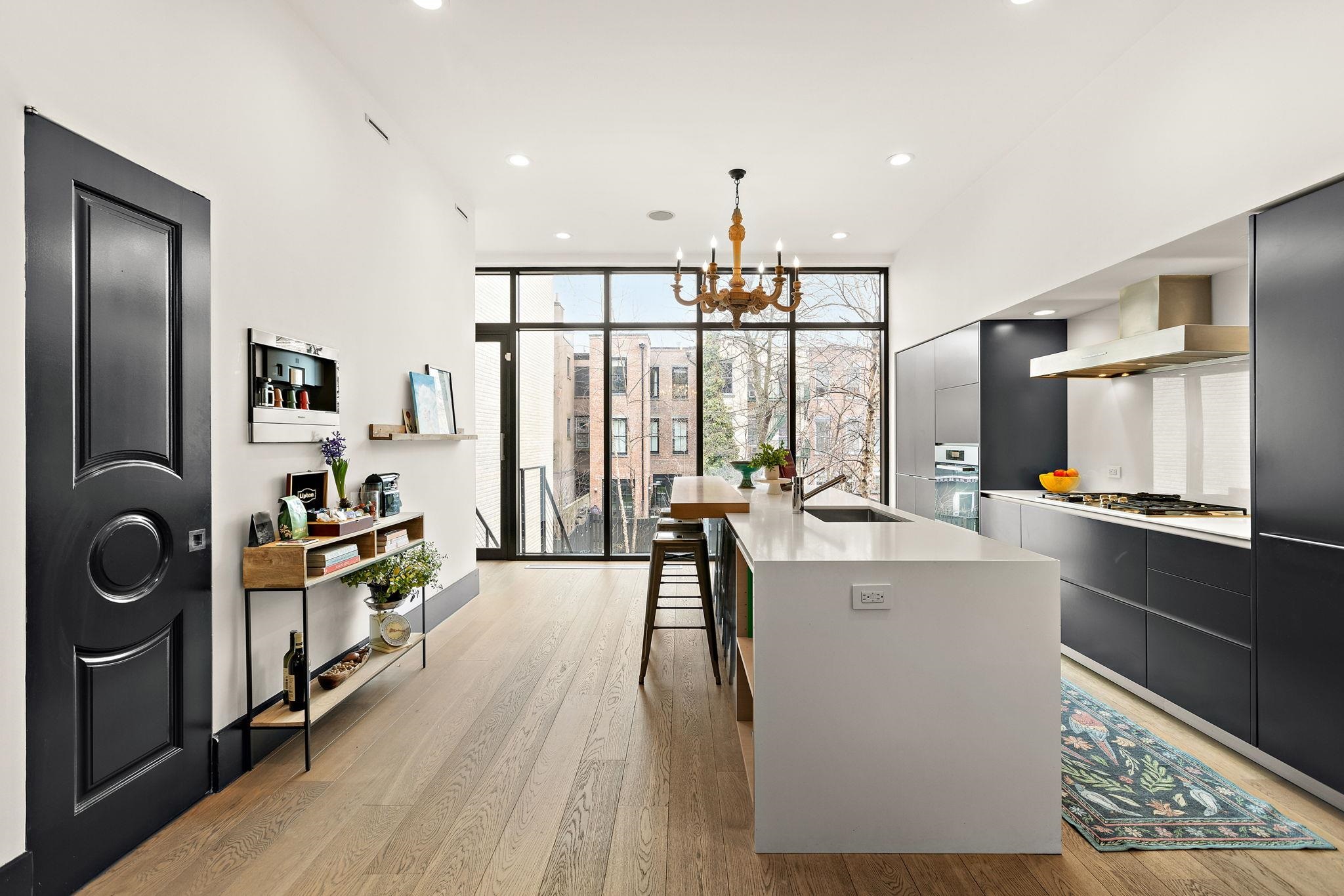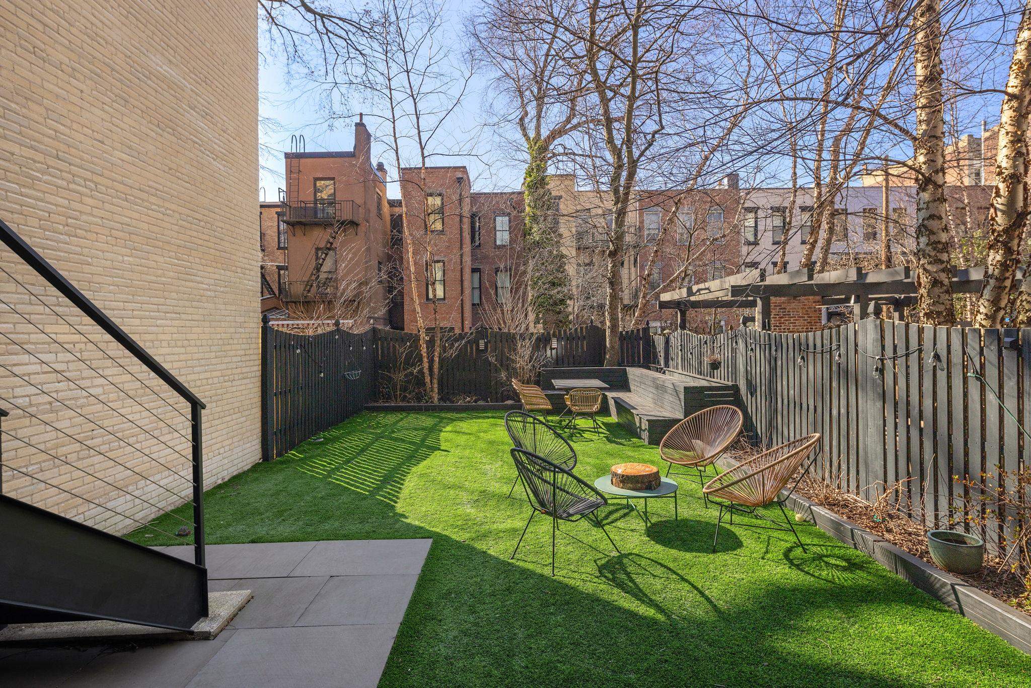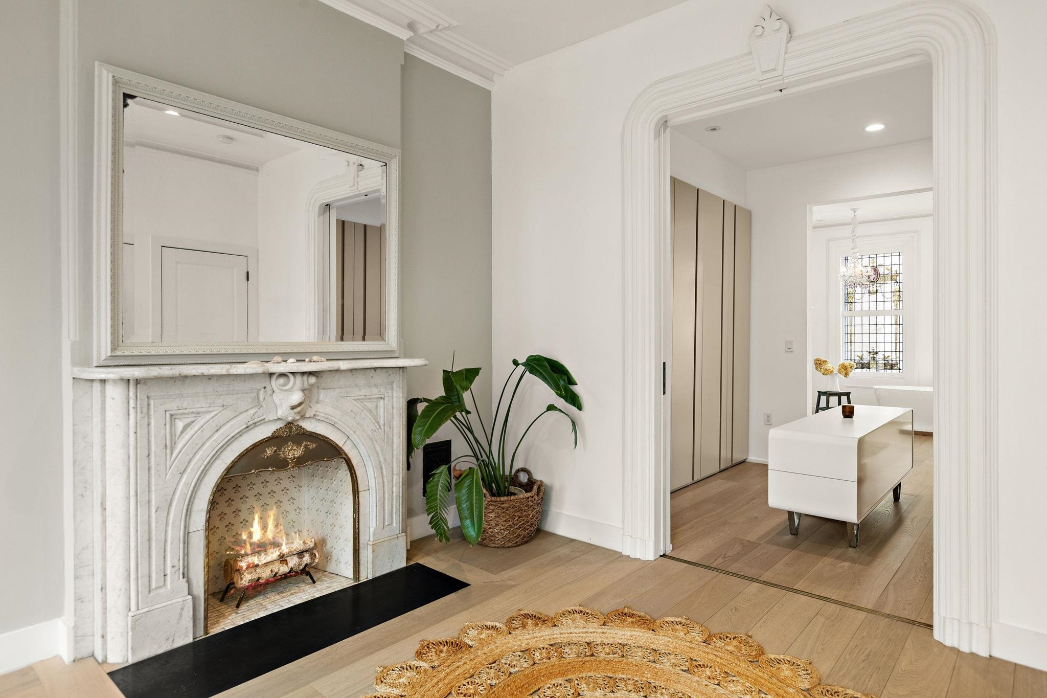 A rare and architecturally significant brownstone on one of Hoboken’s most coveted blocks, 926 Hudson Street is a fully realized design residence—where historic craftsmanship and modern architecture are brought into deliberate and striking balance. Renovated and expanded by French interior designer Isabelle Péribère and featured in The New York Times, the home stands apart not only for its scale, but for the clarity and confidence of its design vision. Spanning approximately 5,000 square feet on an oversized 21.25’ x 110’ lot, the residence preserves the grandeur of a 19th-century brownstone while introducing a refined contemporary sensibility. The restored façade and elevated stoop set the tone, leading into interiors defined by soaring 11+ foot ceilings, intricate original plasterwork, marble mantels, stained glass, and a sweeping staircase—all meticulously preserved. The parlor level unfolds as a series of dramatic yet inviting spaces, where original pocket doors and architectural detailing frame a living and dining experience that feels both formal and highly livable. Moments of contrast—color, texture, and light—are thoughtfully introduced, creating interiors that feel curated rather than conventional. At the rear, a striking two-story glass extension transforms the home, filling the space with exceptional natural light and seamlessly connecting the interior to a nearly 950-square-foot landscaped garden. The kitchen is understated and precise, featuring custom cabinetry, Sub-Zero and Miele appliances, a built-in espresso system, and a large central island—designed to integrate seamlessly into the architecture rather than compete with it. The full-floor primary suite is both expansive and serene, anchored by original mantels and restored stained glass, and complemented by a custom dressing area and a spa-like bath with a freestanding soaking tub set against historic windows—a rare and memorable design moment. A large private roof deck directly off the suite provides an additional outdoor living space seldom found at this scale. Upstairs, two additional bedrooms and a flexible office or fourth bedroom with exposed beams, along with two full baths, offer versatility for family or guests. The garden level—with its own entrance—includes a fifth bedroom, media room, full bath, and additional living space, while the lower level features a hidden lounge and bar, along with laundry and storage. Throughout, original elements—exposed brick, shutters, moldings, and handcrafted details—are paired with modern upgrades including wide-plank European oak flooring, multi-zone climate control, Marvin windows, integrated sound, and updated systems. Set behind a restored brownstone façade with custom wrought iron and bluestone, 926 Hudson Street is not simply a renovation, but a cohesive architectural statement—offering a level of design integrity, scale, and presence rarely available in Hoboken.