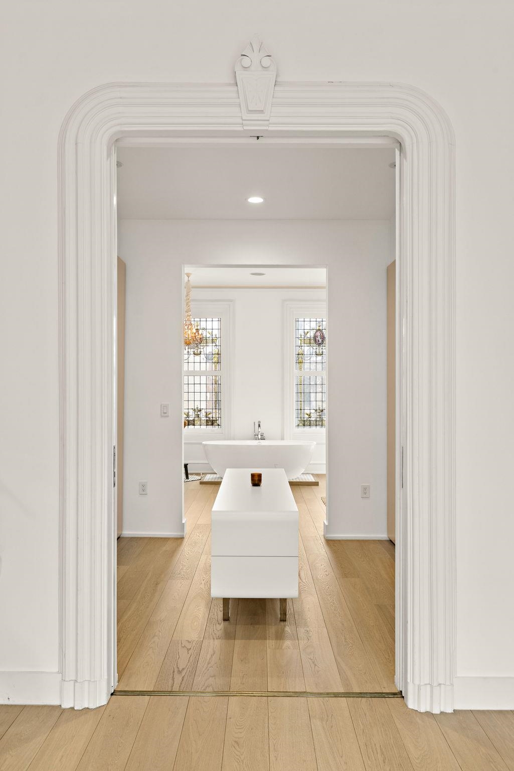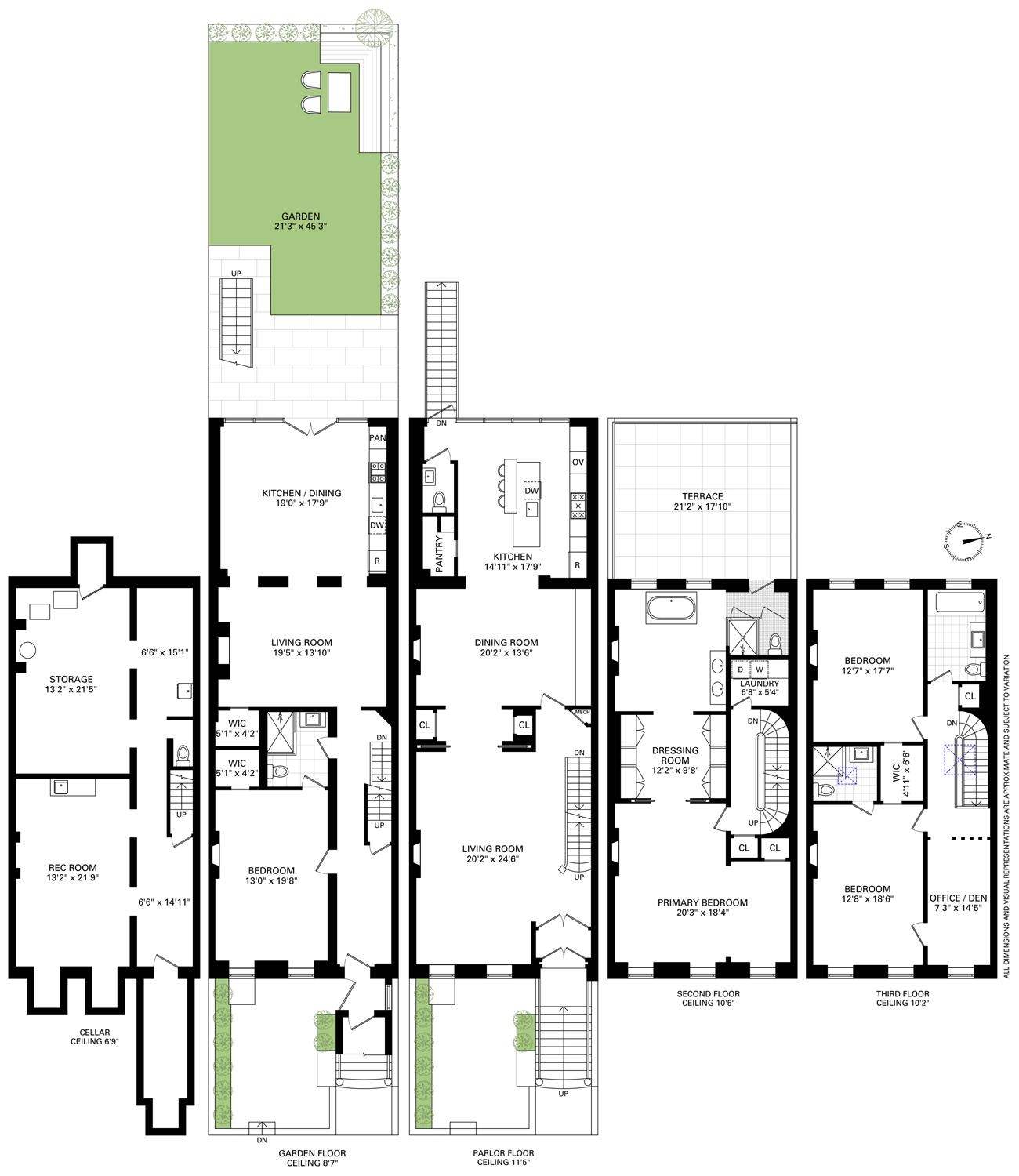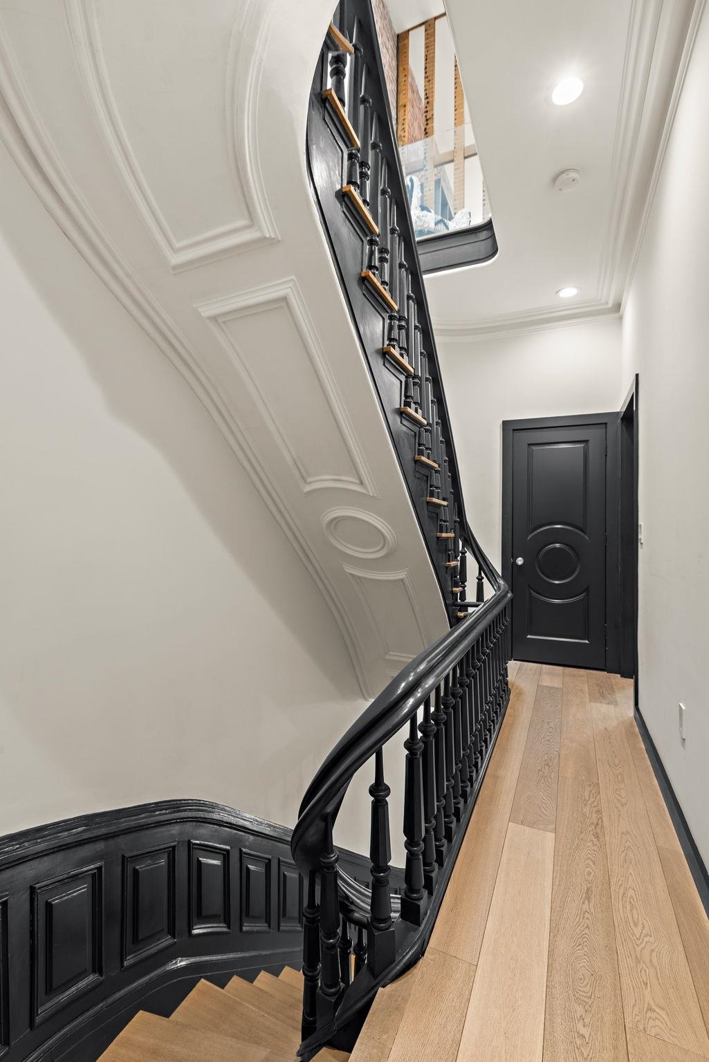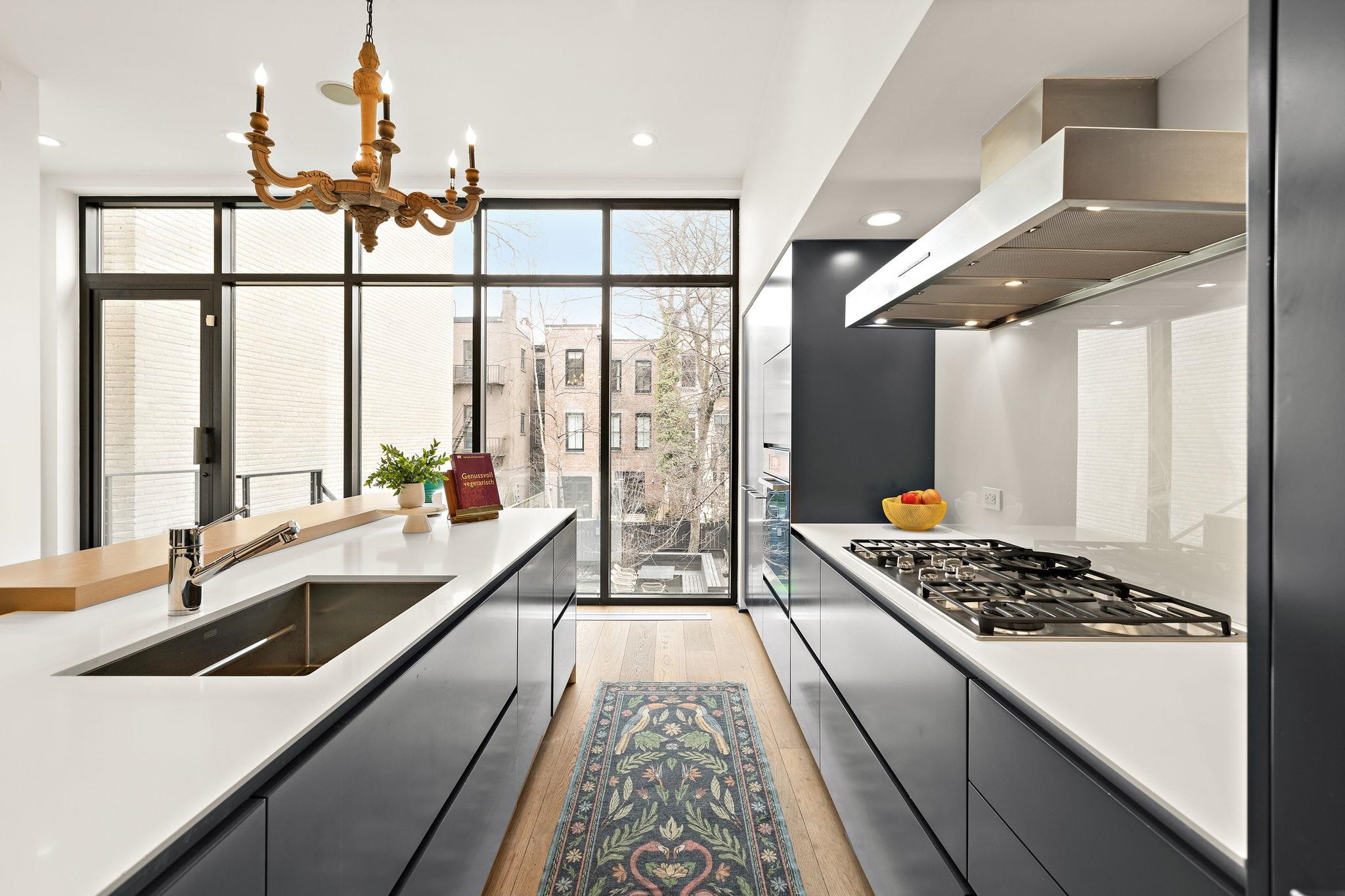 A rare and architecturally significant brownstone on one of Hoboken’s most coveted blocks, 926 Hudson Street is a fully realized design residence—where historic craftsmanship and modern architecture are brought into deliberate and striking balance. Renovated and expanded by French interior designer Isabelle Péribère and featured in The New York Times, the home stands apart not only for its scale, but for the clarity and confidence of its design vision. Spanning approximately 5,000 square feet on an oversized 21.25’ x 110’ lot, the residence preserves the grandeur of a 19th-century brownstone while introducing a refined contemporary sensibility. The restored façade and elevated stoop set the tone, leading into interiors defined by soaring 11+ foot ceilings, intricate original plasterwork, marble mantels, stained glass, and a sweeping staircase—all meticulously preserved. The parlor level unfolds as a series of dramatic yet inviting spaces, where original pocket doors and architectural detailing frame a living and dining experience that feels both formal and highly livable. Moments of contrast—color, texture, and light—are thoughtfully introduced, creating interiors that feel curated rather than conventional. At the rear, a striking two-story glass extension transforms the home, filling the space with exceptional natural light and seamlessly connecting the interior to a nearly 950-square-foot landscaped garden. The kitchen is understated and precise, featuring custom cabinetry, Sub-Zero and Miele appliances, a built-in espresso system, and a large central island—designed to integrate seamlessly into the architecture rather than compete with it. The full-floor primary suite is both expansive and serene, anchored by original mantels and restored stained glass, and complemented by a custom dressing area and a spa-like bath with a freestanding soaking tub set against historic windows—a rare and memorable design moment. A large private roof deck directly off the suite provides an additional outdoor living space seldom found at this scale. Upstairs, two additional bedrooms and a flexible office or fourth bedroom with exposed beams, along with two full baths, offer versatility for family or guests. The garden level—with its own entrance—includes a fifth bedroom, media room, full bath, and additional living space, while the lower level features a hidden lounge and bar, along with laundry and storage. Throughout, original elements—exposed brick, shutters, moldings, and handcrafted details—are paired with modern upgrades including wide-plank European oak flooring, multi-zone climate control, Marvin windows, integrated sound, and updated systems. Set behind a restored brownstone façade with custom wrought iron and bluestone, 926 Hudson Street is not simply a renovation, but a cohesive architectural statement—offering a level of design integrity, scale, and presence rarely available in Hoboken.