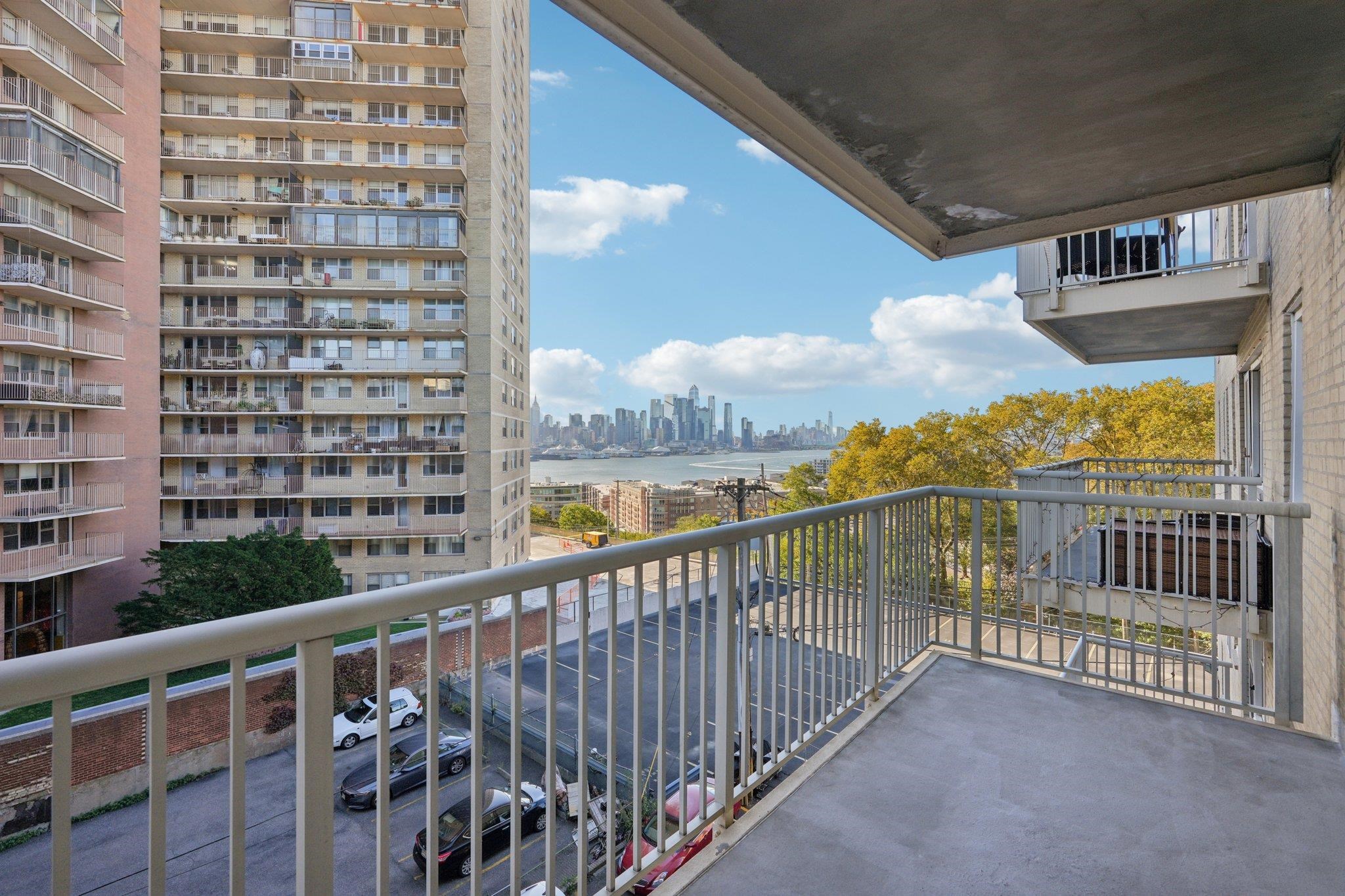 BRING YOUR VISION! Spacious residence with NYC & River Views – Discover the potential in this large 1,300 sq ft 2 BR - 2 BTH co-op located in a boutique building. The residence offers a generous layout, plenty of closets and a private balcony showcasing stunning views of Manhattan and the Hudson River. While in need of renovation, this home presents an exceptional opportunity to create your dream space in a prime location. Some photos are virtually staged to show potential. The building offers low monthly maintenance with real estate taxes included, providing excellent value. Enjoy the charm of a smaller, well-maintained community with easy access to shopping, dining, and NYC transportation.