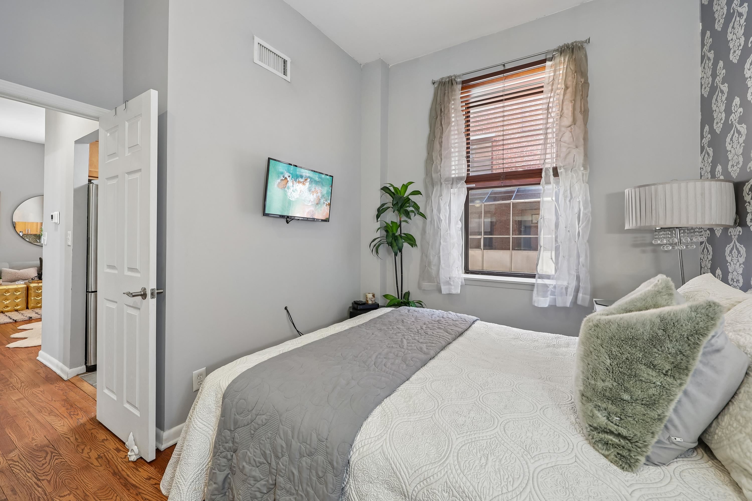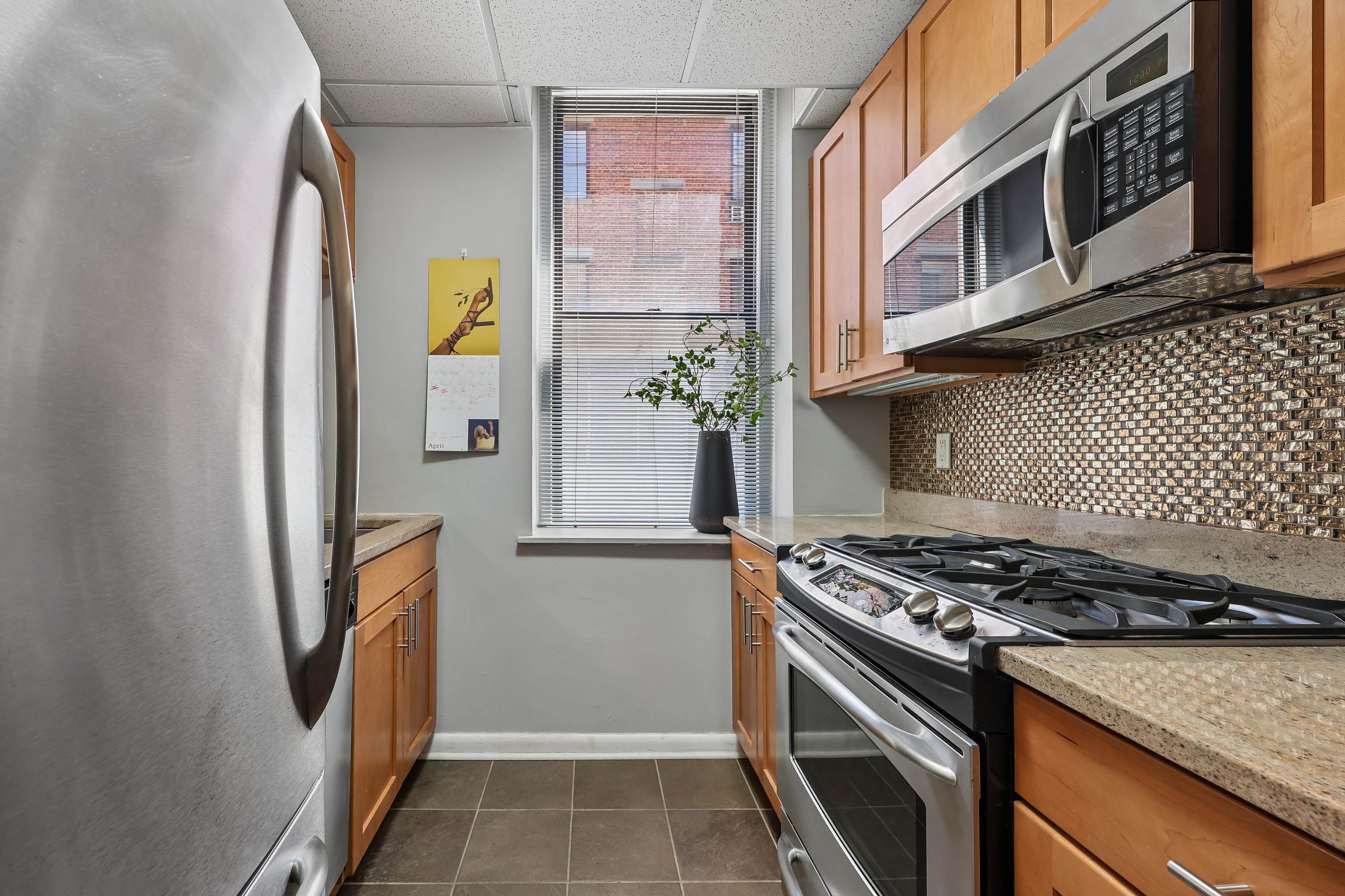Beautifully maintained loft-style one-bedroom, one-bathroom condo located in the highly sought-after Dixon Mills community. This home features high ceilings that enhance the sense of space and character throughout. The living and dining area offers a comfortable and functional setting, with large windows overlooking the peaceful courtyard. The galley style kitchen is fully equipped with stainless steel appliances, granite countertops, shaker cabinetry, making it both practical and stylish for everyday living. The generously sized bedroom with wall to wall closet space equipped with built in shelving, while the full bathroom is well-maintained with clean finishes. A washer and dryer in-unit adds to the overall convenience. Experience the ultimate urban lifestyle with access to Dixon Mills’ unparalleled amenities, including an 8,000+ square foot fitness center, indoor basketball & volleyball court, full screening room, sauna, package and concierge service, and 24/7 on-site security and maintenance staff. Enjoy close proximity to the renowned Restaurant Row, local nightlife, and historic parks, along with a quick two-stop PATH commute to Manhattan for seamless city access. Come see for yourself why Jersey City is known as the “6th Borough†of New York City, and don’t miss this opportunity to live in one of the most walkable and vibrant communities in the area.