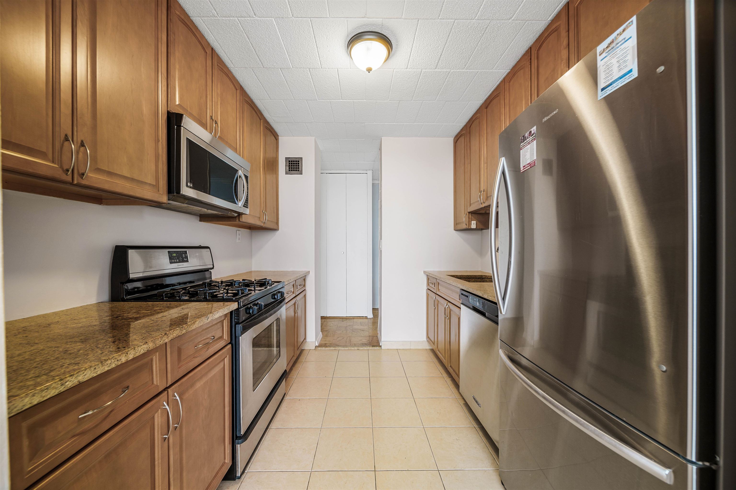 Welcome to Residence 507 at Park Hudson. This spacious, sun-drenched deluxe two-bedroom, two-bath home offers 1,240 square feet of thoughtfully designed living space. The oversized southeast-facing residence features breathtaking, unobstructed views of the Hudson River and the iconic New York City skyline from every windows, as well as from your private terrace. The excellent layout includes a separate dining room with stunning vistas, a modern updated kitchen equipped with stainless steel appliances, and generous living areas ideal for both everyday comfort and entertaining. Abundant closet space throughout provides exceptional storage. This is a rare opportunity to enjoy remarkable space, natural light, and spectacular panoramic views in every direction. Monthly maintenance of $1,325 includes all utilities-gas, electric, water, hot water, cable, and internet along with full-service amenities such as a 24-hour concierge service, outdoor pool, fitness center, and laundry room. Garage parking is available for an additional $125 per month. Park Hudson perfectly situated near restaurants and public transportation, Park Hudson is also moments from James J. Braddock North Hudson County Park, a scenic 167-acre lakefront retreat offering skyline views, sports facilities, and walking trails.
