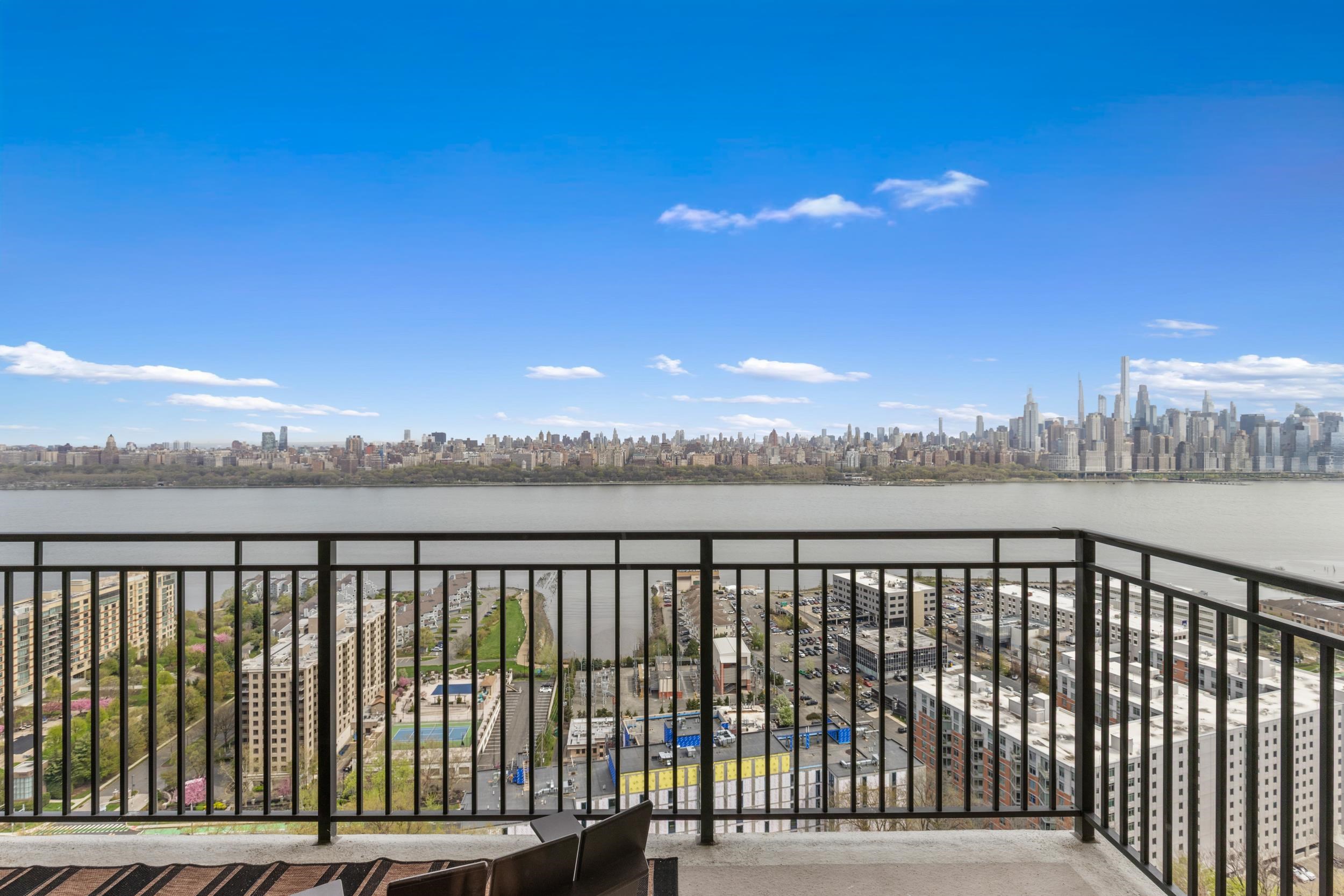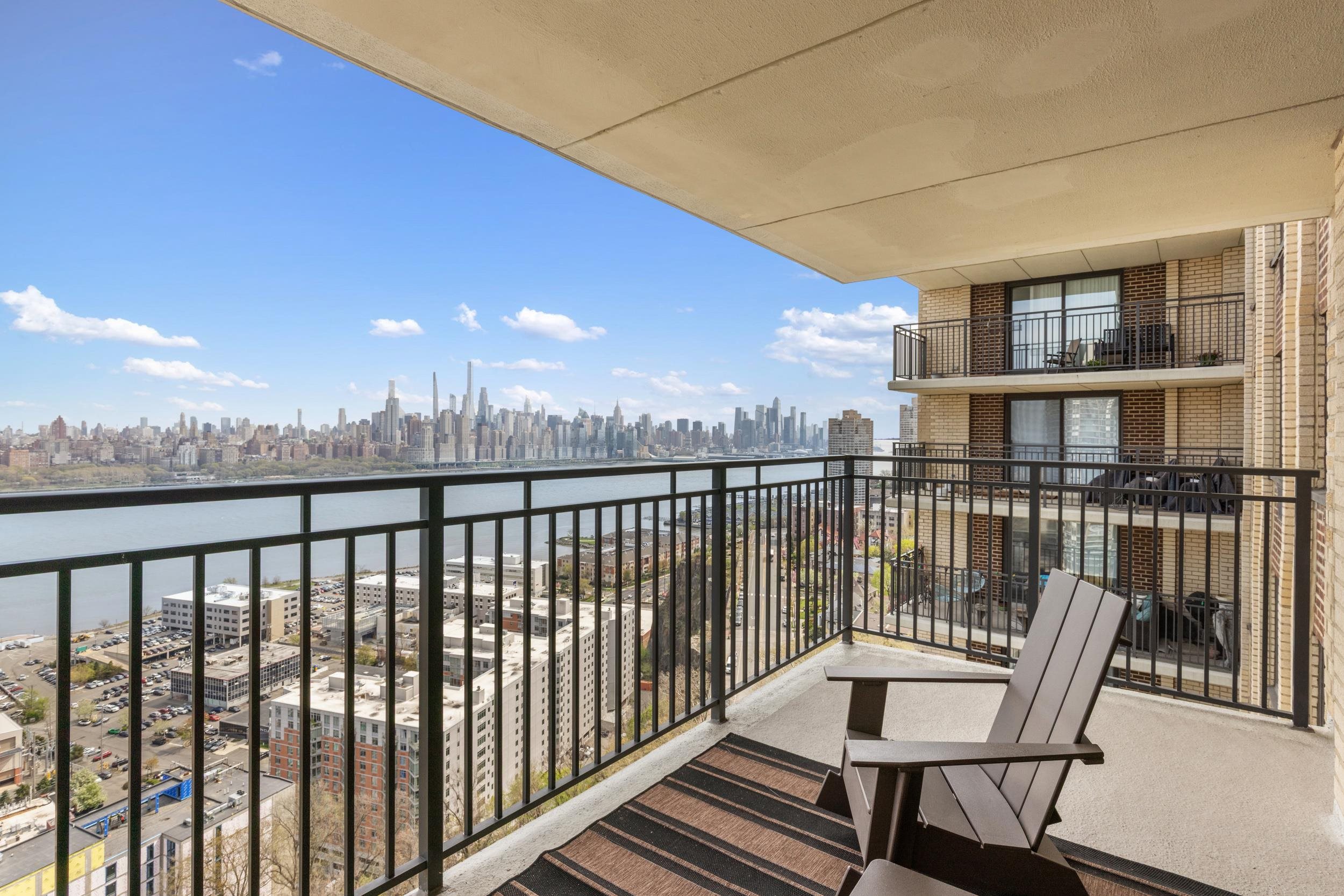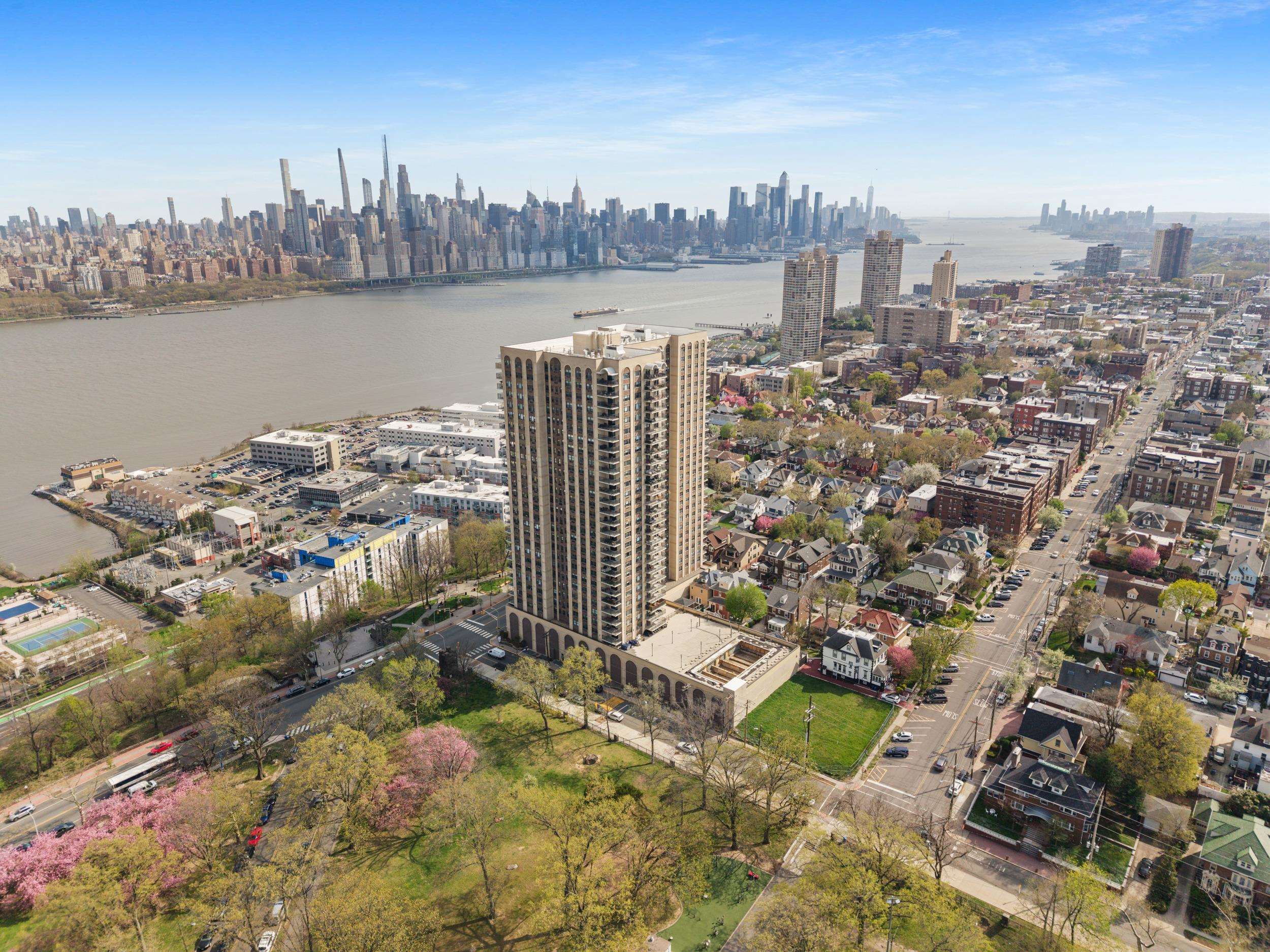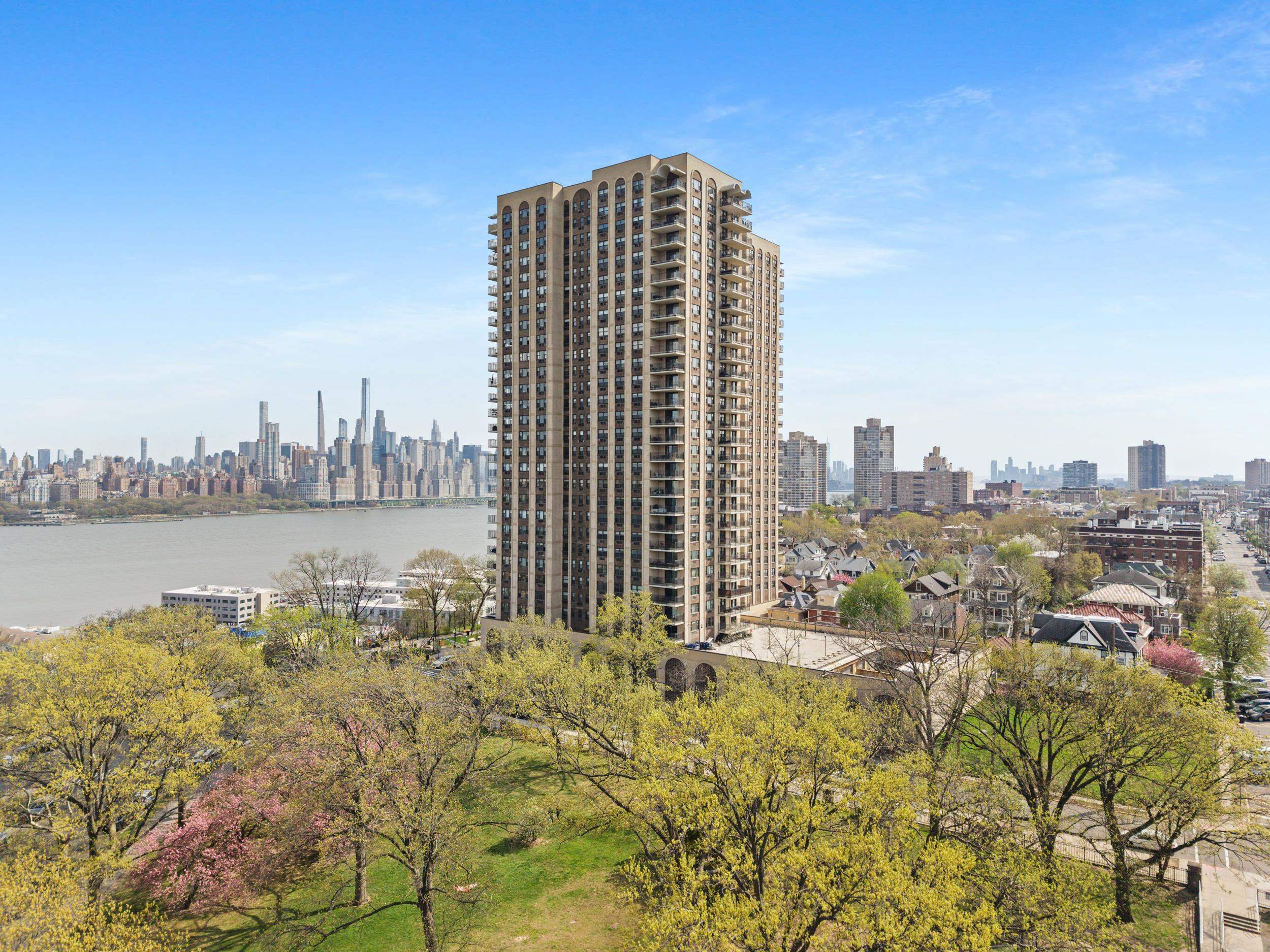 Light-filled and beautifully maintained 1-bedroom condominium offering breathtaking, unobstructed views of the NYC skyline and Hudson River. This inviting unit features wall-to-wall carpeting, recessed lighting, and a spacious layout designed for comfortable living. The bedroom includes a walk-in closet and also enjoys stunning city views, while additional closet space throughout the unit provides ample storage. The full bathroom offers a tub/shower combination, and the living area opens to a large private balcony—perfect for relaxing or entertaining while taking in the panoramic skyline backdrop. Conveniently located near parks, shopping, and transportation, with NJ Transit bus service directly outside the building for easy commuting. Building amenities include a fitness center, on-site laundry located on the same floor, and available parking. The pool is currently being renovated with an anticipated reopening in late Summer 2026, and the lobby is undergoing a modern update expected to be completed by May 2026. A fantastic opportunity to enjoy low-maintenance living with unbeatable views and everyday convenience.