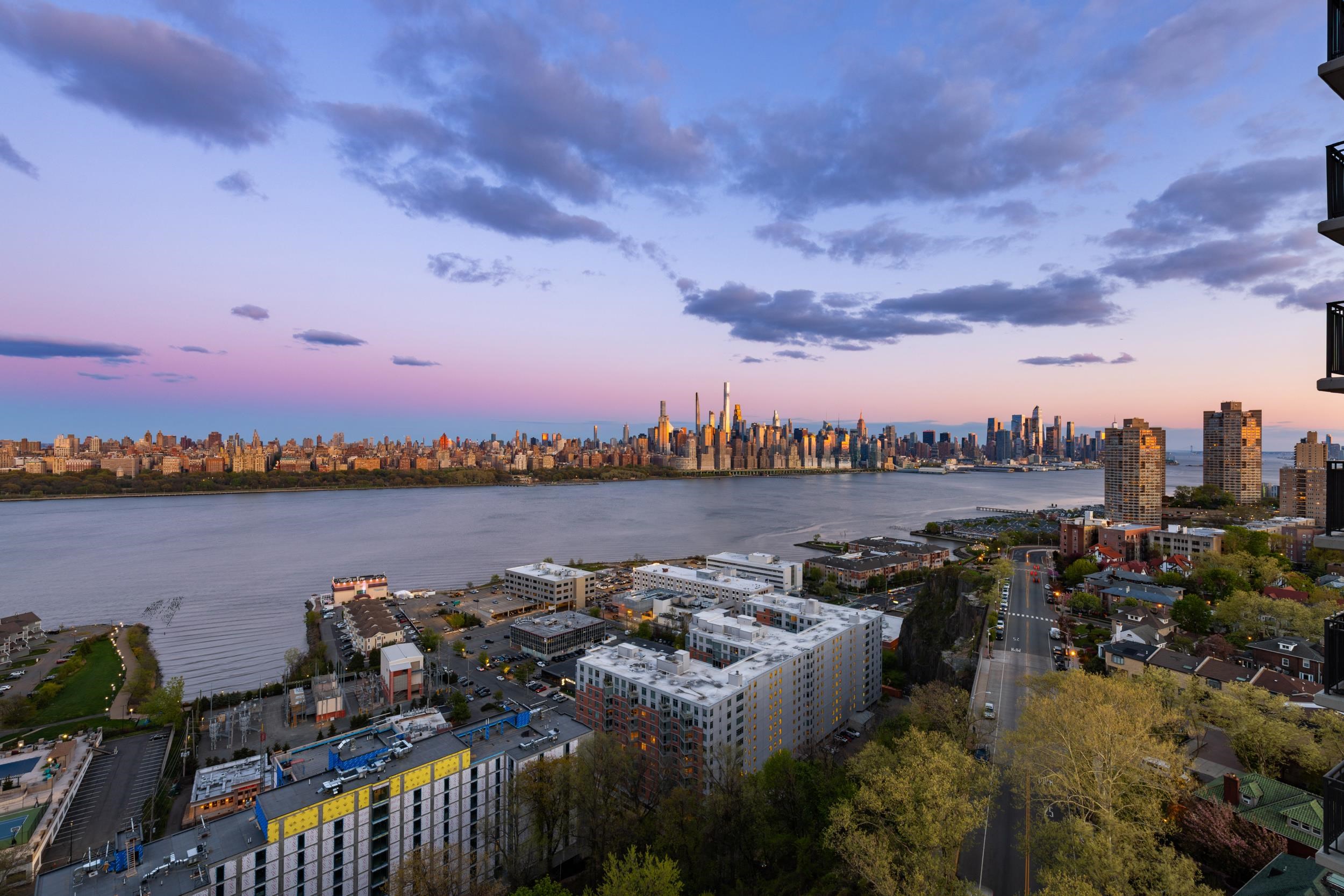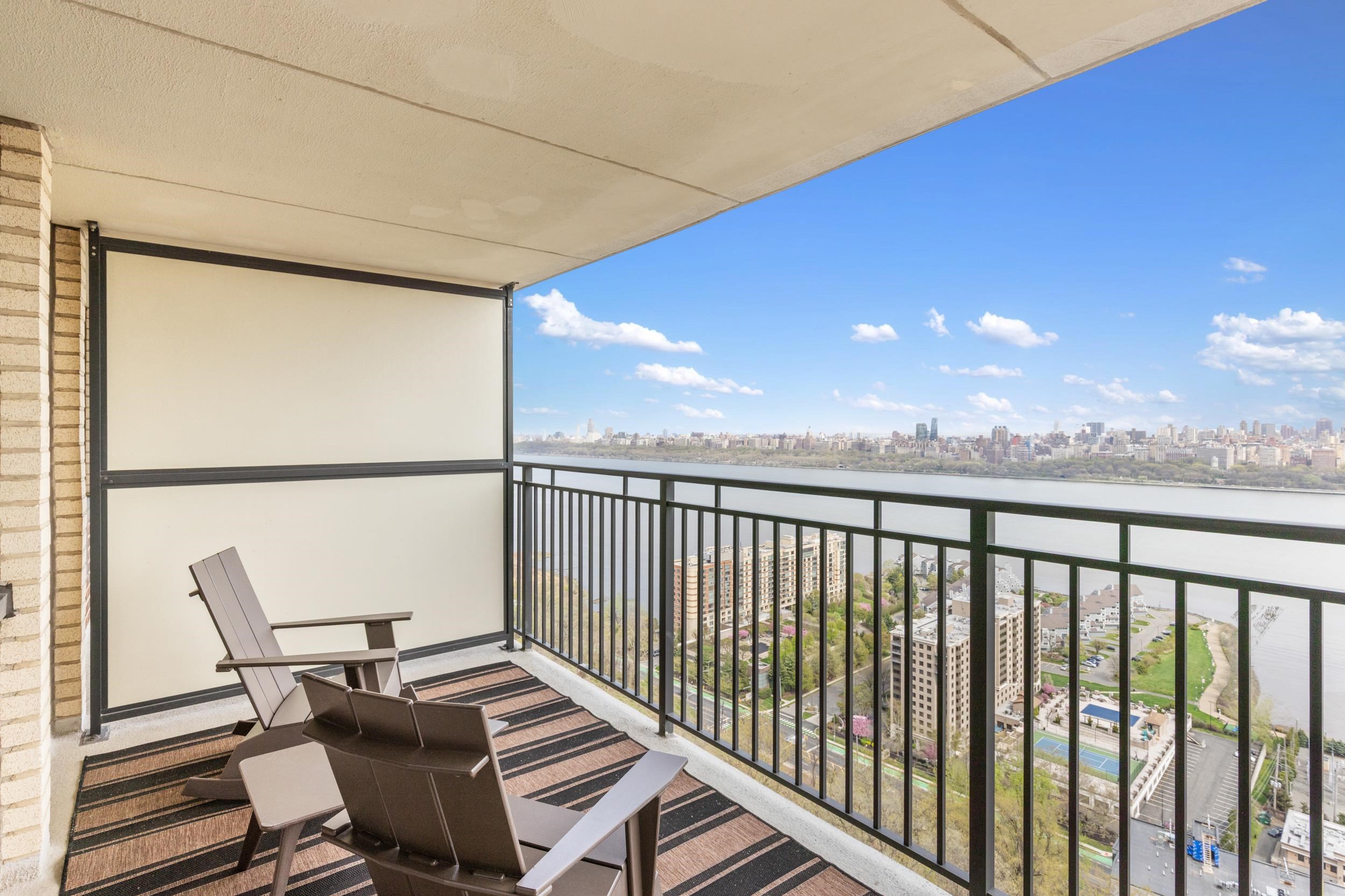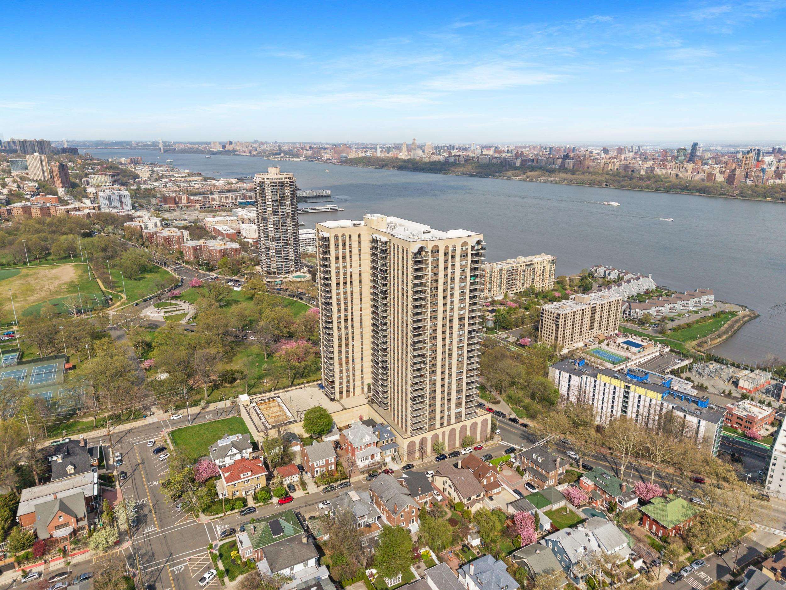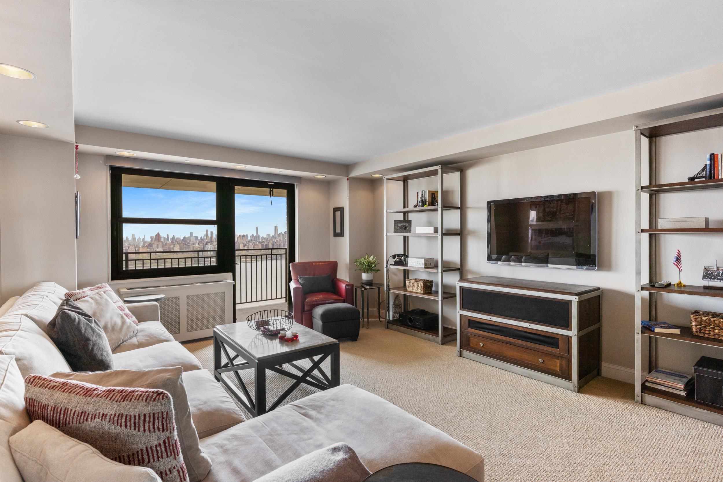 Light-filled and beautifully maintained 1-bedroom condominium offering breathtaking, unobstructed views of the NYC skyline and Hudson River. This inviting unit features wall-to-wall carpeting, recessed lighting, and a spacious layout designed for comfortable living. The bedroom includes a walk-in closet and also enjoys stunning city views, while additional closet space throughout the unit provides ample storage. The full bathroom offers a tub/shower combination, and the living area opens to a large private balcony—perfect for relaxing or entertaining while taking in the panoramic skyline backdrop. Conveniently located near parks, shopping, and transportation, with NJ Transit bus service directly outside the building for easy commuting. Building amenities include a fitness center, on-site laundry located on the same floor, and available parking. The pool is currently being renovated with an anticipated reopening in late Summer 2026, and the lobby is undergoing a modern update expected to be completed by May 2026. A fantastic opportunity to enjoy low-maintenance living with unbeatable views and everyday convenience.