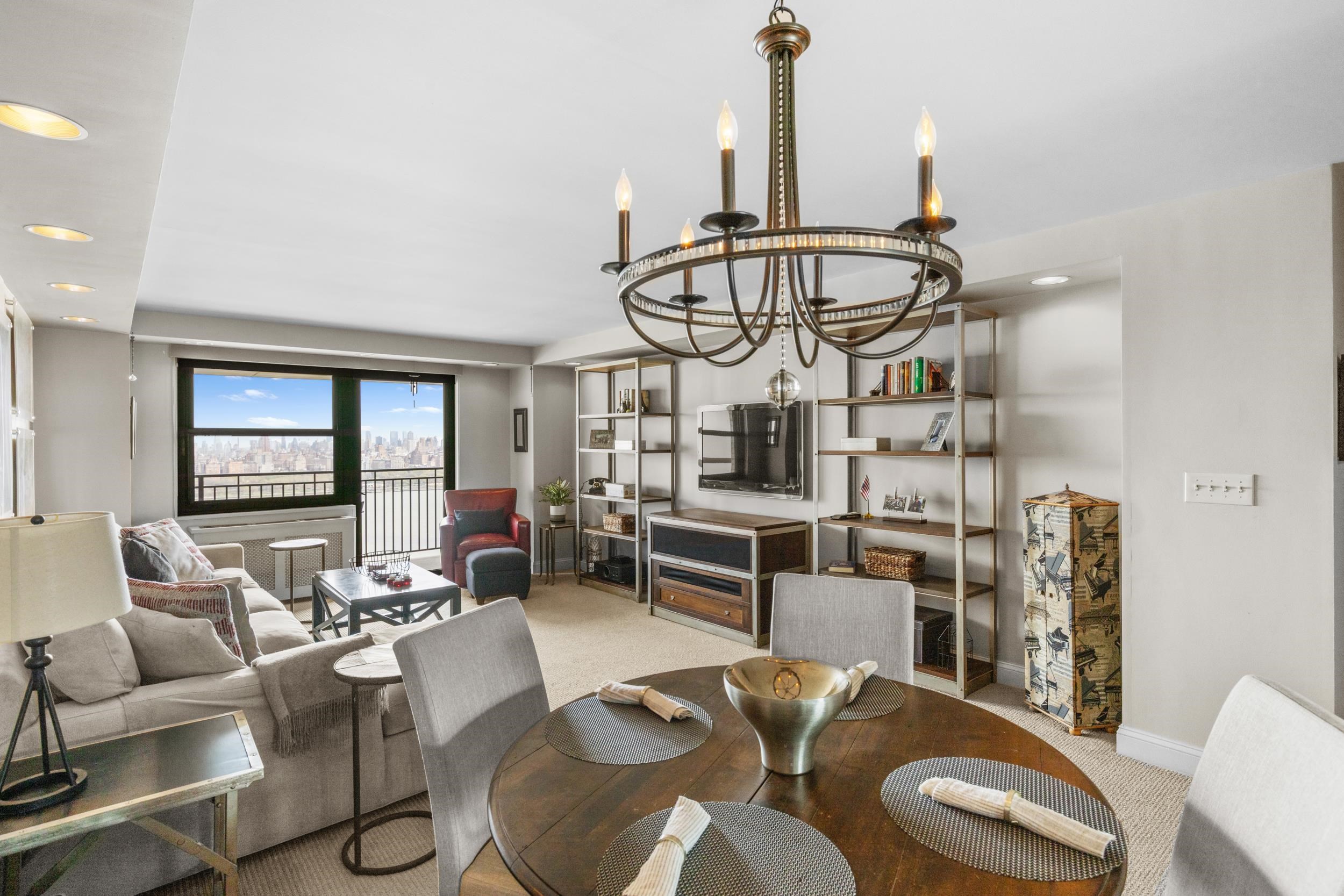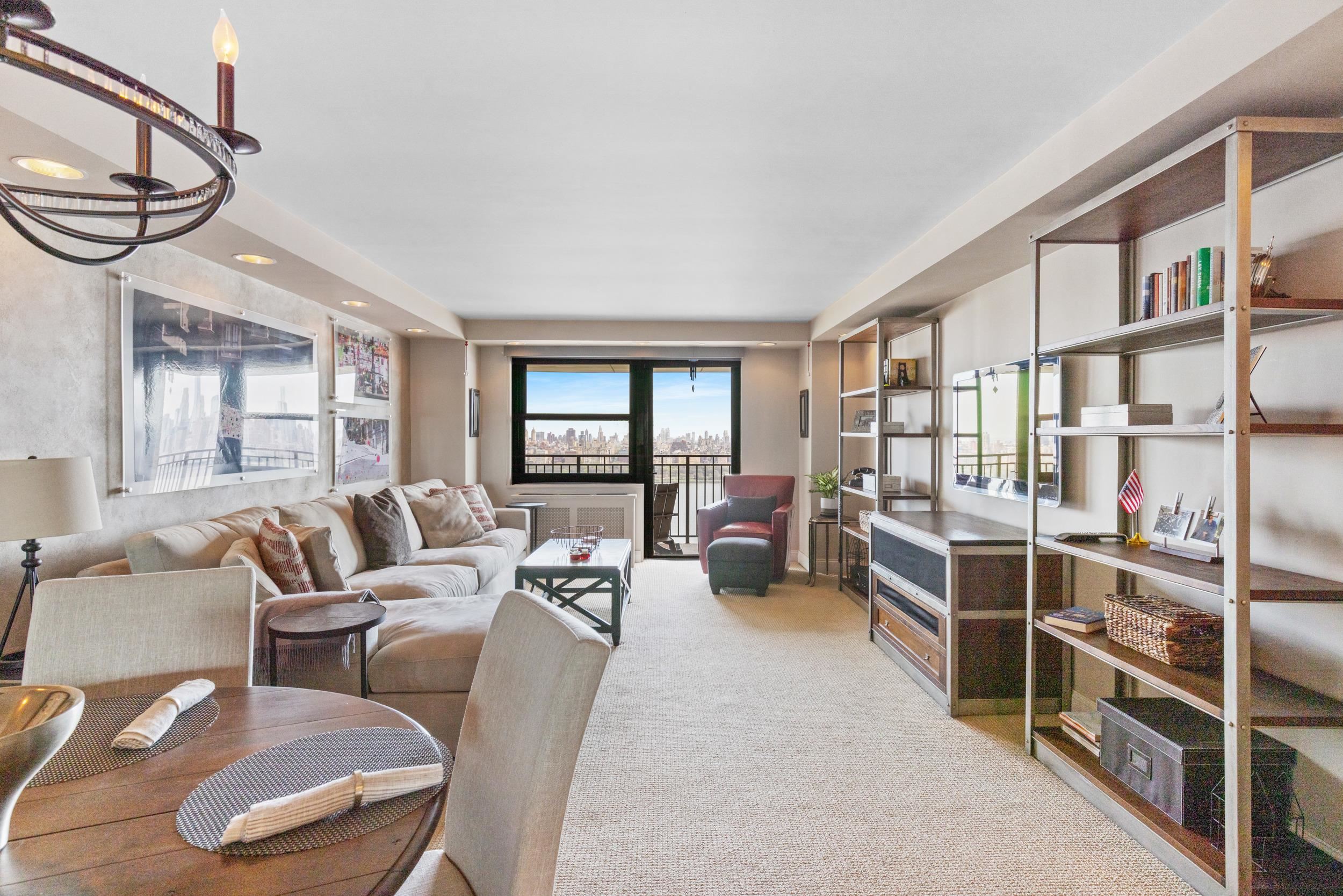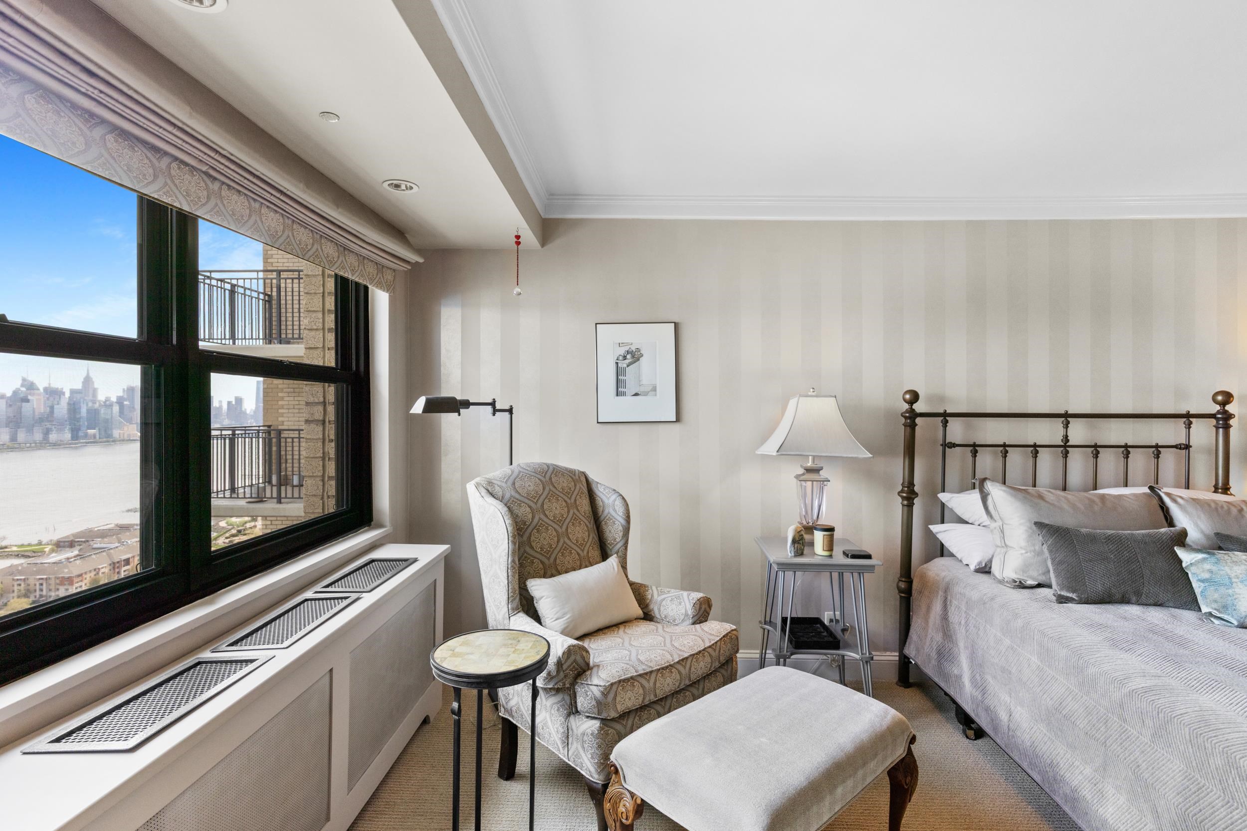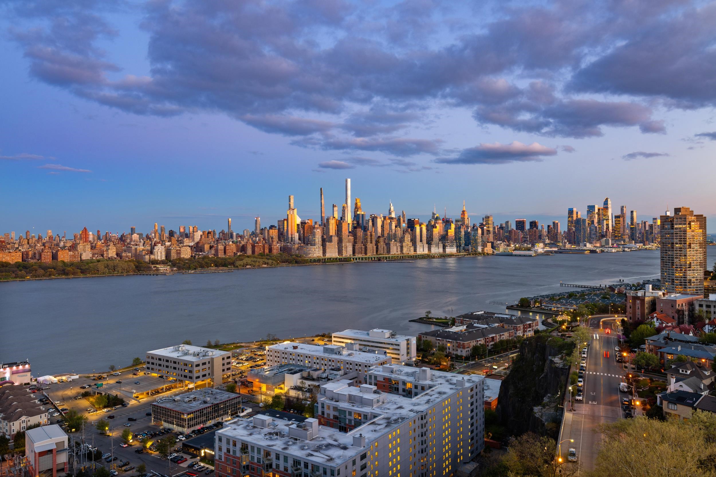 Light-filled and beautifully maintained 1-bedroom condominium offering breathtaking, unobstructed views of the NYC skyline and Hudson River. This inviting unit features wall-to-wall carpeting, recessed lighting, and a spacious layout designed for comfortable living. The bedroom includes a walk-in closet and also enjoys stunning city views, while additional closet space throughout the unit provides ample storage. The full bathroom offers a tub/shower combination, and the living area opens to a large private balcony—perfect for relaxing or entertaining while taking in the panoramic skyline backdrop. Conveniently located near parks, shopping, and transportation, with NJ Transit bus service directly outside the building for easy commuting. Building amenities include a fitness center, on-site laundry located on the same floor, and available parking. The pool is currently being renovated with an anticipated reopening in late Summer 2026, and the lobby is undergoing a modern update expected to be completed by May 2026. A fantastic opportunity to enjoy low-maintenance living with unbeatable views and everyday convenience.