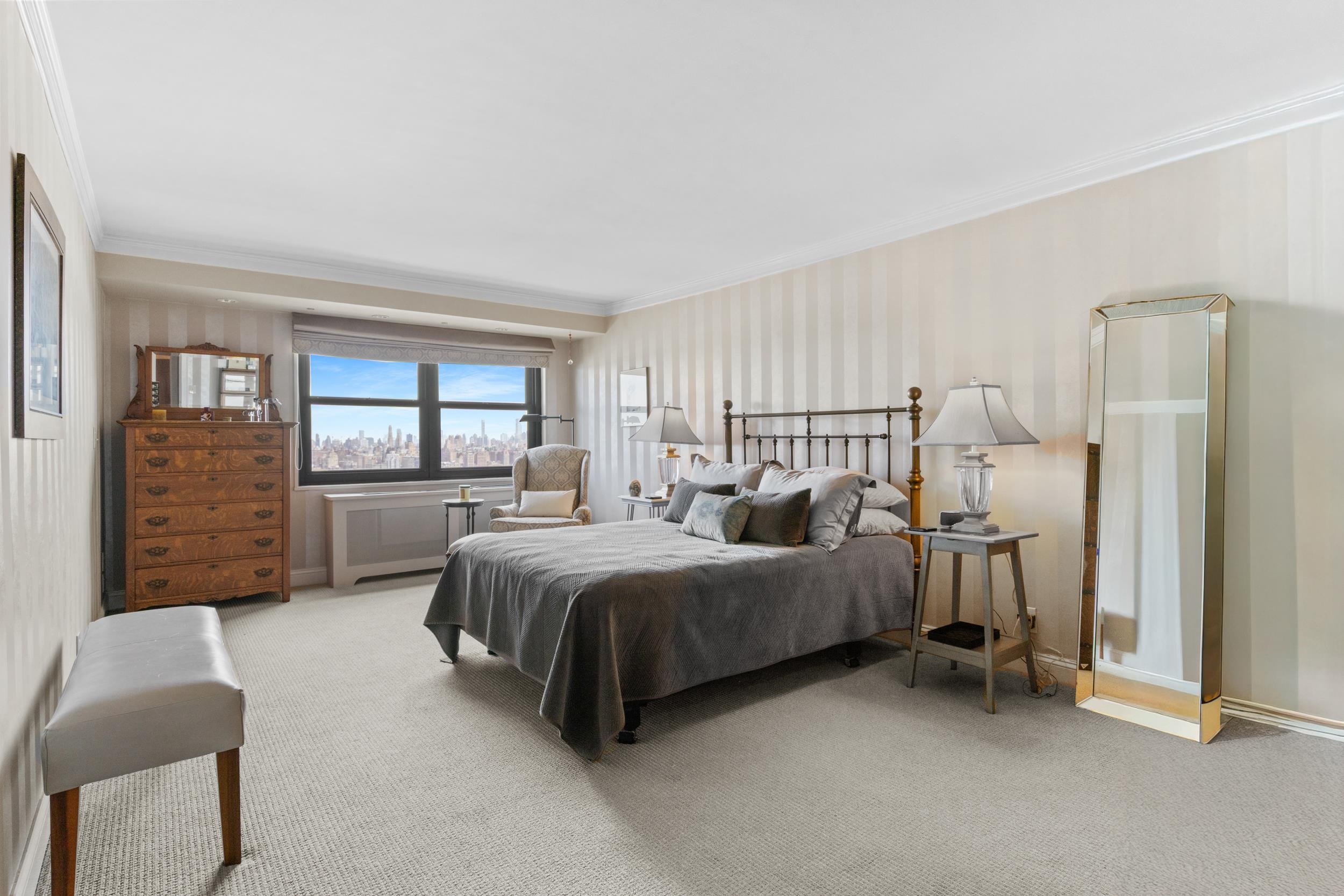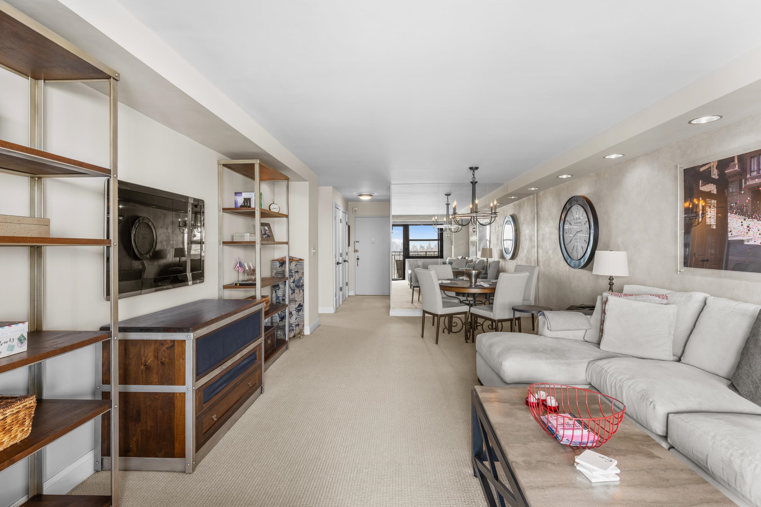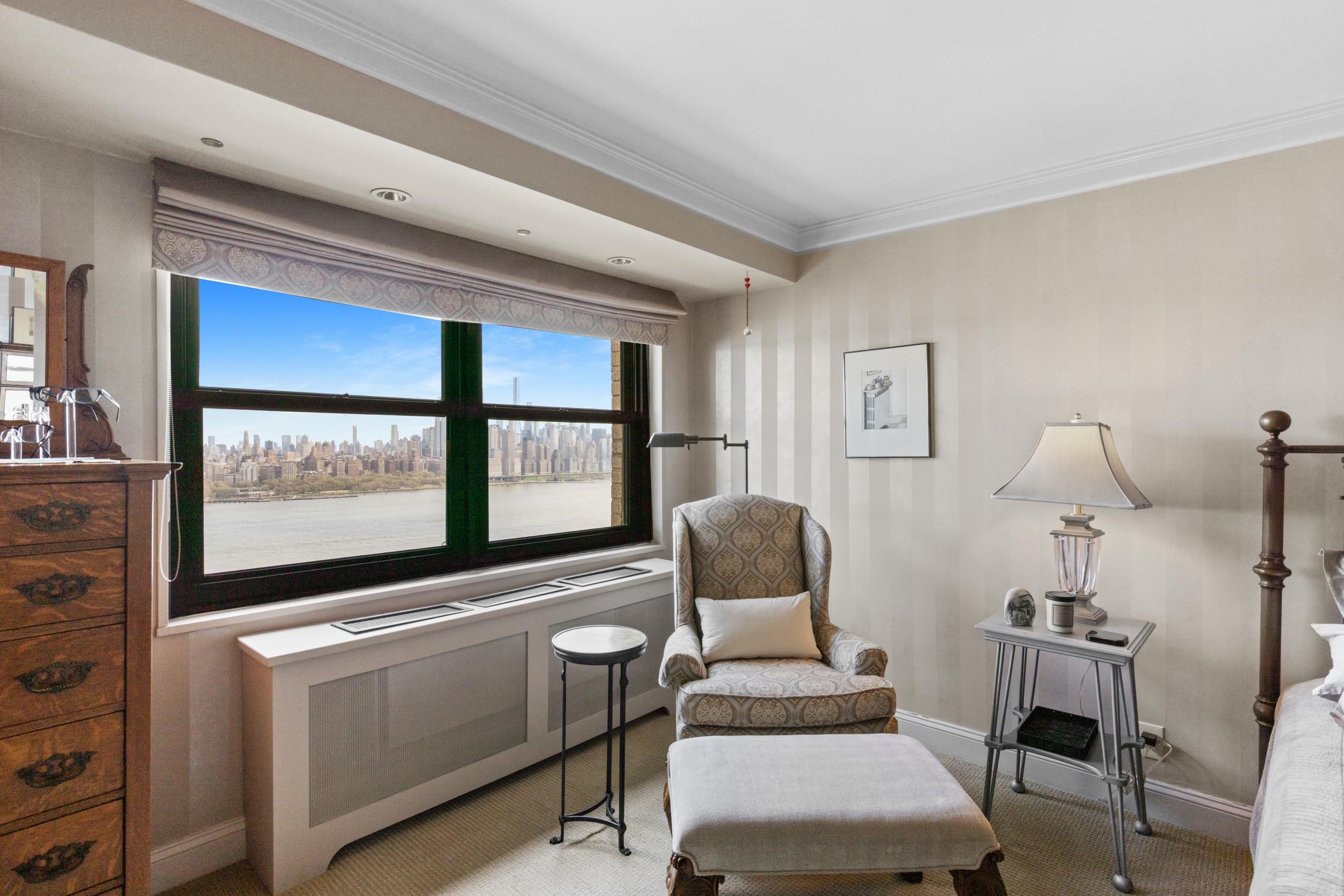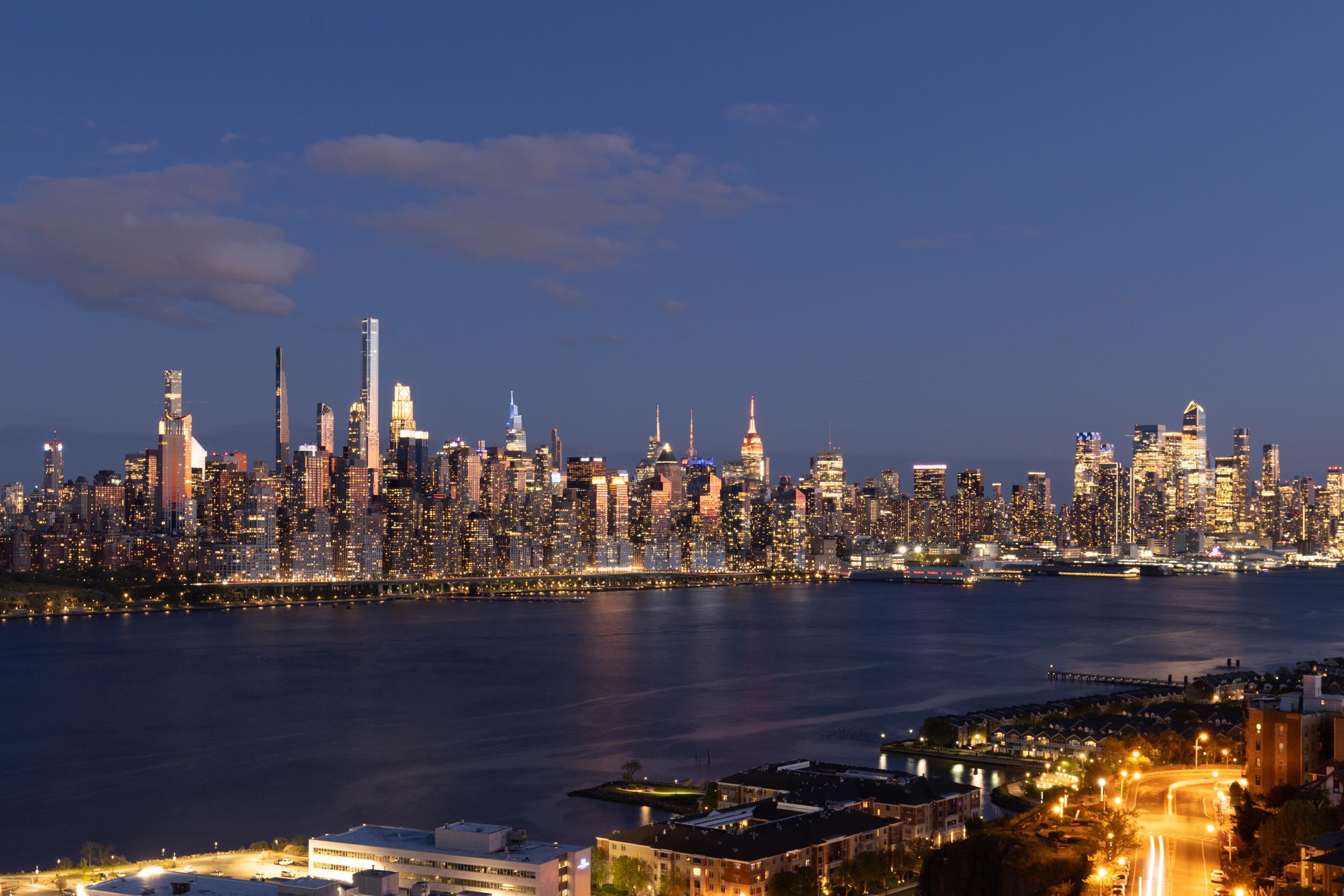 Light-filled and beautifully maintained 1-bedroom condominium offering breathtaking, unobstructed views of the NYC skyline and Hudson River. This inviting unit features wall-to-wall carpeting, recessed lighting, and a spacious layout designed for comfortable living. The bedroom includes a walk-in closet and also enjoys stunning city views, while additional closet space throughout the unit provides ample storage. The full bathroom offers a tub/shower combination, and the living area opens to a large private balcony—perfect for relaxing or entertaining while taking in the panoramic skyline backdrop. Conveniently located near parks, shopping, and transportation, with NJ Transit bus service directly outside the building for easy commuting. Building amenities include a fitness center, on-site laundry located on the same floor, and available parking. The pool is currently being renovated with an anticipated reopening in late Summer 2026, and the lobby is undergoing a modern update expected to be completed by May 2026. A fantastic opportunity to enjoy low-maintenance living with unbeatable views and everyday convenience.