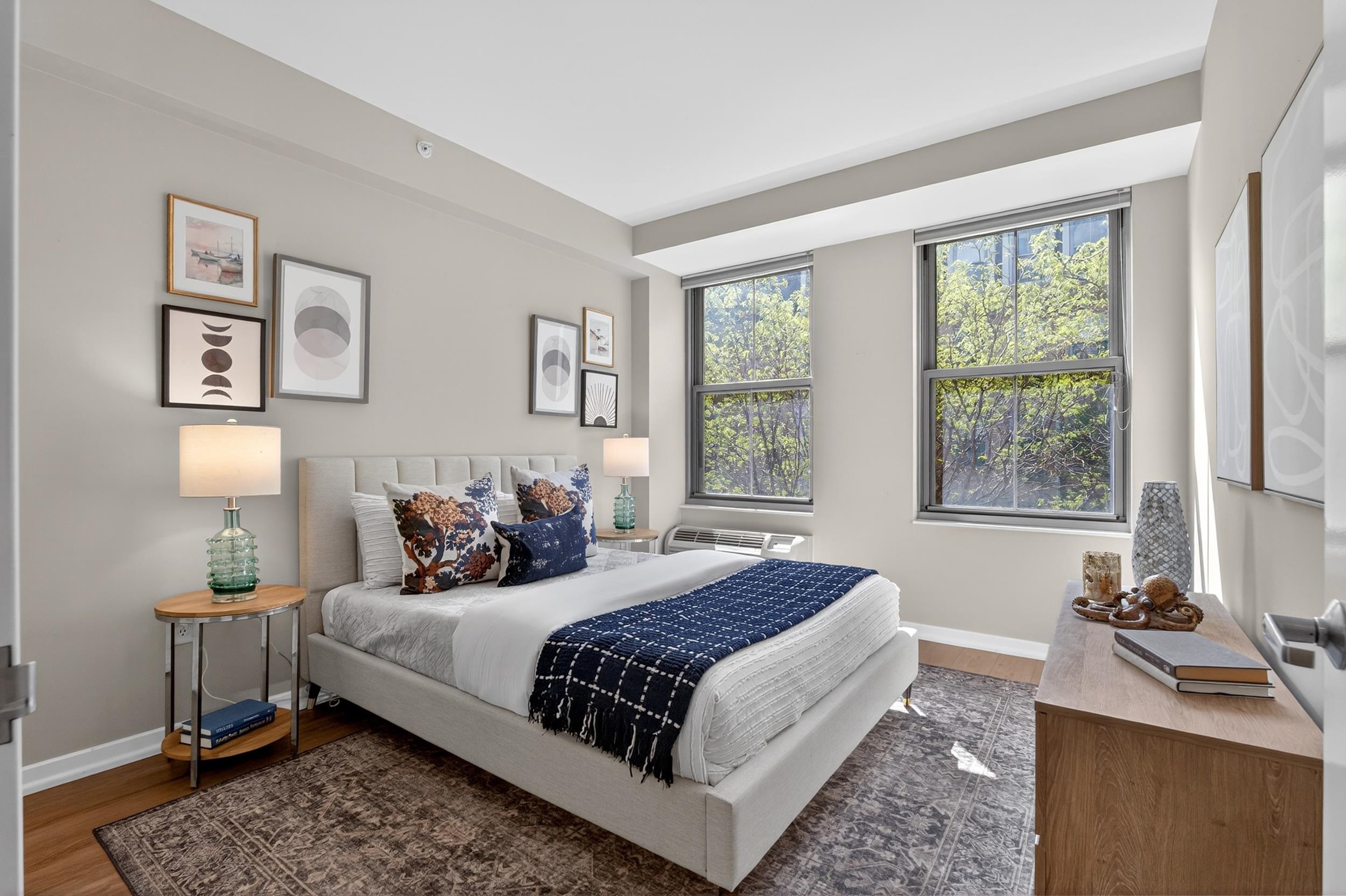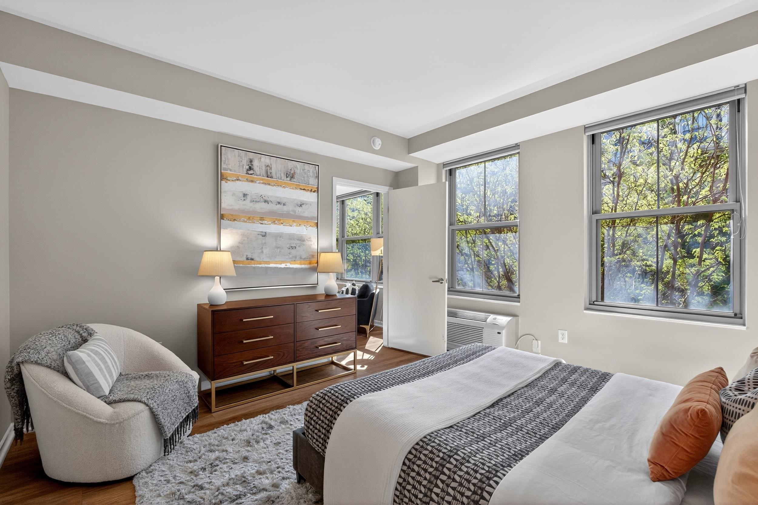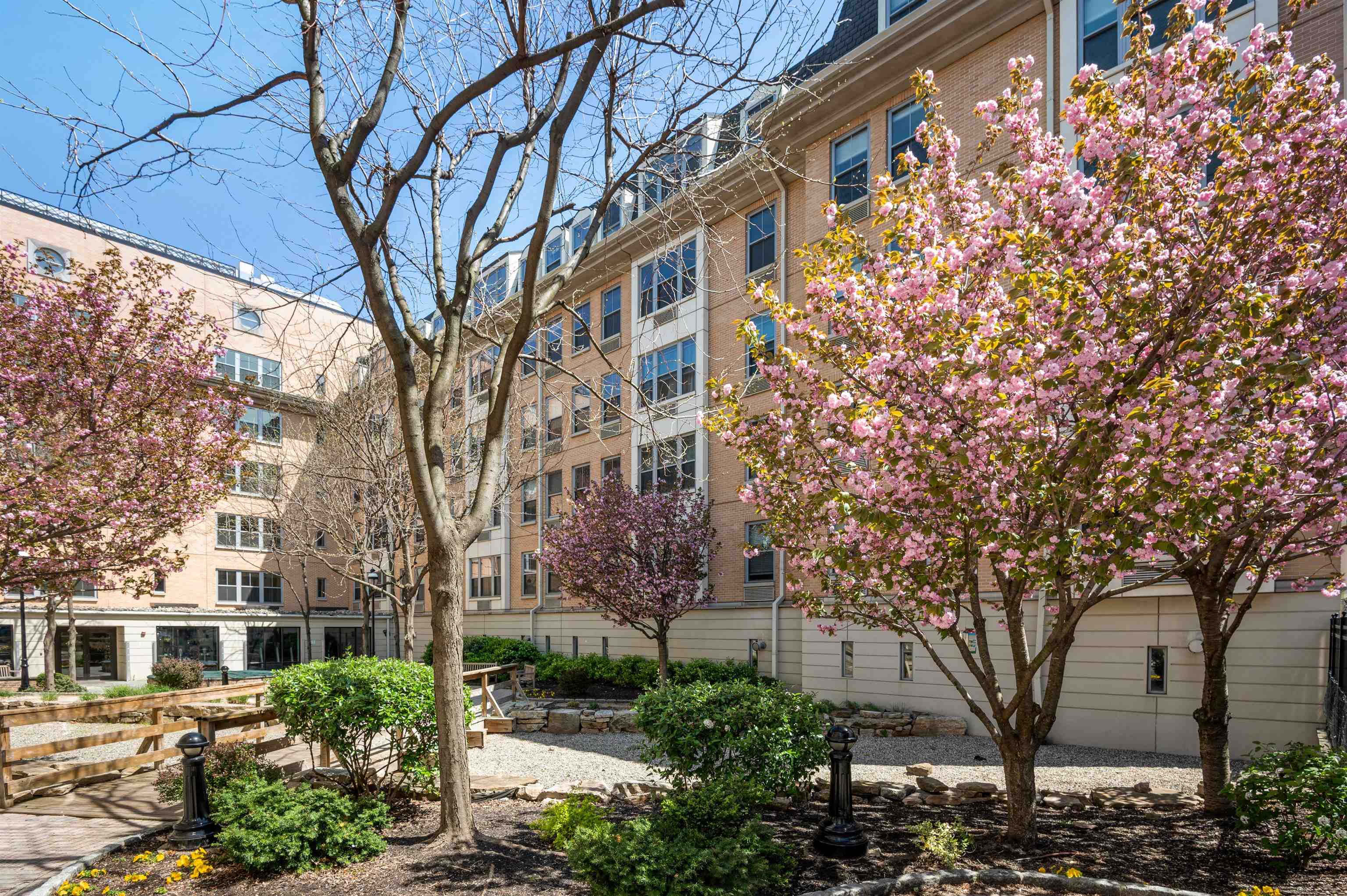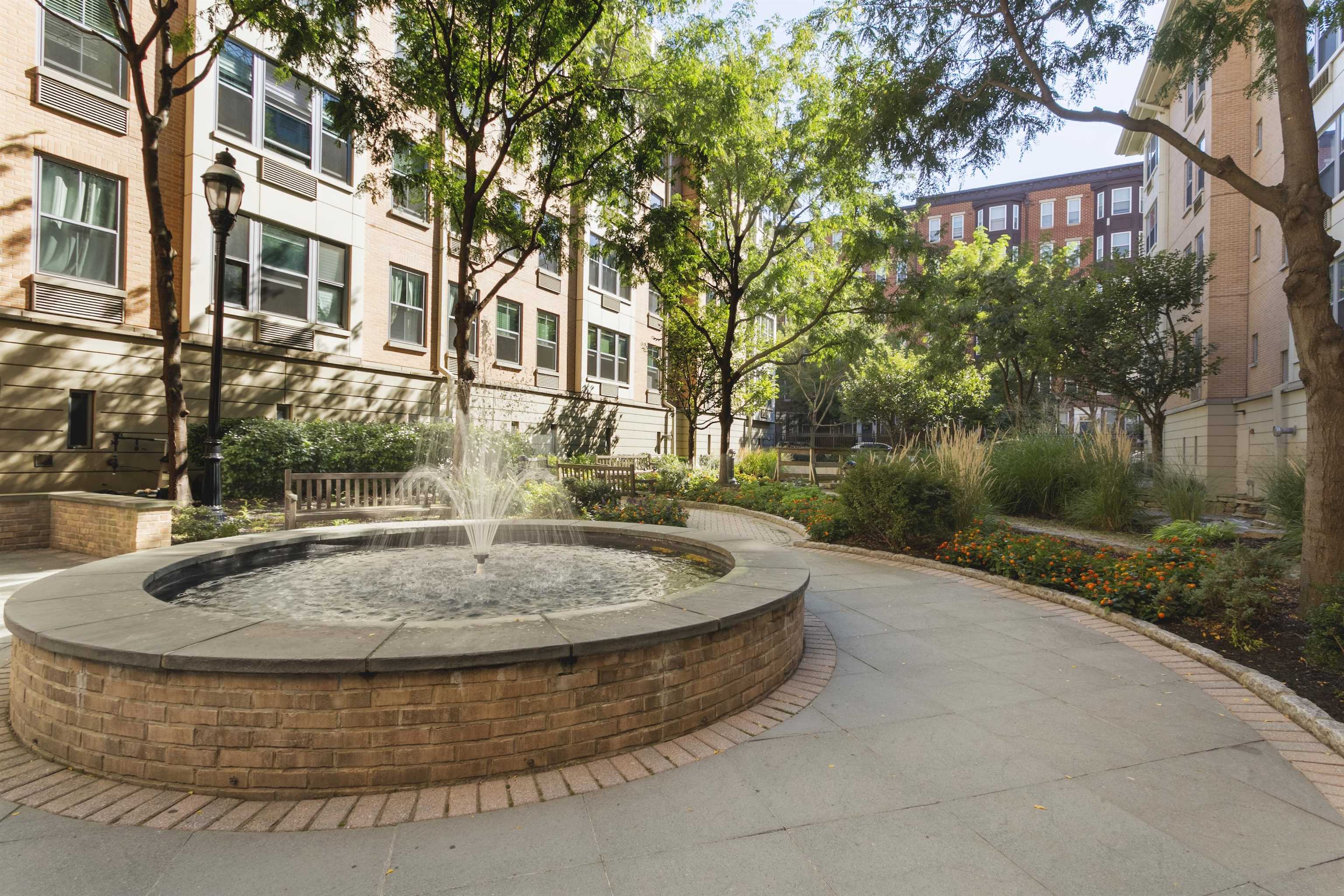 Welcome home to this 2 bedroom, 2 bath condo in one of Jersey City’s most desirable neighborhoods, historic Paulus Hook. The west facing home is bright and open with a wall of windows that lets in tons of afternoon natural light and faces onto a quiet common courtyard. The view is peaceful and serene with lush greenery right outside your window. The split concept floorplan features bedrooms on opposite sides of the unit with a generous living space between them; there are separate areas for living & dining, and an updated contemporary kitchen outfitted with modern white cabinets & stainless appliances. This home features two bedrooms, including a massive primary bedroom complete with ensuite bathroom with double vanities and oversized walk-in closet with organizational systems. Additional conveniences of the home include in-unit washer-dryer. Nearby parking may be available at an additional cost. Fulton's Landing is a full service, 24 hour doorman building featuring a beautifully landscaped common courtyard, reception lounge & fitness center. Being in Paulus Hook gives you the luxury of having a short walk to a multitude of transportation options: 2 PATH stations (Exchange and Grove), multiple Citibike locations, Light Rail and the Paulus Hook ferry within a couple of blocks. The neighborhood features excellent public and private school options close by including top-rated (10 out of 10!) PS 16, the River School, Waterfront Montessori, McNair, and St. Peters Prep. Plus there’s a multitude of restaurants, cafes, shops, Whole Foods & Base gym within a few block’s radius; the location is unbeatable!
