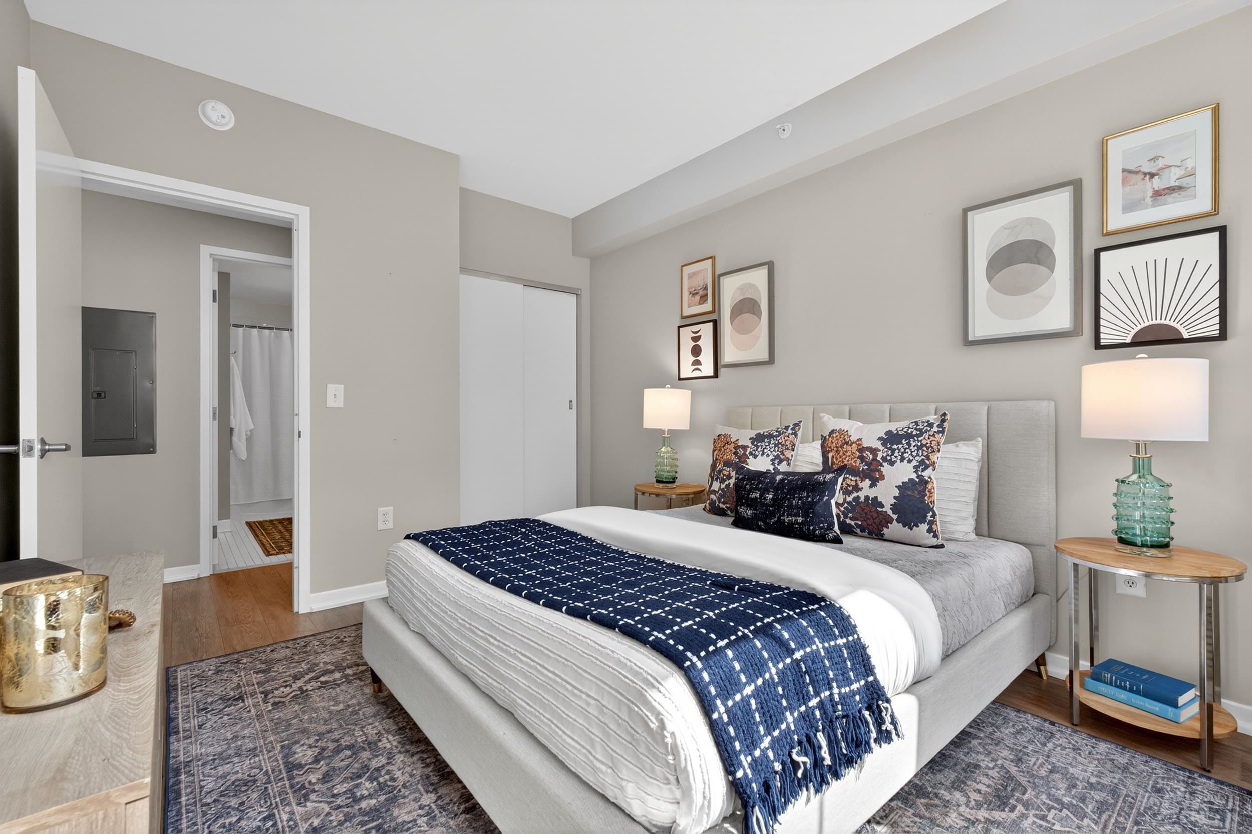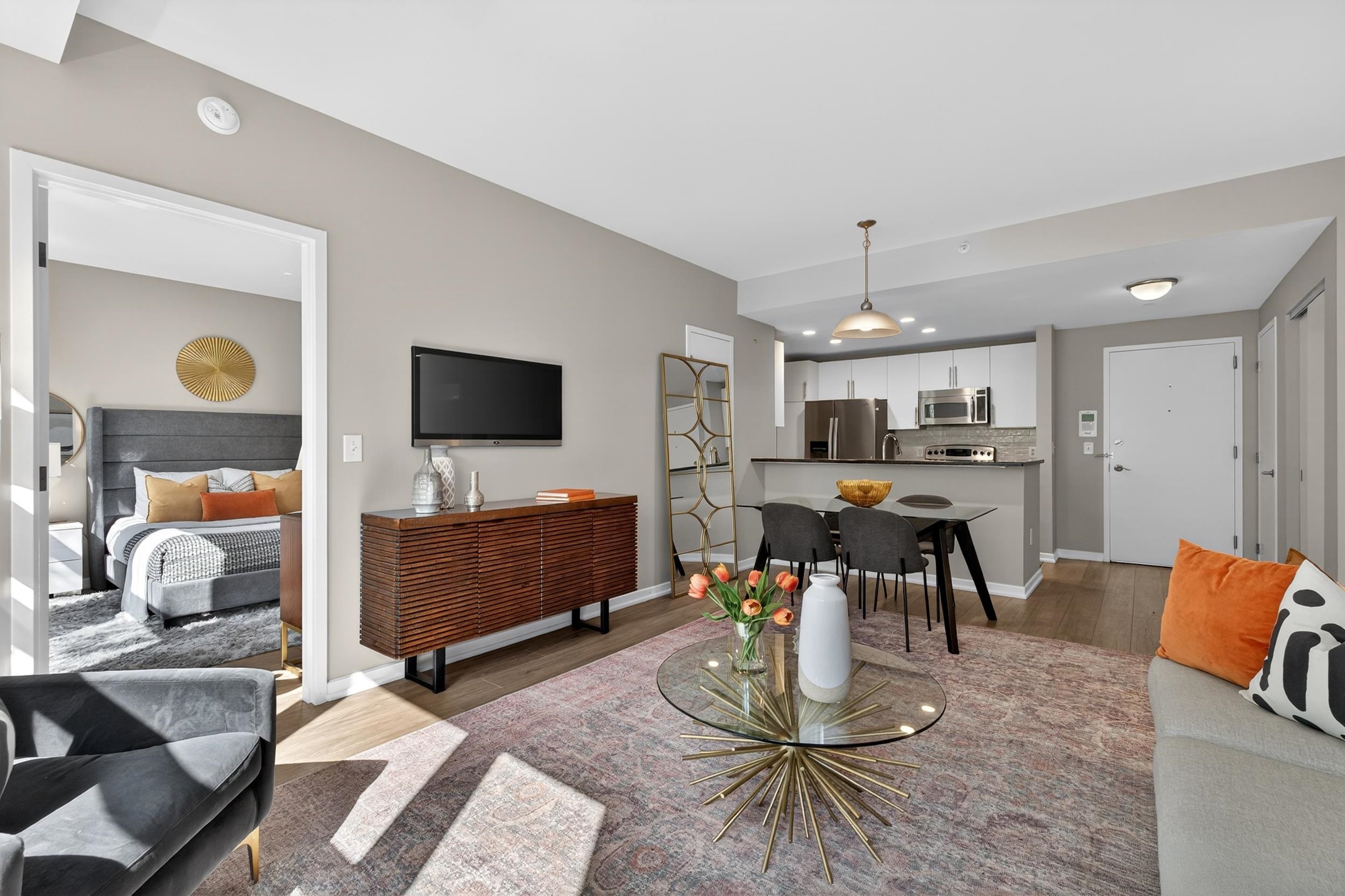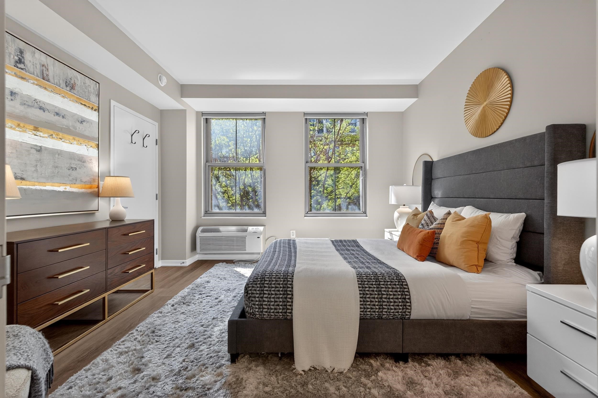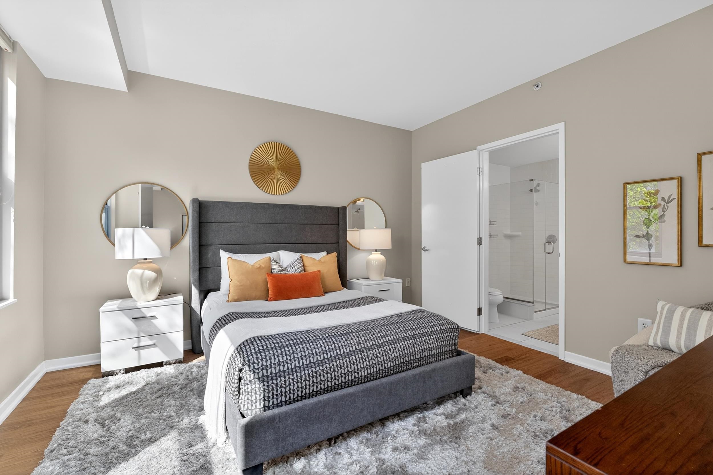 Welcome home to this 2 bedroom, 2 bath condo in one of Jersey City’s most desirable neighborhoods, historic Paulus Hook. The west facing home is bright and open with a wall of windows that lets in tons of afternoon natural light and faces onto a quiet common courtyard. The view is peaceful and serene with lush greenery right outside your window. The split concept floorplan features bedrooms on opposite sides of the unit with a generous living space between them; there are separate areas for living & dining, and an updated contemporary kitchen outfitted with modern white cabinets & stainless appliances. This home features two bedrooms, including a massive primary bedroom complete with ensuite bathroom with double vanities and oversized walk-in closet with organizational systems. Additional conveniences of the home include in-unit washer-dryer. Nearby parking may be available at an additional cost. Fulton's Landing is a full service, 24 hour doorman building featuring a beautifully landscaped common courtyard, reception lounge & fitness center. Being in Paulus Hook gives you the luxury of having a short walk to a multitude of transportation options: 2 PATH stations (Exchange and Grove), multiple Citibike locations, Light Rail and the Paulus Hook ferry within a couple of blocks. The neighborhood features excellent public and private school options close by including top-rated (10 out of 10!) PS 16, the River School, Waterfront Montessori, McNair, and St. Peters Prep. Plus there’s a multitude of restaurants, cafes, shops, Whole Foods & Base gym within a few block’s radius; the location is unbeatable!