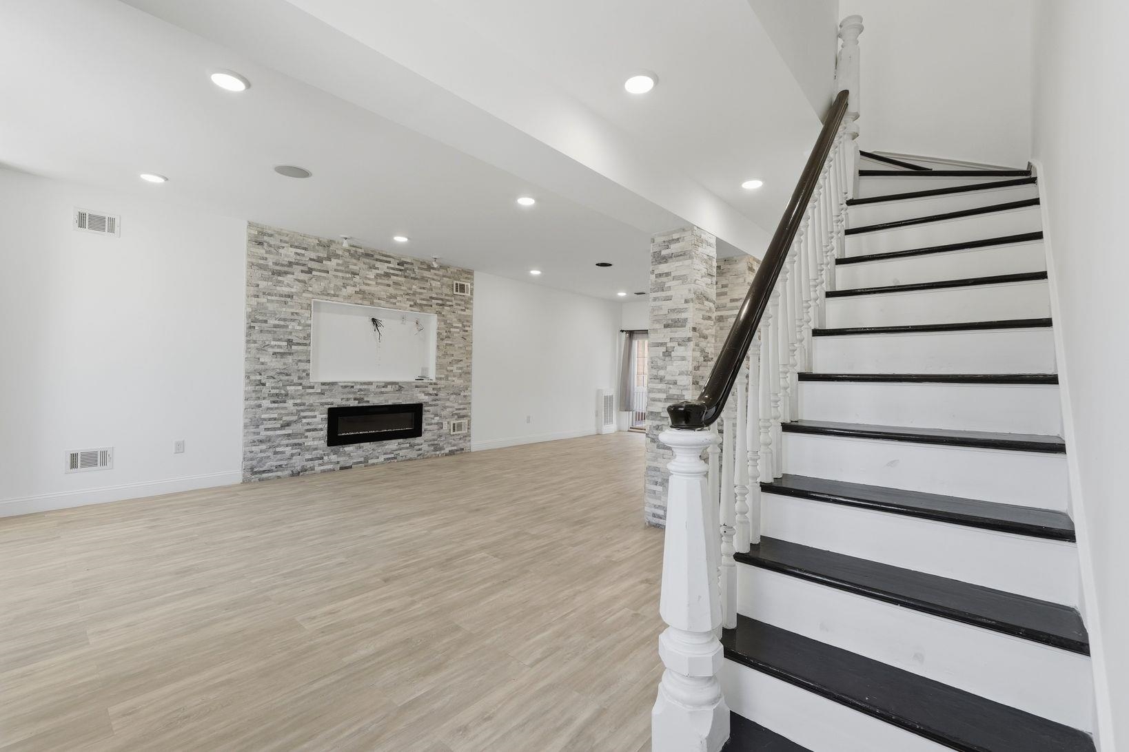 Welcome to a fully renovated 3-bedroom, 2 1/2-bath finished basement home offers a fresh, modern feel with thoughtful upgrades throughout. The open-concept living and dining areas are bright and inviting, featuring updated flooring, recessed lighting, and clean, modern finishes. The kitchen has been completely redone with new cabinetry, sleek countertops, stainless steel appliances, and modern fixtures—designed for both everyday living and entertaining. All 3 bedrooms are well-proportioned with ample closet space, while the two bathrooms have been stylishly remodeled with new vanities, upgraded tile, and modern hardware. Major systems have been updated, including electrical, plumbing, windows, and HVAC, providing peace of mind and energy efficiency.